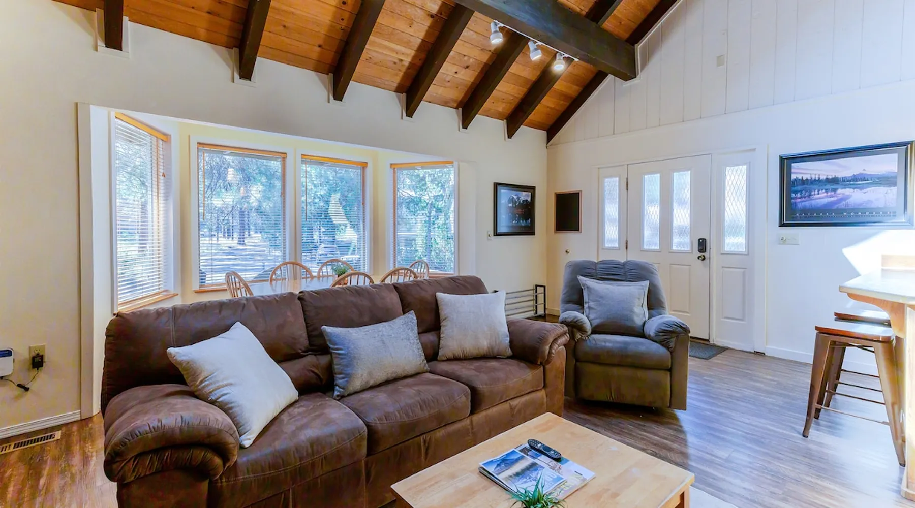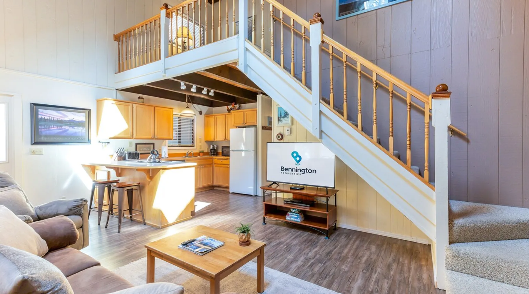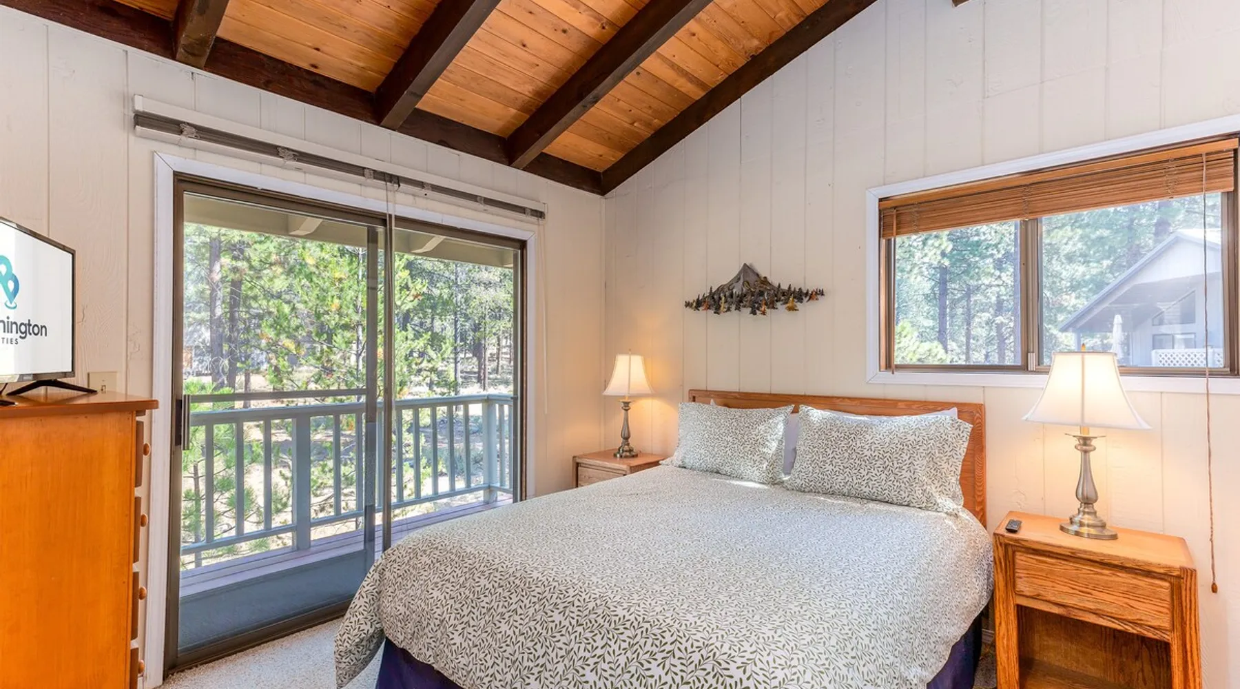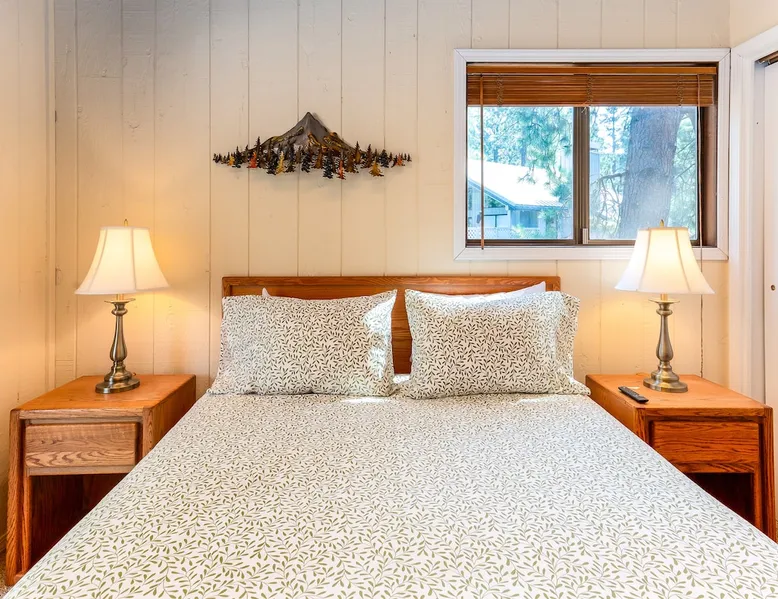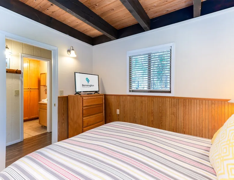 Your cabin in the woods awaits you. Near Village Mall, restaurants and shops. Gas fireplace to keep you cozy during the cold months, large wrap around deck to enjoy during the summer. Air conditioning. New Smart TVs. The space Your cabin in the woods awaits. This great home is nestled among the trees, a short walk from the shops, restaurants, and fun at the Sunriver Village, providing the perfect getaway for couples and young families to enjoy. A cozy gas fireplace in the living room with a new smart TV plus cable and DVD player, vaulted ceilings with exposed wooden beams and skylights, and a large wrap-around deck with a private hot tub and patio seating create a charming atmosphere for your vacation. This home has 2 comfortable queen bedrooms that both have new smart TVs for streaming, and 2 full bathrooms - one of each on the main floor and upstairs. An additional guest will sleep well on the twin daybed found in the loft at the top of the stairs. The kitchen is clean and well-stocked, and the adjacent dining table set against the large bay windows seats 6. A gas BBQ is ready and waiting for you to grill your meals and dine out on the deck. Central A/C will keep you cool and comfortable during a warm summer day. When you are ready to explore Sunriver, head out on one of the 2 adult bikes provided with this vacation rental. The fun at Fort Rock Park, acres of green fairways at the 2 award-winning Sunriver golf courses, horseback riding, and lazy summertime floats along the Deschutes River are all accessible within a few miles of 10 Deer Lane. Family reunion? Great! Book this home along with our 1 and 8 Deer Lane homes for room for the whole family. This home welcomes dogs, 2 max, no other pets are allowed. Fees apply Guest access Home access information will be sent 7 - 10 days prior to arrival. All homes are set up for self check-in, no need to stop by the office, just go straight to the home. Other things to note AGE RESTRICTIONS: Guests must be 23 years or older to rent Bennington homes and the person reserving must occupy the home the whole reservation.