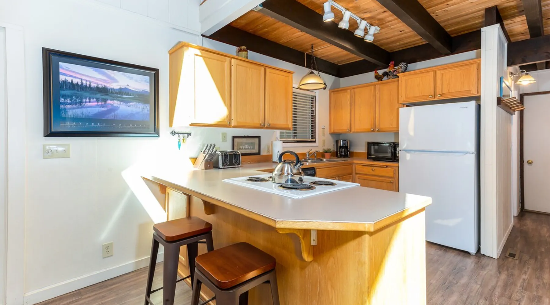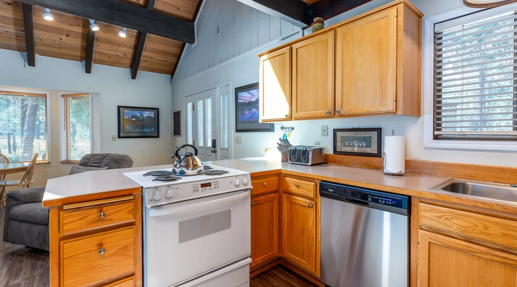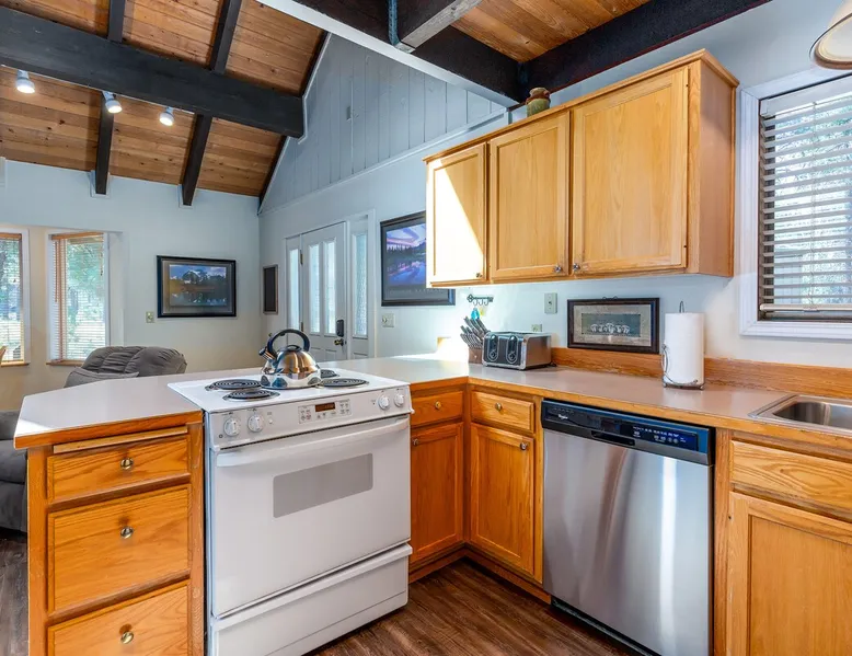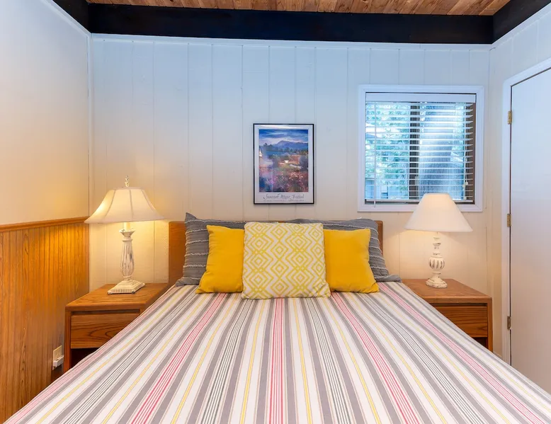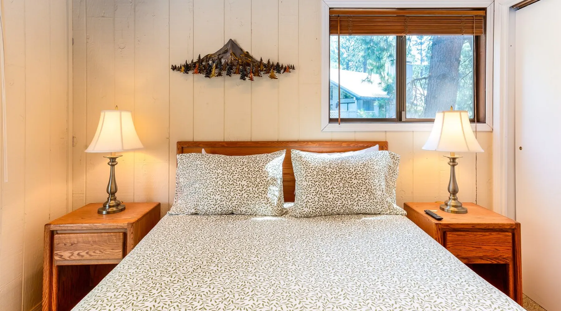 Your cabin in the woods awaits you. Near Village Mall, restaurants and shops. Gas fireplace to keep you cozy during the cold months, large wrap around deck to enjoy during the summer. Air conditioning. New Smart TVs. The space Your cabin in the woods awaits. This great home is nestled among the trees, a short walk from the shops, restaurants, and fun at the Sunriver Village, providing the perfect getaway for couples and young families to enjoy. A cozy gas fireplace in the living room with a new smart TV plus cable and DVD player, vaulted ceilings with exposed wooden beams and skylights, and a large wrap-around deck with a private hot tub and patio seating create a charming atmosphere for your vacation. This home has 2 comfortable queen bedrooms that both have new smart TVs for streaming, and 2 full bathrooms - one of each on the main floor and upstairs. An additional guest will sleep well on the twin daybed found in the loft at the top of the stairs. The kitchen is clean and well-stocked, and the adjacent dining table set against the large bay windows seats 6. A gas BBQ is ready and waiting for you to grill your meals and dine out on the deck. Central A/C will keep you cool and comfortable during a warm summer day. When you are ready to explore Sunriver, head out on one of the 2 adult bikes provided with this vacation rental. The fun at Fort Rock Park, acres of green fairways at the 2 award-winning Sunriver golf courses, horseback riding, and lazy summertime floats along the Deschutes River are all accessible within a few miles of 10 Deer Lane. Family reunion? Great! Book this home along with our 1 and 8 Deer Lane homes for room for the whole family. This home welcomes dogs, 2 max, no other pets are allowed. Fees apply Guest access Home access information will be sent 7 - 10 days prior to arrival. All homes are set up for self check-in, no need to stop by the office, just go straight to the home. Other things to note AGE RESTRICTIONS: Guests must be 23 years or older to rent Bennington homes and the person reserving must occupy the home the whole reservation.
