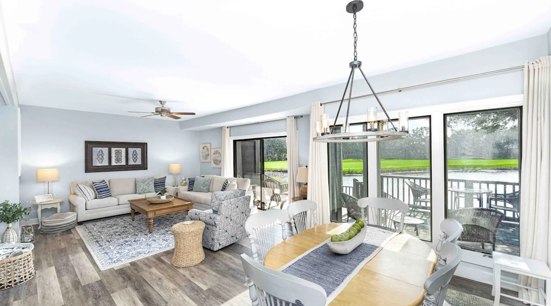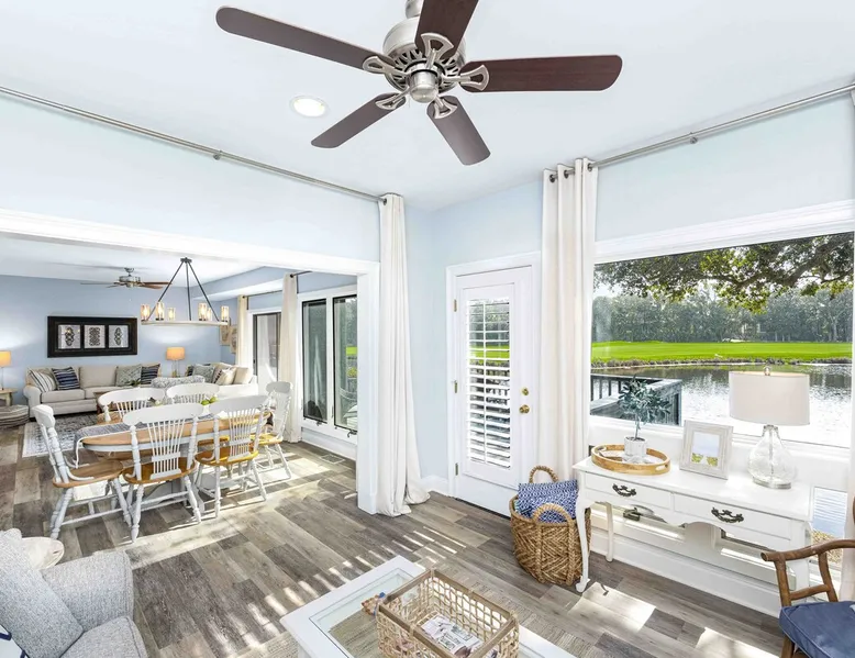 This first-floor renovated 2-bedroom Kiawah Island vacation rental features a sunroom and views. The space RBL19-007022 In accordance with the Town of Kiawah Island Short Term Rental Ordinance, all guests understand that the approved number of bedrooms is 2, the maximum allowed occupancy is 6, and the maximum allowed number of vehicles is 2. This first-floor renovated Kiawah Island vacation rental is a Turtle Point Villa that features two bedrooms, a sunroom, and great golf and lagoon views. The villa is a six-minute walk or two-minute bike ride from Kiawah's spectacular beach. The villa was recently renovated and has many updates, including beautiful new flooring throughout. The coastal-inspired décor and comfortable furnishings make this villa perfect for your Kiawah Island vacation! The living area features a comfortable couch, love seat, swivel chair, 65” Smart TV which allows guests to access Netflix, Hulu, and other apps with personal subscriptions. HDMI also provides guests with the ability to connect personal gaming consoles and laptops. Enjoy your favorite movie or sporting event with surround sound provided by the Bose Soundbar. Step out through the sliding glass doors onto the open back deck where you will find plenty of seating. Enjoy the fresh air while watching wildlife in the lagoon or the golfers play on Turtle Point Golf Course. The living room opens to the dining area that has a table and chairs for 6. The villa also has a great sunroom with a memory foam queen sleeper sofa, and a chair. The recently renovated kitchen features beautiful quartz countertops, white cabinets, new appliances, and barstool seating for 3. The primary bedroom showcases a king-sized bed, flat screen TV, lovely built-ins, and private bathroom with a shower/tub combination. The second bedroom features two memory foam twin beds, flat-screen TV, and is close to the hallway bathroom that offers a walk-in shower. This villa is equipped with washer, dryer, and high-speed wireless internet. Guest reservations of 3 to 21 nights come with a valuable credit to use towards beach gear rentals during your stay! The credit amount for this property is $250. You may use your credit for bicycles, beach chairs and umbrellas, beach carts, and more – the choice is yours! During your stay on Kiawah Island, be sure to enjoy biking on the 30 miles of flat bike trails, golfing on one of five world-class courses, playing tennis, crabbing, fishing, swimming, boating. Many families also enjoy the kids’ camp and nature programs at Night Heron Park. Kiawah Island is about 40 minutes from historic Charleston famous for incredible shopping, galleries, antique stores, museums, the South Carolina aquarium, horse drawn carriage rides, historic landmarks and sumptuous dining. Guest access Before your arrival, you will receive two separate emails with attachments: • one containing your printable gate pass. • one containing your property's lock box code. Other things to note GUEST LICENSE (RENTAL) AGREEMENT – Kiawah Island This Agreement shall be interpreted and enforced according to the laws of the State of South Carolina. The invalidity or unenforceability of any one or more provisions of this Agreement shall in no way effect any other provisions. This Agreement may not be transferred or assigned. GUEST may not let, sublet, or assign this Agreement for all or any part of the premises. OWNERSHIP The property is privately owned, with Akers Ellis Rentals acting solely as the AGENT for the OWNER. The GUEST acknowledges he is a licensee of the OWNER and not a tenant, and is not acquiring any interest in the property. PAYMENT We accept credit cards for payment. An initial payment of 35% of rents subtotal plus related taxes, 100% of service fee plus related taxes, and 100% of travel insurance (if elected) is due at the time of booking. The remaining balance is due 45 days prior to the arrival date of {{formatDate reservation.checkin "medium"}}. If your arrival date is less than 45 days away, the total payment is due upon completion of this Agreement.* *If reservation was made through a third-party booking site, such as Vrbo, the total payment is due 60 days prior to the arrival date of {{formatDate reservation.checkin "medium"}}. GUEST authorizes AGENT to charge the credit card for the initial and final payment amounts on the dates specified in the payment schedule. GUEST will receive receipts of payment which will act as record of transaction. DEPOSITS Rental deposits are governed by the South Carolina Real Estate Commission and deposited into an Escrow Trust Account by Akers Ellis Rentals. Disbursements are made according to policies of the South Carolina Real Estate Commission. GUEST understands that any interest earned on your payment(s) shall belong to Akers Ellis Rentals. CANCELLATION POLICY a) All GUEST cancellations must be in writing via email to [redacted link] or mail to 3730 Bohicket Road, Suite 5, Johns Island, SC 29455. To protect all parties, the AGENT has a strictly enforced policy for cancellations. Cancellations received more than 45 days prior to the arrival date of {{formatDate reservation.checkin "medium"}} are subject to a full refund, less the service fee plus related tax. Cancellations made within 45 days of arrival will result in the forfeiture of all payments made, unless travel insurance is purchased and the need to cancel is covered under the policy. Should the AGENT re-book the exact dates at the exact rate paid by the cancelled GUEST, a refund of payments made, less the service fee plus related tax, could take place. There will be no transfer of monies paid to be used on another date if a reservation is cancelled within 45 days of arrival.* *If reservation was made through a third-party booking site, such as Vrbo, cancellations terms are outlined with the listing on the booking site, and cancellations must be requested via the booking site more than 60 days prior to the arrival date of {{formatD