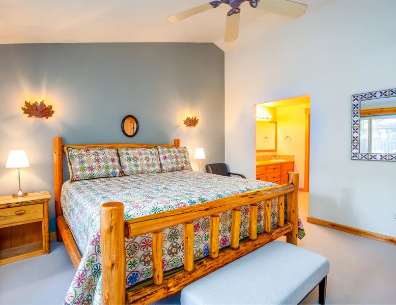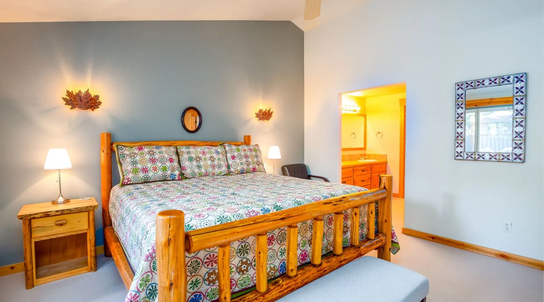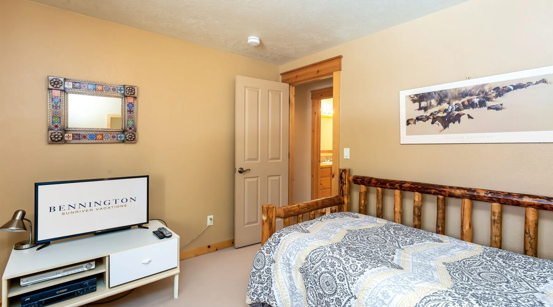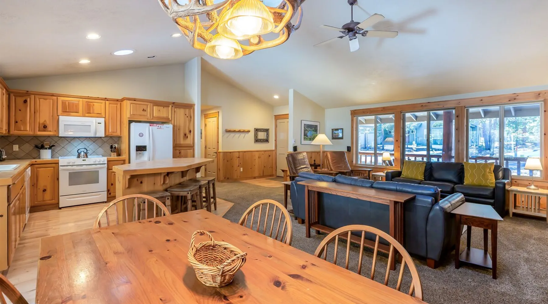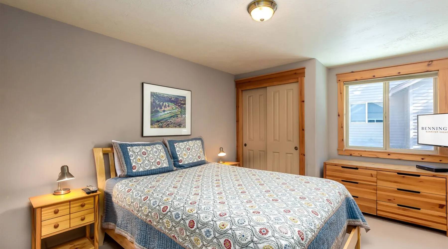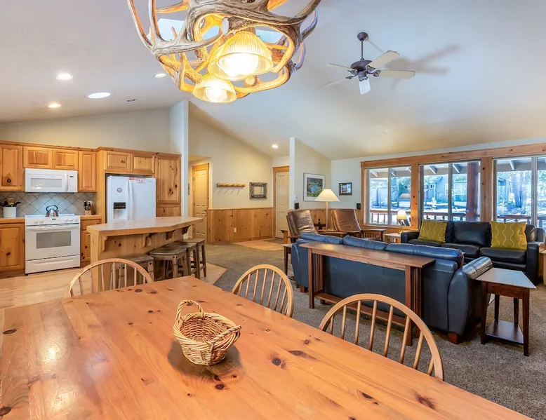 Located on Sunriver’s peaceful north end, this single-level home is perfect for families! Enjoy vaulted ceilings, a cozy gas fireplace, and forest views from the spacious living room. The fully stocked kitchen and dining area for six open to a private patio with a fenced hot tub. Sleep soundly in a king suite, a queen bedroom, and a twin+trundle room. Play ping pong in the garage, bike Sunriver’s 30+ miles of trails, or visit Fort Rock Park and the Deschutes River! The space This single level home, located on the quiet north end of Sunriver, is great for the whole family. The living room, with vaulted ceilings and tons of natural light, is equipped with a gas fireplace, large Smart TV with cable and comfortable furnishings. While relaxing on the cozy furnishings, you'll enjoy great views of the surrounding pine forest. Your pup will enjoy being near the new dog park. The kitchen is equipped with all the necessities to make meals for your whole group. Off the dining area with seating for 6, you can access the patio to enjoy a meal outside or enjoy a soak in the full fenced private hot tub. Down the hall are 3 bedrooms and 2 bathrooms: Bedroom One is a large bedroom with a king bed, private bathroom, and patio access. The second bedroom features a queen bed and TV and shares a full bathroom with the third bedroom. This bedroom features a twin+trundle bed, perfect for the kiddos. If a little game time action is what you are looking for, head into the garage for a friendly game of ping pong table. When you are ready to explore all that Sunriver has to offer set off on foot or hop on one of the adult bikes provided with this vacation rental to explore over 30 miles of paved paths, with access right outside your door. You will have a great time choosing your adventure - the fun at Fort Rock Park, horseback riding, and lazy summertime floats along the Deschutes River are all accessible within a few miles. This home welcomes dogs, 2 max, no other pets are allowed. Fees apply. Guest access Home access information will be sent 7 - 10 days prior to arrival. All homes are set up for self check-in, no need to stop by the office, just go straight to the home. Other things to note AGE RESTRICTIONS: Guests must be 23 years or older to rent Bennington homes and the person reserving must occupy the home the whole reservation.