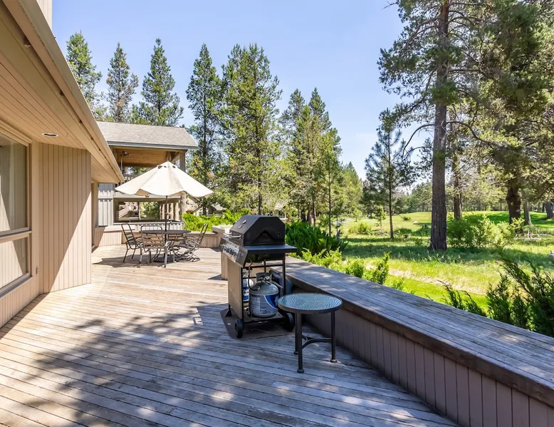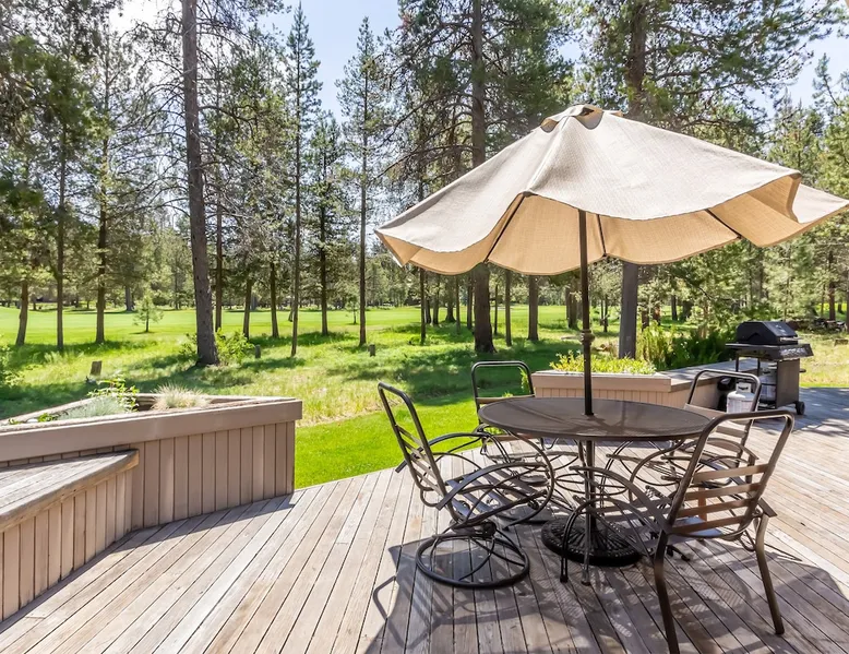 Escape to our cozy 3BR/2BA Sunriver retreat—perfect for families and adventure seekers! Unwind in the private hot tub under the stars, warm up by the gas fireplace, or cruise the bike paths with the provided bikes. Enjoy nature, relax in style, and make unforgettable memories just minutes from Sunriver fun. Book your getaway today—comfort, charm, and convenience await! The space This comfortable, single level 3 bedroom Sunriver vacation home spreads out over 2,000 square feet of living space with wonderful outdoor areas overlooking the 13th fairway of Woodlands Golf Course. The open concept layout features vaulted ceilings and tons of natural light. The living, dining and kitchen areas are combined to keep everyone close together. In the living room, enjoy features such as a gas fireplace, Smart TV and DVD player. The kitchen and dining room connection makes meal time a snap, and you'll be able to whip up your family's favorite meals in our fully stocked kitchen. Or enjoy dining al fresco on the back deck with views of the golf course. Bedroom 1 is a king ensuite bedroom with cable tv and a private bathroom with sunken tub. Bedrooms 2 and 3 have queen-sized beds and share a full bathroom with walk-in shower. The attached garage houses a ping pong table for fun-filled competitions. Looking to book a family reunion or large group gathering? Reserve this home along with Red Cedar 16, Red Cedar 20, Red Cedar 27 and Red Cedar 49. Other things to note AGE RESTRICTIONS: Guests must be 23 years or older to rent Bennington homes and the person reserving must occupy the home the whole reservation.