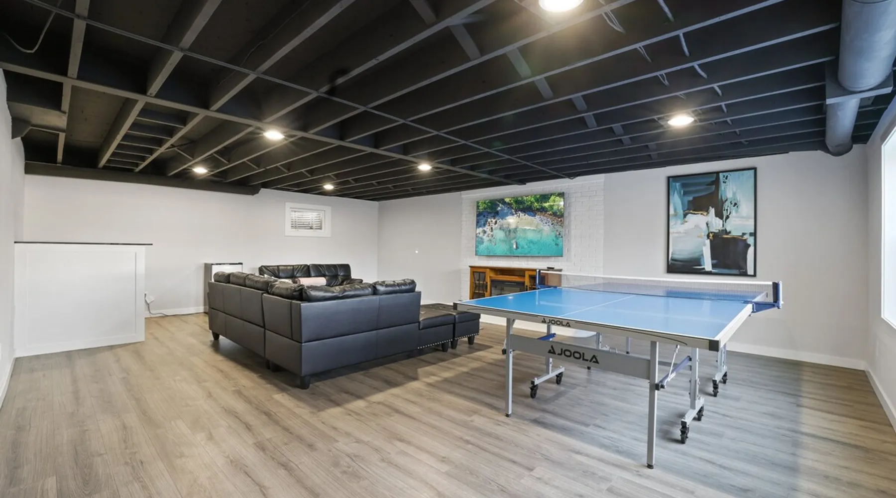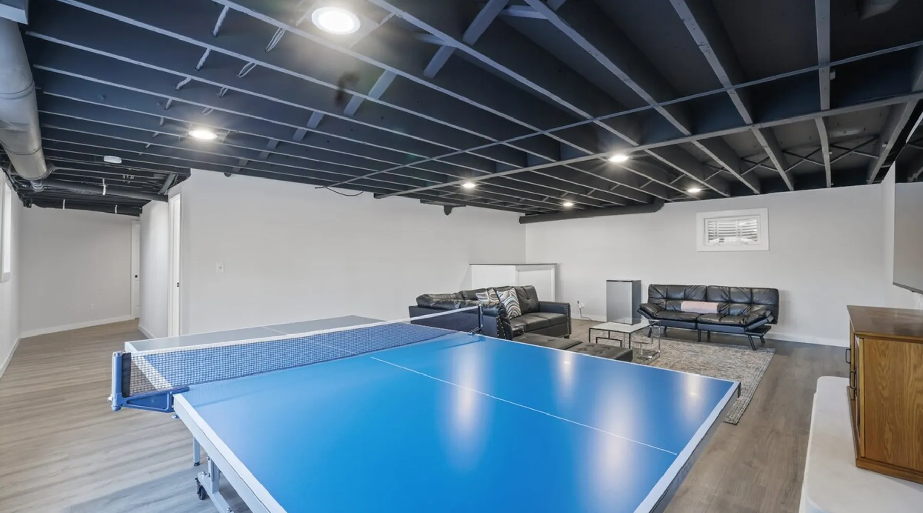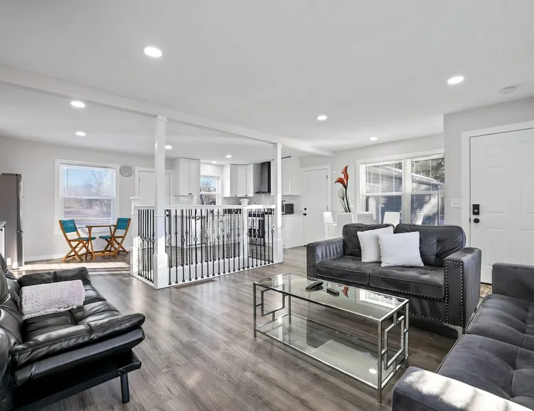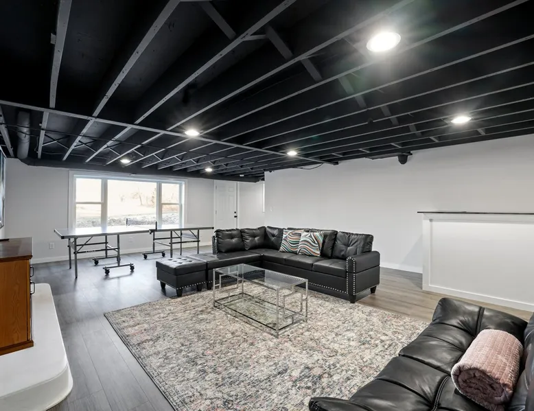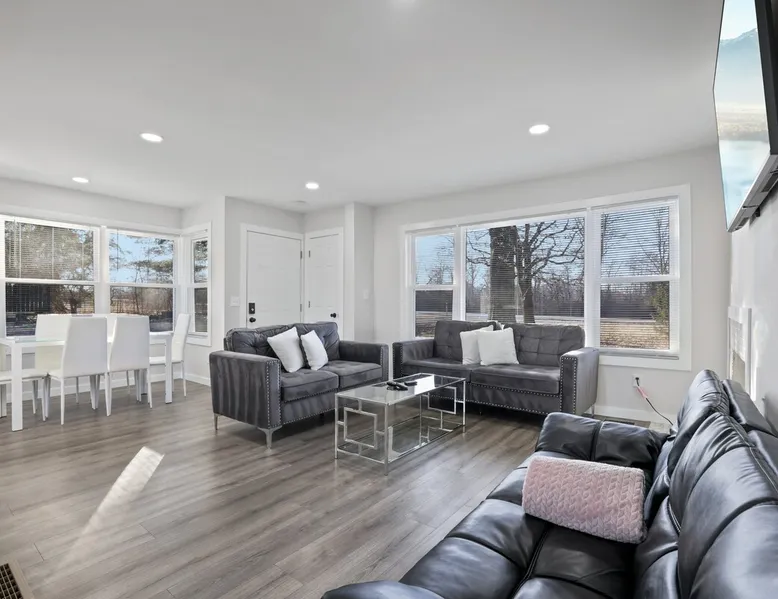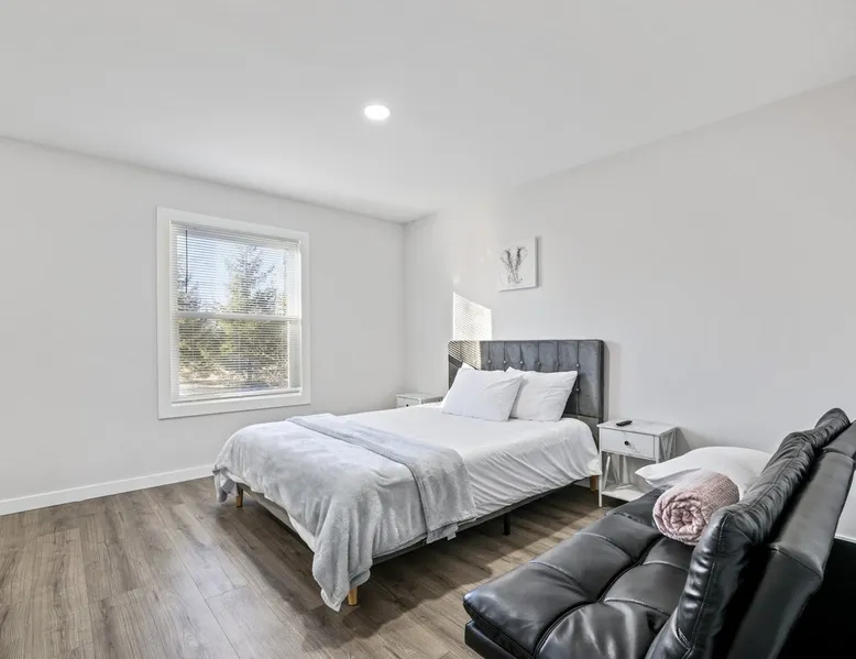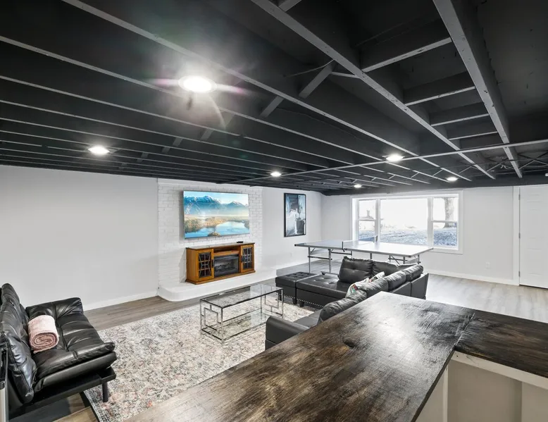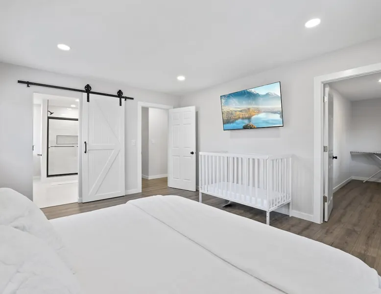 Nestled over 3 sprawling acres is this luxurious private retreat ideal for large families, groups or corporate getaways with room for up to 12 guests. An escape from the hustle and bustle of life, this gorgeous homestead features multiple living areas, a gourmet kitchen, 4 spacious bedrooms, a game room, glamorous bathrooms and an expansive yard with a scenic pond and hot tub. Stay just 10 mins from the heart of Delaware and only minutes to shopping malls, restaurants and scenic parks. The space Make your way inside using the easy self check-in and feel instantly at home with spacious sun-filled rooms, inviting decor and beautiful views across the countryside from every room. The main living area is the heart of the home with its plush, inviting sofas giving you plenty of room to gather together for a movie night or to stream your favorite shows on the 75” wall-mounted Smart TV with Netflix included. Cook up a delicious dinner for the group in the modern, gourmet kitchen that comes fully equipped with stainless steel appliances, a coffee machine, sleek stone countertops and all the cookware, dinnerware and utensils you could need to entertain in style. Enjoy dining together at the contemporary dining table set for six or if a night off from cooking is what you crave, there are many restaurants and cafes just 4 minutes away or a 10 minute drive into Downtown giving you plenty of options. You’ll find four spacious bedrooms within the home with each offering comfortable beds topped in soft, quality linen along with plenty of space to unpack and make yourself at home. ♕ Master Bedroom - King Bed & Crib ♕ Bedroom Two – Queen Bed & Sofa Bed ♕ Bedroom Three – Queen Bed & Sofa Bed ♕ Bedroom Four – Queen Bed ♕ Living Area – Two Sofa Beds The stunning master bedroom features a lavish ensuite bathroom through the sliding barn doors with a luxe soaking bath, a his and hers vanity and an oversize shower. Bedroom four also features its own ensuite while the other bedrooms share the additional full bathroom and half bath that come stocked with all the essentials for your stay as well as a laundry with a washer and dryer so you can pack light and wash on the go. You’ll find many spaces to relax and unwind in the home with a second living area and games room on the basement level of the home. Here you can chill out on the sofa and watch the big game or take on your friends at ping pong with a table by the window. Remote workers can catch up on work in the dedicated office nook with fast and free WiFi to keep you connected or if relaxing is what you crave, take some time out and soak in the inviting hot tub and feel the stress just melt away. On a sunny day, step out into the large yard where you can meander through the 3 acres of private, open space, enjoy a BBQ or take a walk around the beautiful grounds with a scenic pond as you breathe in the fresh country air. So if you are looking to escape the hustle and bustle of the city and get away from it all in a quiet, countryside setting while still being just a short drive from Downtown, look no further than this spacious, family-friendly home for your next getaway. We can’t wait to welcome you! Other things to note Guests have private access to the entire home and 3 acres of private, sprawling yard as well as free Wi-Fi, free parking, complimentary coffee, Netflix on the Smart TVs and access to the laundry with a washing machine and dryer.