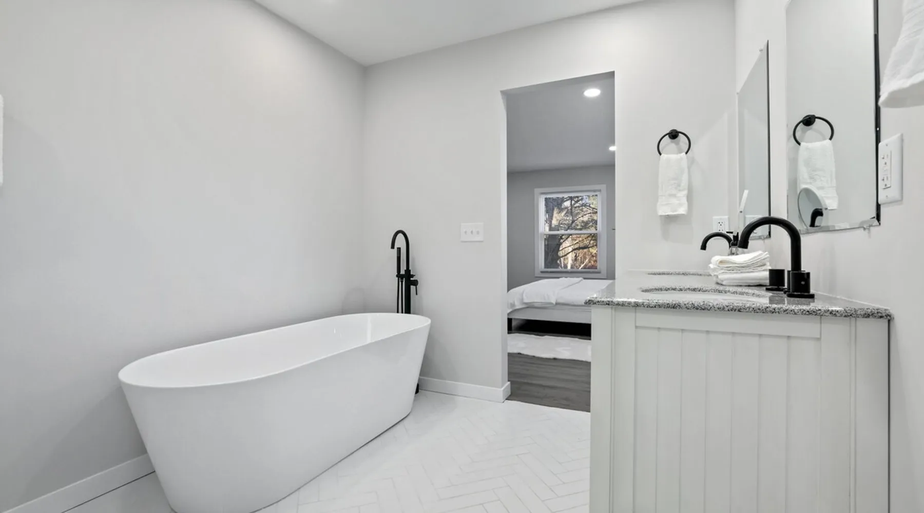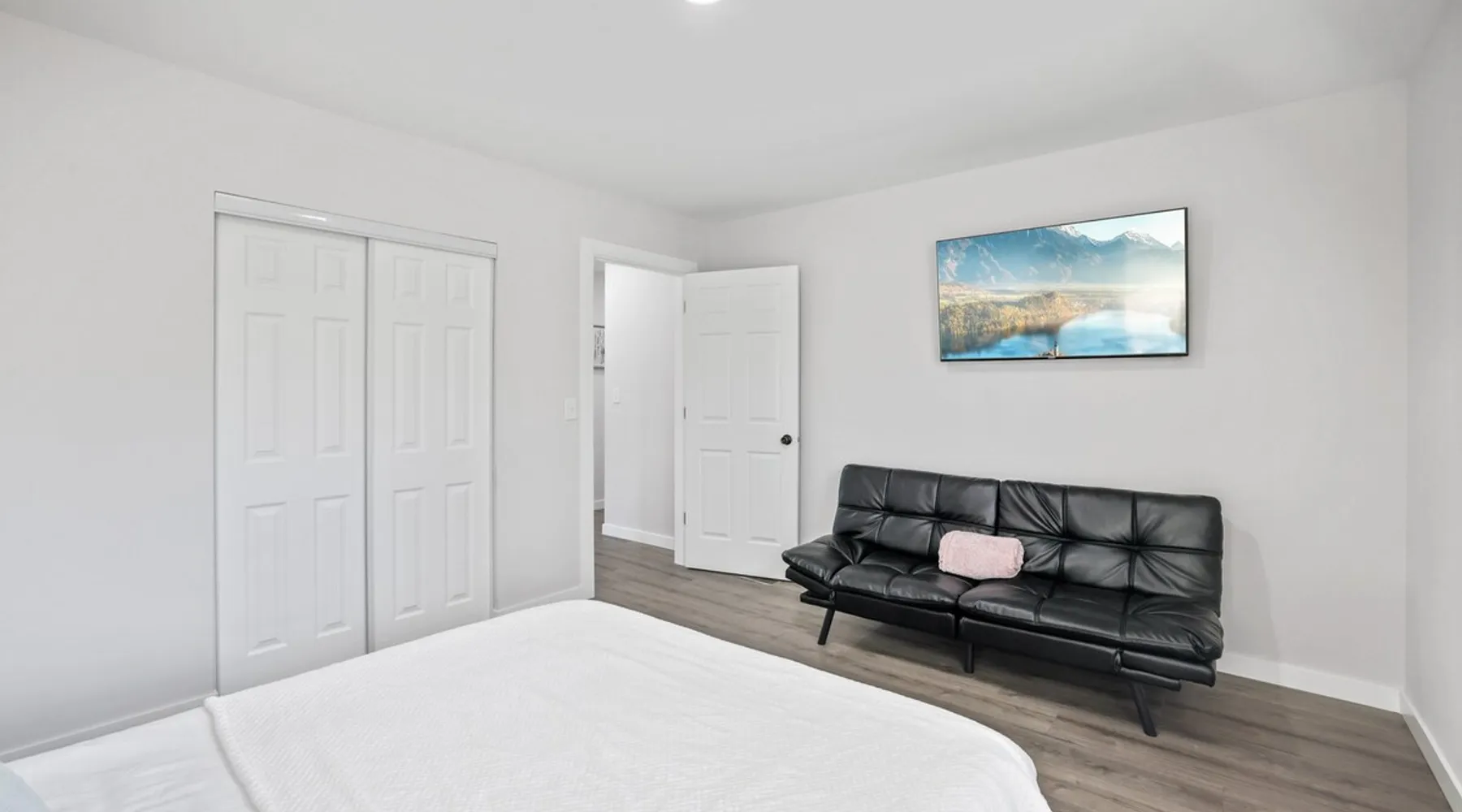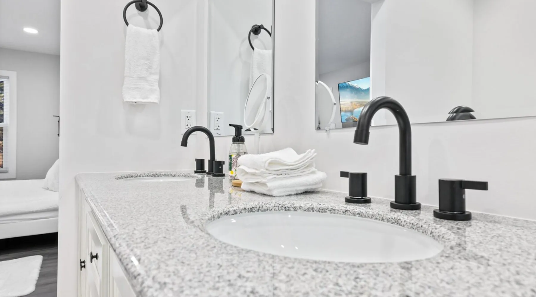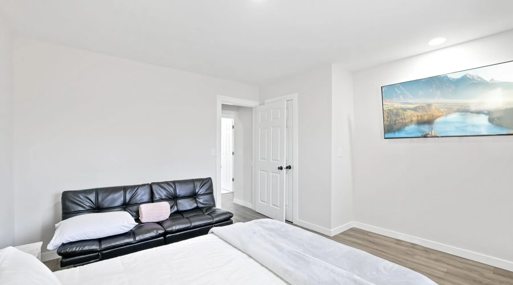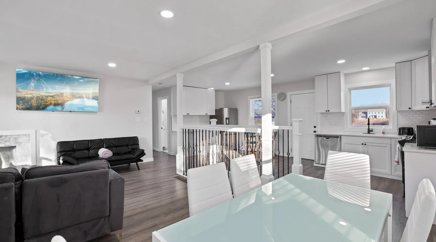 Nestled over 3 sprawling acres is this luxurious private retreat ideal for large families, groups or corporate getaways with room for up to 12 guests. An escape from the hustle and bustle of life, this gorgeous homestead features multiple living areas, a gourmet kitchen, 4 spacious bedrooms, a game room, glamorous bathrooms and an expansive yard with a scenic pond and hot tub. Stay just 10 mins from the heart of Delaware and only minutes to shopping malls, restaurants and scenic parks. The space Make your way inside using the easy self check-in and feel instantly at home with spacious sun-filled rooms, inviting decor and beautiful views across the countryside from every room. The main living area is the heart of the home with its plush, inviting sofas giving you plenty of room to gather together for a movie night or to stream your favorite shows on the 75” wall-mounted Smart TV with Netflix included. Cook up a delicious dinner for the group in the modern, gourmet kitchen that comes fully equipped with stainless steel appliances, a coffee machine, sleek stone countertops and all the cookware, dinnerware and utensils you could need to entertain in style. Enjoy dining together at the contemporary dining table set for six or if a night off from cooking is what you crave, there are many restaurants and cafes just 4 minutes away or a 10 minute drive into Downtown giving you plenty of options. You’ll find four spacious bedrooms within the home with each offering comfortable beds topped in soft, quality linen along with plenty of space to unpack and make yourself at home. ♕ Master Bedroom - King Bed & Crib ♕ Bedroom Two – Queen Bed & Sofa Bed ♕ Bedroom Three – Queen Bed & Sofa Bed ♕ Bedroom Four – Queen Bed ♕ Living Area – Two Sofa Beds The stunning master bedroom features a lavish ensuite bathroom through the sliding barn doors with a luxe soaking bath, a his and hers vanity and an oversize shower. Bedroom four also features its own ensuite while the other bedrooms share the additional full bathroom and half bath that come stocked with all the essentials for your stay as well as a laundry with a washer and dryer so you can pack light and wash on the go. You’ll find many spaces to relax and unwind in the home with a second living area and games room on the basement level of the home. Here you can chill out on the sofa and watch the big game or take on your friends at ping pong with a table by the window. Remote workers can catch up on work in the dedicated office nook with fast and free WiFi to keep you connected or if relaxing is what you crave, take some time out and soak in the inviting hot tub and feel the stress just melt away. On a sunny day, step out into the large yard where you can meander through the 3 acres of private, open space, enjoy a BBQ or take a walk around the beautiful grounds with a scenic pond as you breathe in the fresh country air. So if you are looking to escape the hustle and bustle of the city and get away from it all in a quiet, countryside setting while still being just a short drive from Downtown, look no further than this spacious, family-friendly home for your next getaway. We can’t wait to welcome you! Other things to note Guests have private access to the entire home and 3 acres of private, sprawling yard as well as free Wi-Fi, free parking, complimentary coffee, Netflix on the Smart TVs and access to the laundry with a washing machine and dryer.