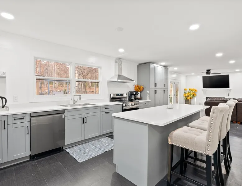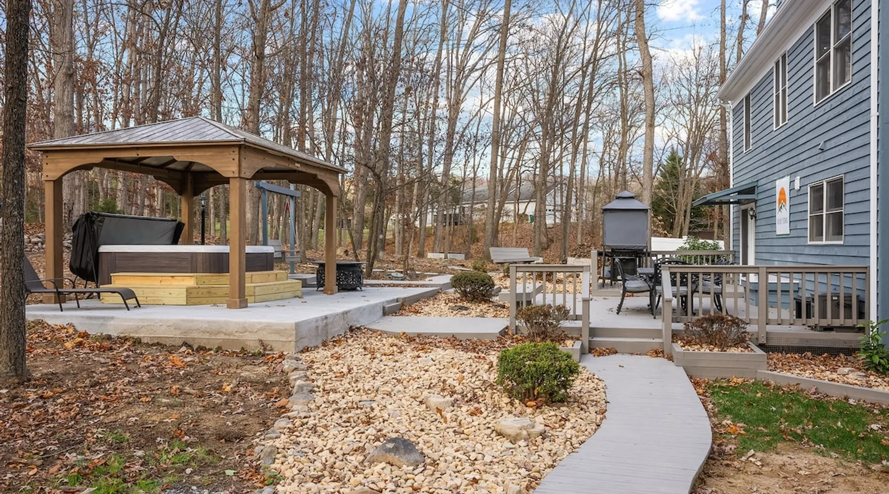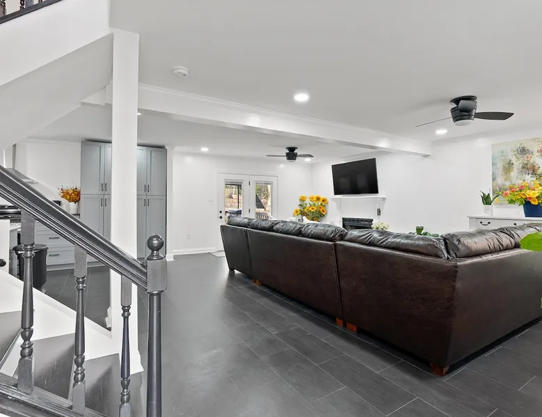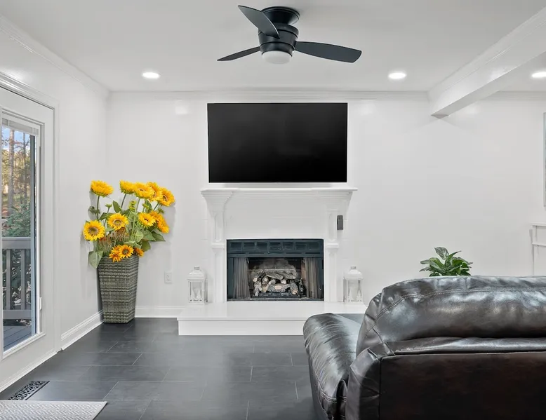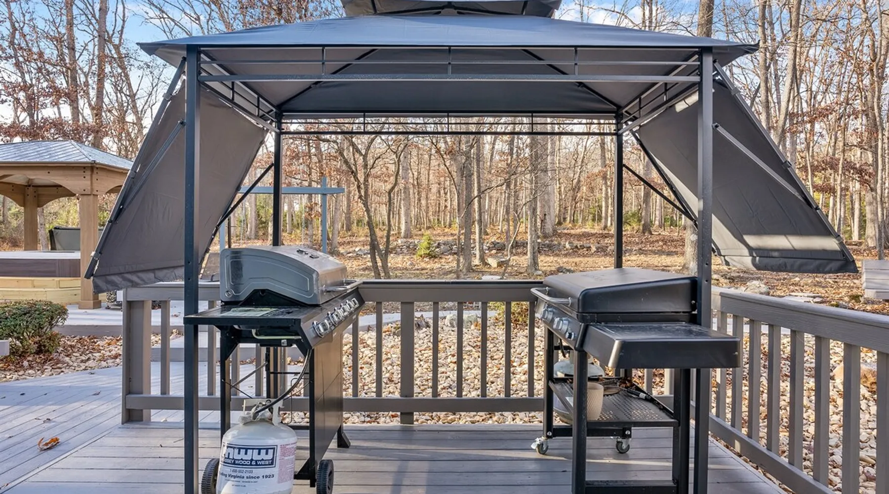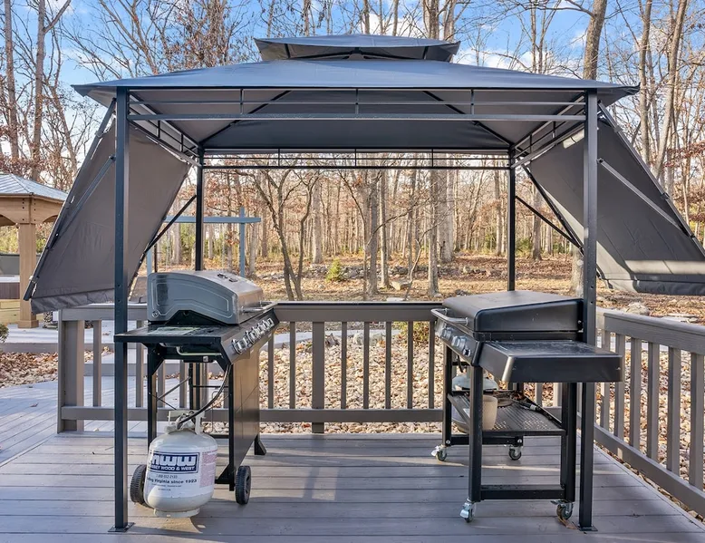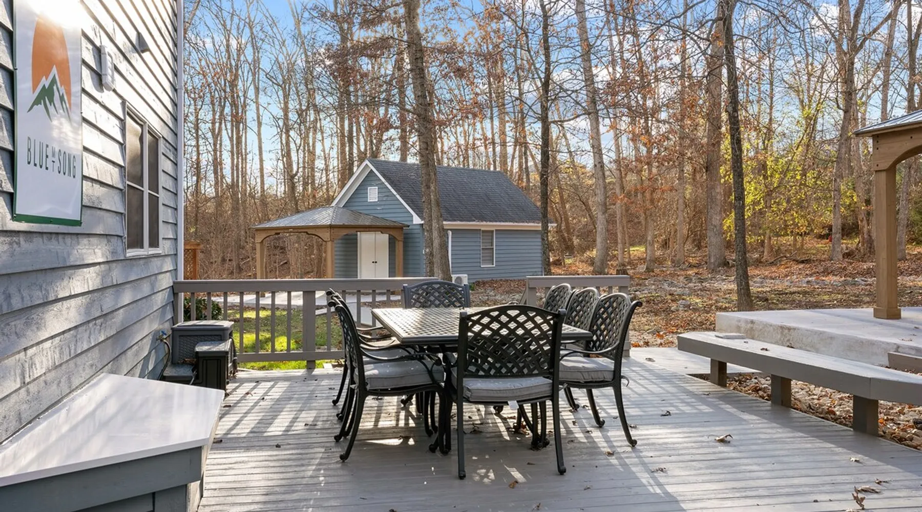 This newly renovated, luxurious, 4-bedroom, 4-bathroom vacation rental cabin is nestled in the heart of a quiet neighborhood, providing a serene and peaceful escape from the hustle and bustle of everyday life. Backing up to towering trees and pristine nature, this cabin offers a woodsy experience while still providing all the modern amenities and comforts of home. -Outside resort - No passes The base rate includes 4 people. Additional guests are an additional $30 per person per night. Please r The space The cabin boasts a spacious and inviting interior, featuring stylish and cozy furnishings that create a warm and welcoming atmosphere. The fully equipped kitchen offers ample space for cooking and dining, with all the necessary appliances and utensils provided. The living area is perfect for relaxing with loved ones, featuring plush seating, a cozy fireplace, and a large flat-screen TV. Each of the four bedrooms features its own bathroom and is thoughtfully appointed with comfortable bedding, ensuring a restful night's sleep after a day of outdoor adventure. Each of the four bathrooms offers plenty of space and is stocked with fresh towels for your convenience. There is even a bedroom for your pup! Outside, you'll find a sprawling deck with breathtaking views of the forest, perfect for sipping your morning coffee or enjoying a glass of wine in the evening. The deck is furnished with a large hot tub, comfortable outdoor seating, a barbecue grill, and a flat-top griddle, making it the ideal spot for outdoor entertaining.