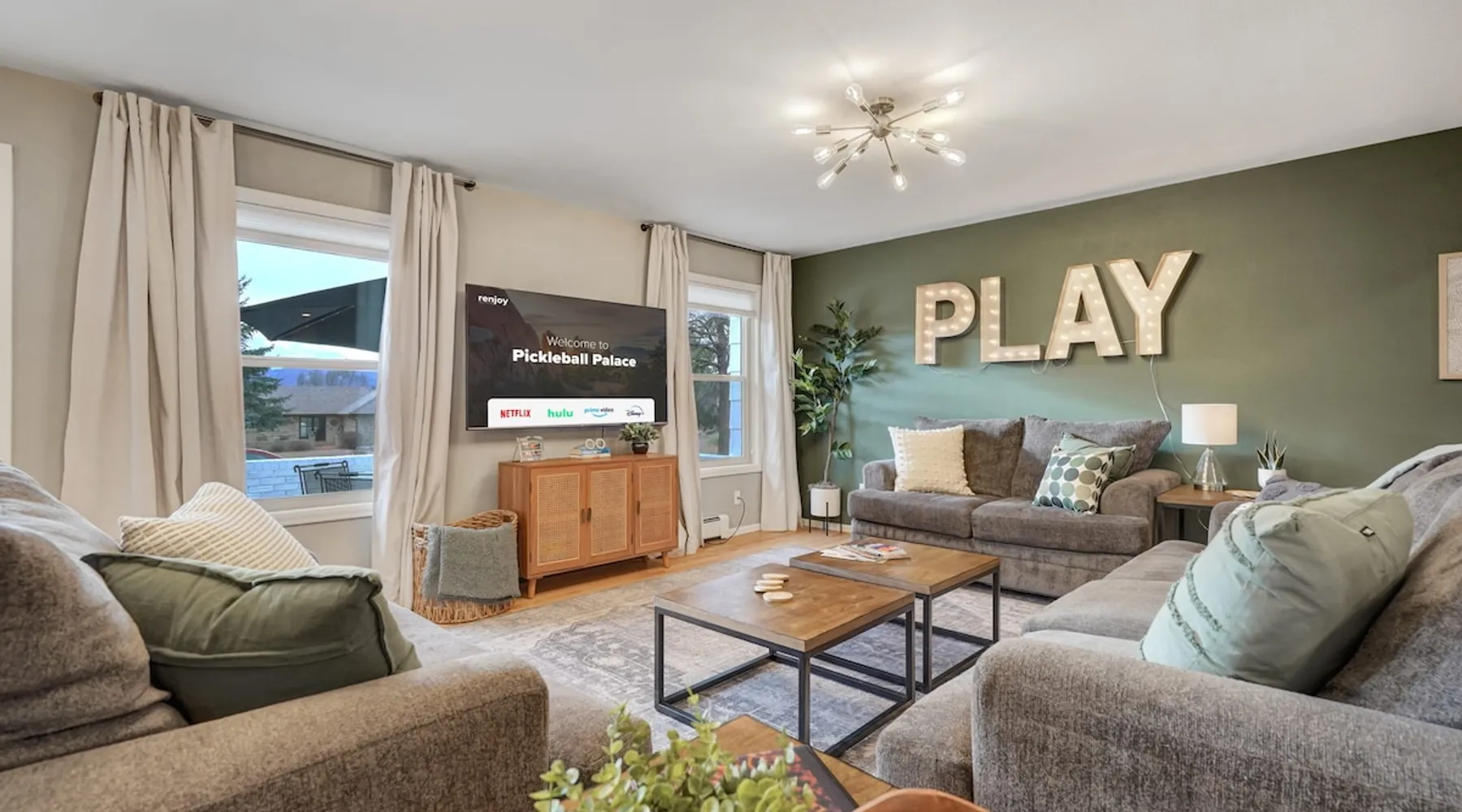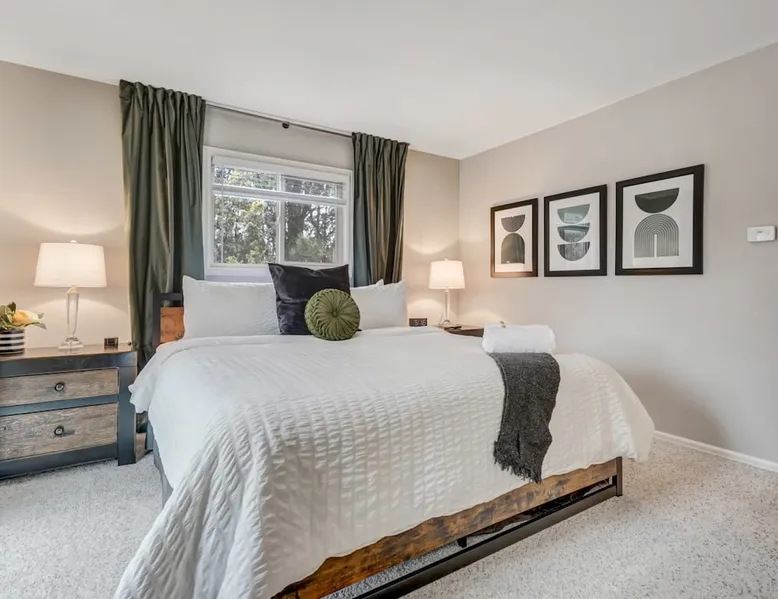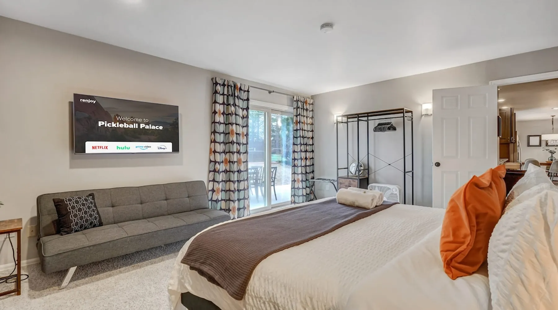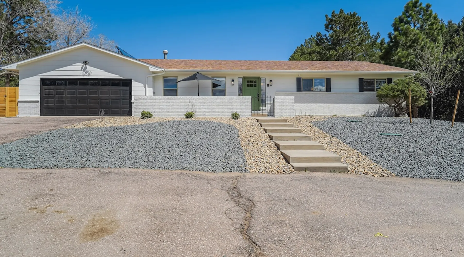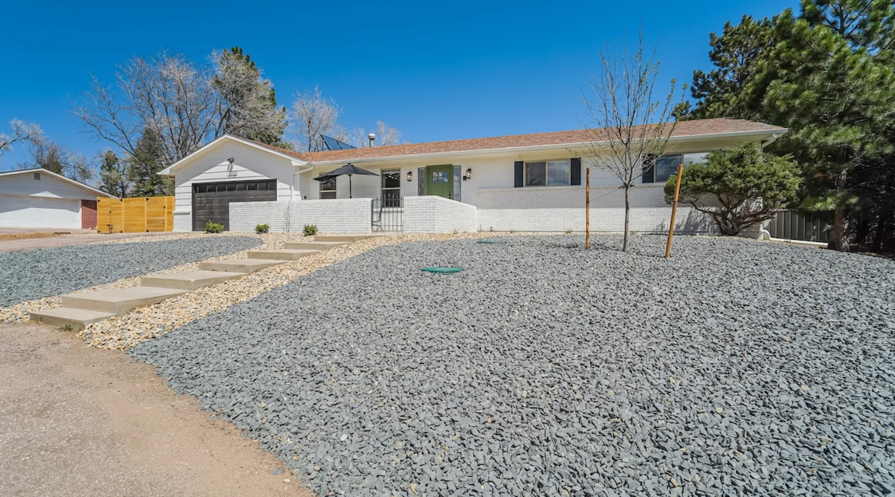 Welcome to Pickleball Palace in Colorado Springs! Our luxurious home is packed with things to do and ideal retreat for families and groups! 🏀 3 Pickleball courts & basketball hoop! 🔥 Hot tub, BBQ grill, fire pit, and outdoor dining w/ skyline view! 🕹️ Ping-pong, shuffleboard, and Smart TVs! 🏰 20-30 mins to Garden of the Gods & The Broadmoor! 🚶 Close to Mesa & Yucca trail at Palmer Park 🚀 Fast WiFi w/ workspace 🍽️ Fully-stocked kitchen Ready for a memorable stay? Book now! The space 🏡 Welcome to PICKLEBALL PALACE A meticulously designed haven catering to outdoor enthusiasts and design aficionados alike! Nestled in the heart of Colorado Springs, this exquisite residence offers an array of outdoor activities, expansive living spaces, and tasteful modern decor, ensuring an unforgettable stay. ✨ Inviting Living Spaces Upon entering, you'll be embraced by an open-plan living area featuring ample comfortable seating, large windows framing breathtaking mountain views, and chic furnishings. The spacious living room, equipped with a large Smart TV, provides the perfect spot to unwind after a day of exploration. Whether you're nestled on the couch or catching the game from the adjacent kitchen or dining area, this space invites relaxation and entertainment. Gather around for a night of board games and cherished moments! 🍳 Well-Equipped Kitchen A step away from the living area, the kitchen awaits with comprehensive amenities for culinary enthusiasts. From cooking utensils, cookware, bakeware, mixing bowls to measuring cups and a can opener, everything you need is at your fingertips. Whether you're the chef of the group or prefer observing from the island seat, the layout facilitates gathering with loved ones, friends, and colleagues. 🛏️ Bedroom Setup The unit comprises four bedrooms, each adorned with ultra-comfortable beds and luxurious linens for a restful night's sleep. King Master Bedroom: Features an en-suite bathroom fully stocked with premium amenities. Twin Bunkbed Bedroom: Equipped with three twin beds, ample floor space, and a built-in desk. Queen Bedroom: Includes twin bunkbeds and a twin trundle bed. Second King Master Bedroom: Offers a twin futon, a built-in fireplace, and a walk-out into the backyard. 👶 Kid-Friendly Amenities For your convenience, we provide a pack-n-play, sheets, and a high chair in the unit, making your stay with children more comfortable. 🔥 Outdoor Paradise The backyard unfolds as a haven for outdoor enthusiasts, offering an array of activities to captivate you for hours. PICKLEBALL PALACE boasts three full-size Pickleball courts, equipped with all necessary gear, a built-in basketball hoop, badminton equipment, ladder-ball, life-size Four-in-a-row, and Corn Hole! The garage game room is a treasure trove, featuring a ping pong table, shuffleboard, a large Smart TV, and a futon for additional relaxation. Ideal for family game nights or friendly competitions with friends. 🍽️ Al Fresco Dining and Relaxation Just beyond the kitchen, a spacious patio area beckons with abundant outdoor seating and a gas grill for delightful al fresco dining. Immerse yourself in the lively atmosphere of the court while enjoying a relaxing outdoor experience. Guest access 🔑During your stay, enjoy the entire property to include plenty of driveway parking, laundry machines in the unit that you can use at your convenience, and a large fully fenced backyard! Other things to note 📜 Rental Agreement: For a seamless booking experience, a Rental Agreement is required for all reservations. Once your reservation is confirmed, we’ll provide details for completing the agreement. 🔑 Check-In Process: For a seamless check-in experience, your unique code along with your check-in instructions will be updated into your personalized guidebook on the morning of your arrival. You’ll use this code for entry. ☕ Starter Supply: We’ve also prepared a starter supply that includes paper towels, coffee K-cups, toilet paper, shampoo, body wash, and plush white towels! We hope these amenities add an extra touch of comfort to your stay. ⏰ Unauthorized Late Checkout Fee: $20 per half-hour late. 💵 Additional Fees: For guests bringing dogs, there is a mandatory pet fee of $100 per dog, collected after booking. A maximum of 2 dogs is allowed per reservation unless otherwise approved. No other animals are permitted. Optional services, including early check-in, late check-out, and additional guests, can be arranged upon request and are subject to availability. These additional fees help cover the cost of reworking the schedule or adding an additional cleaner if needed. Please message us ahead of time for pricing and availability. 🏓 Pickleball Court: The pickleball court is seasonal—open for play most of the year, but it won’t be cleared of snow during the winter months. 🏠 Entire Palace: You get the ENTIRE palace to yourself! On over 1/2 acre of land, you'll have the perfect base camp for your group!