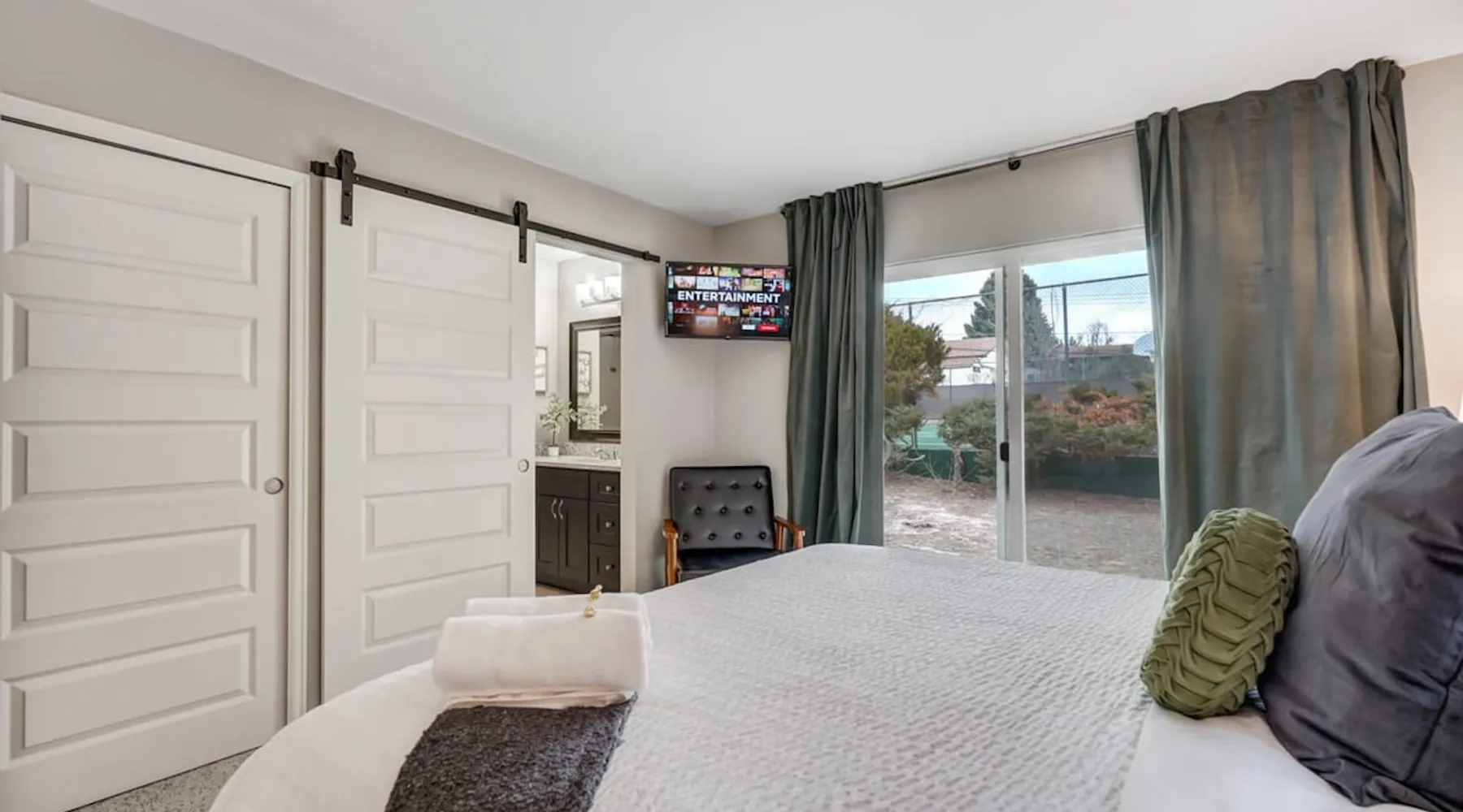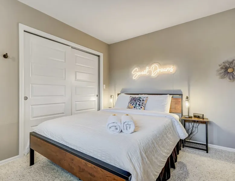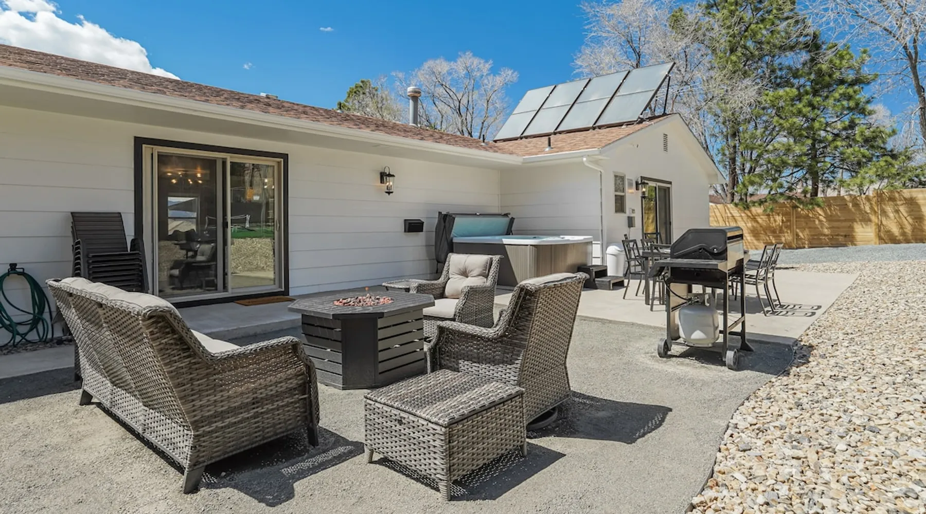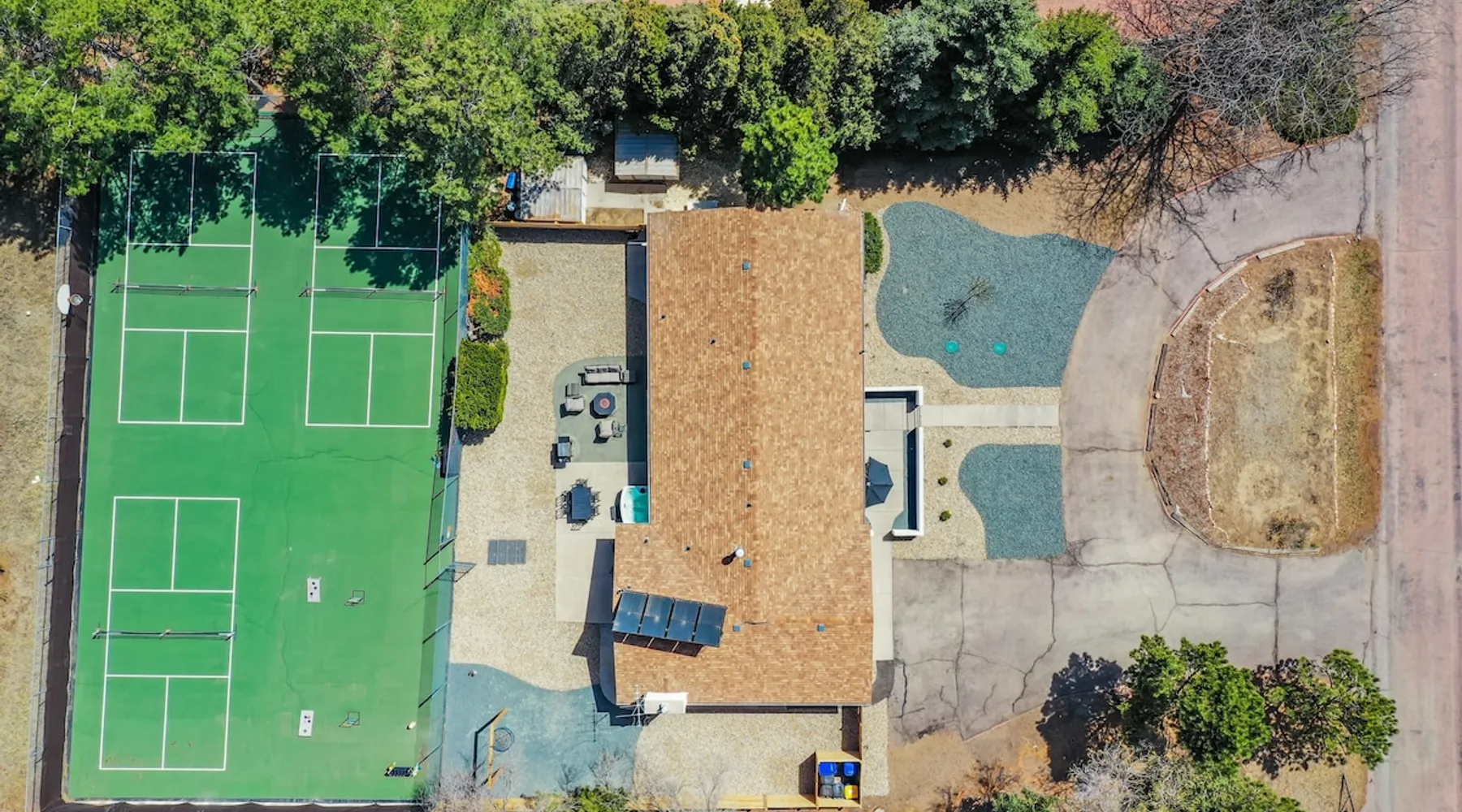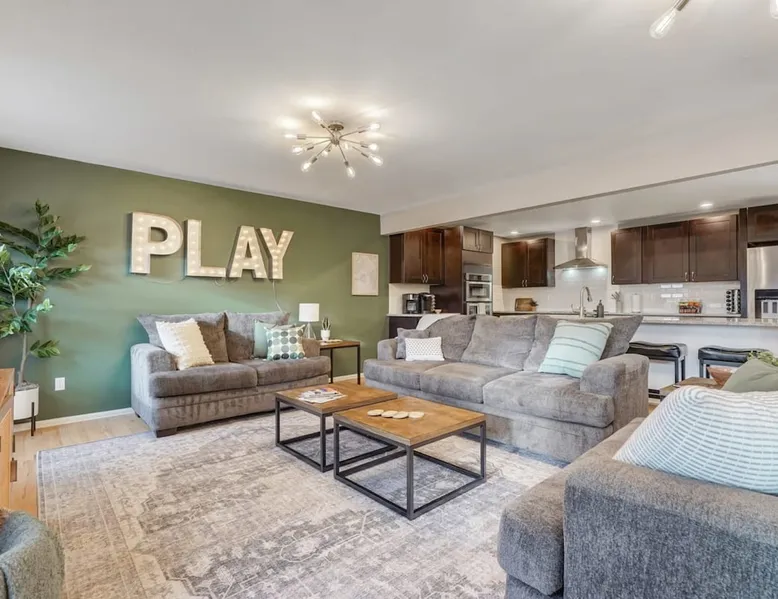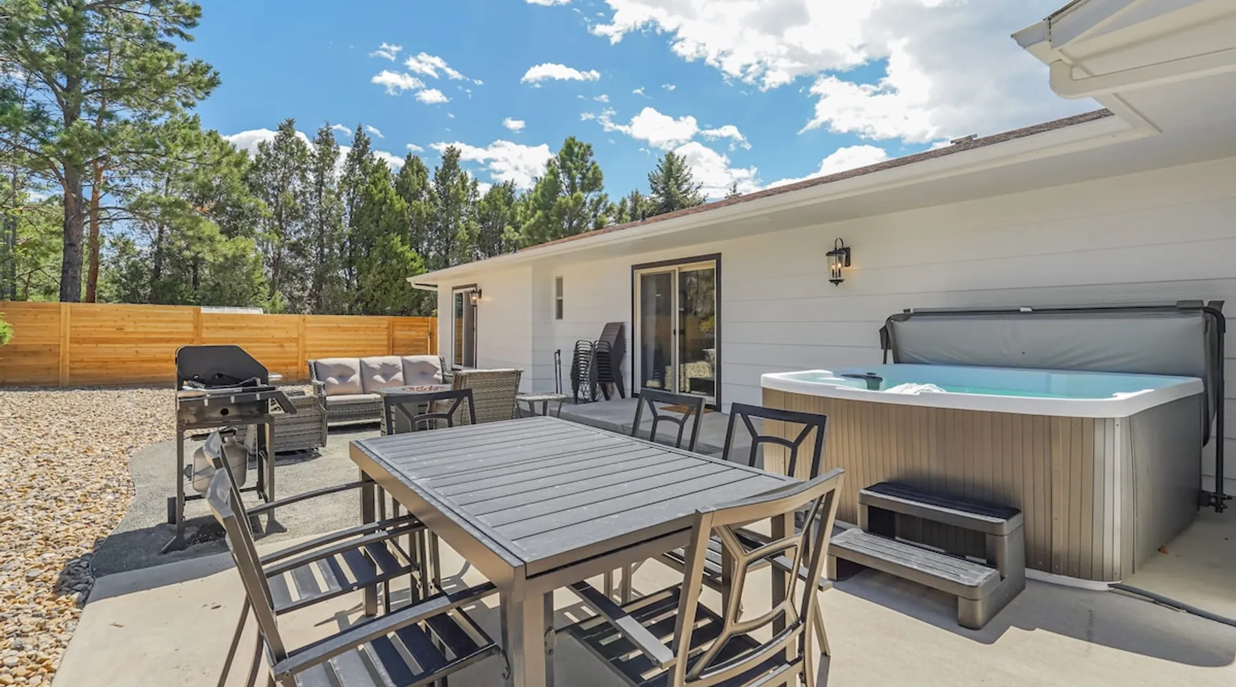 Welcome to Pickleball Palace in Colorado Springs! Our luxurious home is packed with things to do and ideal retreat for families and groups! 🏀 3 Pickleball courts & basketball hoop! 🔥 Hot tub, BBQ grill, fire pit, and outdoor dining w/ skyline view! 🕹️ Ping-pong, shuffleboard, and Smart TVs! 🏰 20-30 mins to Garden of the Gods & The Broadmoor! 🚶 Close to Mesa & Yucca trail at Palmer Park 🚀 Fast WiFi w/ workspace 🍽️ Fully-stocked kitchen Ready for a memorable stay? Book now! The space 🏡 Welcome to PICKLEBALL PALACE A meticulously designed haven catering to outdoor enthusiasts and design aficionados alike! Nestled in the heart of Colorado Springs, this exquisite residence offers an array of outdoor activities, expansive living spaces, and tasteful modern decor, ensuring an unforgettable stay. ✨ Inviting Living Spaces Upon entering, you'll be embraced by an open-plan living area featuring ample comfortable seating, large windows framing breathtaking mountain views, and chic furnishings. The spacious living room, equipped with a large Smart TV, provides the perfect spot to unwind after a day of exploration. Whether you're nestled on the couch or catching the game from the adjacent kitchen or dining area, this space invites relaxation and entertainment. Gather around for a night of board games and cherished moments! 🍳 Well-Equipped Kitchen A step away from the living area, the kitchen awaits with comprehensive amenities for culinary enthusiasts. From cooking utensils, cookware, bakeware, mixing bowls to measuring cups and a can opener, everything you need is at your fingertips. Whether you're the chef of the group or prefer observing from the island seat, the layout facilitates gathering with loved ones, friends, and colleagues. 🛏️ Bedroom Setup The unit comprises four bedrooms, each adorned with ultra-comfortable beds and luxurious linens for a restful night's sleep. King Master Bedroom: Features an en-suite bathroom fully stocked with premium amenities. Twin Bunkbed Bedroom: Equipped with three twin beds, ample floor space, and a built-in desk. Queen Bedroom: Includes twin bunkbeds and a twin trundle bed. Second King Master Bedroom: Offers a twin futon, a built-in fireplace, and a walk-out into the backyard. 👶 Kid-Friendly Amenities For your convenience, we provide a pack-n-play, sheets, and a high chair in the unit, making your stay with children more comfortable. 🔥 Outdoor Paradise The backyard unfolds as a haven for outdoor enthusiasts, offering an array of activities to captivate you for hours. PICKLEBALL PALACE boasts three full-size Pickleball courts, equipped with all necessary gear, a built-in basketball hoop, badminton equipment, ladder-ball, life-size Four-in-a-row, and Corn Hole! The garage game room is a treasure trove, featuring a ping pong table, shuffleboard, a large Smart TV, and a futon for additional relaxation. Ideal for family game nights or friendly competitions with friends. 🍽️ Al Fresco Dining and Relaxation Just beyond the kitchen, a spacious patio area beckons with abundant outdoor seating and a gas grill for delightful al fresco dining. Immerse yourself in the lively atmosphere of the court while enjoying a relaxing outdoor experience. Guest access 🔑During your stay, enjoy the entire property to include plenty of driveway parking, laundry machines in the unit that you can use at your convenience, and a large fully fenced backyard! Other things to note 📜 Rental Agreement: For a seamless booking experience, a Rental Agreement is required for all reservations. Once your reservation is confirmed, we’ll provide details for completing the agreement. 🔑 Check-In Process: For a seamless check-in experience, your unique code along with your check-in instructions will be updated into your personalized guidebook on the morning of your arrival. You’ll use this code for entry. ☕ Starter Supply: We’ve also prepared a starter supply that includes paper towels, coffee K-cups, toilet paper, shampoo, body wash, and plush white towels! We hope these amenities add an extra touch of comfort to your stay. ⏰ Unauthorized Late Checkout Fee: $20 per half-hour late. 💵 Additional Fees: For guests bringing dogs, there is a mandatory pet fee of $100 per dog, collected after booking. A maximum of 2 dogs is allowed per reservation unless otherwise approved. No other animals are permitted. Optional services, including early check-in, late check-out, and additional guests, can be arranged upon request and are subject to availability. These additional fees help cover the cost of reworking the schedule or adding an additional cleaner if needed. Please message us ahead of time for pricing and availability. 🏓 Pickleball Court: The pickleball court is seasonal—open for play most of the year, but it won’t be cleared of snow during the winter months. 🏠 Entire Palace: You get the ENTIRE palace to yourself! On over 1/2 acre of land, you'll have the perfect base camp for your group!