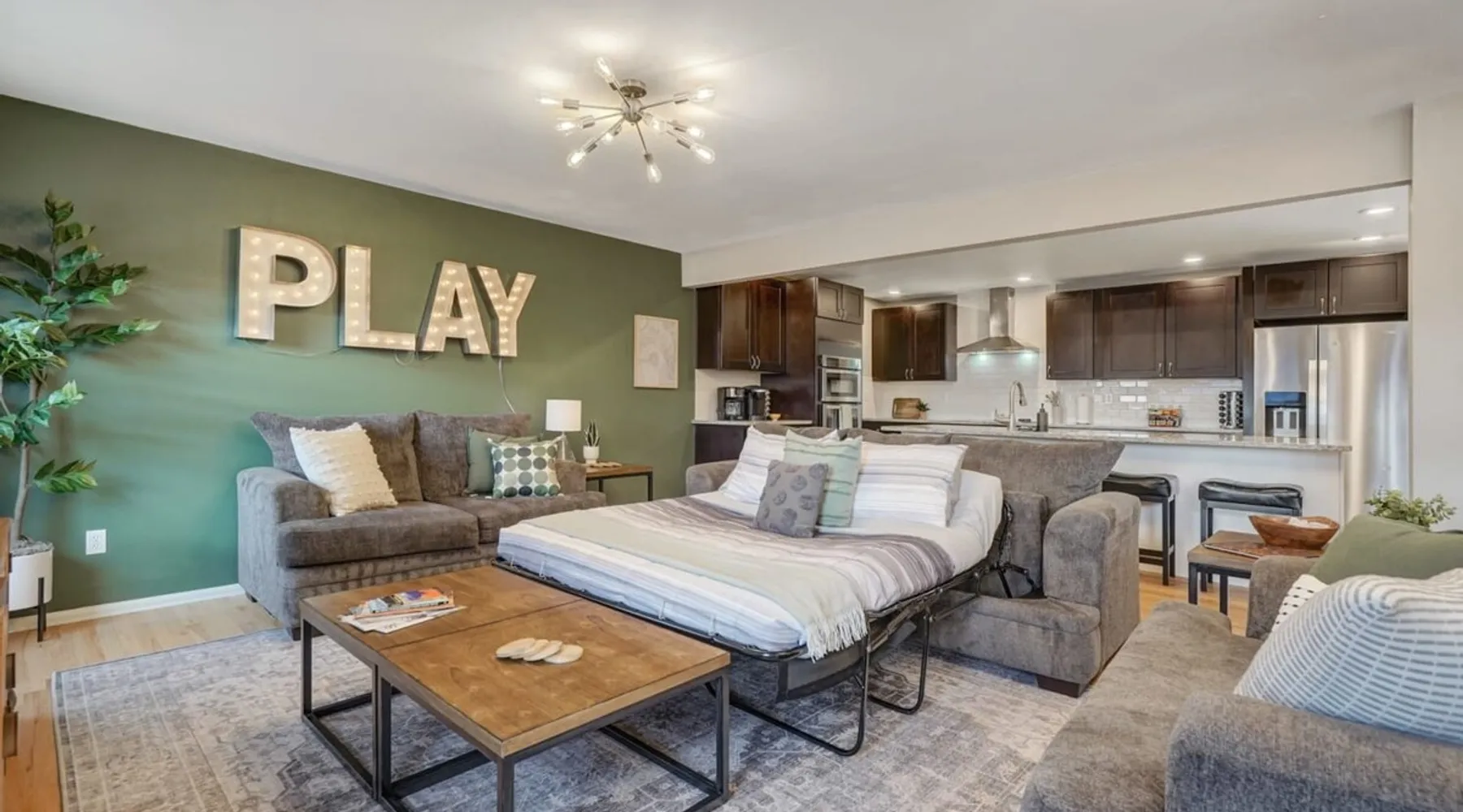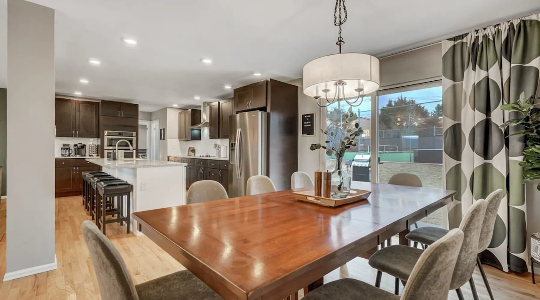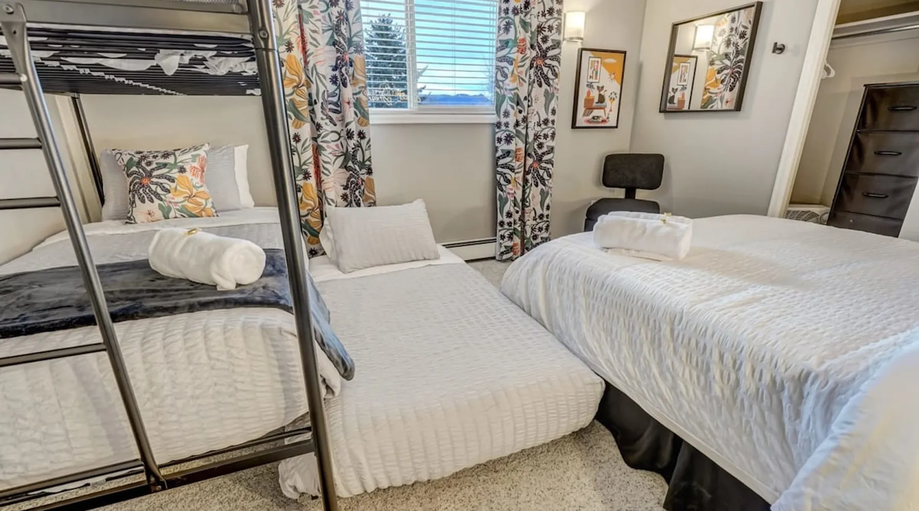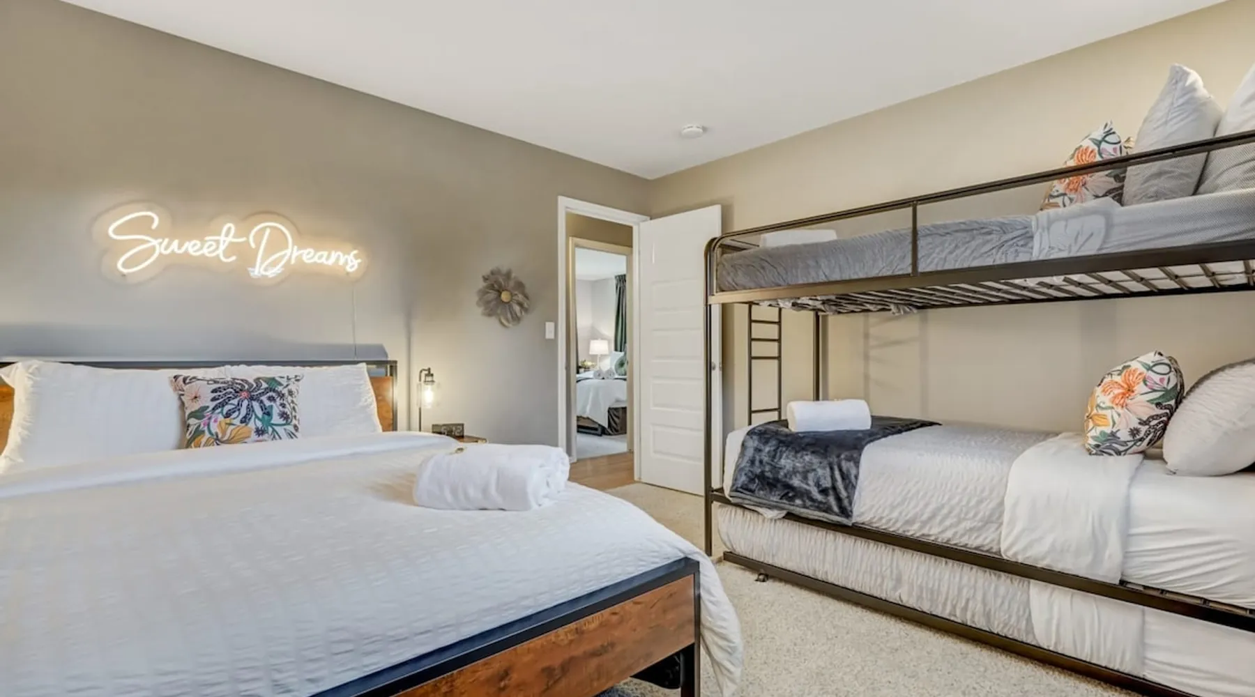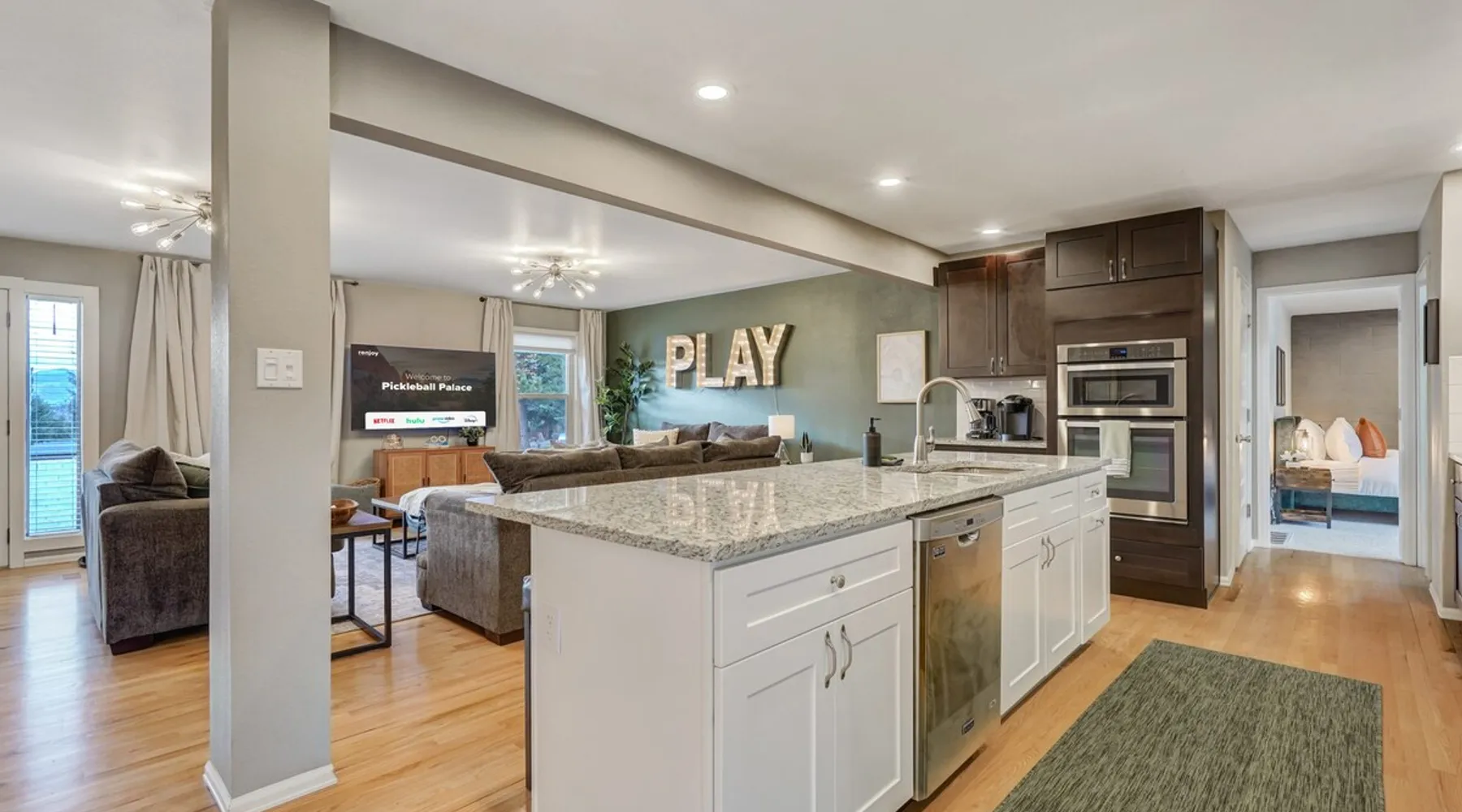 Welcome to Pickleball Palace in Colorado Springs! Our luxurious home is packed with things to do and ideal retreat for families and groups! 🏀 3 Pickleball courts & basketball hoop! 🔥 Hot tub, BBQ grill, fire pit, and outdoor dining w/ skyline view! 🕹️ Ping-pong, shuffleboard, and Smart TVs! 🏰 20-30 mins to Garden of the Gods & The Broadmoor! 🚶 Close to Mesa & Yucca trail at Palmer Park 🚀 Fast WiFi w/ workspace 🍽️ Fully-stocked kitchen Ready for a memorable stay? Book now! The space 🏡 Welcome to PICKLEBALL PALACE A meticulously designed haven catering to outdoor enthusiasts and design aficionados alike! Nestled in the heart of Colorado Springs, this exquisite residence offers an array of outdoor activities, expansive living spaces, and tasteful modern decor, ensuring an unforgettable stay. ✨ Inviting Living Spaces Upon entering, you'll be embraced by an open-plan living area featuring ample comfortable seating, large windows framing breathtaking mountain views, and chic furnishings. The spacious living room, equipped with a large Smart TV, provides the perfect spot to unwind after a day of exploration. Whether you're nestled on the couch or catching the game from the adjacent kitchen or dining area, this space invites relaxation and entertainment. Gather around for a night of board games and cherished moments! 🍳 Well-Equipped Kitchen A step away from the living area, the kitchen awaits with comprehensive amenities for culinary enthusiasts. From cooking utensils, cookware, bakeware, mixing bowls to measuring cups and a can opener, everything you need is at your fingertips. Whether you're the chef of the group or prefer observing from the island seat, the layout facilitates gathering with loved ones, friends, and colleagues. 🛏️ Bedroom Setup The unit comprises four bedrooms, each adorned with ultra-comfortable beds and luxurious linens for a restful night's sleep. King Master Bedroom: Features an en-suite bathroom fully stocked with premium amenities. Twin Bunkbed Bedroom: Equipped with three twin beds, ample floor space, and a built-in desk. Queen Bedroom: Includes twin bunkbeds and a twin trundle bed. Second King Master Bedroom: Offers a twin futon, a built-in fireplace, and a walk-out into the backyard. 👶 Kid-Friendly Amenities For your convenience, we provide a pack-n-play, sheets, and a high chair in the unit, making your stay with children more comfortable. 🔥 Outdoor Paradise The backyard unfolds as a haven for outdoor enthusiasts, offering an array of activities to captivate you for hours. PICKLEBALL PALACE boasts three full-size Pickleball courts, equipped with all necessary gear, a built-in basketball hoop, badminton equipment, ladder-ball, life-size Four-in-a-row, and Corn Hole! The garage game room is a treasure trove, featuring a ping pong table, shuffleboard, a large Smart TV, and a futon for additional relaxation. Ideal for family game nights or friendly competitions with friends. 🍽️ Al Fresco Dining and Relaxation Just beyond the kitchen, a spacious patio area beckons with abundant outdoor seating and a gas grill for delightful al fresco dining. Immerse yourself in the lively atmosphere of the court while enjoying a relaxing outdoor experience. Guest access 🔑During your stay, enjoy the entire property to include plenty of driveway parking, laundry machines in the unit that you can use at your convenience, and a large fully fenced backyard! Other things to note 📜 Rental Agreement: For a seamless booking experience, a Rental Agreement is required for all reservations. Once your reservation is confirmed, we’ll provide details for completing the agreement. 🔑 Check-In Process: For a seamless check-in experience, your unique code along with your check-in instructions will be updated into your personalized guidebook on the morning of your arrival. You’ll use this code for entry. ☕ Starter Supply: We’ve also prepared a starter supply that includes paper towels, coffee K-cups, toilet paper, shampoo, body wash, and plush white towels! We hope these amenities add an extra touch of comfort to your stay. ⏰ Unauthorized Late Checkout Fee: $20 per half-hour late. 💵 Additional Fees: For guests bringing dogs, there is a mandatory pet fee of $100 per dog, collected after booking. A maximum of 2 dogs is allowed per reservation unless otherwise approved. No other animals are permitted. Optional services, including early check-in, late check-out, and additional guests, can be arranged upon request and are subject to availability. These additional fees help cover the cost of reworking the schedule or adding an additional cleaner if needed. Please message us ahead of time for pricing and availability. 🏓 Pickleball Court: The pickleball court is seasonal—open for play most of the year, but it won’t be cleared of snow during the winter months. 🏠 Entire Palace: You get the ENTIRE palace to yourself! On over 1/2 acre of land, you'll have the perfect base camp for your group!