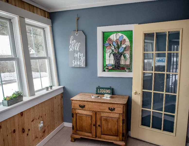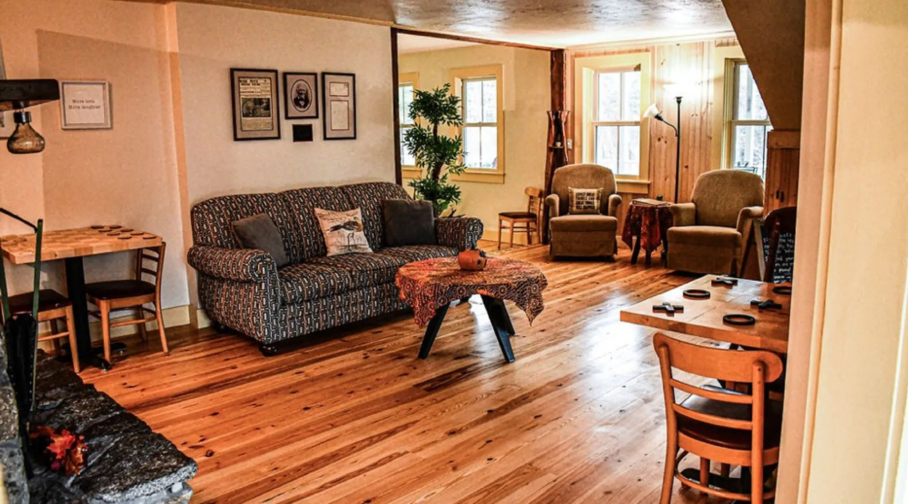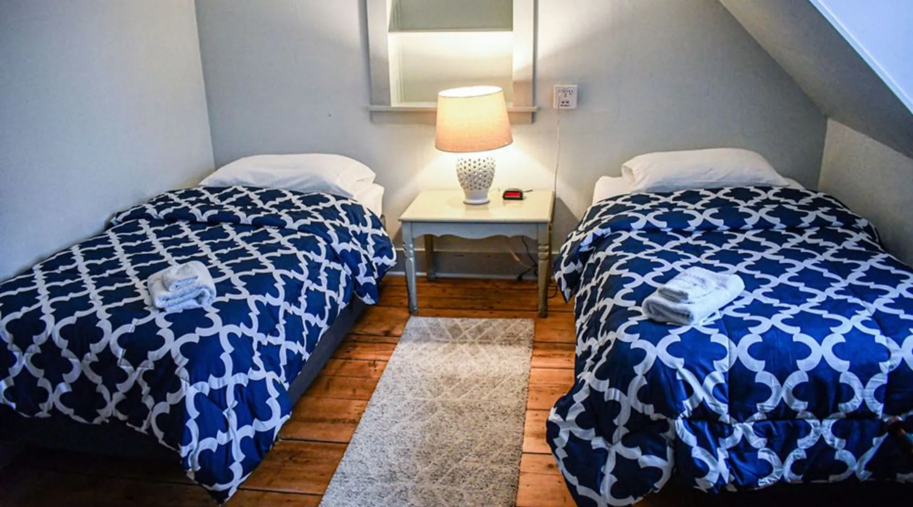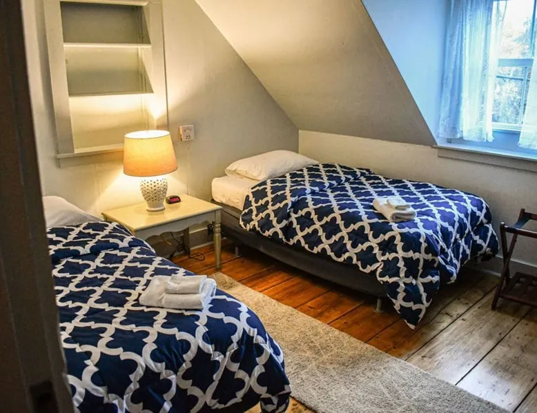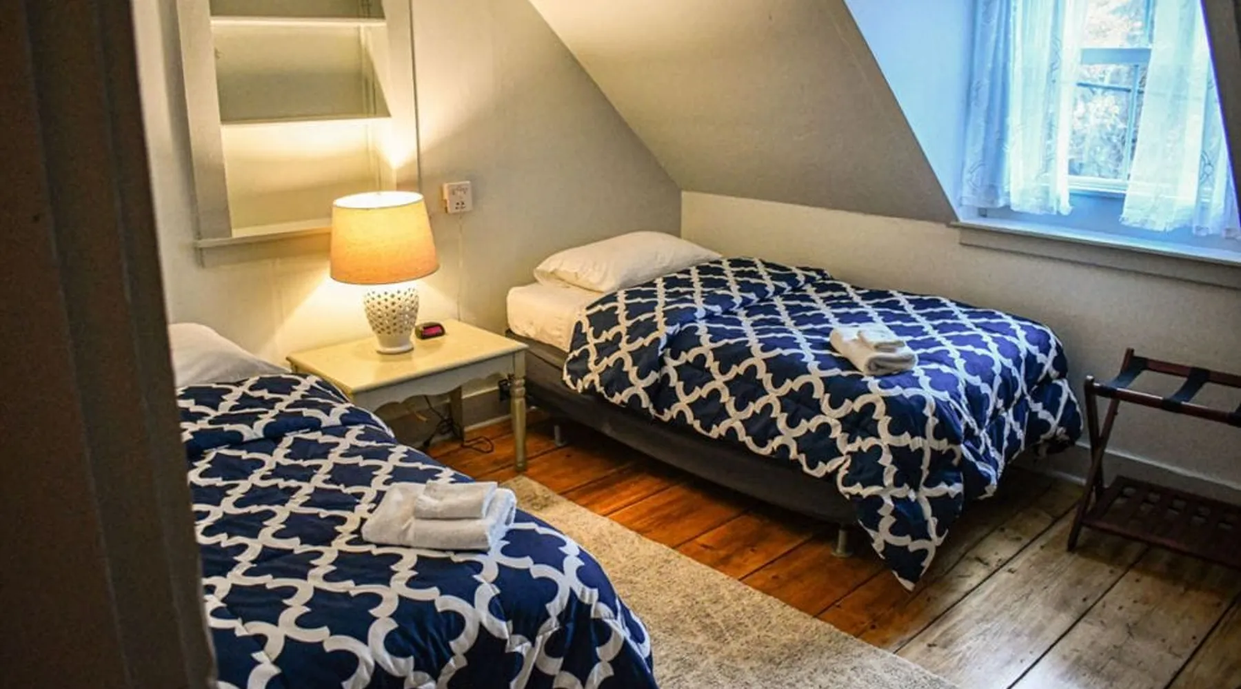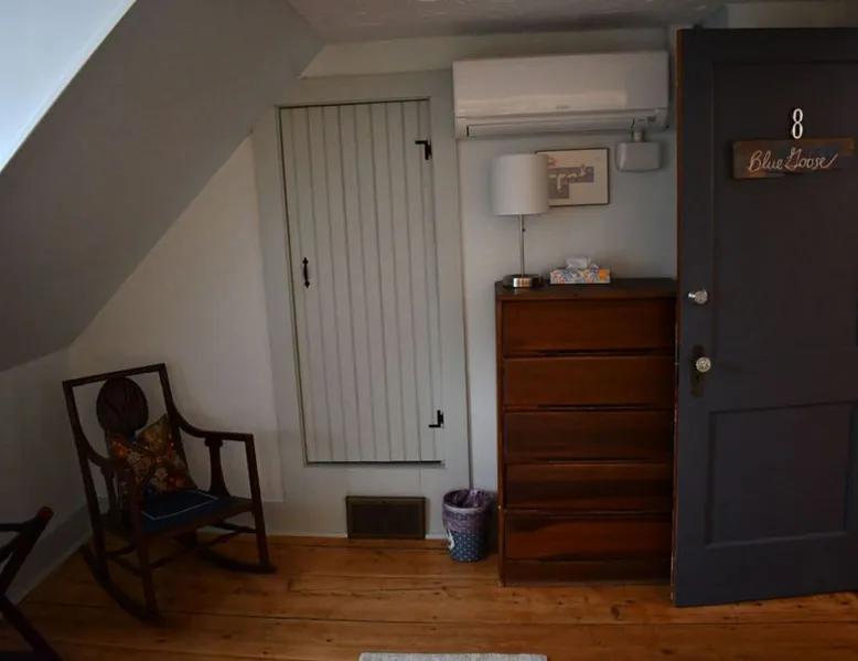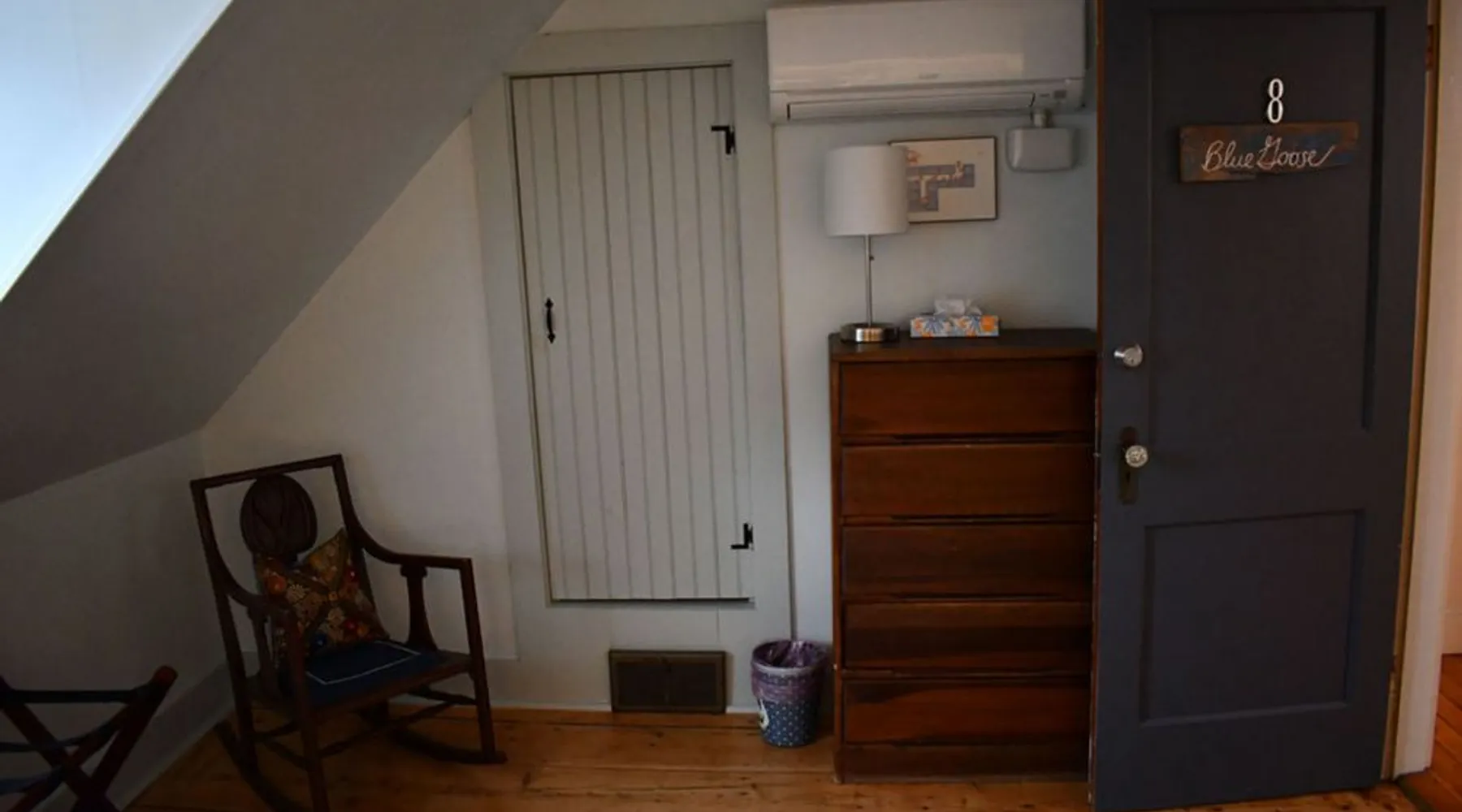 #08 Blue Goose / Brook Road Inn The space Only 9 min to Mount Sunapee; the Blue Goose Room is one of 10 rooms in the historic Brook Road Inn. The rooms are rustic, in the building's historic style, and the Blue Goose Room offers two twin beds and a private bath. The door locks from both the inside and outside for privacy and safety. The room is located up a narrow staircase and shares a hall with 8 other guest rooms. The bathroom is private and located across the hall. The room has a closet, dresser as well as luggage racks. This is a non-smoking property. This room has limited power outlets, The inn was built in 1837. Recently all of the rooms have been renovated to preserve the inn's original farmhouse character. Currently there is no restaurant at the inn. However, there is a shared area with a fridge, toaster, and microwave. There is a coffee bar area with a water bubbler. Enjoy 2 spacious dining areas to eat while staying at the inn. Although there is 24/7 video surveillance, staff isn’t on the property at all times. The front door is locked 24/7 and can only be unlocked with a code that you will receive in your check-in instructions that will be sent before your stay. Guests must be comfortable being self-sufficient from check-in to check-out. During the warm season enjoy the deck, equipped with a grill. Operation License: 103537 FEATURES AND AMENITIES -Full bedroom/bathroom essentials provided -Heating or air conditioning depending on season (air conditioning june 1st- september 31st) -Wi-Fi 25/2mb -Outlet covers available upon request -Highchair available upon request -Crib available upon request -Luggage drop-off allowed: For guests' convenience when they have early arrival or late departure -Lock on bedroom door -Private room can be locked for safety and privacy -Window shades -Dishes and silverware -Shared area with fridge, toaster, and microwave -Hot water -Free parking on premises PARKING Free parking on premises THINGS TO KNOW - Please note that a $40 refundable damage deposit will be required. LOCAL ATTRACTIONS -Mount Sunapee - Exploring the Resort, Ski & Snowboard lessons, Epic Coverage -One of the state’s best-kept secrets, Gunnison Lake, fondly called “The Goshen Ocean” -Ruth LeClair Memorial Trail, a three-mile loop around Gunnison Lake -Balthazar’s Ice Shack -Tippicanoe Campground -Sanctuary farm Guest access Guests have full access to the property, their booked room(s), and shared spaces. Please only use your room and the shared spaces, and do not enter other guest’s rooms. Kitchen use is limited to the microwave, toaster, and electric burner. Please wash any dishes that you use. Other things to note • State Identification Card or Driver License copy will be requested upon booking • Please be delicate as you move about the inn. Also, do not allow any children to be unattended at any time