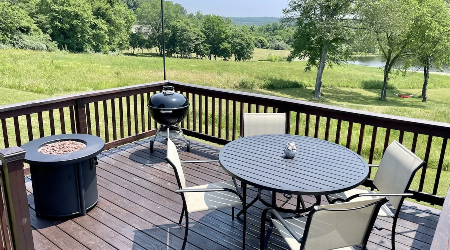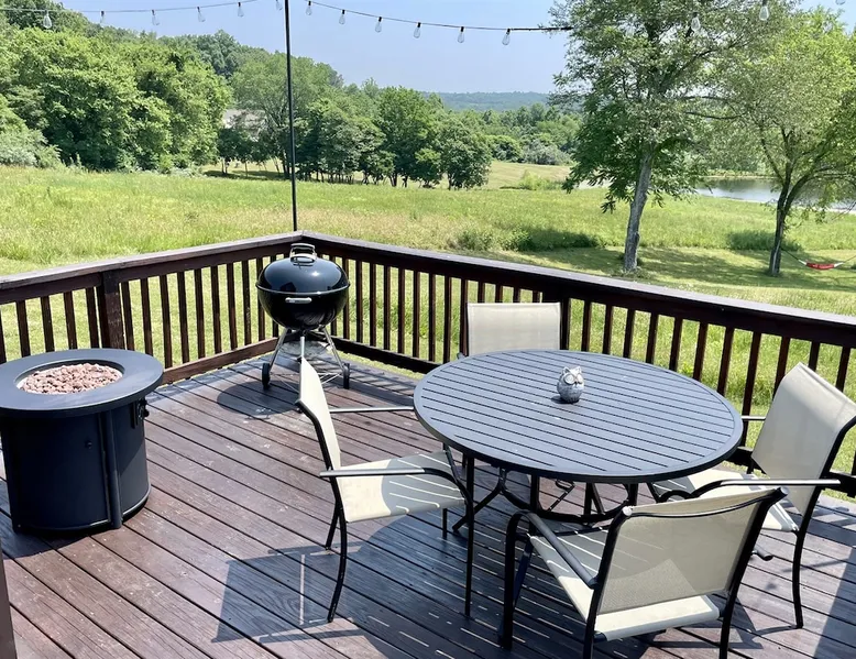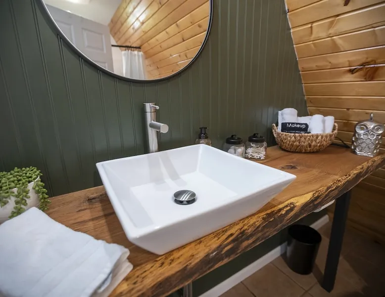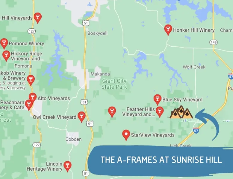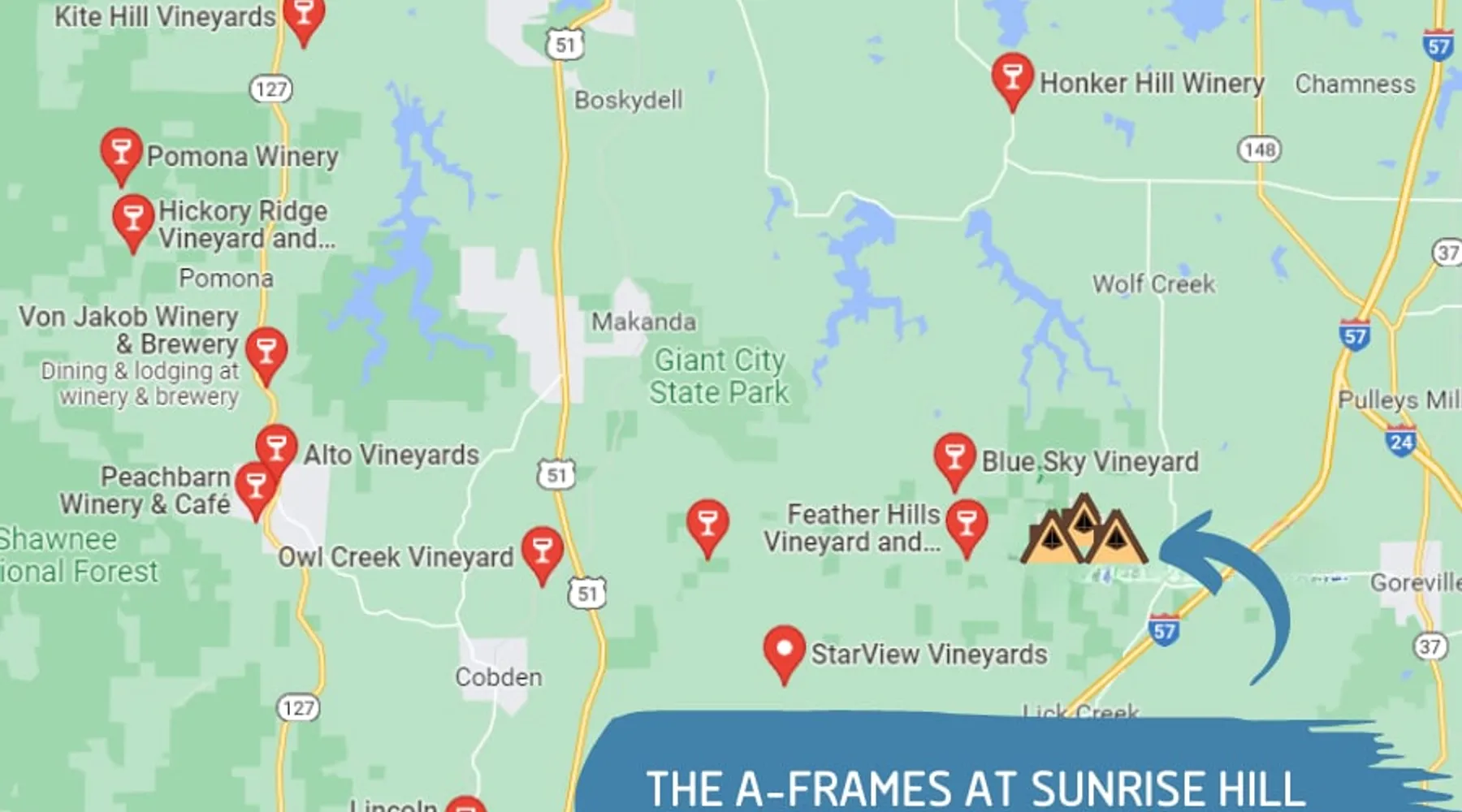The White Oak Cabin overlooks a small cluster of trees and our 6 acre lake. Perfectly positioned to catch the sunrise, couples or families can enjoy the property with a stocked lake, group area with firepit or relax on the cabin’s walkout deck. Pet friendly and minutes from hiking & wineries. SLEEPING ARRANGEMENTS: 1 Queen bed in lower bedroom 1 Queen bed in the loft AMENITY HIGHLIGHTS: Full-sized, fully furnished kitchen (no oven, but has cooktop) Smart TV WIFI Charcoal Grill- we provide utensils. BYO charcoal RECREATION HIGHLIGHTS: Shawnee National Forest- You’re literally in the heart of it and have access to multiple trailheads within minutes. Shawnee Bluffs Canopy Tours ~ across the street from the cabins Panther's Den < 5 minutes River 2 River Trail < 10 minutes Rolling Oak Alpaca Ranch < 10 minutes Ferne Clyffe State Park ~ 15 minutes Giant City State Park ~ 20 minutes Devil’s Kitchen Lake and Little Grassy Lake ~ 20 minutes Crab Orchard Wilderness ~ 25 minutes Lake of Egypt < 20 minutes Makanda Marion Golf < 25 minutes Makanda, IL ~ 25 minutes Ozark, IL ~ 30 minutes Tunnel Hill State Trail ~ 35 minutes Rendleman Orchard (with Zinnia field!) ~ 30 minutes Lake of Egypt < 20 minutes Burden Falls ~ 45 minutes Jackson Falls ~ 45 minutes Bell Smith Springs - 50 minutes WINERIES & MORE: Blue Sky Vineyard & Feather Hills Winery < 10 minutes Starview Vineyards ~ 12 minutes Katy Lynn Distillery < 20 minutes Honker Hill Winery & Wichmann Vineyard < 20 minutes Owl Creek Vineyard & Lincoln Heritage Winery ~ 20 minutes Alto Vineyards & Peachbarn Winery & Cafe ~30 minutes Von Jakob Winery & Brewery ~ 30 minutes Guests have access to the entire property to walk, fish, and stargaze. Please note: Two other cabins are on property. Guest can always reach us by text, phone, on App or on social @ Southern Illinois Vacation Rentals. RECREATION HIGHLIGHTS Shawnee National Forest- You’re literally in the heart of it and have access to multiple trailheads within minutes. Shawnee Bluffs Canopy Tours ~ across the street from the cabins Panther's Den < 5 minutes River 2 River Trail < 10 minutes Rolling Oak Alpaca Ranch < 10 minutes Ferne Clyffe State Park ~ 15 minutes Giant City State Park ~ 20 minutes Devil’s Kitchen Lake and Little Grassy Lake ~ 20 minutes Crab Orchard Wilderness ~ 25 minutes Lake of Egypt < 20 minutes Makanda Marion Golf < 25 minutes Makanda, IL ~ 25 minutes Ozark, IL ~ 30 minutes Tunnel Hill State Trail ~ 35 minutes Rendleman Orchard (with Zinnia field!) ~ 30 minutes Lake of Egypt < 20 minutes Burden Falls ~ 45 minutes Jackson Falls ~ 45 minutes Bell Smith Springs - 50 minutes WINERIES & MORE Blue Sky Vineyard & Feather Hills Winery < 10 minutes Starview Vineyards ~ 12 minutes Katy Lynn Distillery < 20 minutes Honker Hill Winery & Wichmann Vineyard < 20 minutes Owl Creek Vineyard & Lincoln Heritage Winery ~ 20 minutes Alto Vineyards & Peachbarn Winery & Cafe ~30 minutes Von Jakob Winery & Brewery ~ 30 minutes Just 10 minutes off I-57; The White Oak at Sunrise Hill Cabins is in an ideal location for those new to Southern Illinois. KNOW BEFORE YOU GO: Check in is after 4PM. Check out is before 11AM. $40.00 pet fee applicable, per pet, per stay. Max 2 pets Guests not staying overnight are welcomed, loud, disruptive parties are not Check out instructions: We ask that you wash your dishes and pick up any trash left outdoors including cigarette butts Total of 3 cabins and 6 acre lake sits on 30+ acres Inventory: We provide a "starter package" of inventory for our cabin: 3 rolls of T.P. and 1 full roll of paper towels.