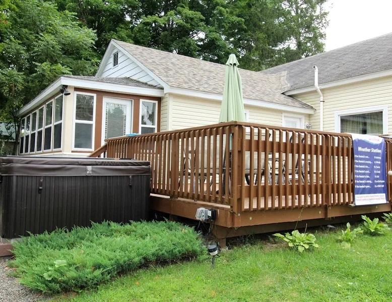 Welcome to Avonmora, your perfect getaway nestled on the banks of the picturesque Susquehanna River and Goodyear Lake waterway, which is the longest river on the US eastern coast.. This spacious enitre home offers the ideal blend of comfort, relaxation, and fun, making it the perfect spot for families or groups of friends looking to unwind and create lasting memories. There is a cozy fire pit by the water and a multi-level deck/patio combination for dining and seating, complete with a HOT TUB! The space This desirable vacation property is just: - 10.4 miles to Cooperstown Dreams Park - 12.9 miles to All Star Village - 15.6 miles to the National Baseball Hall of Fame Guest access Step outside to enjoy the serene beauty of the riverfront, where you'll find a cozy fire pit, perfect for evening conversations under the stars. The multi-level deck and patio offer plenty of space for outdoor dining or lounging, while the pièce de résistance—a hot tub overlooking the water—provides the ultimate relaxation after a day of adventure. Inside this 2,125 square foot home you'll find a thoughtfully designed home with plenty of room for everyone. The sunroom, living room, and dining area create an inviting space for gathering, while the game room in the basement, complete with a foosball table and large flat-screen TV, promises hours of entertainment. With updated hardwood and tile floors throughout, you'll feel right at home in this stylish retreat. With 5 bedrooms, Avonmora comfortably sleeps 9-10 guests. The first floor features two spacious king bedrooms, each with a private bath, and a den/bedroom with twin beds. Upstairs, two additional queen bedrooms, each with its own en-suite bath, offer peaceful, restful accommodations. The five bathrooms ensure everyone has plenty of space to get ready, and with two on-site laundry facilities, convenience is always at hand. For your entertainment, there are 7 smart Roku TVs—including a 55" flat-screen in the living room, and high-speed Wi-Fi to keep you connected. The home also comes equipped with 2 kayaks for exploring the water and central air-conditioning to keep you cool during the warmer months. Whether you're relaxing by the fire, soaking in the hot tub, or enjoying a game of foosball, Avonmora offers the perfect setting for your next unforgettable vacation. Other things to note - No smoking - No pets - No team parties or large gatherings - Building security rules require a signed Renter Agreement, and the completion of our Guest Registration form. - A security/damage deposit hold will placed on your credit card in the amount of $500 apart from anything held by Airbnb. It will be automatically held on a credit card you will need to provide to the host when completing your reservation. In lieu of a credit card hold, you may pay cash at check-in.
