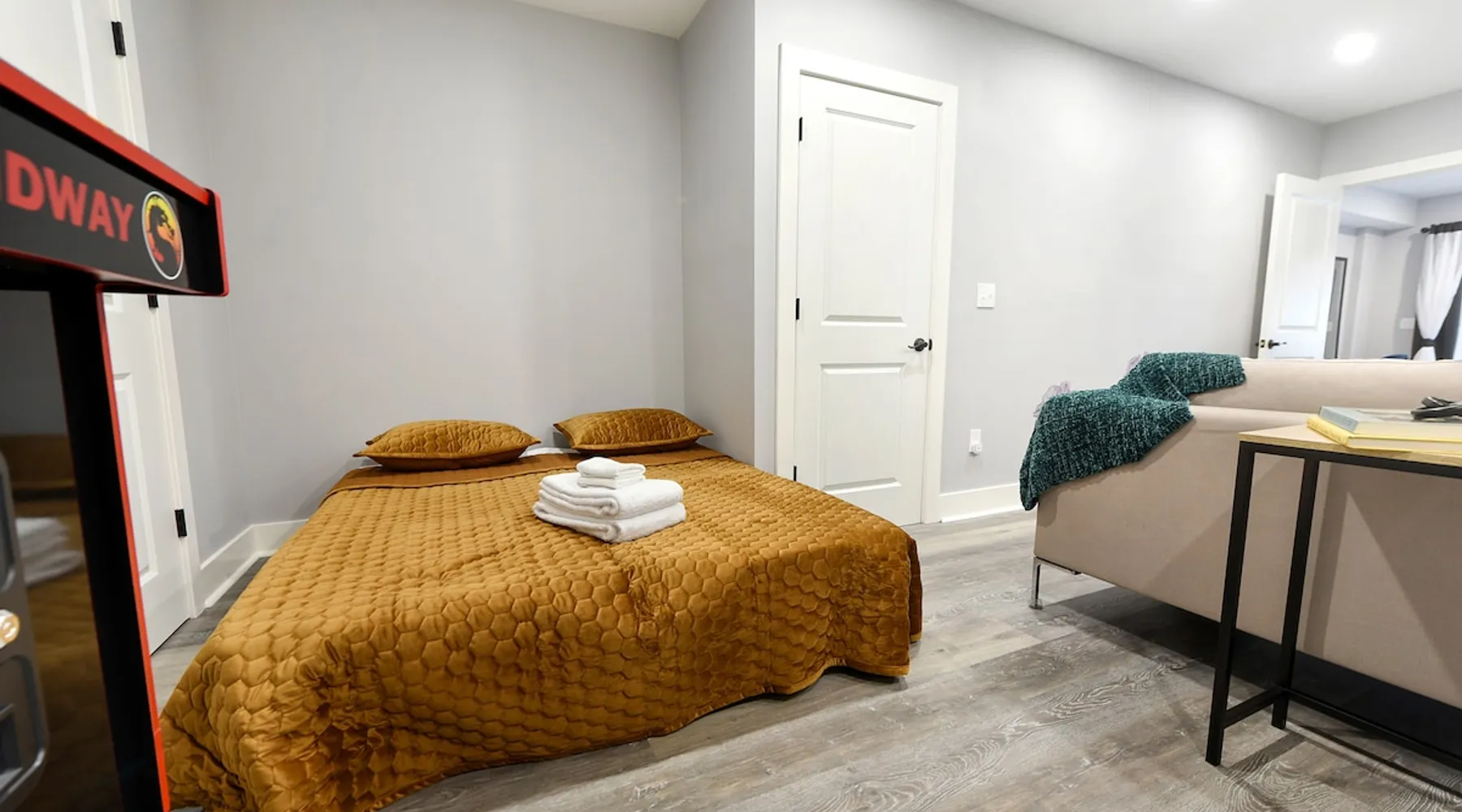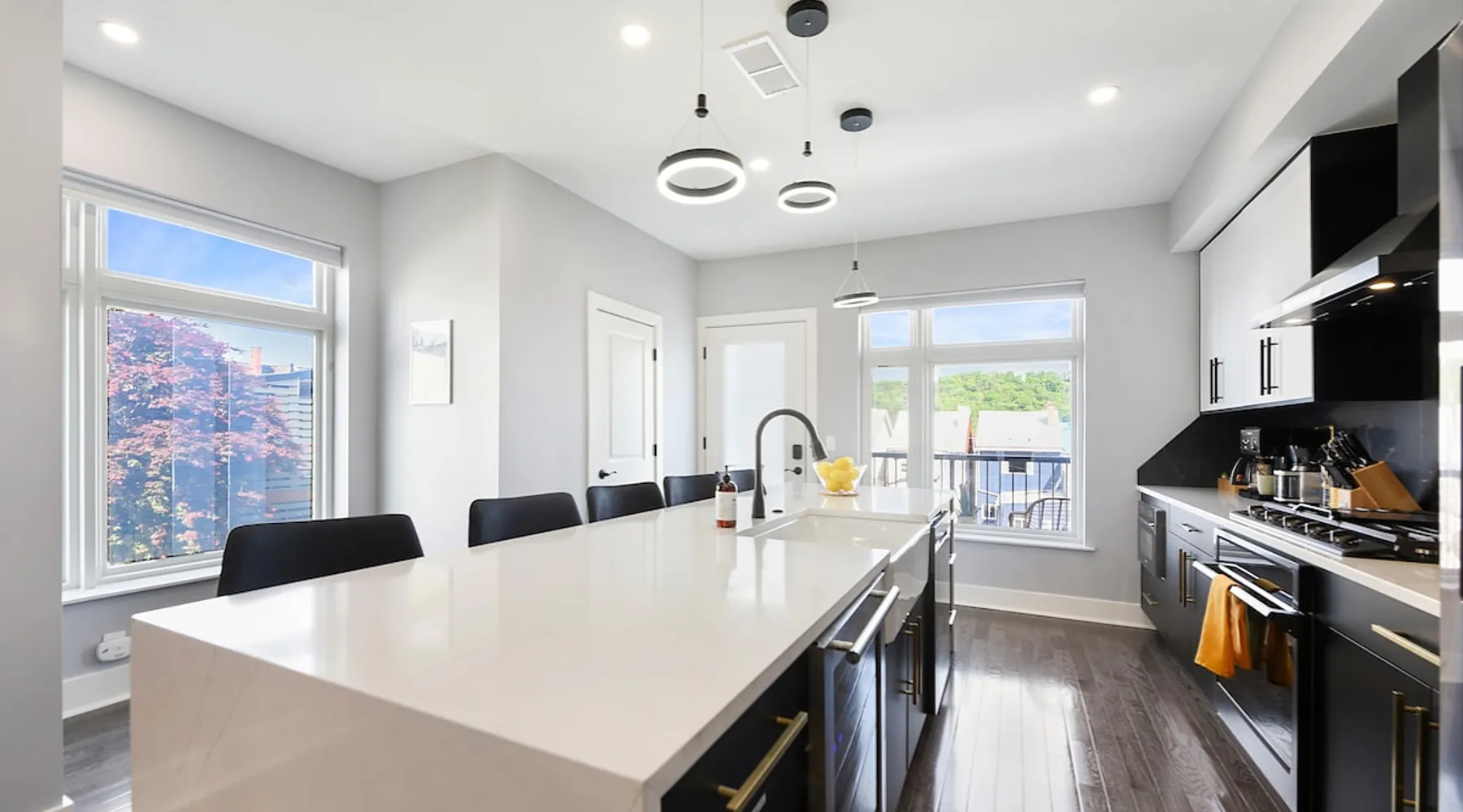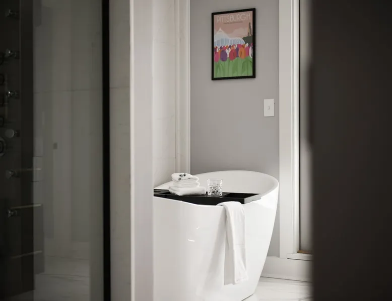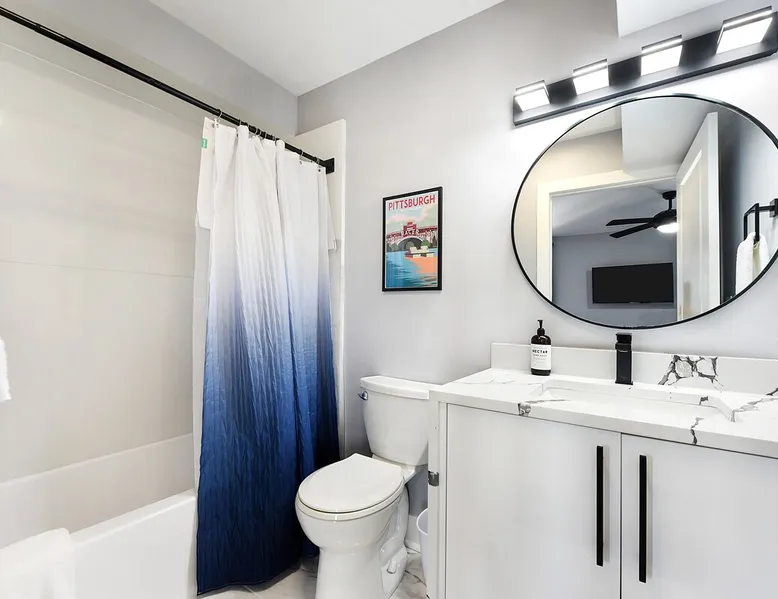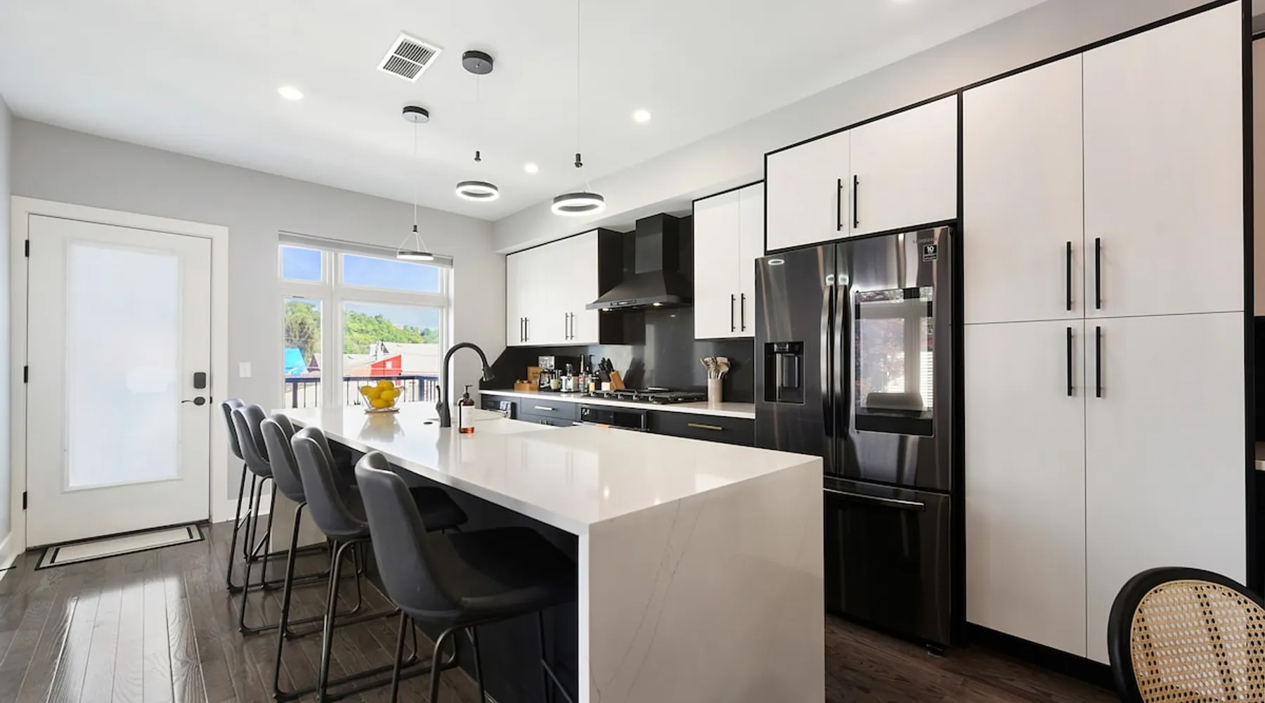 Walk in & say wow! This amazing property features outdoor space galore, containing 4 bedrooms with private balconies, 3 full bathrooms & 2 half bathrooms, a chef's Samsung kitchen, rooftop deck, fire pit on the patio, and more! At over 4,000sq ft, your friends & family can spread out with lots of privacy, or gather and socialize together! Take in the rooftop views, watch a movie on the 75" screen, play the arcade or full size games...book it while you can! The space KEY AMENITIES / DETAILS: ✓ Check-out process: Chore-Free Checkout™ ✓ Check-in process: Keyless entry with code ✓ Check-in technology: Dack-enabled software (optional) featuring swipe to unlock, digital guide, more! ✓ 4 Bedroom House ✓ Outdoor Space: Patio, 5 balconies, rooftop deck! ✓ 3 full & 2 half bathrooms - soaker tubs & showers! ✓ Sleeps 10 in 2 Kings, 2 Queens, and 2 fold out singles ✓ Internet: High speed 1 gig ✓ Parking: Private detached garage with space for two vehicles ✓ Laundry: HE washer/dryer included on second floor ✓ Kitchen: Fully stocked, with Samsung appliances ✓ Work from home: 2 desks! ✓ Coffee: Pittsburgh's Commonplace Roasters premium whole bean coffee ✓ Tech: G-Mini enabled speaker, 75", 55" and 40" 4K smart TVs (6 total!) ✓ Eco-friendly: Recycling, earth-friendly toiletries & products, water filters, focus on minimizing plastic use ✓ HVAC: Central Air conditioning & forced air heating ABOUT HOSTWISE STAYS: As the top-ranked hosts (4.93 overall with 20k+ stays!) in the Pittsburgh area, we are obsessed with quality service & amenities. Like high end hotels (but better!), we don't have crazy check out procedures, we only use professional cleaners, and we're available 24 / 7 / 365 (often within seconds!) We provide our valued guests with seamless lodging experiences & top-notch amenities - fast Wi-Fi, high end coffee bars, quality linens, clean spaces, earth-friendly products, remote work spaces, premium toiletries, and more! CLEANING PROCEDURES: Now more than ever it is important to stay in a professionally cleaned space. We don't "outsource" our cleaning - our cleaners are professionally trained with a passion for what they do! Our team follows an industry-leading cleaning checklist, and our Operations team executes randomized inspections to ensure our standards are met. DETAILED FEATURES: ➤ ~4,000sq ft four story, 4 bedroom / 4.5 bathroom home with private balconies off each bedroom ➤ Check-in: Keyless entry, with codes provided prior to check-in ➤ Sleeps: 10 comfortably - 2 Kings, 2 Queens, 2 single folding cots ➤ Mattresses: Brand new gel-infused 12" medium firmness memory foam mattresses in all bedrooms ➤ Bathrooms: Three full baths, two half baths. Master bathroom includes a soaker tub and fancy shower. ➤ Parking: Private detached garage with space for two vehicles. Garage door opener included upon check-in ➤ Wifi: High-speed, 1 gig up / down Verizon FiOS with multiple hubs for good coverage everywhere on the property ➤ Workspace: A dedicated desk in two separate bedrooms ➤ Kitchen: Granite, Samsung Smart appliances, range hood, oven, gas stove, well stocked with stainless pots & pans, knife block, blender, toaster, microwave, silicone utensils, service for 10+, wine glasses, rocks glasses, champagne glasses, and more! ➤ Outdoor Space: Four private balconies off bedrooms, huge rooftop deck, balcony off of kitchen, and a patio with wood-burning fire pit. ➤ Coffee+ Tea Program: Fresh locally-roasted Commonplace Coffee Roasters single origin whole beans are provided, along with burr grinder, drip coffee maker, French press, Torani syrup, sugar & creamers, and Two Leaves & a Bud tea ➤ Technology + Security: External camera + internal non-recording decibel meter, for party prevention. ➣ Music: GxxGle Mini ➤ TVs: Smart TVs include 75" in theater room, 55" in living room, and 40" TVs in all bedrooms. ➤ Dining: Seating for 4 around the table, 5 at island counter. ➤ Laundry: High Efficiency washer/dryer on second floor, iron, ironing board, etc. ➤ Heating & Cooling - Whole home air conditioning / forced air heating ➤ Location: ~2 blocks from Butler St. in upper Lawrenceville, with easy walking distance to tons of the best bars & restaurants in Pittsburgh. ➤ No Pets ➤ No Smoking indoors Guest access With the exception of a locked cleaning closet, the entire home is accessible.