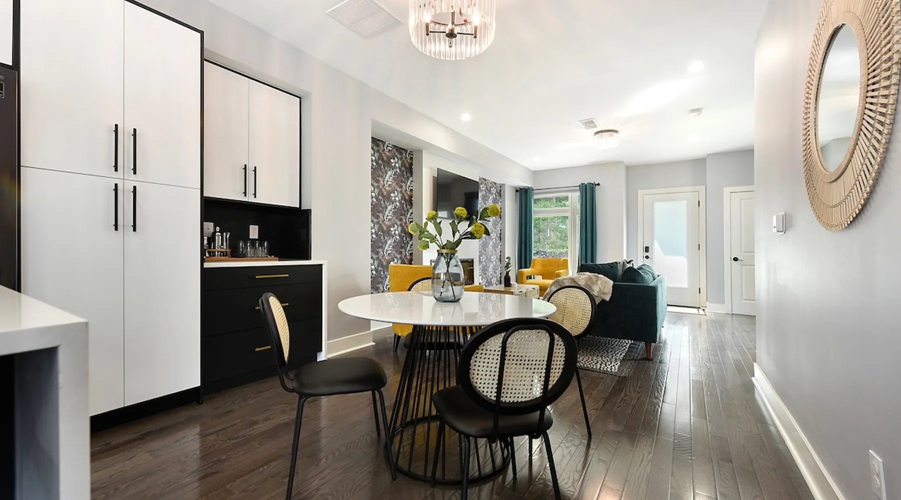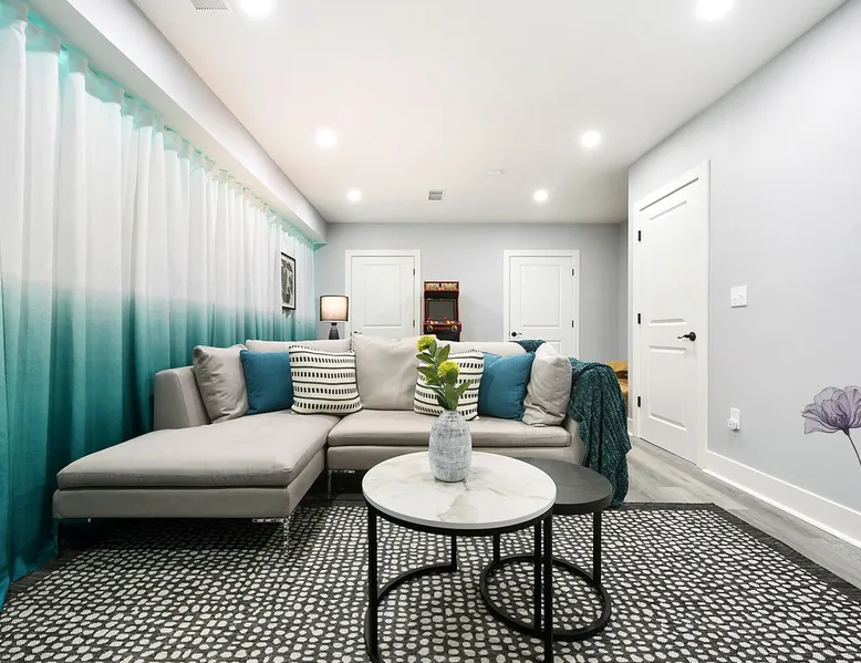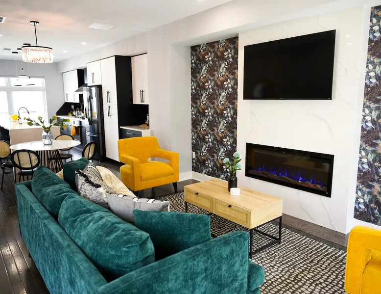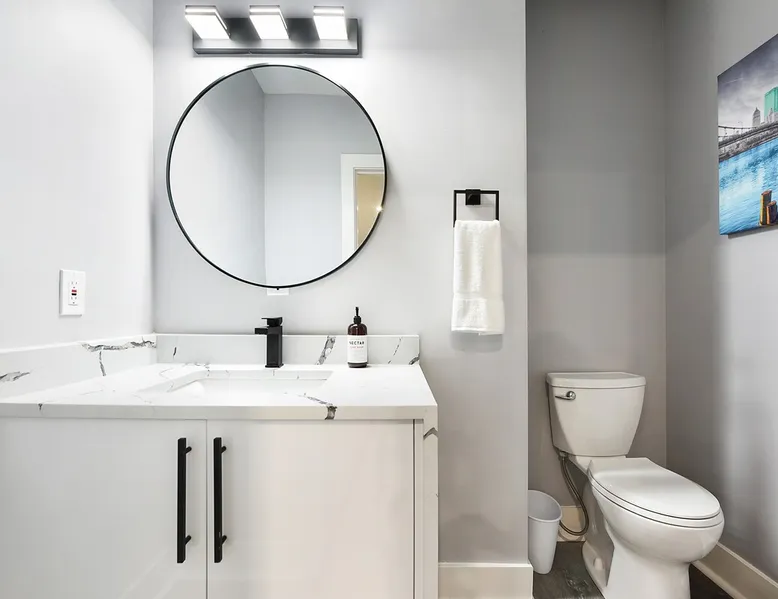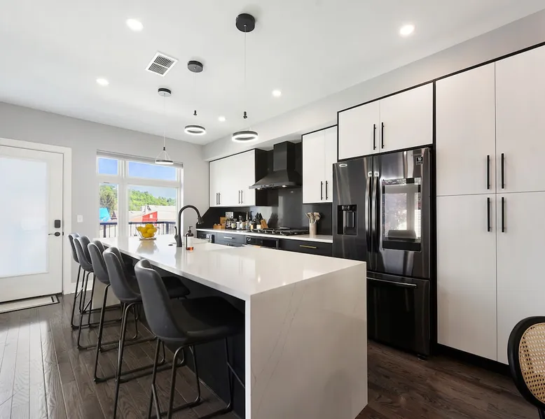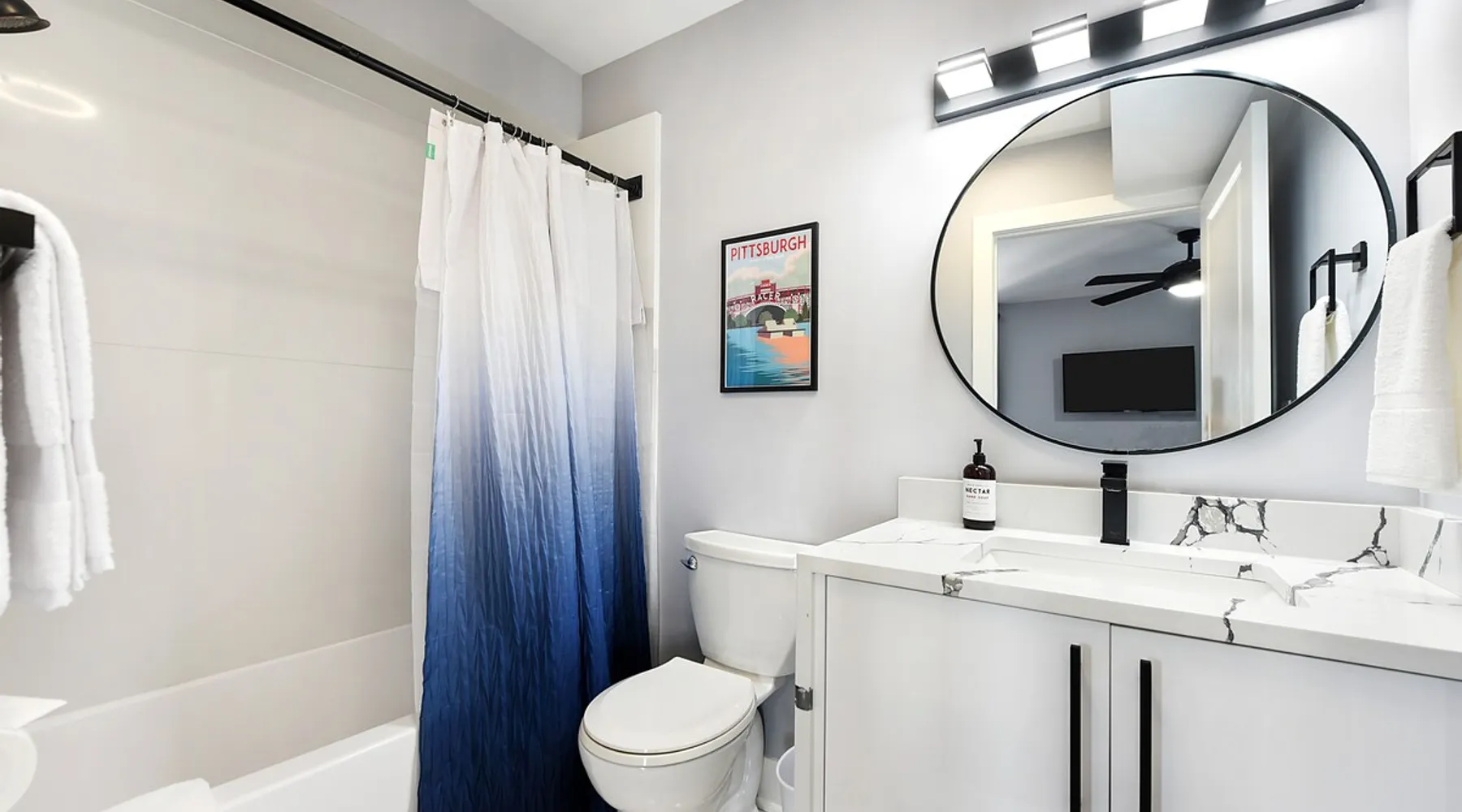 Walk in & say wow! This amazing property features outdoor space galore, containing 4 bedrooms with private balconies, 3 full bathrooms & 2 half bathrooms, a chef's Samsung kitchen, rooftop deck, fire pit on the patio, and more! At over 4,000sq ft, your friends & family can spread out with lots of privacy, or gather and socialize together! Take in the rooftop views, watch a movie on the 75" screen, play the arcade or full size games...book it while you can! The space KEY AMENITIES / DETAILS: ✓ Check-out process: Chore-Free Checkout™ ✓ Check-in process: Keyless entry with code ✓ Check-in technology: Dack-enabled software (optional) featuring swipe to unlock, digital guide, more! ✓ 4 Bedroom House ✓ Outdoor Space: Patio, 5 balconies, rooftop deck! ✓ 3 full & 2 half bathrooms - soaker tubs & showers! ✓ Sleeps 10 in 2 Kings, 2 Queens, and 2 fold out singles ✓ Internet: High speed 1 gig ✓ Parking: Private detached garage with space for two vehicles ✓ Laundry: HE washer/dryer included on second floor ✓ Kitchen: Fully stocked, with Samsung appliances ✓ Work from home: 2 desks! ✓ Coffee: Pittsburgh's Commonplace Roasters premium whole bean coffee ✓ Tech: G-Mini enabled speaker, 75", 55" and 40" 4K smart TVs (6 total!) ✓ Eco-friendly: Recycling, earth-friendly toiletries & products, water filters, focus on minimizing plastic use ✓ HVAC: Central Air conditioning & forced air heating ABOUT HOSTWISE STAYS: As the top-ranked hosts (4.93 overall with 20k+ stays!) in the Pittsburgh area, we are obsessed with quality service & amenities. Like high end hotels (but better!), we don't have crazy check out procedures, we only use professional cleaners, and we're available 24 / 7 / 365 (often within seconds!) We provide our valued guests with seamless lodging experiences & top-notch amenities - fast Wi-Fi, high end coffee bars, quality linens, clean spaces, earth-friendly products, remote work spaces, premium toiletries, and more! CLEANING PROCEDURES: Now more than ever it is important to stay in a professionally cleaned space. We don't "outsource" our cleaning - our cleaners are professionally trained with a passion for what they do! Our team follows an industry-leading cleaning checklist, and our Operations team executes randomized inspections to ensure our standards are met. DETAILED FEATURES: ➤ ~4,000sq ft four story, 4 bedroom / 4.5 bathroom home with private balconies off each bedroom ➤ Check-in: Keyless entry, with codes provided prior to check-in ➤ Sleeps: 10 comfortably - 2 Kings, 2 Queens, 2 single folding cots ➤ Mattresses: Brand new gel-infused 12" medium firmness memory foam mattresses in all bedrooms ➤ Bathrooms: Three full baths, two half baths. Master bathroom includes a soaker tub and fancy shower. ➤ Parking: Private detached garage with space for two vehicles. Garage door opener included upon check-in ➤ Wifi: High-speed, 1 gig up / down Verizon FiOS with multiple hubs for good coverage everywhere on the property ➤ Workspace: A dedicated desk in two separate bedrooms ➤ Kitchen: Granite, Samsung Smart appliances, range hood, oven, gas stove, well stocked with stainless pots & pans, knife block, blender, toaster, microwave, silicone utensils, service for 10+, wine glasses, rocks glasses, champagne glasses, and more! ➤ Outdoor Space: Four private balconies off bedrooms, huge rooftop deck, balcony off of kitchen, and a patio with wood-burning fire pit. ➤ Coffee+ Tea Program: Fresh locally-roasted Commonplace Coffee Roasters single origin whole beans are provided, along with burr grinder, drip coffee maker, French press, Torani syrup, sugar & creamers, and Two Leaves & a Bud tea ➤ Technology + Security: External camera + internal non-recording decibel meter, for party prevention. ➣ Music: GxxGle Mini ➤ TVs: Smart TVs include 75" in theater room, 55" in living room, and 40" TVs in all bedrooms. ➤ Dining: Seating for 4 around the table, 5 at island counter. ➤ Laundry: High Efficiency washer/dryer on second floor, iron, ironing board, etc. ➤ Heating & Cooling - Whole home air conditioning / forced air heating ➤ Location: ~2 blocks from Butler St. in upper Lawrenceville, with easy walking distance to tons of the best bars & restaurants in Pittsburgh. ➤ No Pets ➤ No Smoking indoors Guest access With the exception of a locked cleaning closet, the entire home is accessible.