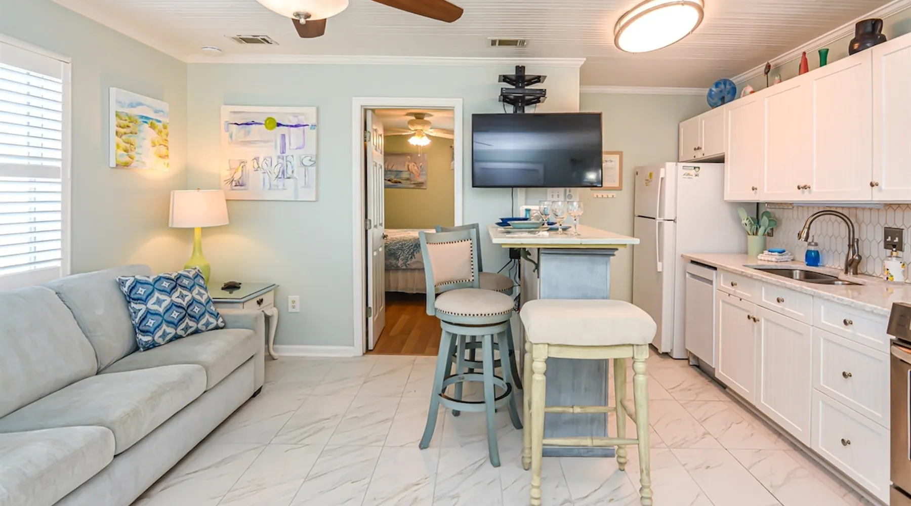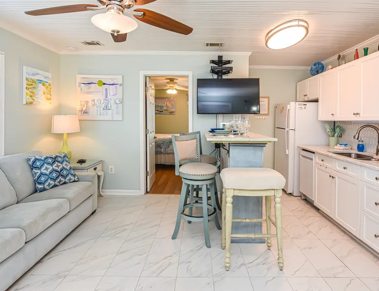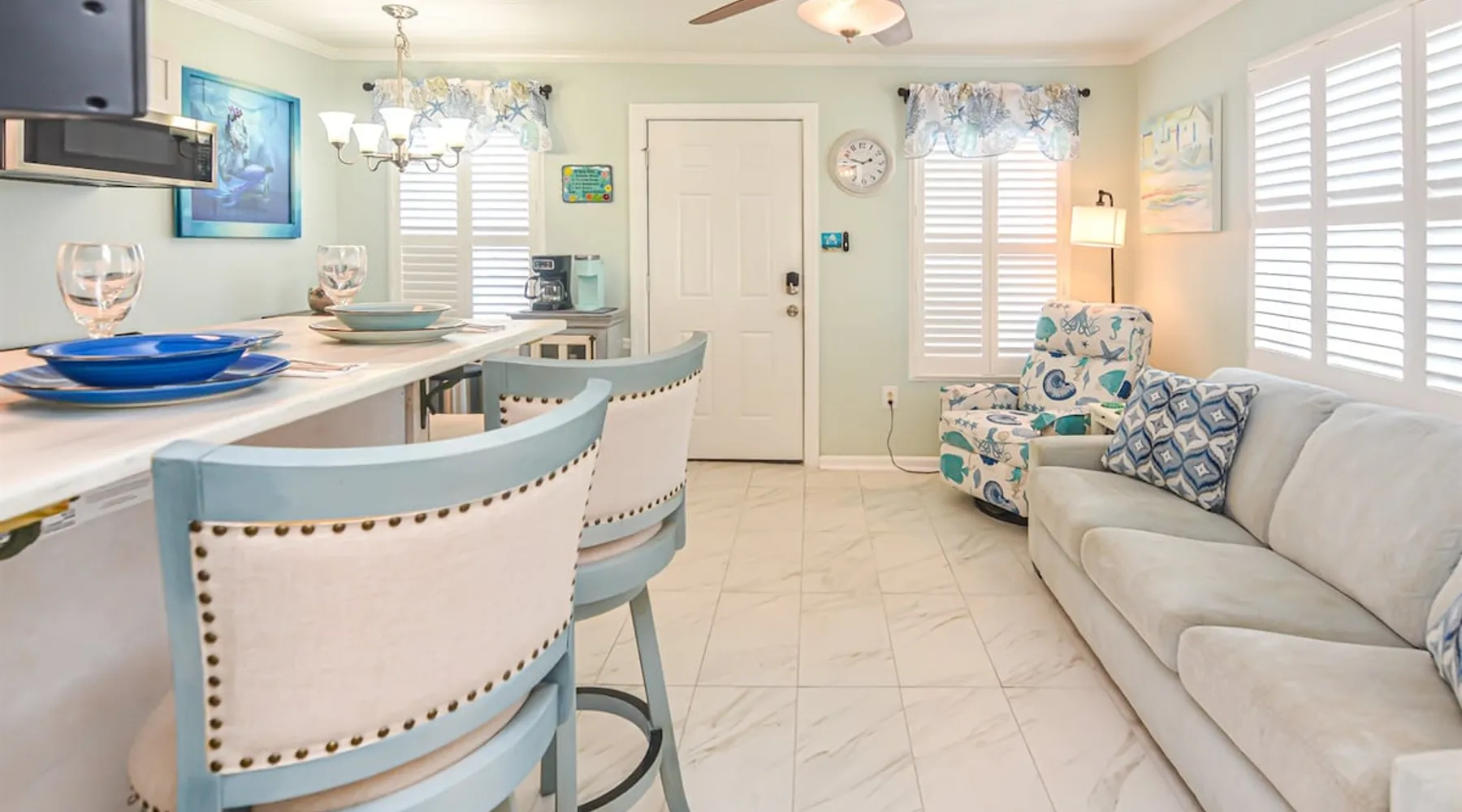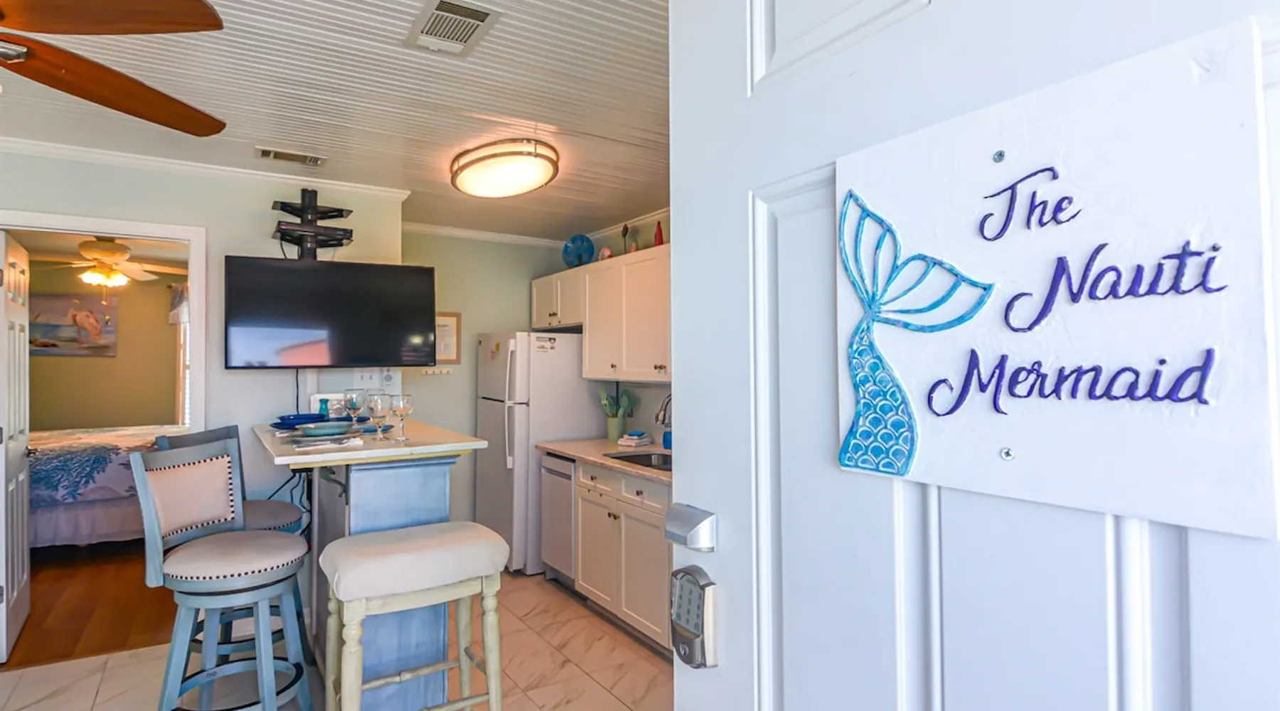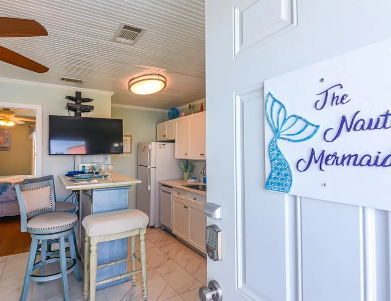 Welcome to The Nauti Mermaid, a guest-favorite Airbnb with a 4.9+ star rating! Located on peaceful West Beach, this cozy 1 BR, 1 BA is perfect for couples and solo travelers looking for a relaxing Gulf Shores getaway. The space 🌊 The Location You’ll be just 1.5 miles from the heart of Gulf Shores—close enough to enjoy the restaurants, shopping, and nightlife, yet tucked into a quiet stretch of beachside living. Waves Grocery, Beach House Kitchen & Cocktails, and S&S Seafood are just steps away, and our deeded beach access is directly across the street. 🏡 The Space Inside, you’ll find a bright, comfortable condo designed with relaxation in mind: • Queen bedroom with fresh linens and fluffy pillows • Living room with sofa bed for an extra guest • Fully stocked kitchen with local coffee + cooking essentials • Bathroom with plush towels and toiletries • Smart TV, WiFi, and a dedicated workspace • Guests love our thoughtful touches—like the digital guidebook with local recommendations and the option to rent beach chairs and umbrellas for a carefree day by the water. 🐾 Pet-Friendly Comfort Traveling with your furry friend? Pets are welcome at The Nauti Mermaid! While Gulf Shores doesn’t allow dogs on the beach, you’ll find plenty of nearby walking spots and a welcoming home environment. 💦 Amenities • Shared outdoor pool with loungers • Easy keypad self check-in • Free in-unit washer & dryer • Walkable to restaurants, shops, and groceries 📝 Things to Know For your peace of mind, we provide a simple rental agreement and a refundable $300 deposit hold. A $150 pet fee applies if bringing pets. Guests must be 21+ to book. Please note: stairs are required to access the condo (no elevator). ✨ Whether you’re sipping coffee on the balcony, strolling across the street to the beach, or exploring nearby attractions like The Hangout and Gulf State Park, The Nauti Mermaid offers the perfect blend of convenience, comfort, and coastal charm. Guest access An electronic lock allows for seamless entry. Your easy-to-remember code is sent with the check-in instructions three days prior to your vacation. Other things to note Signed rental agreement, pet fee (if applicable) and $300 security deposit are required to book Nauti Mermaid. Must be 21 years of age to book. • Beach access is directly across the street. • No elevator on premises. Guests must climb stairs to access the unit. • While pets are welcome in our home (with $150 pet fee), Gulf Shores does not allow dogs on the beach. • Shared pool with sun loungers and tables