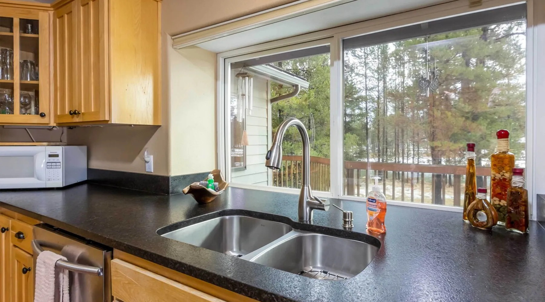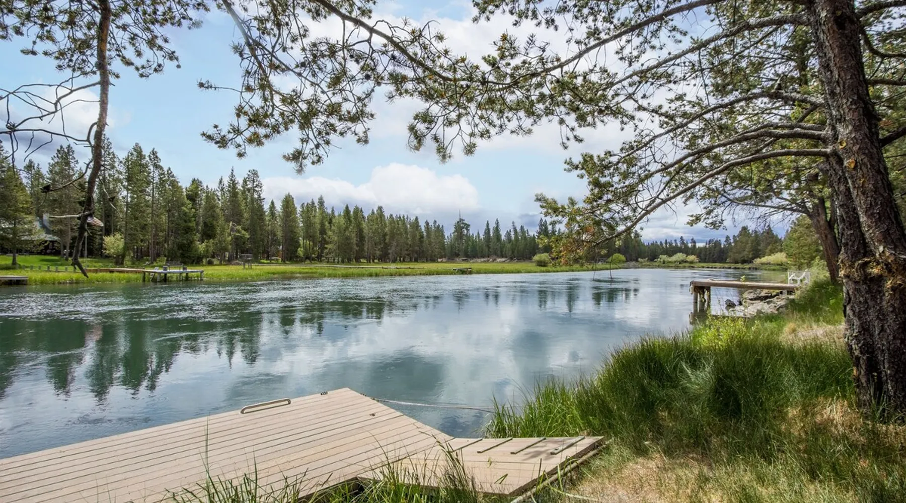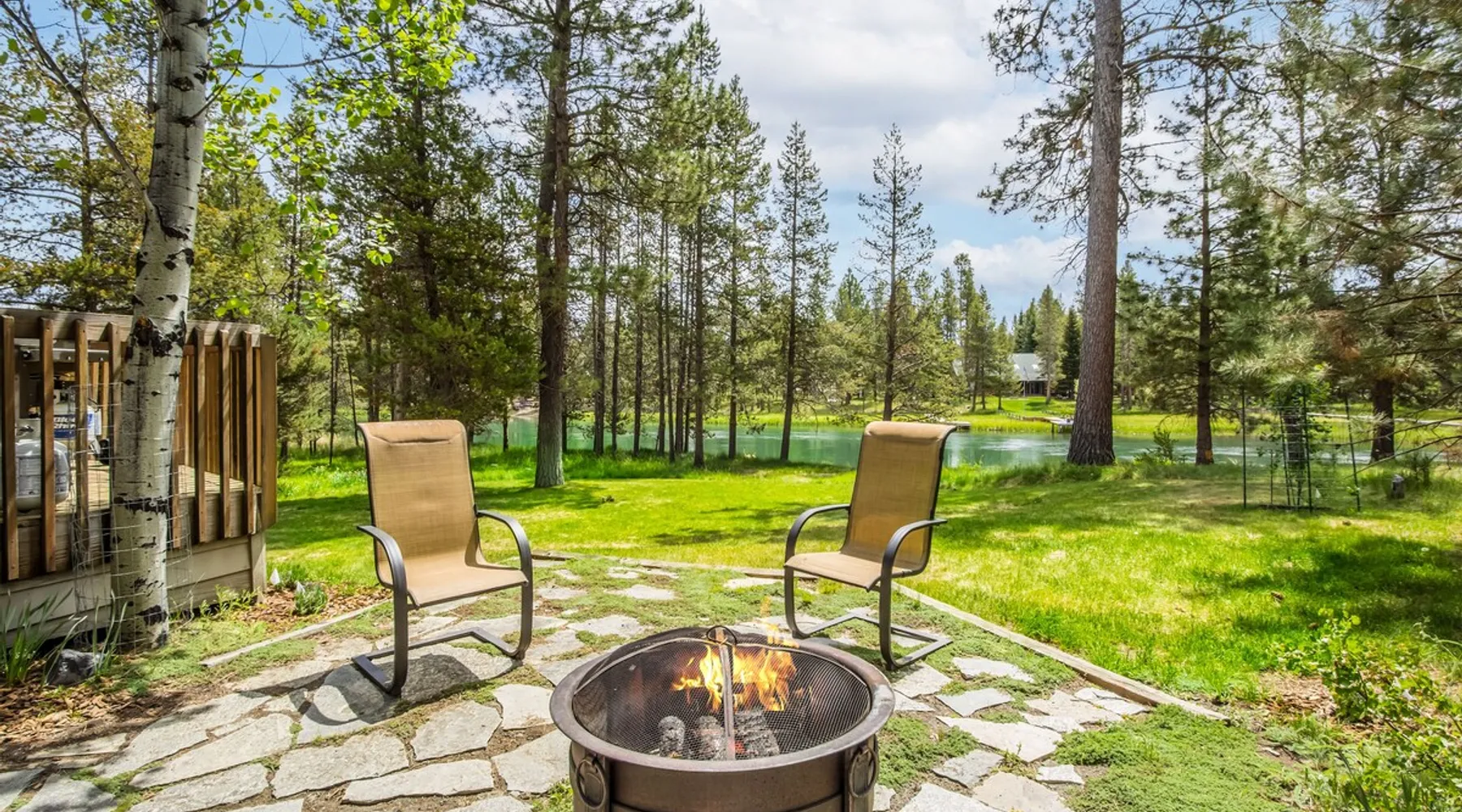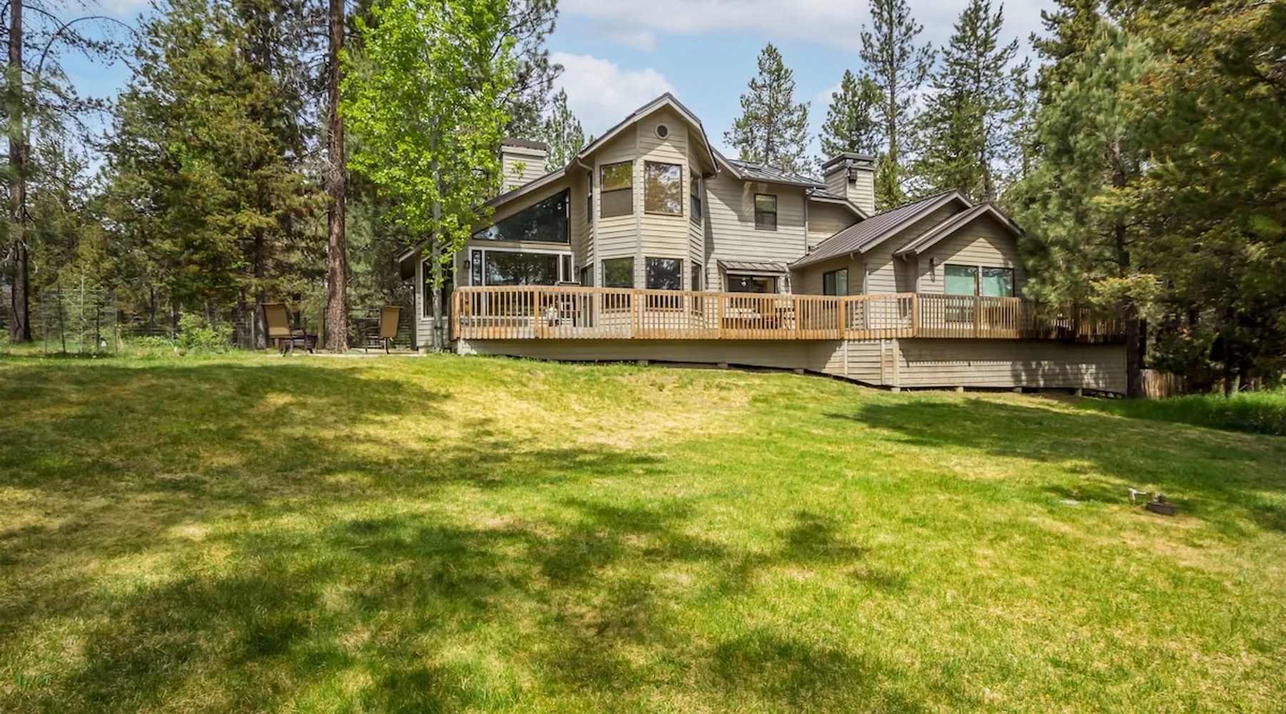 Large River Front Property, Private Dock, A/C, Hot Tub, Dog-Friendly-SHAR72 Welcome to 55872 Sharp Place - 3 Bedrooms, 4 Bathrooms, Sleeps 6 - Air Conditioning, Wood and Gas Fireplaces - Private Hot Tub - Large Deck with Outdoor grill - Dog Friendly - Bikes Enjoy peaceful river front views in this beautiful 3 bedroom, 4 bath home right on the Deschutes River, just south of Sunriver. Sitting on a full acre and 180 feet of riverfront property this home also has a floating dock for easy access to float or kayak right out your back door. Float from upriver at Big River Campground down to the house or float downriver from house to Harper's Bridge at Sunriver or combine the two for a longer trip. The property also offers a fully fenced half acre front yard. Within this, there is an additional fenced area that gives your canine family members access to the back deck as well. It is located just adjacent to a large wetland and is surrounded by wildlife such as deer, beavers, eagles and more. This home is filled with great natural light. The open flow of the downstairs common area is great for visiting with friends and family. A river rock wood fireplace in the living room invites you to cozy up with a good book or movie on a snowy night. On the main level is a spacious queen ensuite bedroom with fireplace and private bathroom with walk-in shower. Upstairs are bedrooms 2 and 3. Bedroom 2 has a queen bed and gas fireplace with private attached bathroom. Bedroom 3 has a full bed and attached private bathroom. When you are not soaking in the hot tub or enjoying that gorgeous Sunriver sunshine river side, you can take advantage of the horseshoe pit on-site or explore the nearby foothills of Mt. Bachelor and the surrounding, pristine alpine forests. With a large driveway and RV hookups, there is plenty of space to bring all of our outdoor toys along with you. Book a rafting trip on the Deschutes, go fly fishing, or make the short trip to Mt. Bachelor Resort for a day of skiing and snowboarding. With its ample amenities and serene river views, this Central Oregon rental is sure to be a favorite! Please note this home's fridge ice maker does not work. Ice trays are in the freezer for your convenience. This home welcomes dogs, 2 max, no other pets are allowed. Fees apply Languages English