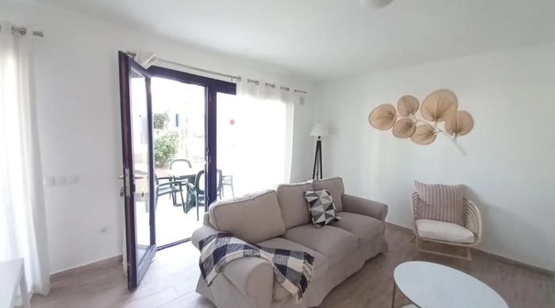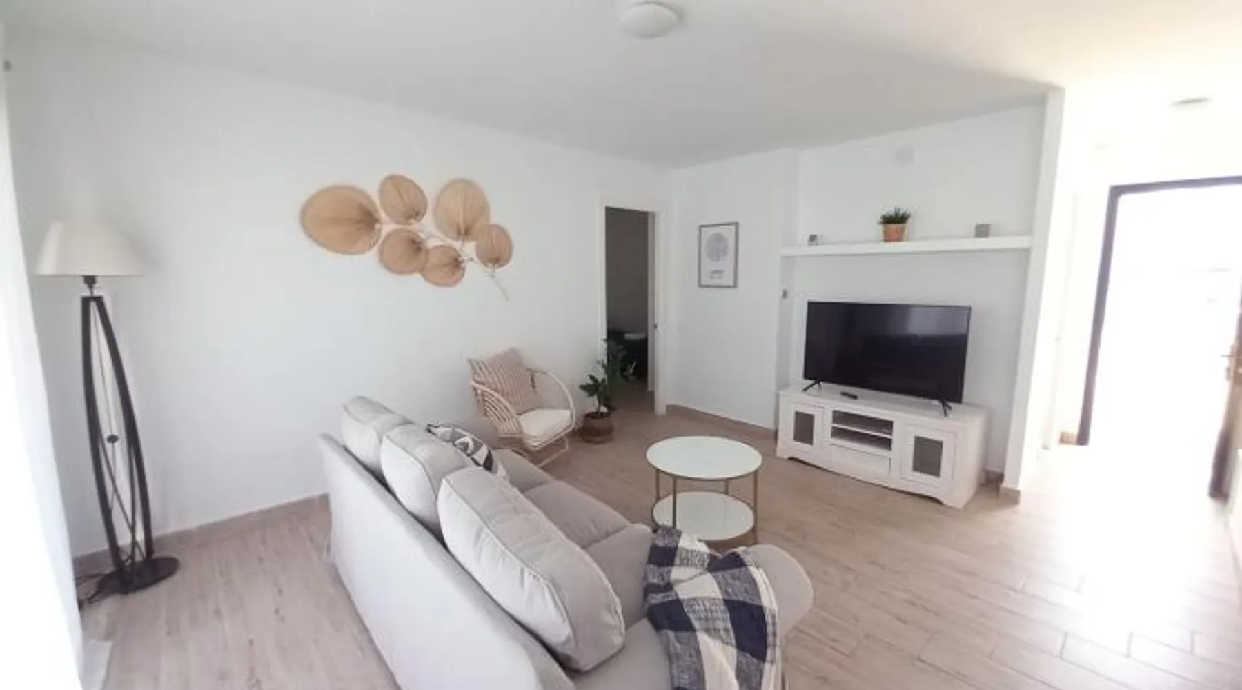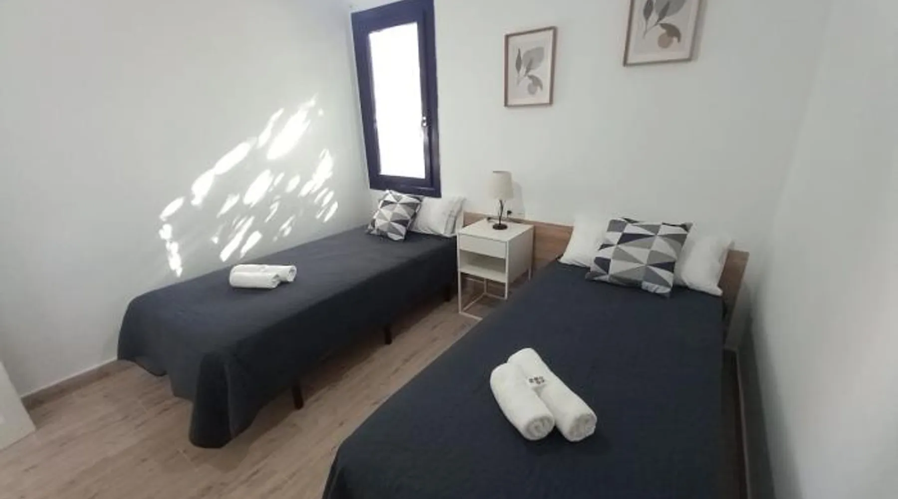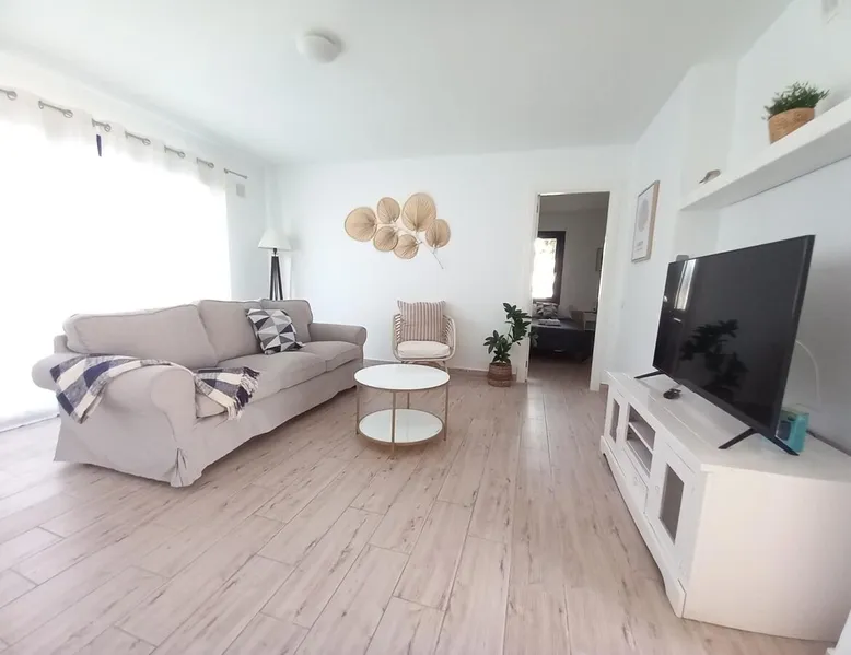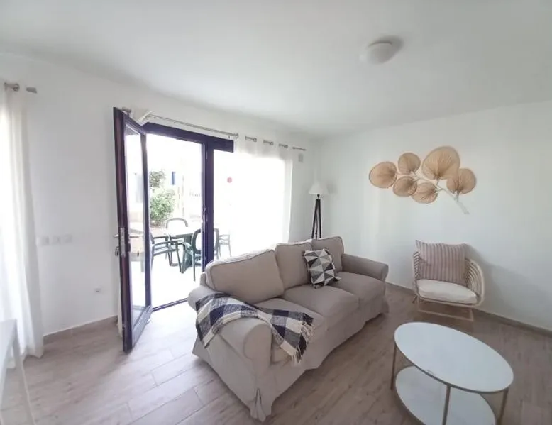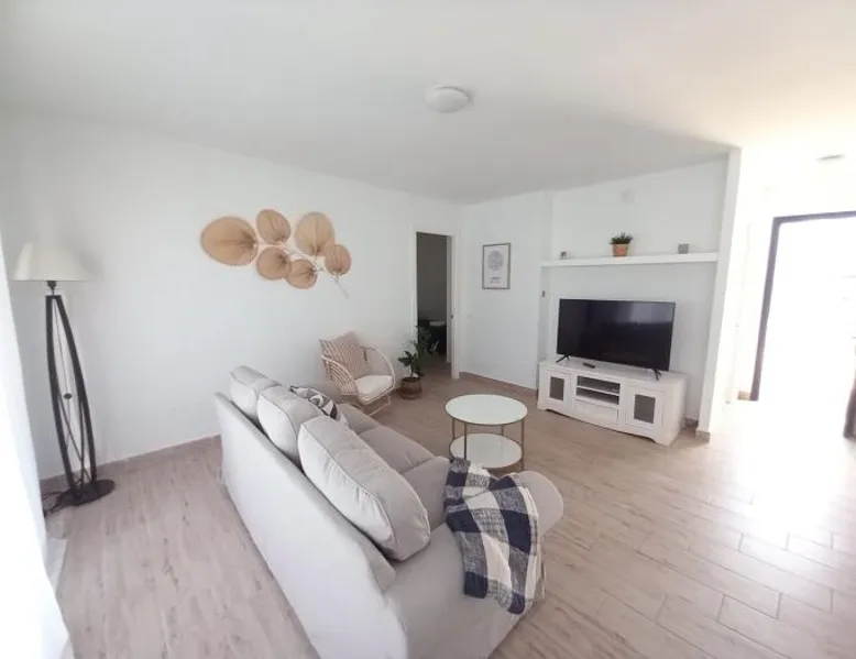Cosy holiday home, recently refurbished, located in the centre of Corralejo, close to bars, restaurants and a stone's throw from the beach. The space 'Los Barqueros 23' is a cosy holiday home located in the centre of Corralejo, a tourist resort in the north of the island, where you can enjoy a wide variety of restaurants, ice cream parlours, supermarkets, shopping centres, discos and leisure areas, as well as one of the best beaches on the island, which is just a few metres walk from the house. You will also be able to enjoy a variety of water activities and/or excursions. Thanks to its location and distribution, Los Barqueros 23 is a good choice for your holidays, as it has two bedrooms, one with double bed and one with two single beds, a bathroom with shower, living room-kitchen with sofa bed and a large terrace where you can relax, sunbathe and swim in a wonderful swimming pool surrounded by palm trees. The house is equipped with: hairdryer, iron and ironing board, washing machine, microwave, kettle, coffee machine, 4-ring ceramic hob, oven, fridge, television and wifi. Registration Details Canary Islands - Regional registration number VV-35-2-0008378 Spain - National registration number ESFCTU0000350250000590830000000000000VV-35-2-00083785