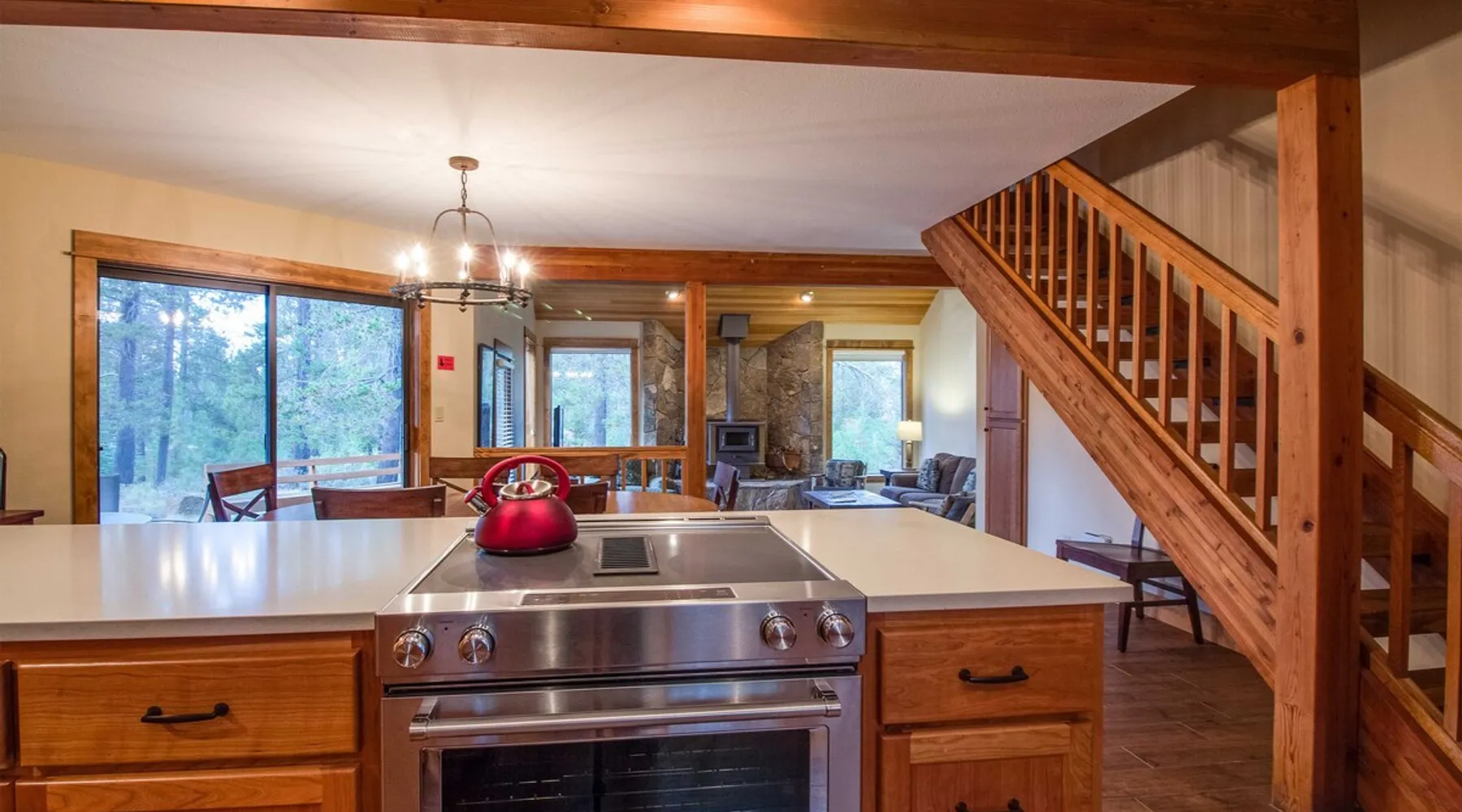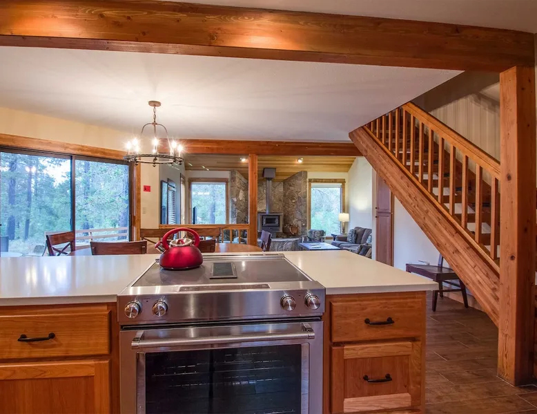 This two-story home is situated on a quiet cul-de-sac just a short walk to Fort Rock Park. The space This two-story home is situated on a quiet cul de sac just a short walk to Fort Rock Park. The inviting living room features a gas fireplace, comfortable seating and TV with DVD player. Enjoy preparing your family favorites in the well-equipped kitchen and sit down for a meal in the adjacent dining room with seating for 8. There are two queen bedrooms and full bathroom on the main level, Head upstairs to find the King ensuite bedroom featuring a large flat screen TV and an alcove that includes two twin beds. Sit outside on the spacious deck and soak up some great Sunriver sun or check out the stars from the hot tub at night. The 4 adult bikes provided with this vacation rental allow for family bike riding fun! This home, along with most Sunriver homes, is not air conditioned. With our cool mountain evenings and ice cold rivers and lakes to keep you cool, this is a great house for a slow paced, ice cream and iced beer kinda summer. Looking to book a family reunion or group gathering? Reserve this home along with Tan Oak 28, Tan Oak 29, Tan Oak 33, Tan Oak 36 and Tan Oak 4. Guest access Home access information will be sent 7 - 10 days prior to arrival. All homes are set up for self check-in, no need to stop by the office, just go straight to the home. Other things to note AGE RESTRICTIONS: Guests must be 23 years or older to rent Bennington homes and the person reserving must occupy the home the whole reservation.