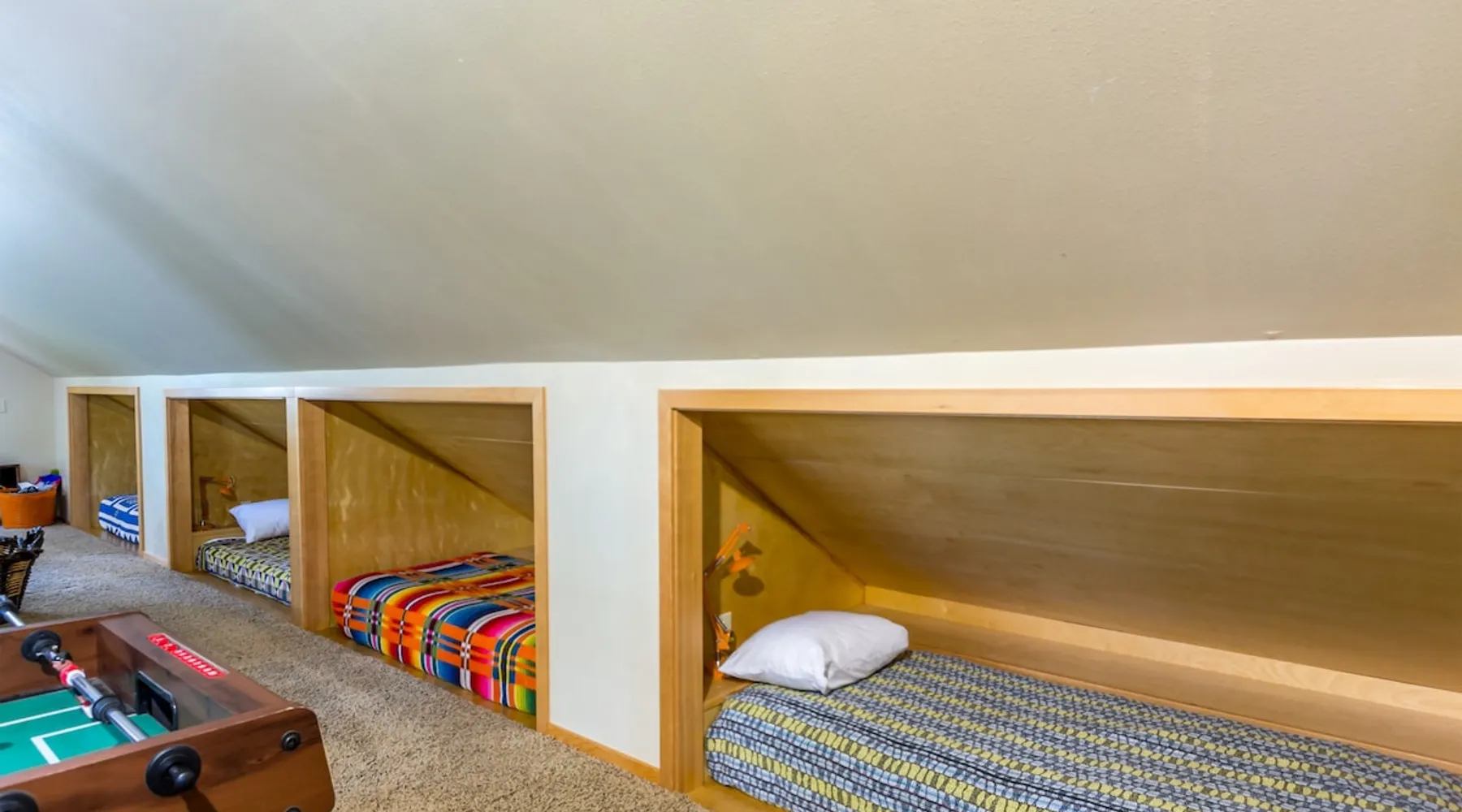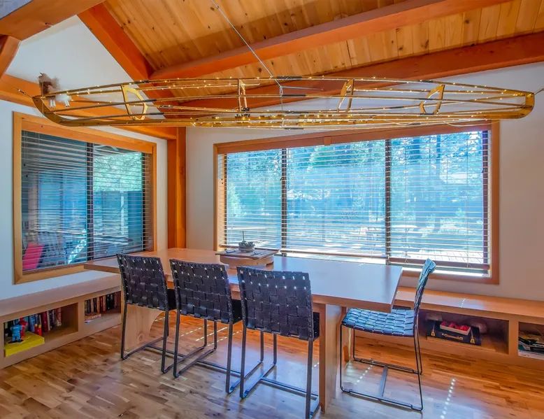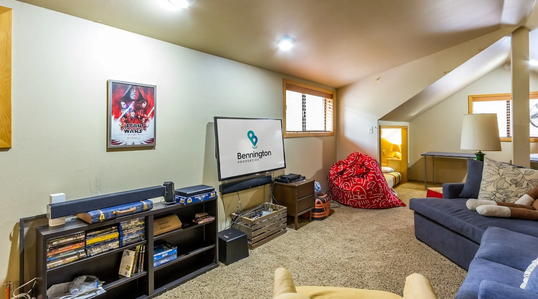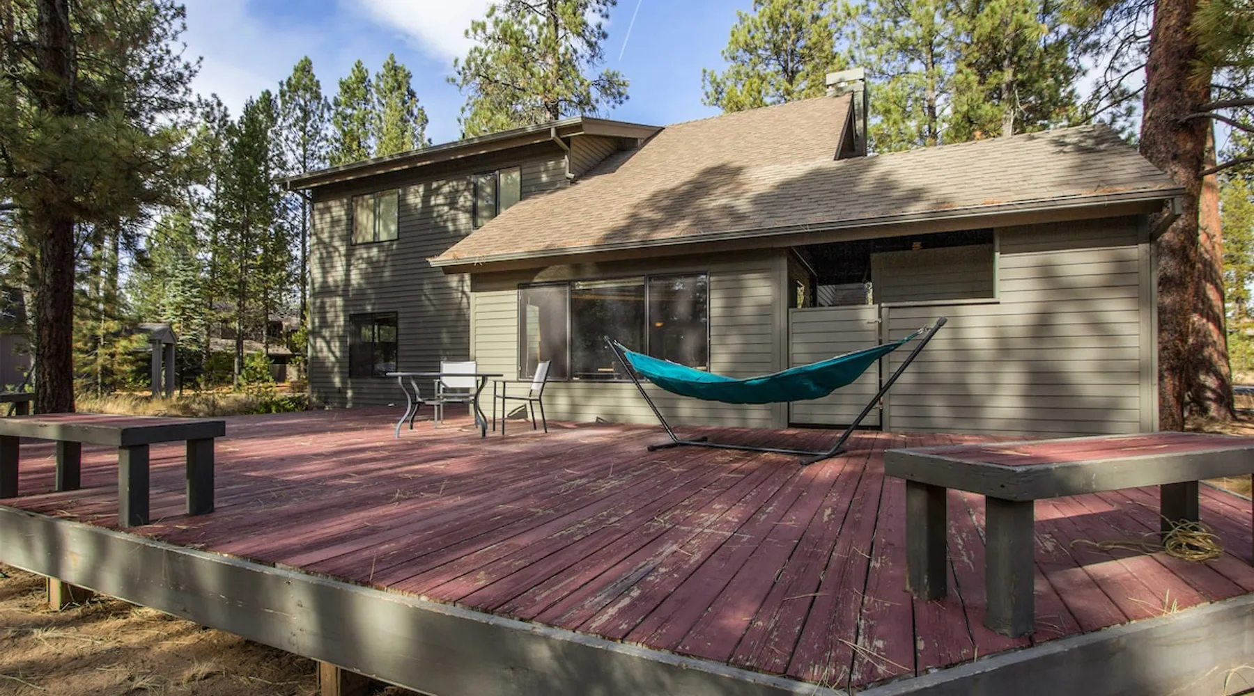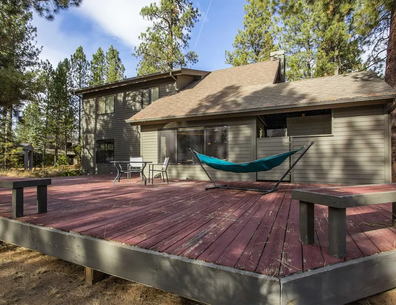 Gather, relax, and reconnect in this thoughtfully cared-for 4-bedroom Sunriver home. With cozy living spaces, a fully stocked kitchen, private hot tub, and bikes to explore the trails, every detail is designed for comfort and ease. Whether sharing meals, playing games, or soaking under the stars, this retreat offers the perfect balance of fun and relaxation—curating cherished memories that last long after your stay. The space Welcome to 3 Shadow Lane — your Sunriver escape where comfort meets adventure. Step into this spacious 4-bedroom, 3.5-bath retreat and feel instantly at home. Warm wood accents and vaulted ceilings draw your eyes upward, while a stone gas fireplace flickers in the heart of the living room, casting a golden glow over plush seating. The dining table, grand enough for eight, sits ready for lingering meals, with four more seats at the breakfast bar for casual chats with the chef. In the kitchen, sleek stainless steel appliances and generous counter space make cooking a shared event, not a chore. Just beyond, the primary suite offers a King bed, TV, and a spa-like bath—dual sinks, a walk-in shower, and a deep soaking tub where you can melt away the day’s adventures. A half bath sits conveniently off the entry. Upstairs, the charm continues. A Queen room and a King room with large TV share a bathroom with a shower/tub combo. The fourth bedroom is a playful haven—five twin beds, a foosball table, a dart board, a mini ping pong table, and a private bathroom. With a TV, Blu-ray player, and comfy seating, it’s the kind of room kids vanish into and emerge from hours later, grinning. Step outside onto the expansive deck, where a gas BBQ sizzles and two hammocks sway gently under the whispering pines. Four adult cruiser bikes wait for you to explore Sunriver’s trails. After your ride, head to the outdoor sauna, where the heat soaks into your muscles and the crisp forest air refreshes your lungs. * IMPORTANT (Air Conditioning): This two-story home has single-zone air conditioning. That means that the upstairs will be warmer than the downstairs (sometimes by 10 degrees or more). Other things to note AGE RESTRICTIONS: Guests must be 23 years or older to rent Bennington homes and the person reserving must occupy the home the whole reservation.