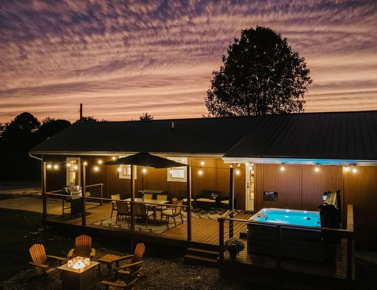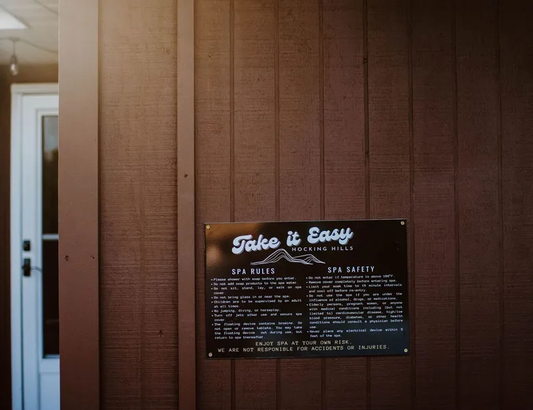 Experience the natural beauty of the Hocking Hills just 2 miles from Old Man's Cave. Take It Easy has been carefully designed with your relaxation in mind. With brand new amenities and a peaceful, bright, and relaxing aesthetic, your group will enjoy the sunrises, sunsets, and everything in between. Relax and take in the views of trees while enjoying the brand new deck with gas grill, enjoy the bubbling hot tub, cozy up with a good book + a cocktail, or simply unwind in the moment. The space Experience the natural beauty of the Hocking Hills with this brand new listing. Take It Easy has been carefully designed with your relaxation in mind. With brand new amenities and a peaceful, bright, and relaxing aesthetic, your group will enjoy the sunrises, sunsets, and everything in between. Relax and take in the views of trees while enjoying the brand new deck with gas grill, enjoy the bubbling hot tub, cozy up with a good book + a cocktail, or simply unwind in the moment. Guest access Guests will have access to the whole house and garage with exception of the basement. Other things to note We do not provide firewood - but there are numerous places within two miles that have firewood available.
