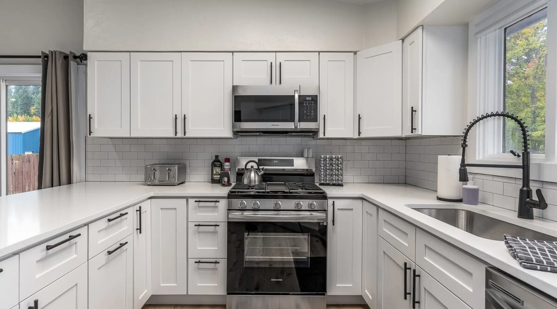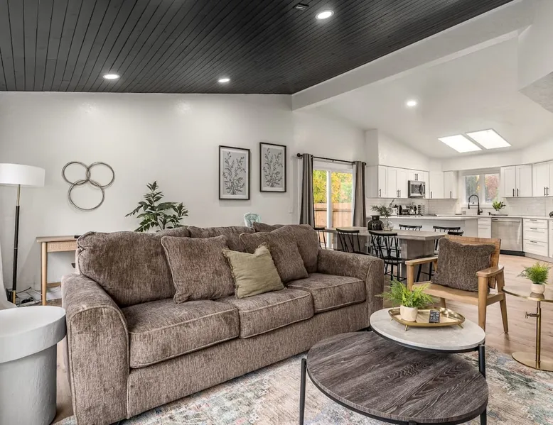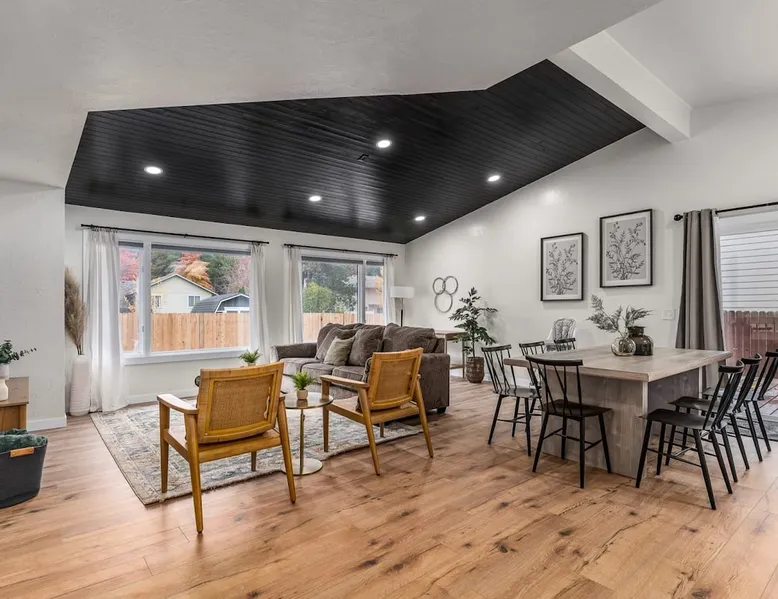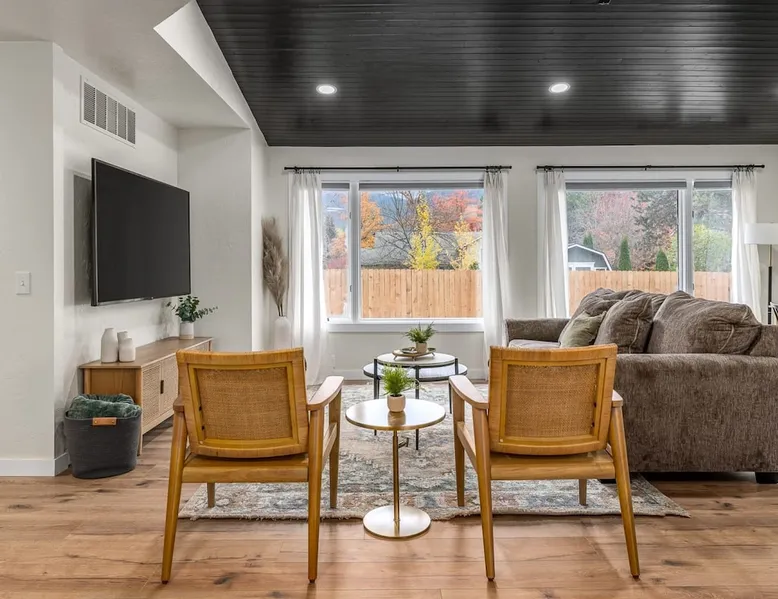 Welcome to our newly renovated, large 5-bedroom, 3-bathroom home in the heart of Coeur d'Alene. This spacious house is perfect for families or groups looking to explore the nearby attractions. Enjoy the comfort of the open-plan living area, prepare meals in the modern kitchen, and relax on the patio with views of the surrounding area. The location is unbeatable, with plenty of shops, restaurants, and activities all within a short drive. Come and experience the beauty of Coeur d'Alene! Guest access Guests have access to entire house and backyard. Ample parking in the garage, driveway and street side. Other things to note - Kitchen is fully stocked with everything you will need to cook and serve food. - High Speed WiFi ready to handle up to 12 guests. - Ping Pong Table and Smart TV in downstairs living area. - CDA Permit #59579