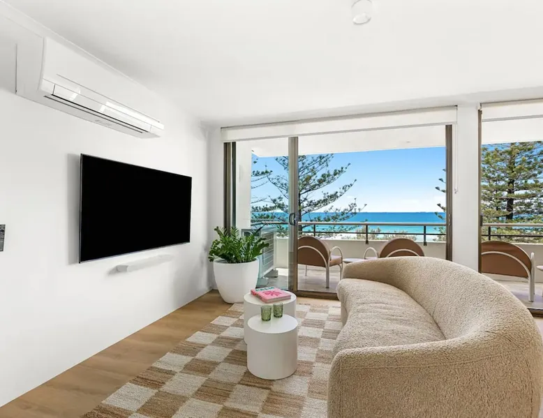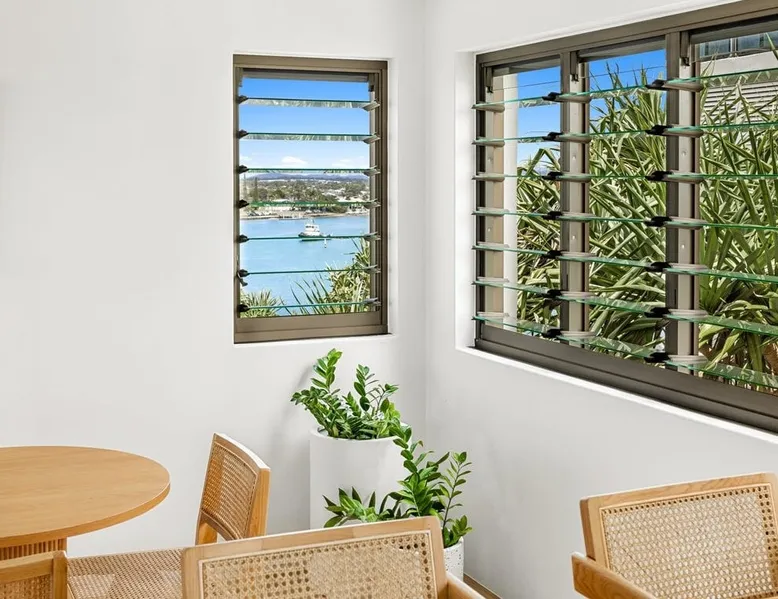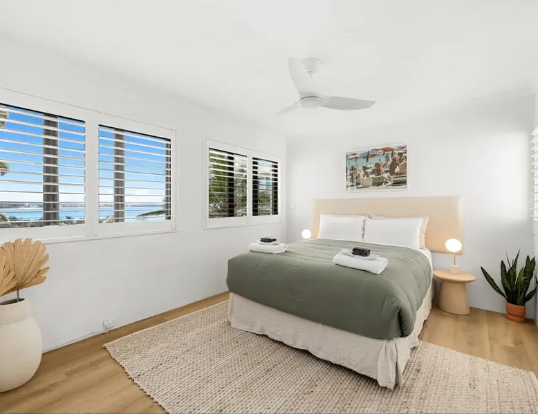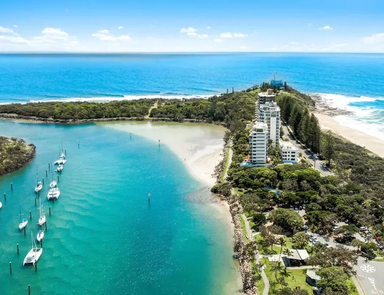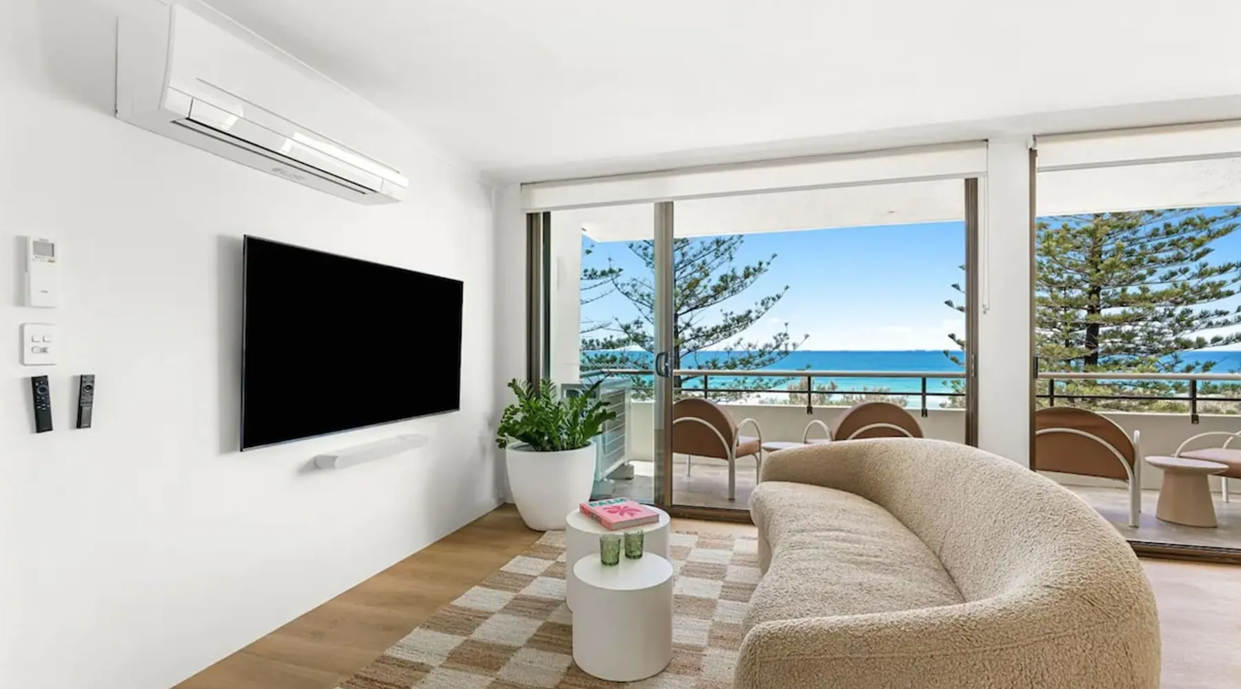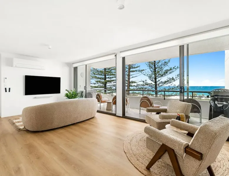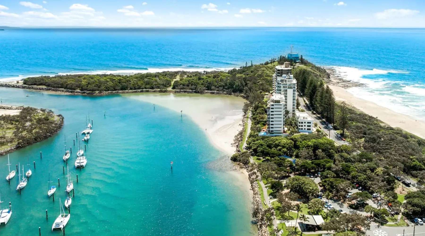 This beachfront apartment has spectacular views of the Ocean, Mooloolaba Rivermouth and Marina. It's perfectly positioned for beach days, water sports, walks or jogs along the boardwalk, dining & exploring. Enjoy stylish, low-maintenance décor capturing Mediterranean & Palm Spring vibes . All rooms have ocean views so you can check the surf or whale watch from the comfort of your bed or couch. Kick back on the deck with a BBQ & enjoy sea breezes with panoramic views from Mooloolaba to Noosa. The space Upon entering Evia, you're greeted with a stunning view of the Pacific Ocean. The lounge space is light filled and features designer pieces and curated spaces (from Boucle furniture to commissioned local art) to make your stay all that more enjoyable. That said, the view is by far the standout feature of Evia. Spot dolphins, turtles or whales or check the waves from the sofa or your bedroom. 3 bedrooms - a rare find in coastal beach-front apartments - with King bed, Queen bed and twin singles. Each room has aircon, its own Samsung Smart TV (with Netflix), built-in robes and ceiling fans. If you want to get out and about, you're close to the beach, cafes, walking and exercise paths - not to mention some amazing restaurants (like our favourites, Bocca Italian or Bekko Teppanyaki!). If you want to stay in, there are plenty of Uber Eats options that deliver from near-by. It's a 2-minute drive (or 20 minute walk) to Kawana Shopping Centre with heaps more restaurants, plus movie cinemas and all the fashion/homewares & supermarkets you could need. The apartment itself is low maintenance for a worry-free stay. Great for couples, families or individuals, Evia won't disappoint. Additional features * Fully equipped kitchen * Washer, dryer and dishwasher * Free unlimited Wi-Fi * SmartTV with Netflix in every bedroom and in the living (4 SmartTV's in total) * Bluetooth speakers * Ceiling fans in all three bedrooms * Air conditioning throughout * Mixture of gorgeous French linen and quality hotel bedding * Fresh bathroom and beach towels * Bathroom & kitchen essentials * Baby Bjorn travel cot * Onsite, undercover parking for 1 vehicle and free parking directly across the road * Quiet & safe neighbourhood More inspo via Insta*gram @evia_point_cartwright Guest access Evia is located in the boutique Point Cartwright Apartment block on the top (3rd) level. The block was built in the 1980's and designed by a prominent local architect taking inspirations from the Mediterranean coast. A classic and original coastal block, it has recently had its doors and windows replaced plus shutters added throughout. Passcode entry at all external doors for security. There are 39 stairs to the 3rd level (no lift), so it's not recommended for elderly people or those with mobility challenges. That said, we've had guests in their 70s have no issues with using these stairs, but it is something to be mindful of. Other things to note Please note the home is located in a residential area and out of respect for our neighbours, parties and events are strictly prohibited.