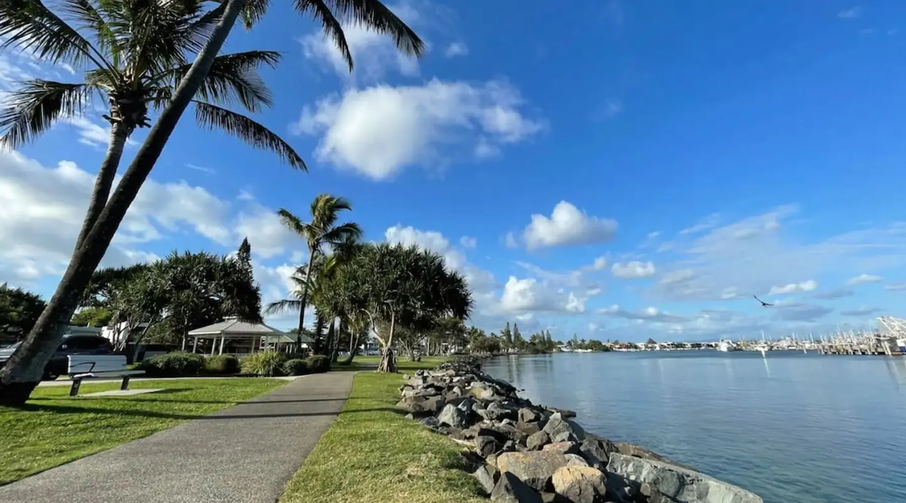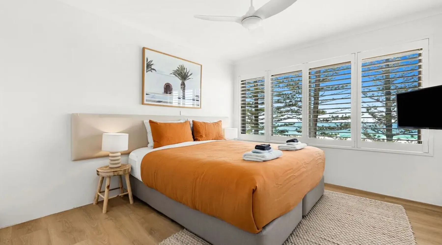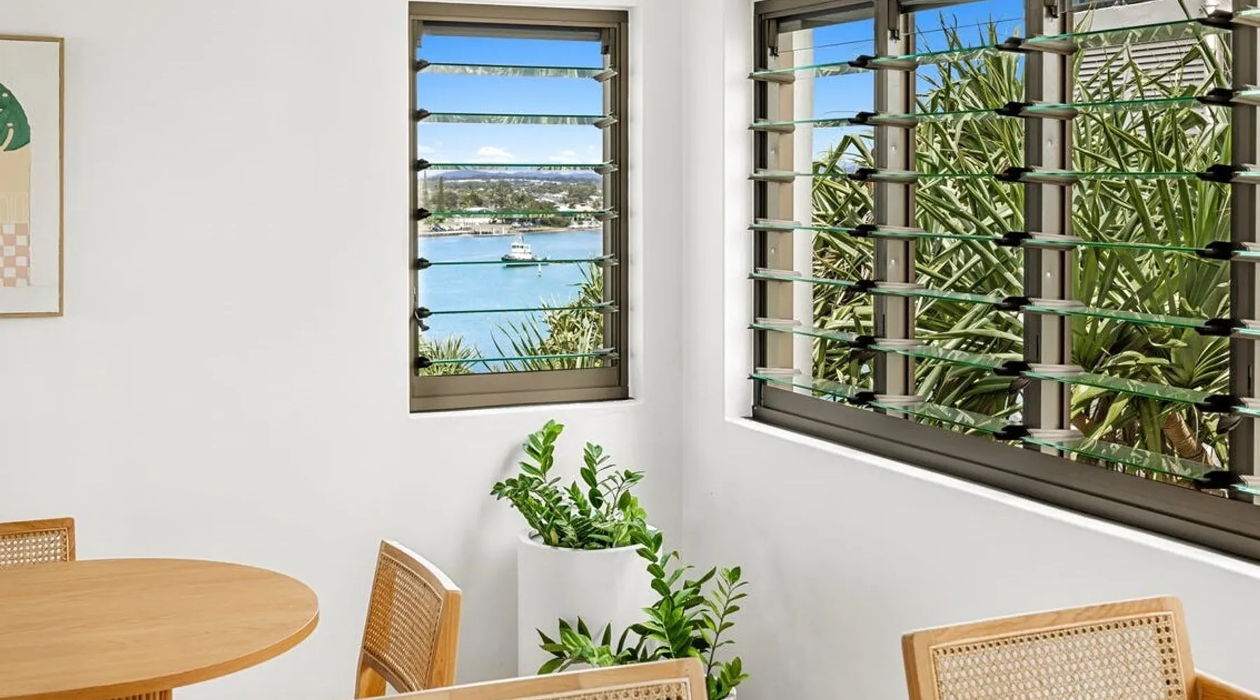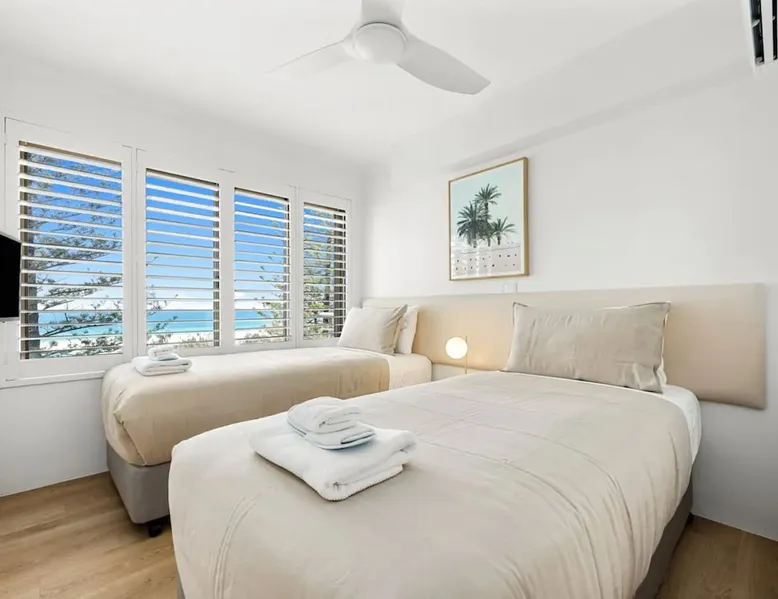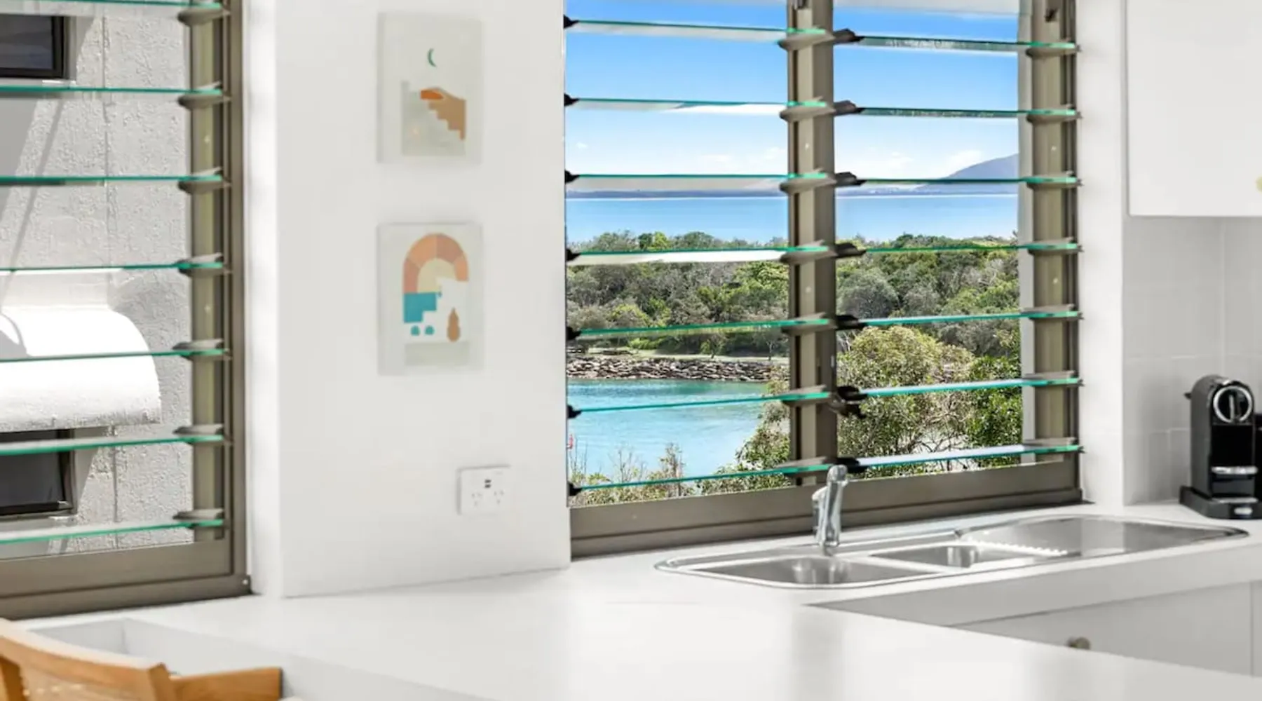 This beachfront apartment has spectacular views of the Ocean, Mooloolaba Rivermouth and Marina. It's perfectly positioned for beach days, water sports, walks or jogs along the boardwalk, dining & exploring. Enjoy stylish, low-maintenance décor capturing Mediterranean & Palm Spring vibes . All rooms have ocean views so you can check the surf or whale watch from the comfort of your bed or couch. Kick back on the deck with a BBQ & enjoy sea breezes with panoramic views from Mooloolaba to Noosa. The space Upon entering Evia, you're greeted with a stunning view of the Pacific Ocean. The lounge space is light filled and features designer pieces and curated spaces (from Boucle furniture to commissioned local art) to make your stay all that more enjoyable. That said, the view is by far the standout feature of Evia. Spot dolphins, turtles or whales or check the waves from the sofa or your bedroom. 3 bedrooms - a rare find in coastal beach-front apartments - with King bed, Queen bed and twin singles. Each room has aircon, its own Samsung Smart TV (with Netflix), built-in robes and ceiling fans. If you want to get out and about, you're close to the beach, cafes, walking and exercise paths - not to mention some amazing restaurants (like our favourites, Bocca Italian or Bekko Teppanyaki!). If you want to stay in, there are plenty of Uber Eats options that deliver from near-by. It's a 2-minute drive (or 20 minute walk) to Kawana Shopping Centre with heaps more restaurants, plus movie cinemas and all the fashion/homewares & supermarkets you could need. The apartment itself is low maintenance for a worry-free stay. Great for couples, families or individuals, Evia won't disappoint. Additional features * Fully equipped kitchen * Washer, dryer and dishwasher * Free unlimited Wi-Fi * SmartTV with Netflix in every bedroom and in the living (4 SmartTV's in total) * Bluetooth speakers * Ceiling fans in all three bedrooms * Air conditioning throughout * Mixture of gorgeous French linen and quality hotel bedding * Fresh bathroom and beach towels * Bathroom & kitchen essentials * Baby Bjorn travel cot * Onsite, undercover parking for 1 vehicle and free parking directly across the road * Quiet & safe neighbourhood More inspo via Insta*gram @evia_point_cartwright Guest access Evia is located in the boutique Point Cartwright Apartment block on the top (3rd) level. The block was built in the 1980's and designed by a prominent local architect taking inspirations from the Mediterranean coast. A classic and original coastal block, it has recently had its doors and windows replaced plus shutters added throughout. Passcode entry at all external doors for security. There are 39 stairs to the 3rd level (no lift), so it's not recommended for elderly people or those with mobility challenges. That said, we've had guests in their 70s have no issues with using these stairs, but it is something to be mindful of. Other things to note Please note the home is located in a residential area and out of respect for our neighbours, parties and events are strictly prohibited.