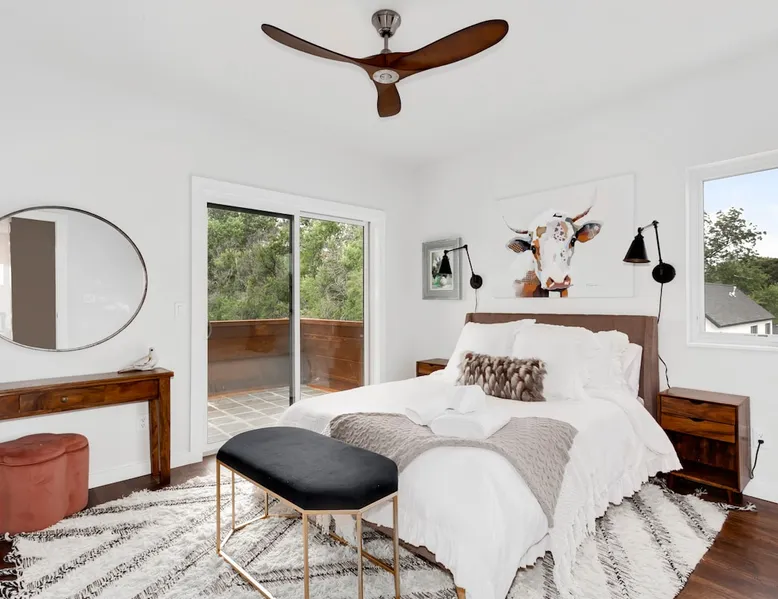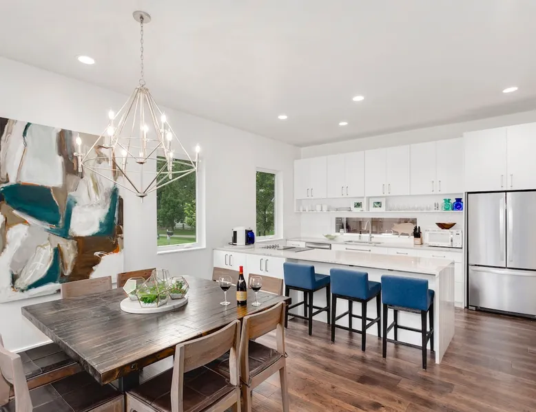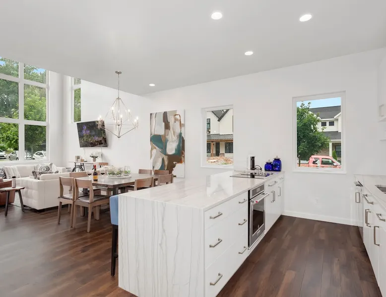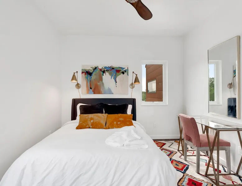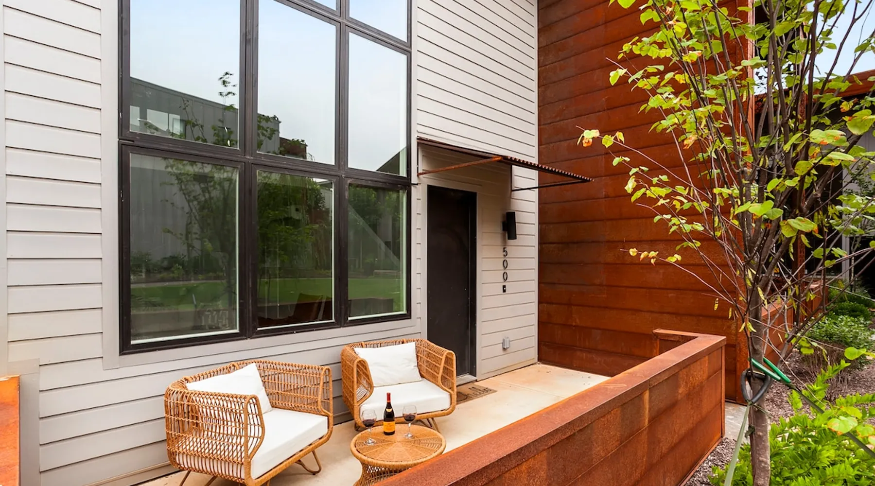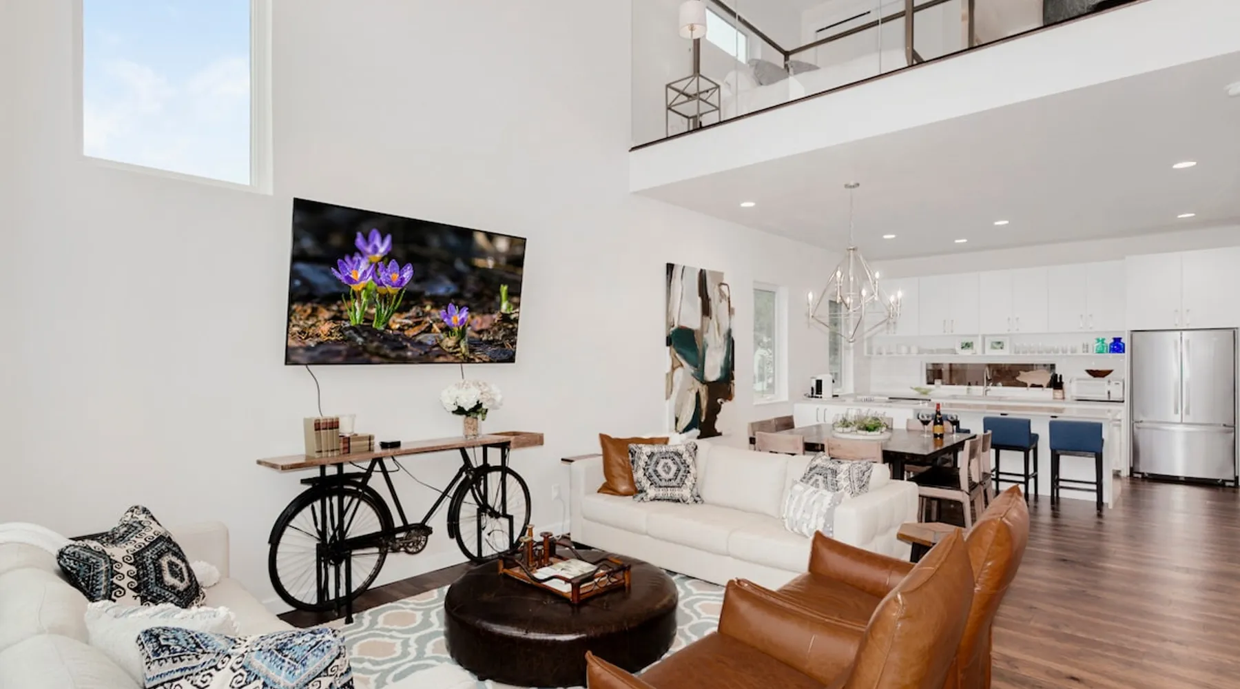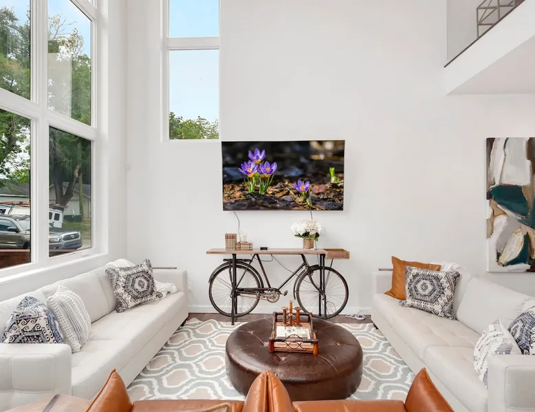 Located in the Bentonville Market District, Terracotta Townhome is a newly built urban loft that is perfect for art lovers, mountain bikers and explorers alike! Drive, walk or bike just MINUTES down the road to experience all Bentonville has to offer. Whether you're looking to shred on our extensive MTB trails, soak in the art at The Momentary or grab a local beer at 8th Street Market, Terracotta Townhome is in the center of it all. The space Highlights: ★ Located right along the bike trail! ★ 2 street bikes available for guest use. ★ Across the street from The Momentary! ★ 5-minute walk to 8th St. Market. ★ 0.8 miles from the Bentonville Square - easily walkable! ★ 1.5 miles from Crystal Bridges. ★ THREE blocks from the Walmart Home Office. ★ Within 10 minutes of Bentonville's premier MTB trails. ★ Sleeps up to 8 guests! ★ Newly built, with all new appliances. ★ Giant windows with tons of natural light. ★ Large living room with plenty of seating. ★ Dining area with seating for 8. ★ 3 private bedrooms - (1) King (2) Queen (3) Queen. ★ A Full air mattress is also available. ★ Fully stocked kitchen. ★ Fully stocked bathrooms. ★ Games available! ★ Cozy reading and lounging areas throughout. ★ Outdoor patio located at the front of the town home. ★ Step outside and walk the loft's common area! ★ Washer and dryer available for guest use! When you're at home, enjoy our spacious layout, luxury amenities, modern accents, local art and MASSIVE windows - all the perfect backdrop to your time in NWA. Time to get that Bentonville Bucket List ready! Upon entering our home, you'll be greeted by our massive, open concept living space. To the left, you'll see our main lounge area, which is complete with two couches, two lounge chairs and our 65-inch Sony Smart TV with Apple TV and a Sonos sound system. You'll also see our bike-inspired console, which is an ode to the extensive bike trails in NWA! Between the lounge area and the kitchen, you'll see our 8-top dining table as well as 3 barstools lined up against our stunning granite island. Our kitchen is fully stocked with all the luxury amenities you'll need to create your favorite meal or baked goods! Upstairs, you'll find our second lounge area, which features a long couch, lounge chair and 38-inch Samsung Smart TV. At the end of the day, settle into one of our 3 luxury bedrooms: (1) Our Master bedroom, which is complete with a King bed, closet, 38-inch Sony Smart TV and en suite bath with shower. (2) Our Queen bedroom, which is complete with a closet, desk, desk chair and nearby bath. (3) Our third bedroom, which is complete with a Queen bed, closet, vanity, vanity chair and nearby bath. We also have a Full air mattress that can be found in the third-floor closet. Head outside to enjoy our front patio, lounge on our third-floor balcony or take a walk around the loft's common area! There, you'll find gorgeous landscaping, inspired architecture and some of the nicest people you'll ever meet. You can also grab one of our bikes and hop on the trail, which is located RIGHT outside our door. Guest access Guest Access & Amenities: Guests will have access to the entire pictured house, all appliances, any kitchen supplies, and all amenities. We provide amenities in the bathrooms, kitchen, and laundry room with enough to get you started on your trip. We do not provide excess for more than a couple of days' worth, and guests are responsible for purchasing these items for personal use if they run out during their stay. Exterior cameras may be at the property for security purposes. Other things to note ★ Not pet-friendly. House Rules that are strictly enforced: - Check-in is any time after 3:00 PM. - No parties or events are allowed unless your request was pre-arranged with us, the host, and our event fee has been paid. If an un-approved party or event is discovered, you will be fined $1000. - This property is not pet-friendly. Pets discovered at the property will incur a fine of $400. - Unauthorized checkout delays will incur a fine of $100 per hour. - This is a non-smoking home. If you smoke in the home, you will be fined $1000 plus the cost of any smoke remediation necessary.