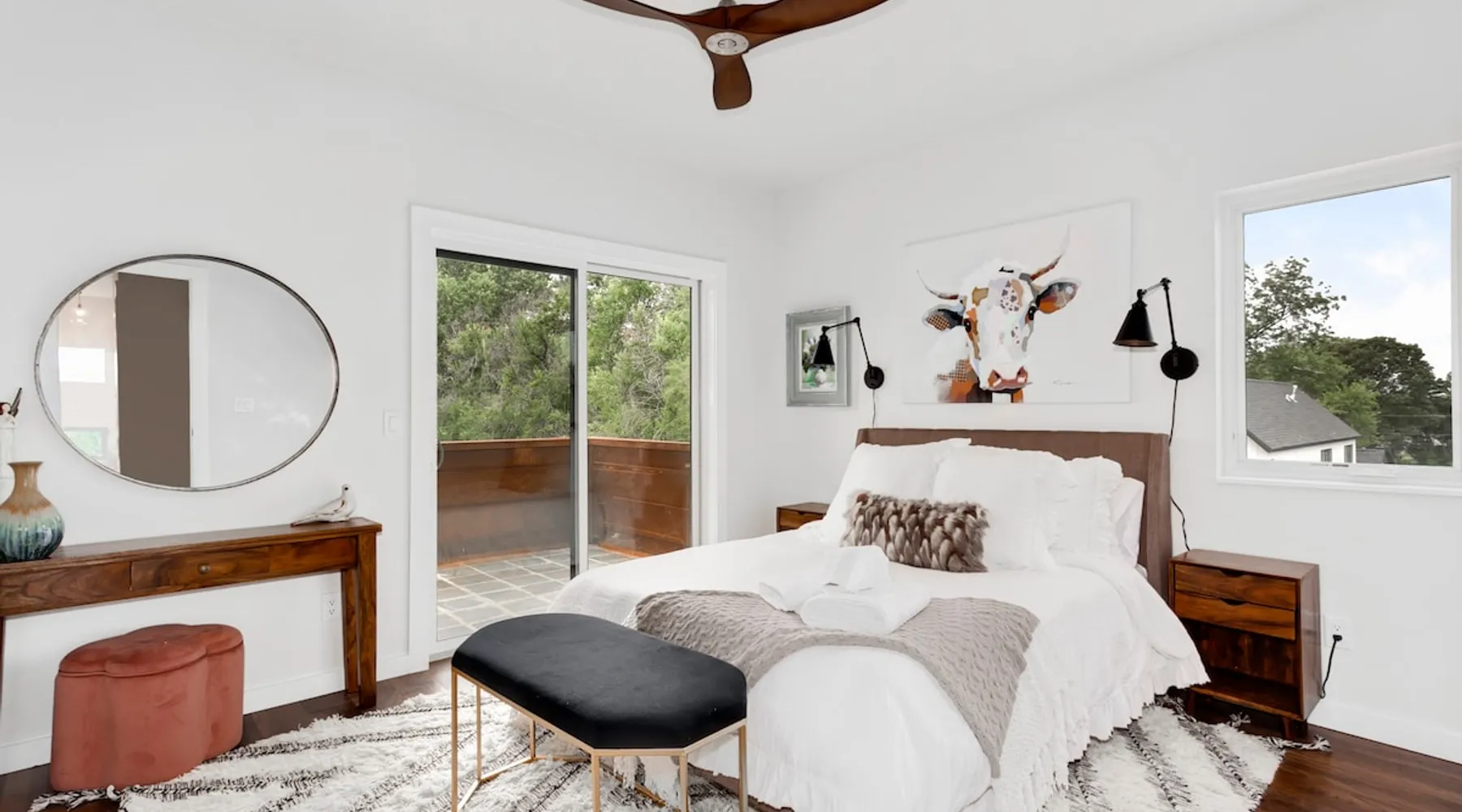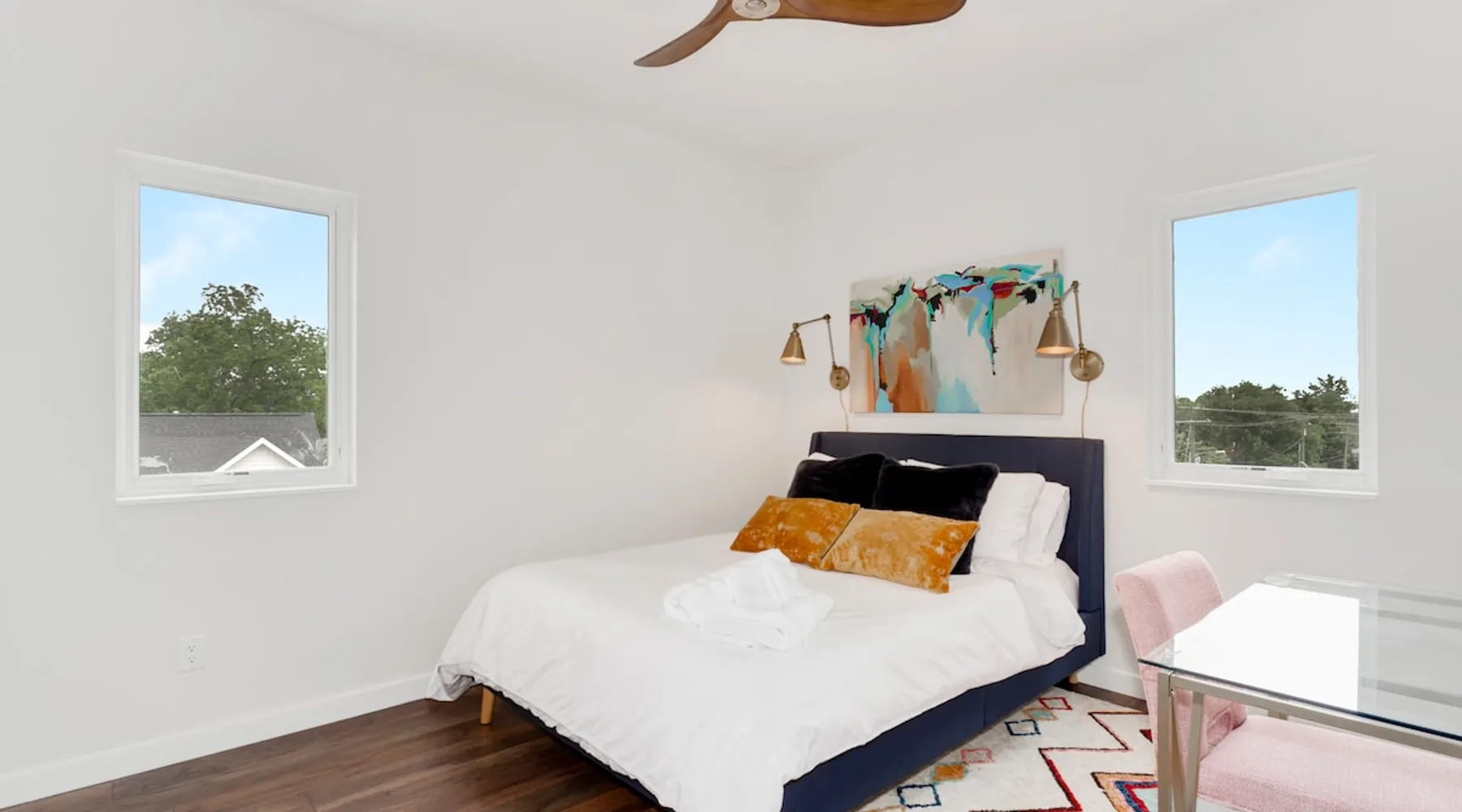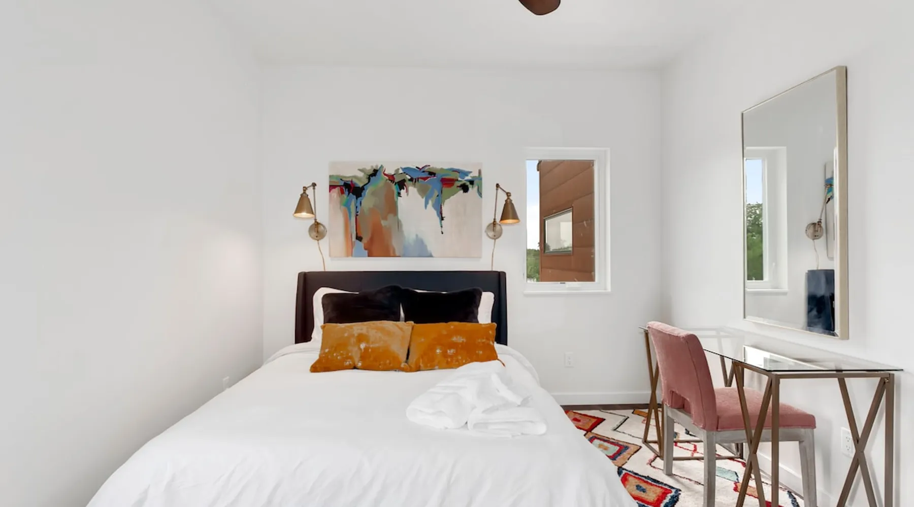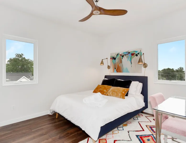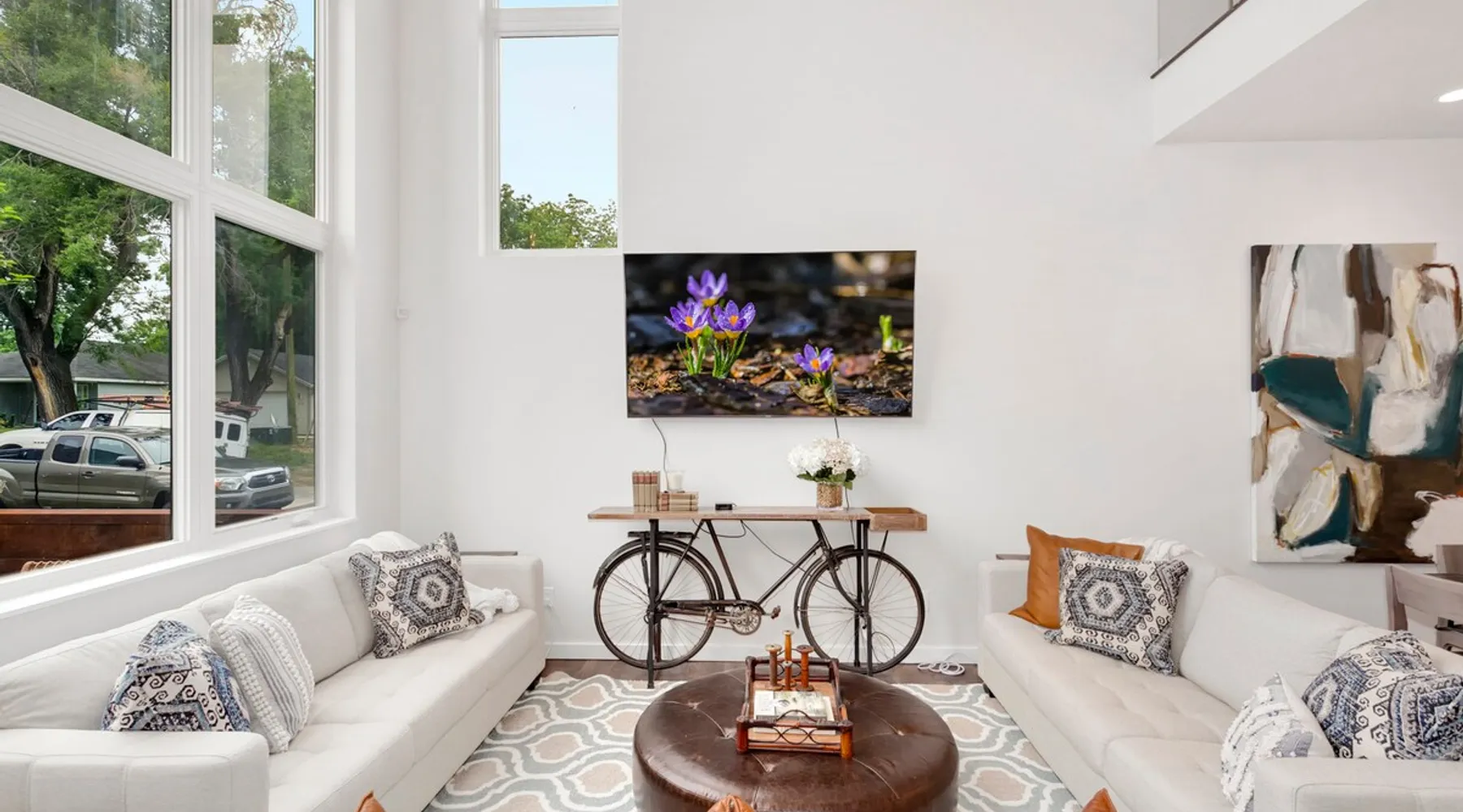Located in the Bentonville Market District, Terracotta Townhome is a newly built urban loft that is perfect for art lovers, mountain bikers and explorers alike! Drive, walk or bike just MINUTES down the road to experience all Bentonville has to offer. Whether you're looking to shred on our extensive MTB trails, soak in the art at The Momentary or grab a local beer at 8th Street Market, Terracotta Townhome is in the center of it all. The space Highlights: ★ Located right along the bike trail! ★ 2 street bikes available for guest use. ★ Across the street from The Momentary! ★ 5-minute walk to 8th St. Market. ★ 0.8 miles from the Bentonville Square - easily walkable! ★ 1.5 miles from Crystal Bridges. ★ THREE blocks from the Walmart Home Office. ★ Within 10 minutes of Bentonville's premier MTB trails. ★ Sleeps up to 8 guests! ★ Newly built, with all new appliances. ★ Giant windows with tons of natural light. ★ Large living room with plenty of seating. ★ Dining area with seating for 8. ★ 3 private bedrooms - (1) King (2) Queen (3) Queen. ★ A Full air mattress is also available. ★ Fully stocked kitchen. ★ Fully stocked bathrooms. ★ Games available! ★ Cozy reading and lounging areas throughout. ★ Outdoor patio located at the front of the town home. ★ Step outside and walk the loft's common area! ★ Washer and dryer available for guest use! When you're at home, enjoy our spacious layout, luxury amenities, modern accents, local art and MASSIVE windows - all the perfect backdrop to your time in NWA. Time to get that Bentonville Bucket List ready! Upon entering our home, you'll be greeted by our massive, open concept living space. To the left, you'll see our main lounge area, which is complete with two couches, two lounge chairs and our 65-inch Sony Smart TV with Apple TV and a Sonos sound system. You'll also see our bike-inspired console, which is an ode to the extensive bike trails in NWA! Between the lounge area and the kitchen, you'll see our 8-top dining table as well as 3 barstools lined up against our stunning granite island. Our kitchen is fully stocked with all the luxury amenities you'll need to create your favorite meal or baked goods! Upstairs, you'll find our second lounge area, which features a long couch, lounge chair and 38-inch Samsung Smart TV. At the end of the day, settle into one of our 3 luxury bedrooms: (1) Our Master bedroom, which is complete with a King bed, closet, 38-inch Sony Smart TV and en suite bath with shower. (2) Our Queen bedroom, which is complete with a closet, desk, desk chair and nearby bath. (3) Our third bedroom, which is complete with a Queen bed, closet, vanity, vanity chair and nearby bath. We also have a Full air mattress that can be found in the third-floor closet. Head outside to enjoy our front patio, lounge on our third-floor balcony or take a walk around the loft's common area! There, you'll find gorgeous landscaping, inspired architecture and some of the nicest people you'll ever meet. You can also grab one of our bikes and hop on the trail, which is located RIGHT outside our door. Guest access Guest Access & Amenities: Guests will have access to the entire pictured house, all appliances, any kitchen supplies, and all amenities. We provide amenities in the bathrooms, kitchen, and laundry room with enough to get you started on your trip. We do not provide excess for more than a couple of days' worth, and guests are responsible for purchasing these items for personal use if they run out during their stay. Exterior cameras may be at the property for security purposes. Other things to note ★ Not pet-friendly. House Rules that are strictly enforced: - Check-in is any time after 3:00 PM. - No parties or events are allowed unless your request was pre-arranged with us, the host, and our event fee has been paid. If an un-approved party or event is discovered, you will be fined $1000. - This property is not pet-friendly. Pets discovered at the property will incur a fine of $400. - Unauthorized checkout delays will incur a fine of $100 per hour. - This is a non-smoking home. If you smoke in the home, you will be fined $1000 plus the cost of any smoke remediation necessary.