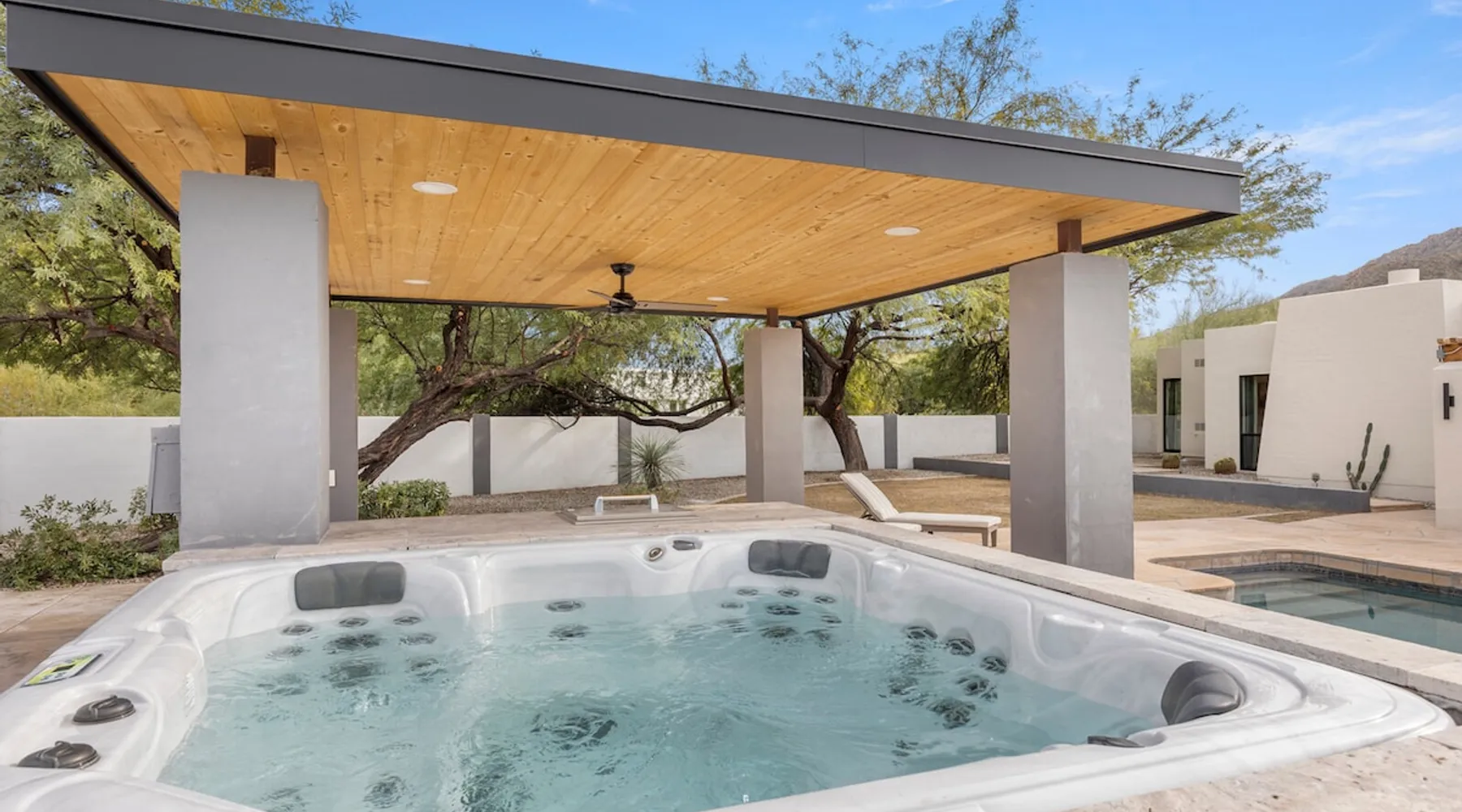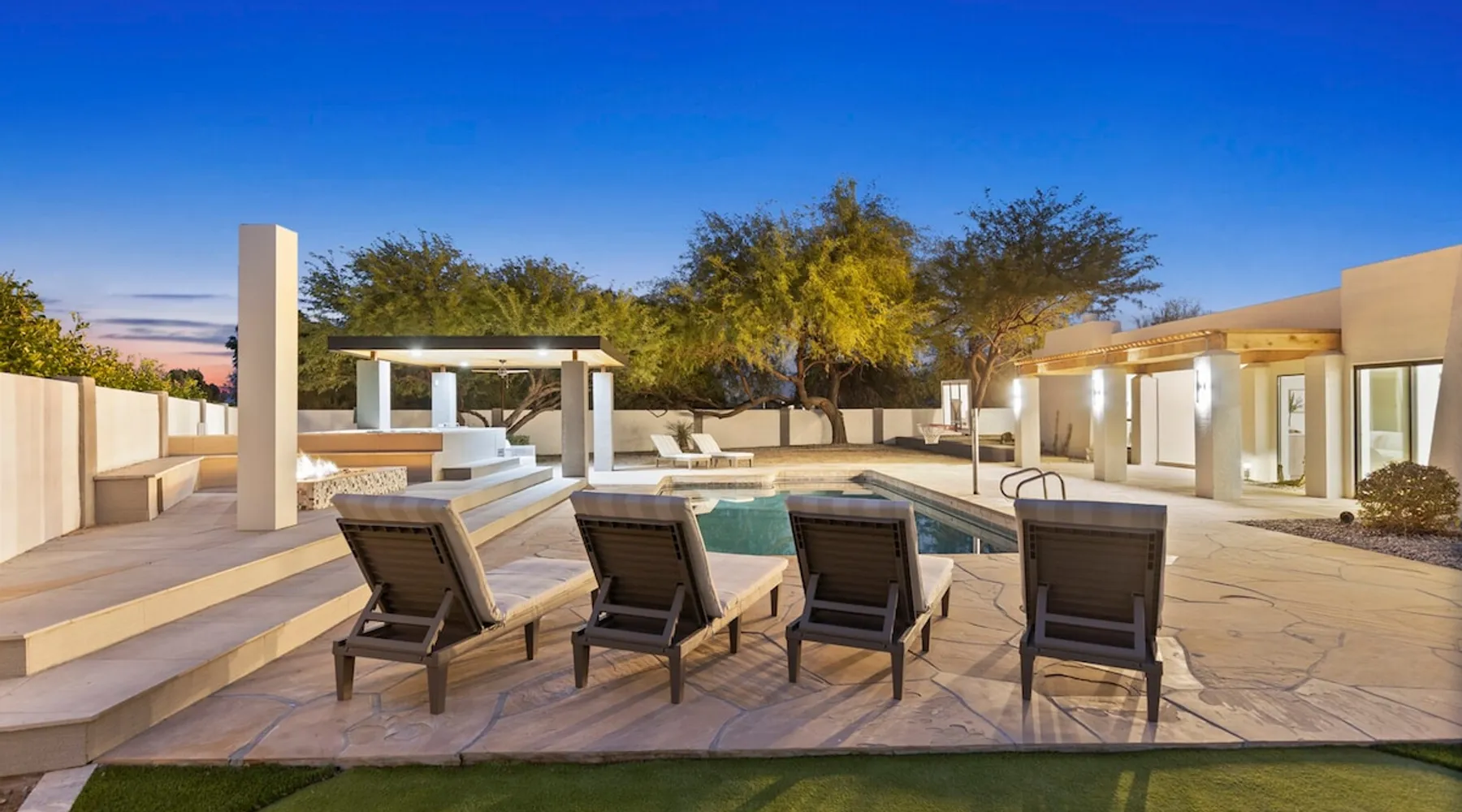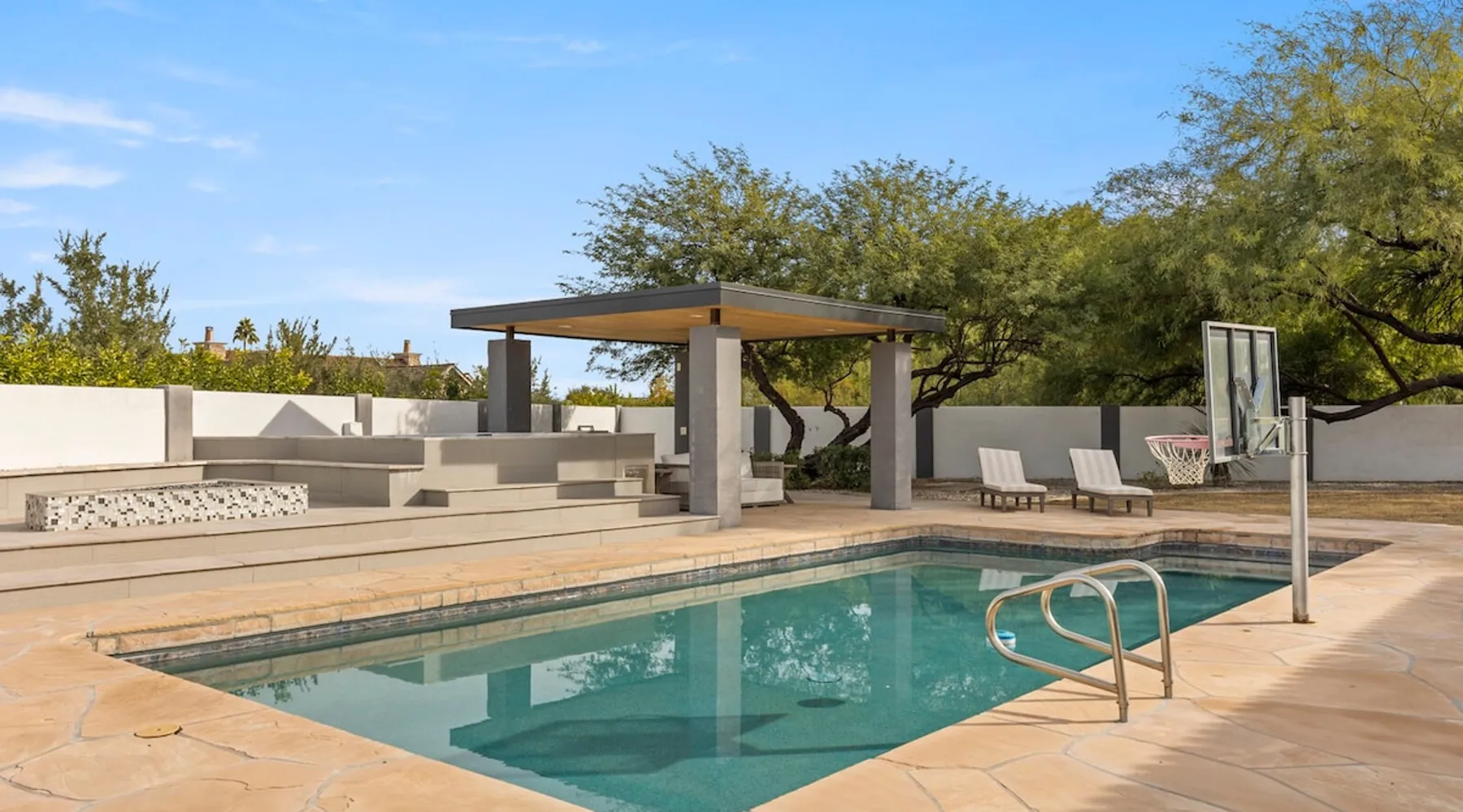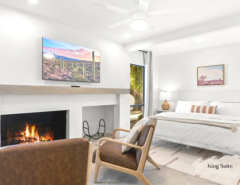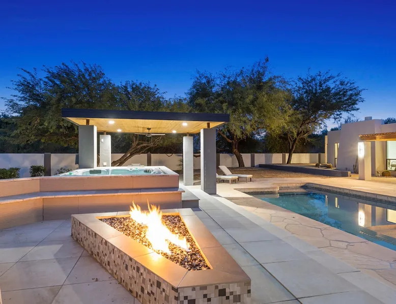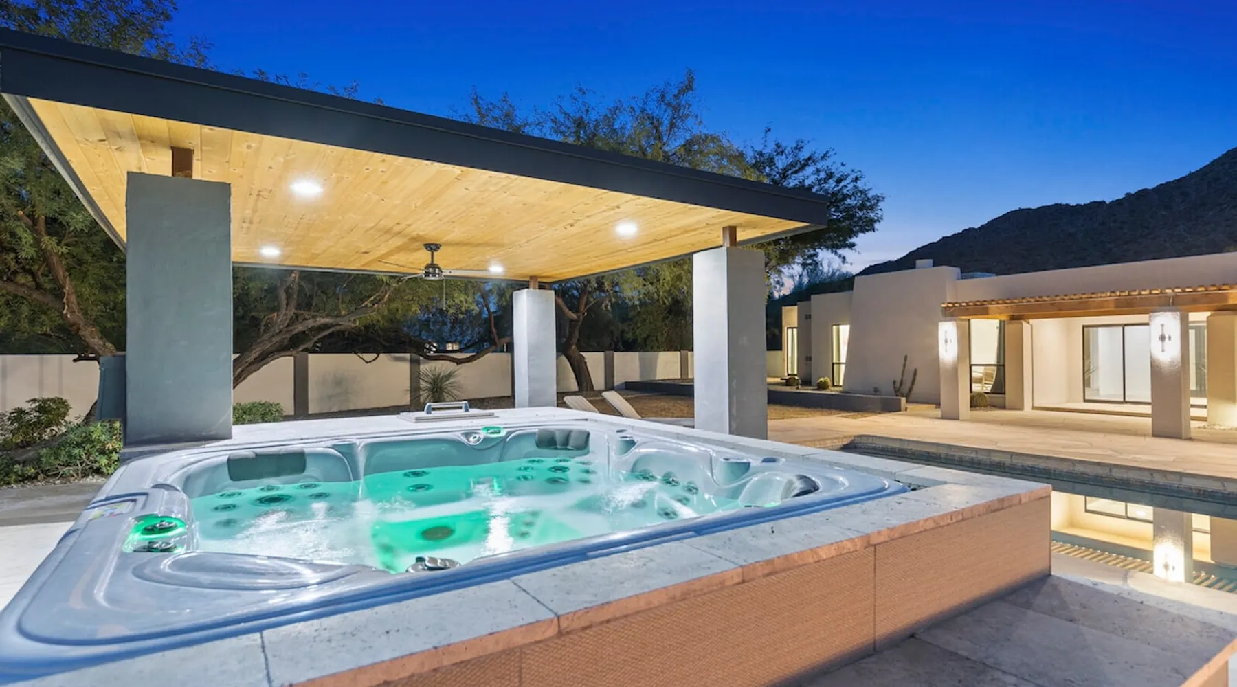 Nothing says luxury like staying on Billionaire Row, backdropped by the magnetic Camelback Mountains with views of The Praying Monk and walking distance to Sanctuary Resort & Spa! The space Welcome to Amangiri Scottsdale Welcome to another stunning estate by Hotel Home Stays, nestled in the heart of Arizona’s most exclusive neighborhood, Paradise Valley. This luxurious property is just a short walk from some of Arizona’s top destinations: the world-renowned Sanctuary Resort Spa, Mountain Shadows Resort with world-class golf, the iconic El Chorro for exceptional dining, and the scenic Camelback Mountain hiking trails. Luxury and convenience come together in this desert oasis. Key Highlights >> Exclusive location on Billionaire Row >> Breathtaking views of Camelback Mountain >> High-speed internet – Ideal for a “work-cation” >> Heated pool with water basketball (additional fee) >> Complimentary hot tub >> Outdoor kitchen, fire pit, and dining area >> Game Room & Mini Golf for fun and relaxation >> Pet-friendly (up to 2 dogs, 25 lbs max) >> Concierge service for personalized vacation planning >> 5 Smart TVs with access to all your favorite streaming apps Convenient Location: ** 10 minutes to the Biltmore ** 8 minutes to Old Town Scottsdale and Scottsdale Fashion Square ** 15 minutes to Kierland Commons, Scottsdale Quarter, and TPC Golf Course ** 15 minutes to Scottsdale Airport and Sky Harbor The Estate Step into this desert modern paradise, where every detail has been designed for comfort and relaxation. The open floor plan allows for seamless flow between spaces, from the gourmet kitchen to the spacious living areas. The chef’s kitchen is equipped with top-of-the-line appliances, offering everything you need to prepare a gourmet meal. The backyard oasis is where you’ll truly unwind. Swim in the sparkling heated pool, relax in the hot tub, or enjoy an al fresco meal on the outdoor patio, all while taking in the panoramic views of Camelback Mountain. There’s also a mini golf course, outdoor fire pit, and kitchen for entertaining. Whether you’re looking for adventure or relaxation, this estate has it all. Bedrooms & Sleeping Options Retreat to one of the luxurious bedrooms at the end of your day. Each room is thoughtfully designed with comfort and privacy in mind. Master Bedroom King bed with en-suite bathroom featuring a modern glass shower Spacious walk-in closet Private sitting area with TV Private patio with mountain views King Guest Suite King bed Private sitting area with fireplace (candles only) and TV Queen Bedroom (x3) 1 Queen bed with direct access to the backyard & closet 2nd Queen bed with reach-in closet with TV 3rd Queen bed with reach-in closet Game Room Bedroom Twin daybed and TV Sleeping Options: 2 Kings, 3 Queens, 1 Twin Daybed, 1 Queen Air Mattress, 1 Travel Crib Luxury Amenities >> Concierge Service – Let our team assist with transportation, bookings, special requests, and more >> Heated Pool (additional fee) – Please provide 48 hours' notice for pool heating requests >> Hot Tub – Complimentary access to the hot tub >> Fully stocked kitchen – Includes a coffee bar, mixology bar, kids' plates, cups, and essential appliances >> Game Room & Mini Golf – Fun for all ages >> Outdoor Fire Pit & Kitchen – Perfect for entertaining >> All-natural stone flooring throughout the home Guest Occupancy Maximum occupancy: 14 Pet Policy: Up to 2 dogs allowed (less than 25 lbs each). $250 fee per dog required upfront. Sorry, no cats. The Space The entire home, including the garage, is available during your stay. The garage features code entry and a button for access. Please note there is a step into the home and a few steps inside. This estate is situated on the side of a mountain, so you may encounter local wildlife during your stay. We recommend keeping trash in the garage to avoid attracting critters. Who is Hotel Home Stays? At Hotel Home Stays, we specialize in providing luxury vacation experiences that promote true peace for the soul. Our team ensures that every detail is taken care of with exceptional service, and our homes are designed with the finest comforts in mind. Protection: We go above and beyond with mattress encasements, hypoallergenic bedding, and cleanliness standards that exceed expectations. Effortless Experience: No need for keys—our door codes provide 24-hour access. All check-in details are provided via text and email. Excellence: Our team is here for you throughout your stay, providing local insights, fulfilling special requests, and handling any needs promptly. Complimentary Concierge Service Elevate your vacation with our complimentary concierge service. Our concierge can assist with: Transportation (car services, rentals) Spa treatments and reservations Private chef bookings Grocery delivery via InstaCart Babysitting services And much more! Book your stay at Amangiri Scottsdale and indulge in a luxury experience designed to provide ultimate relaxation and convenience. We look forward to hosting you in this exclusive desert retreat! Other things to note Guest Interaction Your personal concierge will reach out to you prior to your arrival. Feel free to ask about additional services such as personal chefs, trusted babysitters, and more! Security Cameras For your safety and insurance purposes, a security camera system is in place at the property, specifically around the pool area. --- One camera is located at the front door --- One camera overlooks the pool area in the back Pet Policy: -- Dogs under 20lbs each are allowed, with a maximum of two per stay. -- Written approval and a $250 fee per pet are required. -- Unauthorized pets may result in removal without refund and fines up to $1,500. -- Service animals, providing essential support to their owners, are exempt from this policy. They must be with their owners at all times, and emotional support animals do not qualify. -- Unfortunately, cats are not permitted due to severe guest all