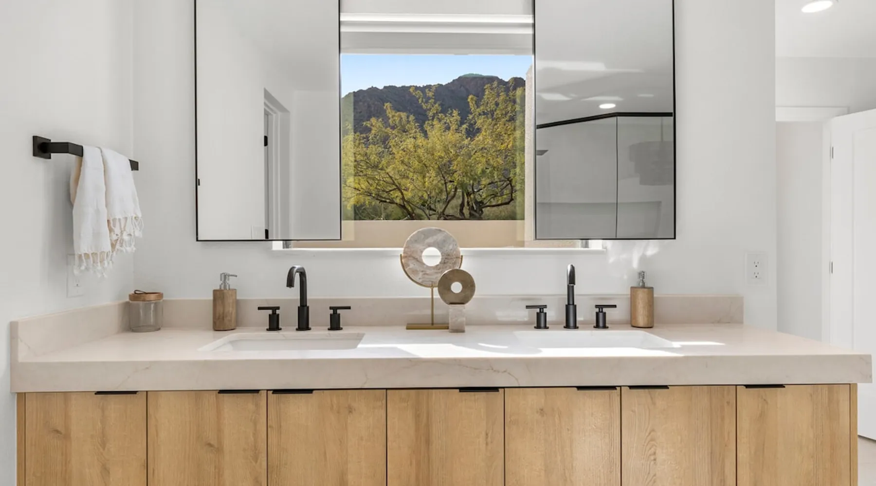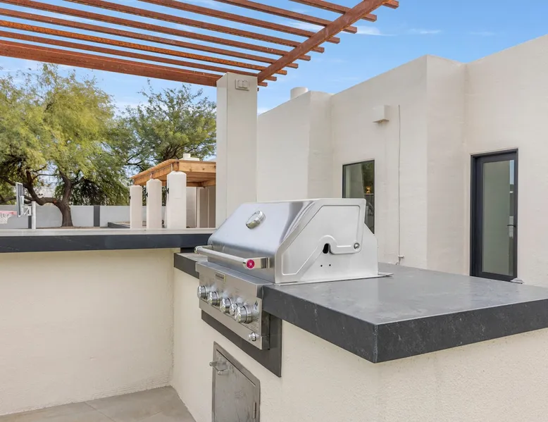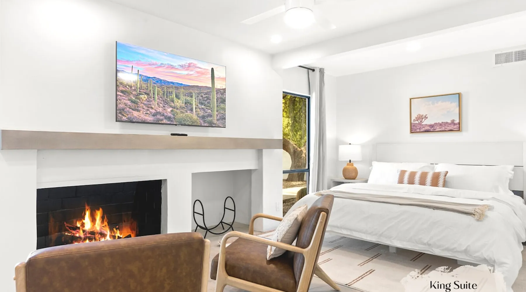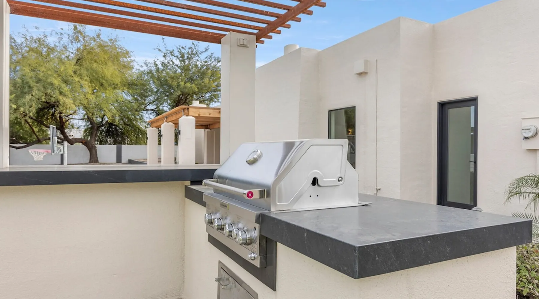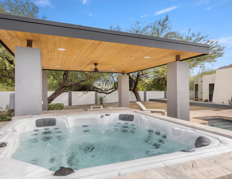 Nothing says luxury like staying on Billionaire Row, backdropped by the magnetic Camelback Mountains with views of The Praying Monk and walking distance to Sanctuary Resort & Spa! The space Welcome to Amangiri Scottsdale Welcome to another stunning estate by Hotel Home Stays, nestled in the heart of Arizona’s most exclusive neighborhood, Paradise Valley. This luxurious property is just a short walk from some of Arizona’s top destinations: the world-renowned Sanctuary Resort Spa, Mountain Shadows Resort with world-class golf, the iconic El Chorro for exceptional dining, and the scenic Camelback Mountain hiking trails. Luxury and convenience come together in this desert oasis. Key Highlights >> Exclusive location on Billionaire Row >> Breathtaking views of Camelback Mountain >> High-speed internet – Ideal for a “work-cation” >> Heated pool with water basketball (additional fee) >> Complimentary hot tub >> Outdoor kitchen, fire pit, and dining area >> Game Room & Mini Golf for fun and relaxation >> Pet-friendly (up to 2 dogs, 25 lbs max) >> Concierge service for personalized vacation planning >> 5 Smart TVs with access to all your favorite streaming apps Convenient Location: ** 10 minutes to the Biltmore ** 8 minutes to Old Town Scottsdale and Scottsdale Fashion Square ** 15 minutes to Kierland Commons, Scottsdale Quarter, and TPC Golf Course ** 15 minutes to Scottsdale Airport and Sky Harbor The Estate Step into this desert modern paradise, where every detail has been designed for comfort and relaxation. The open floor plan allows for seamless flow between spaces, from the gourmet kitchen to the spacious living areas. The chef’s kitchen is equipped with top-of-the-line appliances, offering everything you need to prepare a gourmet meal. The backyard oasis is where you’ll truly unwind. Swim in the sparkling heated pool, relax in the hot tub, or enjoy an al fresco meal on the outdoor patio, all while taking in the panoramic views of Camelback Mountain. There’s also a mini golf course, outdoor fire pit, and kitchen for entertaining. Whether you’re looking for adventure or relaxation, this estate has it all. Bedrooms & Sleeping Options Retreat to one of the luxurious bedrooms at the end of your day. Each room is thoughtfully designed with comfort and privacy in mind. Master Bedroom King bed with en-suite bathroom featuring a modern glass shower Spacious walk-in closet Private sitting area with TV Private patio with mountain views King Guest Suite King bed Private sitting area with fireplace (candles only) and TV Queen Bedroom (x3) 1 Queen bed with direct access to the backyard & closet 2nd Queen bed with reach-in closet with TV 3rd Queen bed with reach-in closet Game Room Bedroom Twin daybed and TV Sleeping Options: 2 Kings, 3 Queens, 1 Twin Daybed, 1 Queen Air Mattress, 1 Travel Crib Luxury Amenities >> Concierge Service – Let our team assist with transportation, bookings, special requests, and more >> Heated Pool (additional fee) – Please provide 48 hours' notice for pool heating requests >> Hot Tub – Complimentary access to the hot tub >> Fully stocked kitchen – Includes a coffee bar, mixology bar, kids' plates, cups, and essential appliances >> Game Room & Mini Golf – Fun for all ages >> Outdoor Fire Pit & Kitchen – Perfect for entertaining >> All-natural stone flooring throughout the home Guest Occupancy Maximum occupancy: 14 Pet Policy: Up to 2 dogs allowed (less than 25 lbs each). $250 fee per dog required upfront. Sorry, no cats. The Space The entire home, including the garage, is available during your stay. The garage features code entry and a button for access. Please note there is a step into the home and a few steps inside. This estate is situated on the side of a mountain, so you may encounter local wildlife during your stay. We recommend keeping trash in the garage to avoid attracting critters. Who is Hotel Home Stays? At Hotel Home Stays, we specialize in providing luxury vacation experiences that promote true peace for the soul. Our team ensures that every detail is taken care of with exceptional service, and our homes are designed with the finest comforts in mind. Protection: We go above and beyond with mattress encasements, hypoallergenic bedding, and cleanliness standards that exceed expectations. Effortless Experience: No need for keys—our door codes provide 24-hour access. All check-in details are provided via text and email. Excellence: Our team is here for you throughout your stay, providing local insights, fulfilling special requests, and handling any needs promptly. Complimentary Concierge Service Elevate your vacation with our complimentary concierge service. Our concierge can assist with: Transportation (car services, rentals) Spa treatments and reservations Private chef bookings Grocery delivery via InstaCart Babysitting services And much more! Book your stay at Amangiri Scottsdale and indulge in a luxury experience designed to provide ultimate relaxation and convenience. We look forward to hosting you in this exclusive desert retreat! Other things to note Guest Interaction Your personal concierge will reach out to you prior to your arrival. Feel free to ask about additional services such as personal chefs, trusted babysitters, and more! Security Cameras For your safety and insurance purposes, a security camera system is in place at the property, specifically around the pool area. --- One camera is located at the front door --- One camera overlooks the pool area in the back Pet Policy: -- Dogs under 20lbs each are allowed, with a maximum of two per stay. -- Written approval and a $250 fee per pet are required. -- Unauthorized pets may result in removal without refund and fines up to $1,500. -- Service animals, providing essential support to their owners, are exempt from this policy. They must be with their owners at all times, and emotional support animals do not qualify. -- Unfortunately, cats are not permitted due to severe guest all