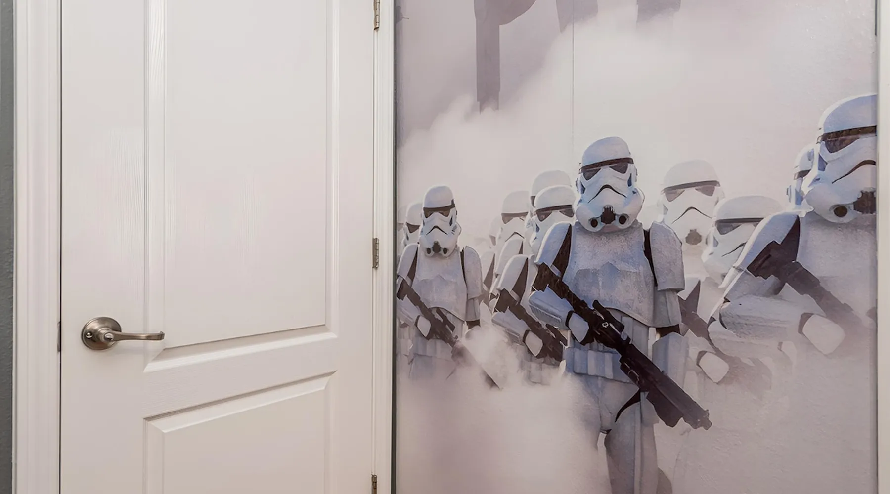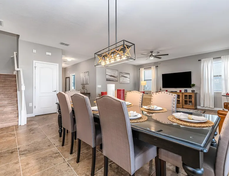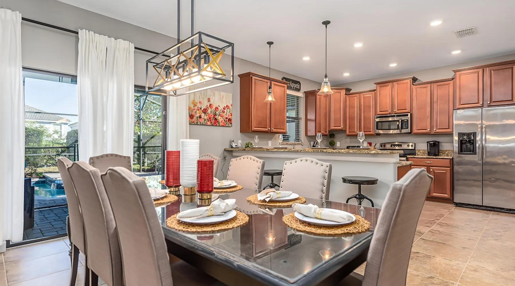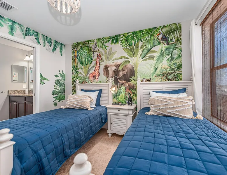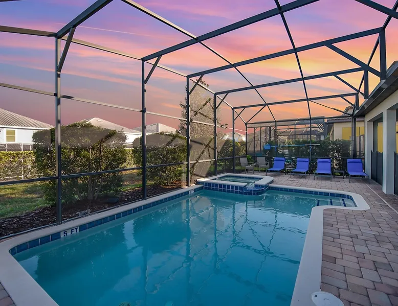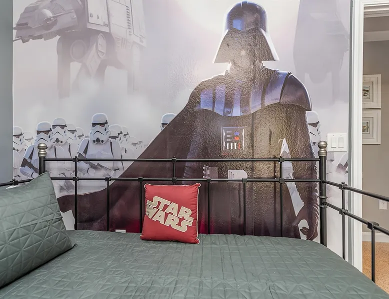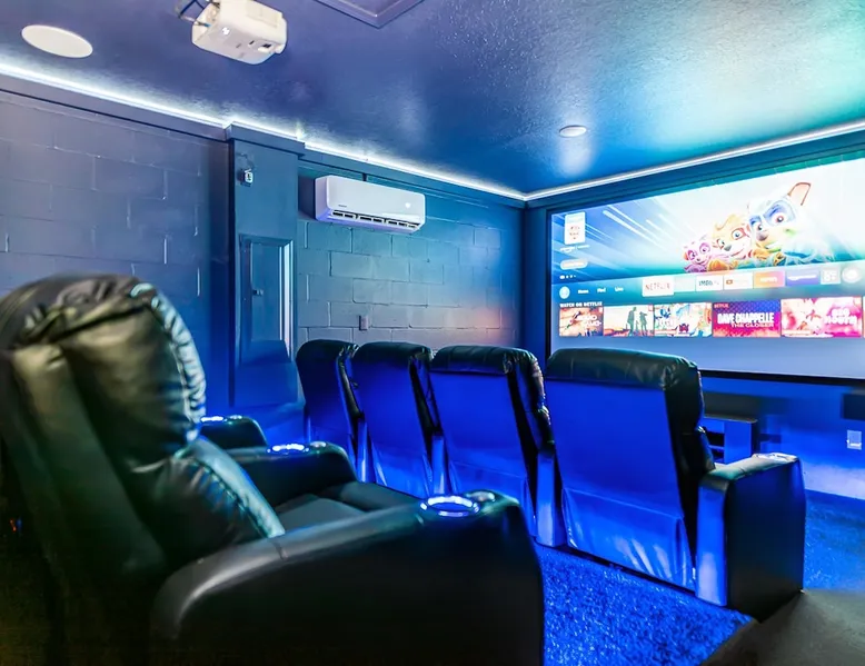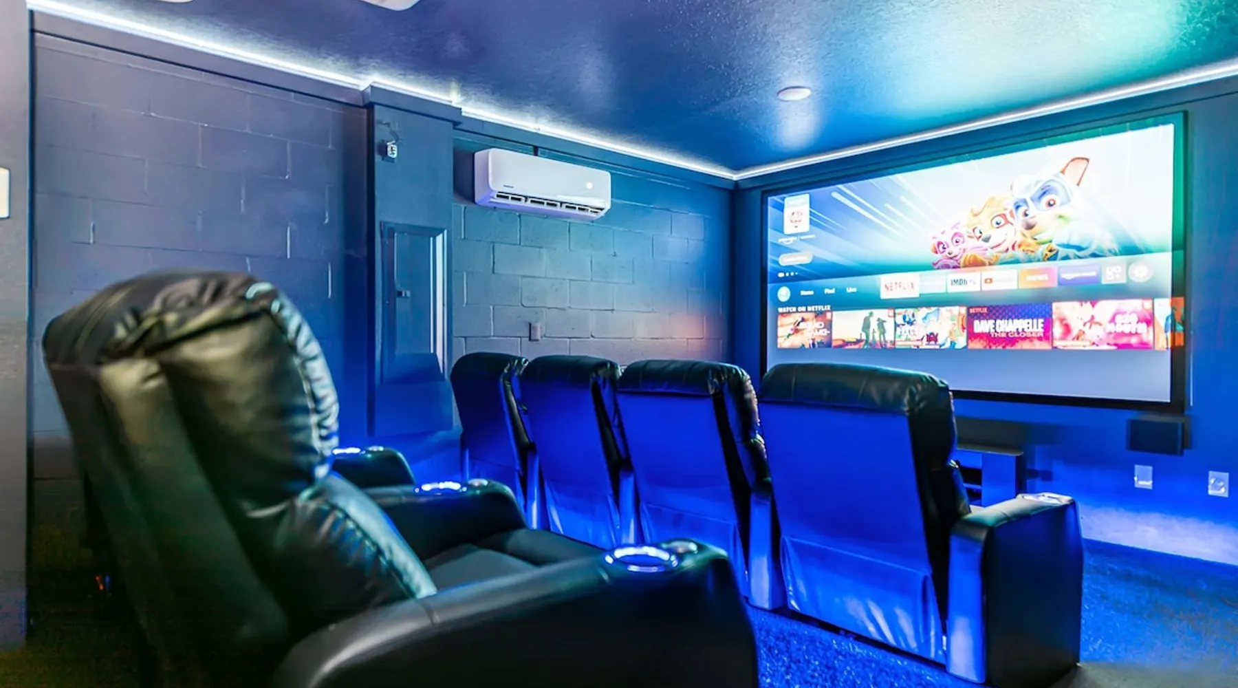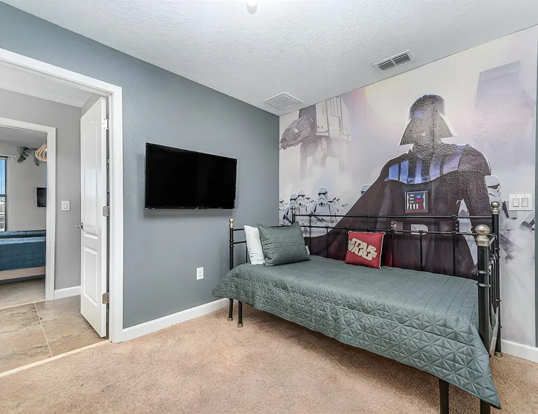 ✨ Ultimate Family Escape: ✔ 6BR villa w/ private theater & game room ✔ Themed kids’ rooms (Star Wars + Safari) ✔ Heated pool/spa + walk to lazy river ✔ 9 min to Disney • 21 min to Universal ✔ Resort perks: Waterpark, tennis, golf, 24/7 security 🔥 Book now—theater & themed rooms sell out fast! The space Spacious villa perfect for families and friends looking to entertain or unwind. The living area is bright and inviting, with comfortable seating and a view of the private pool. A movie theater and game room add extra fun for all ages. **Highlights** » Family friendly with movie theater and gaming station, Star Wars & Safari themed kids rooms » Champions Gate resort amenities included and access to championship golf » Near Disney World, Universal Studios, golf, shopping & dining » Relax in your crystal clear pool, bubbling spa » Walk to the Clubhouse lazy river, splash pad, waterslide, gym, restaurant and more **Main Floor** » Bedroom 1: King bed, ensuite bathroom, flat-screen TV » Bedroom 2: Queen bed, full bathroom, flat-screen TV » Guest bathroom with stand-up shower and pool access **Upstairs** » Bedroom 3: Queen bed, flat-screen TV » Bedroom 4: Star Wars room with two twin beds, Jack & Jill bathroom » Bedroom 5: Safari room with two twin beds, Jack & Jill bathroom » Bedroom 6: King bed, ensuite bathroom, flat-screen TV **Garage Theater & Game Room** » Massive projector, surround sound, plush tiered recliners » Xbox & Sony systems with gaming chairs » Temperature-controlled for year-round enjoyment» **General Amenities** » Air conditioning & heating » Bed linens, bath and pool towels » Complimentary Wi-Fi, cable, streaming channels » Initial supply of toiletries » Full laundry facilities **Kitchen Amenities** » Breakfast bar » Blender, coffee maker, microwave » Full cookware and dining ware » GE stainless steel electric stove, oven, refrigerator **Pool Amenities** » Lounge chairs, BBQ grill » Dining table & chairs » Private pool with jetted spa - note: heater may not operate under 55 F temperature outside **Starter package** » 2 rolls of toilet paper per bathroom » 1 paper towel roll in the kitchen » 2 kitchen trash bags » Dishwasher detergent » Laundry detergent pods » Bar hand soap for each bathroom sink » 2-in-1 shampoo per shower Guest access Guests will receive a secure door code and resort registration for entry and parking. You'll enjoy exclusive access to the whole villa, including six spacious bedrooms and six bathrooms, perfect for families and groups of friends. You can relax in the private pool and unwind in the soothing jetted spa, anytime you like. The game room and movie theater provide entertainment for everyone, ensuring fun-filled evenings. With a fully equipped kitchen, you can prepare meals together and enjoy them at the dining area. Additionally, you'll have access to Champions Gate resort amenities, such as the lazy river and gym. Other things to note ***** Sample 5 Star Reviews » "The home was so comfortable and nice. We felt right at home! Erin was also super friendly and communicated very well!" » "We really enjoyed everything about the home. Location was perfect. The communication with the management team was excellent. This place should definitely be among the top 10 in the Champions Gate community." » "Great neighborhood, pool was warmest I have ever been in. Resort was in walking distance"