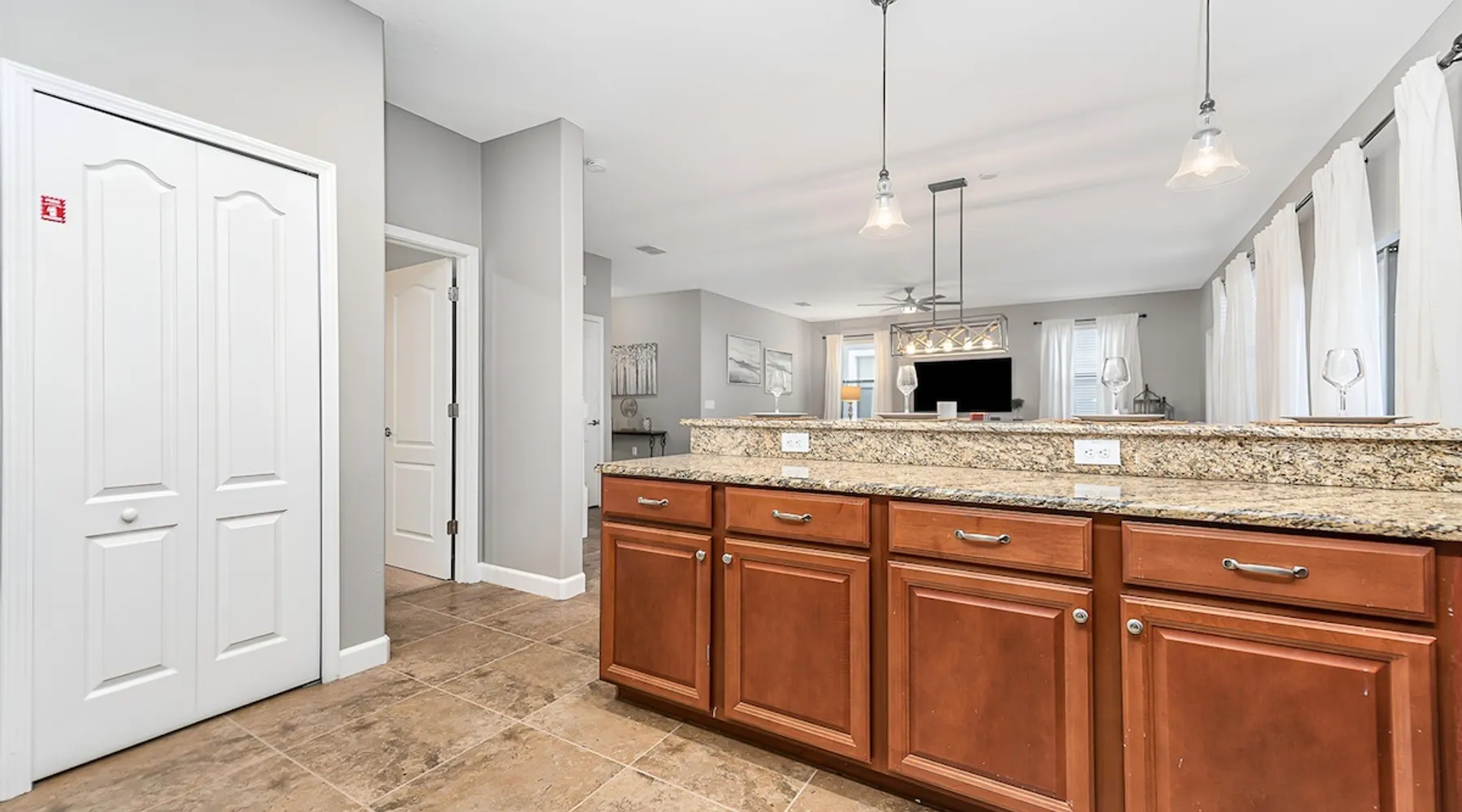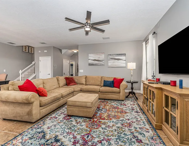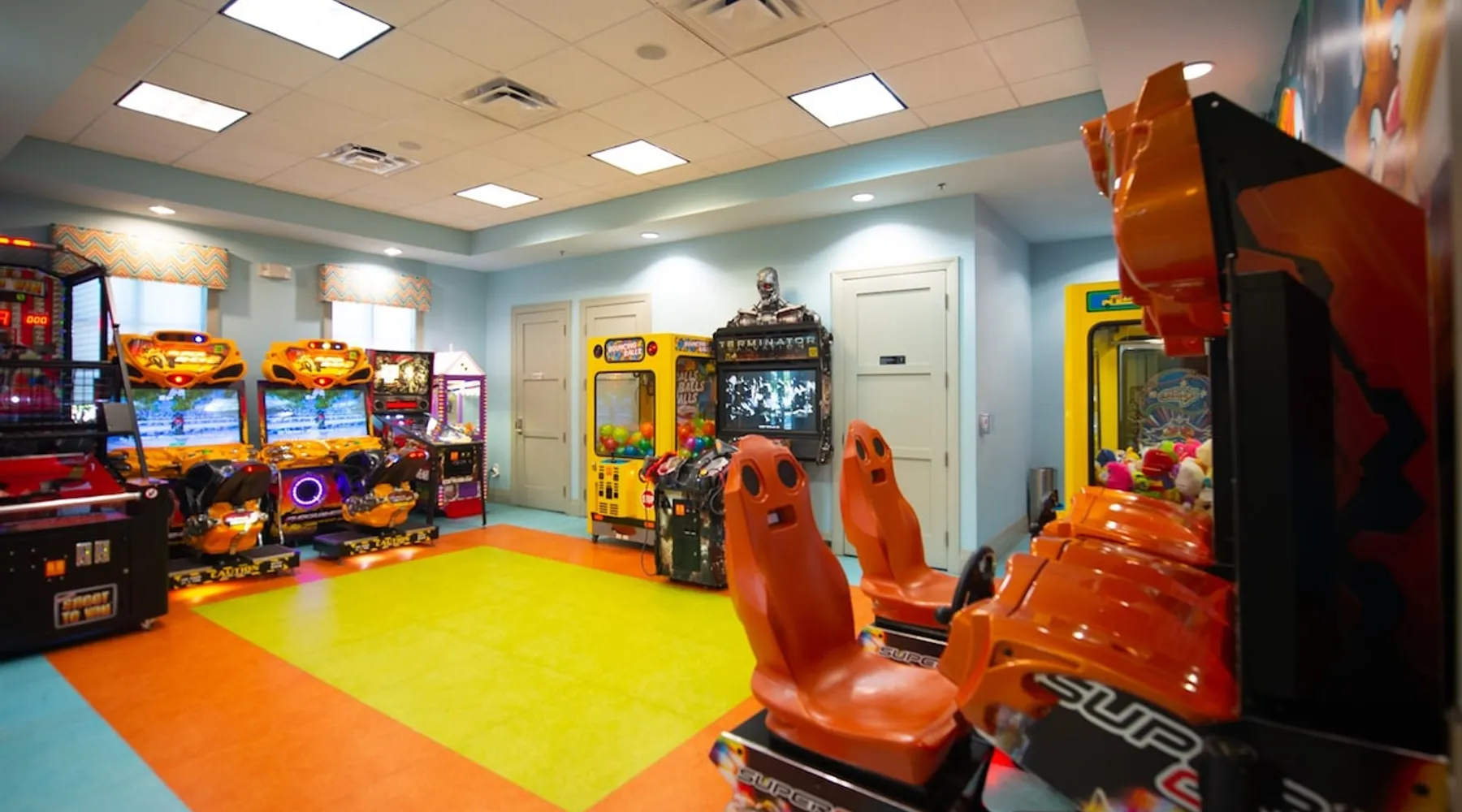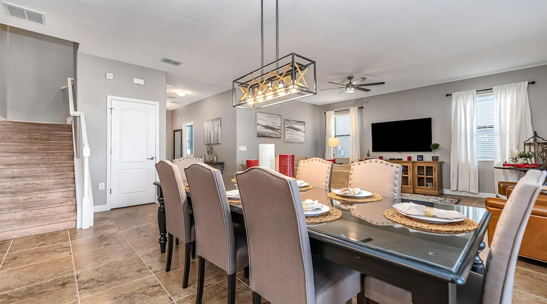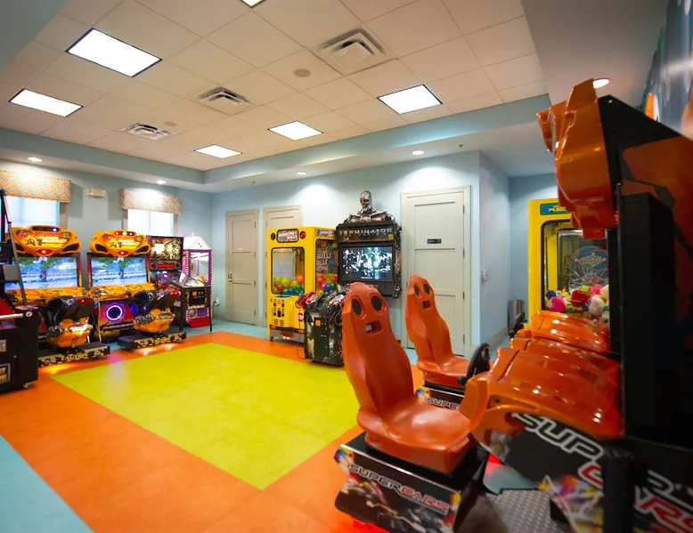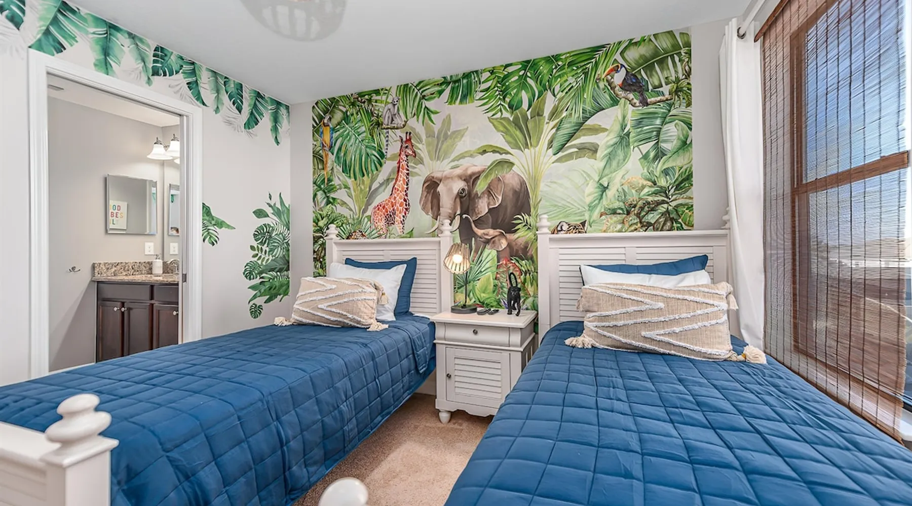 ✨ Ultimate Family Escape: ✔ 6BR villa w/ private theater & game room ✔ Themed kids’ rooms (Star Wars + Safari) ✔ Heated pool/spa + walk to lazy river ✔ 9 min to Disney • 21 min to Universal ✔ Resort perks: Waterpark, tennis, golf, 24/7 security 🔥 Book now—theater & themed rooms sell out fast! The space Spacious villa perfect for families and friends looking to entertain or unwind. The living area is bright and inviting, with comfortable seating and a view of the private pool. A movie theater and game room add extra fun for all ages. **Highlights** » Family friendly with movie theater and gaming station, Star Wars & Safari themed kids rooms » Champions Gate resort amenities included and access to championship golf » Near Disney World, Universal Studios, golf, shopping & dining » Relax in your crystal clear pool, bubbling spa » Walk to the Clubhouse lazy river, splash pad, waterslide, gym, restaurant and more **Main Floor** » Bedroom 1: King bed, ensuite bathroom, flat-screen TV » Bedroom 2: Queen bed, full bathroom, flat-screen TV » Guest bathroom with stand-up shower and pool access **Upstairs** » Bedroom 3: Queen bed, flat-screen TV » Bedroom 4: Star Wars room with two twin beds, Jack & Jill bathroom » Bedroom 5: Safari room with two twin beds, Jack & Jill bathroom » Bedroom 6: King bed, ensuite bathroom, flat-screen TV **Garage Theater & Game Room** » Massive projector, surround sound, plush tiered recliners » Xbox & Sony systems with gaming chairs » Temperature-controlled for year-round enjoyment» **General Amenities** » Air conditioning & heating » Bed linens, bath and pool towels » Complimentary Wi-Fi, cable, streaming channels » Initial supply of toiletries » Full laundry facilities **Kitchen Amenities** » Breakfast bar » Blender, coffee maker, microwave » Full cookware and dining ware » GE stainless steel electric stove, oven, refrigerator **Pool Amenities** » Lounge chairs, BBQ grill » Dining table & chairs » Private pool with jetted spa - note: heater may not operate under 55 F temperature outside **Starter package** » 2 rolls of toilet paper per bathroom » 1 paper towel roll in the kitchen » 2 kitchen trash bags » Dishwasher detergent » Laundry detergent pods » Bar hand soap for each bathroom sink » 2-in-1 shampoo per shower Guest access Guests will receive a secure door code and resort registration for entry and parking. You'll enjoy exclusive access to the whole villa, including six spacious bedrooms and six bathrooms, perfect for families and groups of friends. You can relax in the private pool and unwind in the soothing jetted spa, anytime you like. The game room and movie theater provide entertainment for everyone, ensuring fun-filled evenings. With a fully equipped kitchen, you can prepare meals together and enjoy them at the dining area. Additionally, you'll have access to Champions Gate resort amenities, such as the lazy river and gym. Other things to note ***** Sample 5 Star Reviews » "The home was so comfortable and nice. We felt right at home! Erin was also super friendly and communicated very well!" » "We really enjoyed everything about the home. Location was perfect. The communication with the management team was excellent. This place should definitely be among the top 10 in the Champions Gate community." » "Great neighborhood, pool was warmest I have ever been in. Resort was in walking distance"