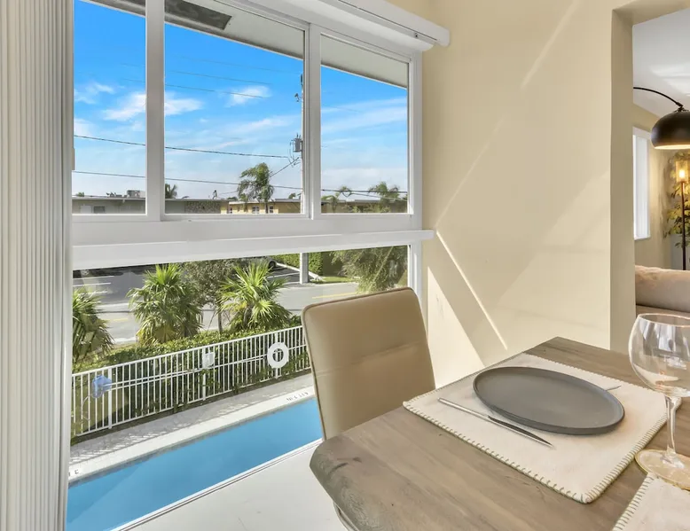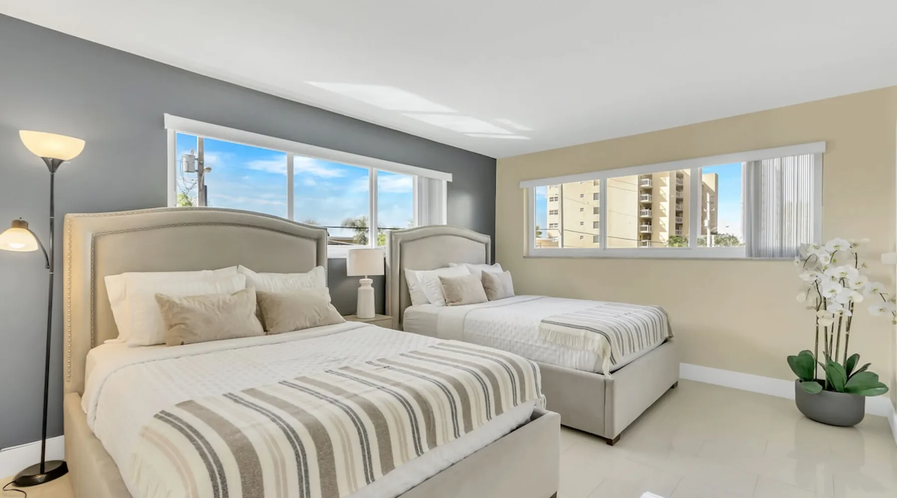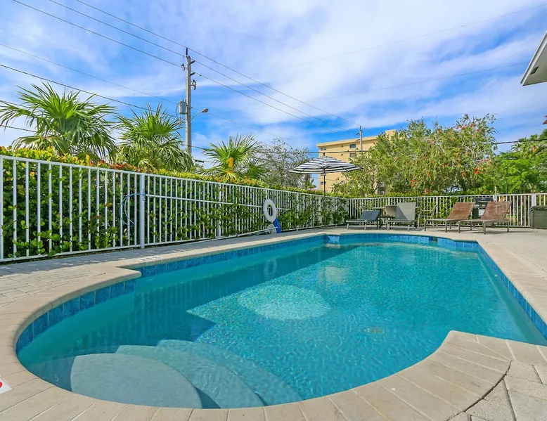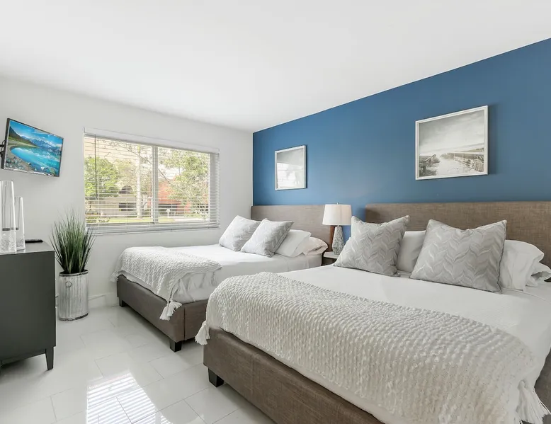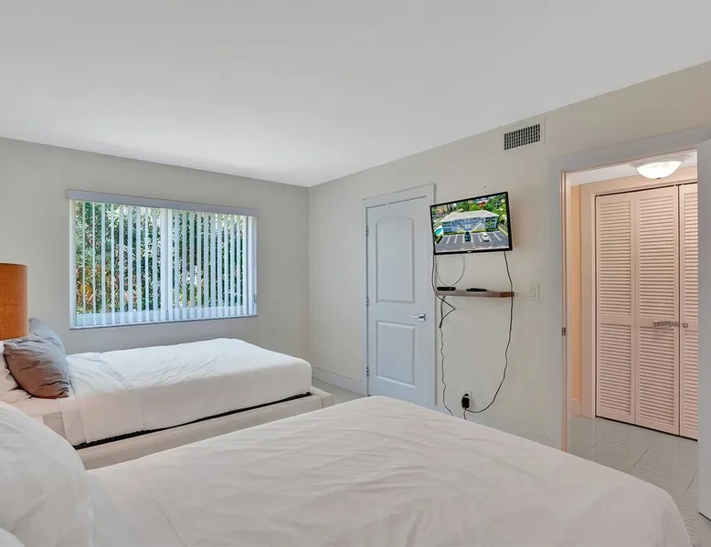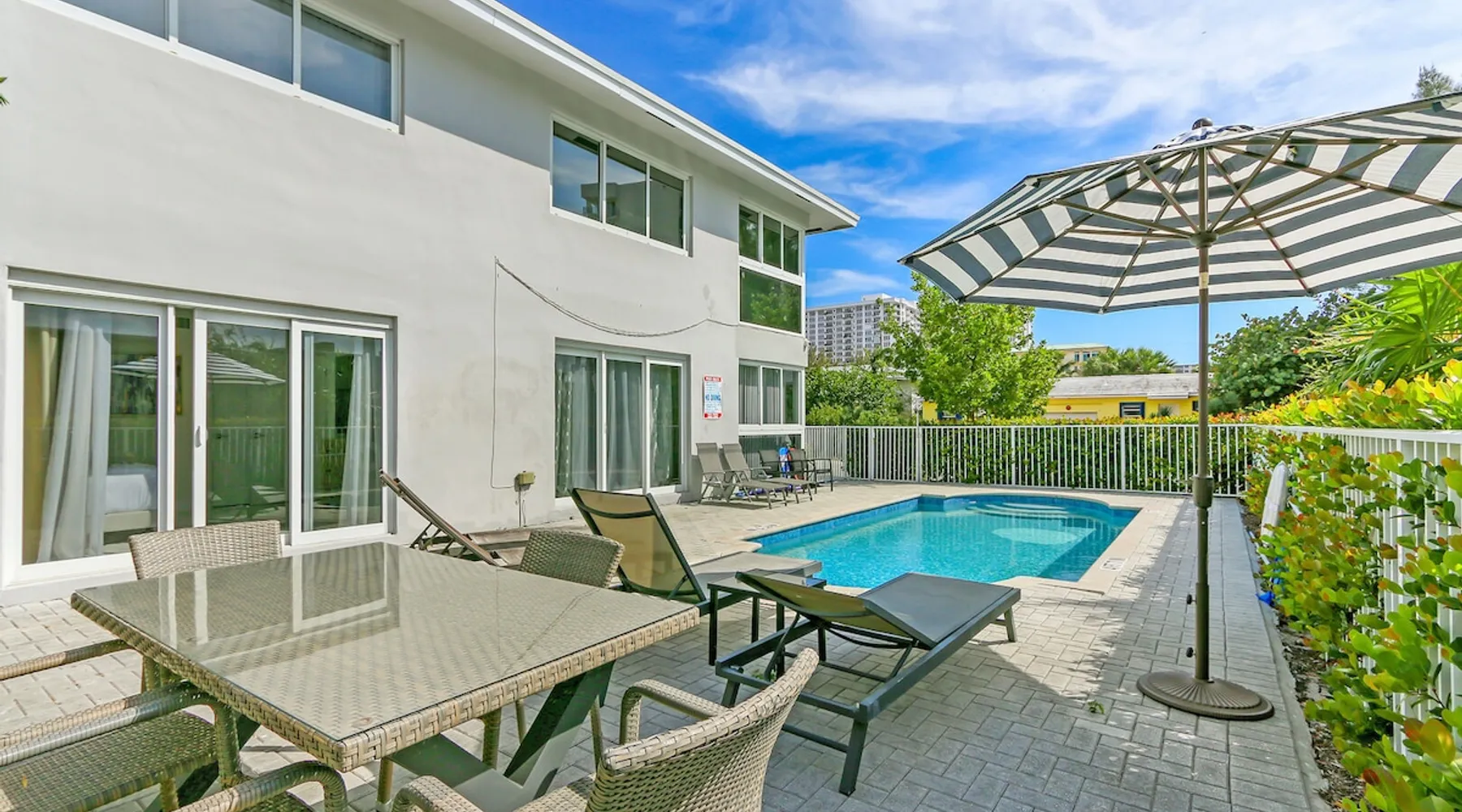 Escape to the laid-back tropical paradise of Pompano Beach at this beachy apartment complex. With 4 units, each featuring 2 bedrooms and a pool accommodates up to 16 guests. Tastefully decorated with modern furnishings, the units offer fully equipped kitchens, laundry facilities, and ensuite bedrooms with comfortable beds and mounted TVs. Enjoy the beach, go scuba diving, or indulge in outdoor activities. Guest access Entire apartment complex. Other things to note 🔹This beachy apartment complex is composed of 4 individual units, each with two bedrooms and two bathrooms (Accommodates a total of 16 guests). 🔹Each unit features it's own washer and dryer. 🔹Units 1 & 2 are located on the ground floor and units 3 & 4 are on the second floor. 🔹Eight free parking spaces are also located at the front of building. 🔹 Please note: The pool heater is currently not operational.