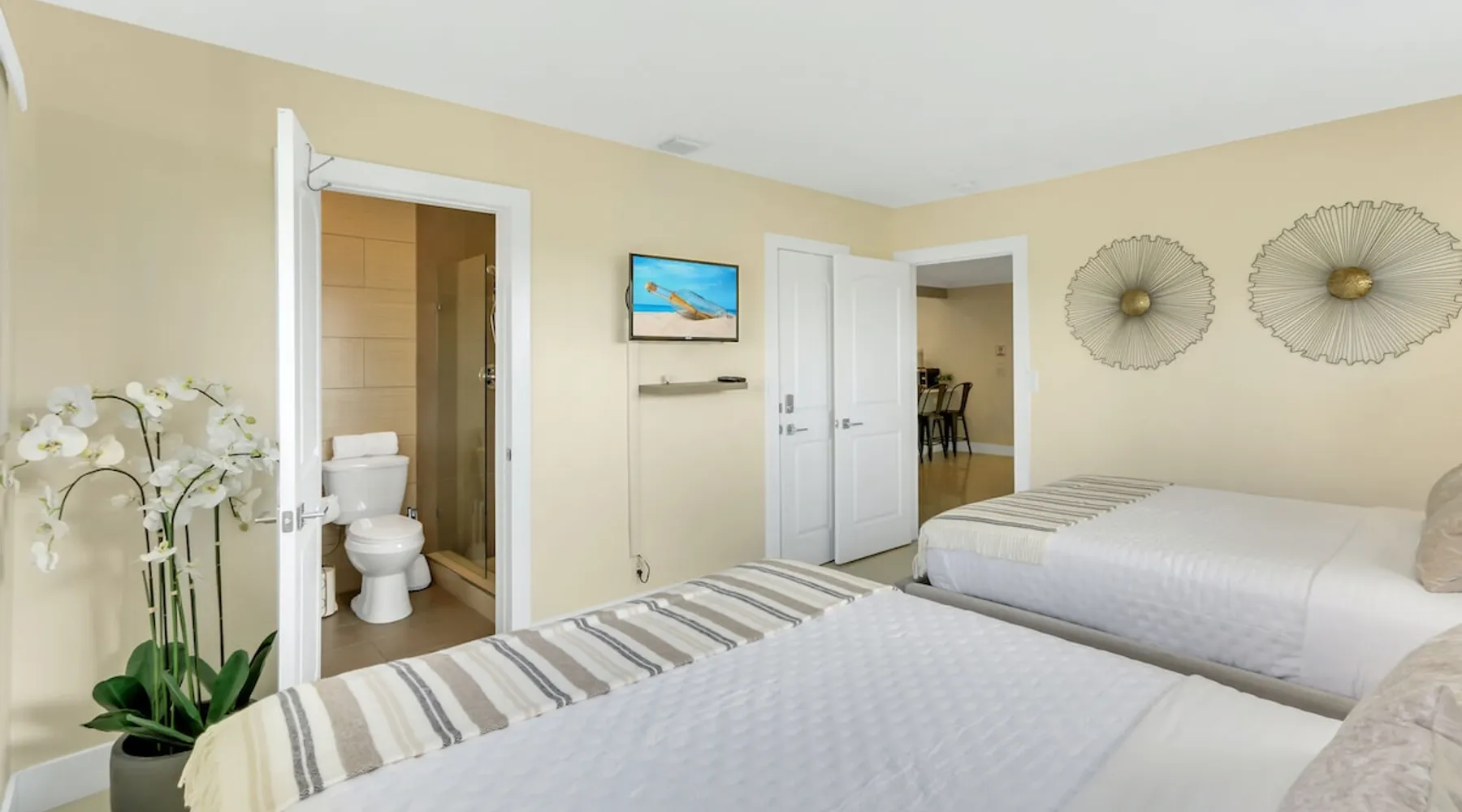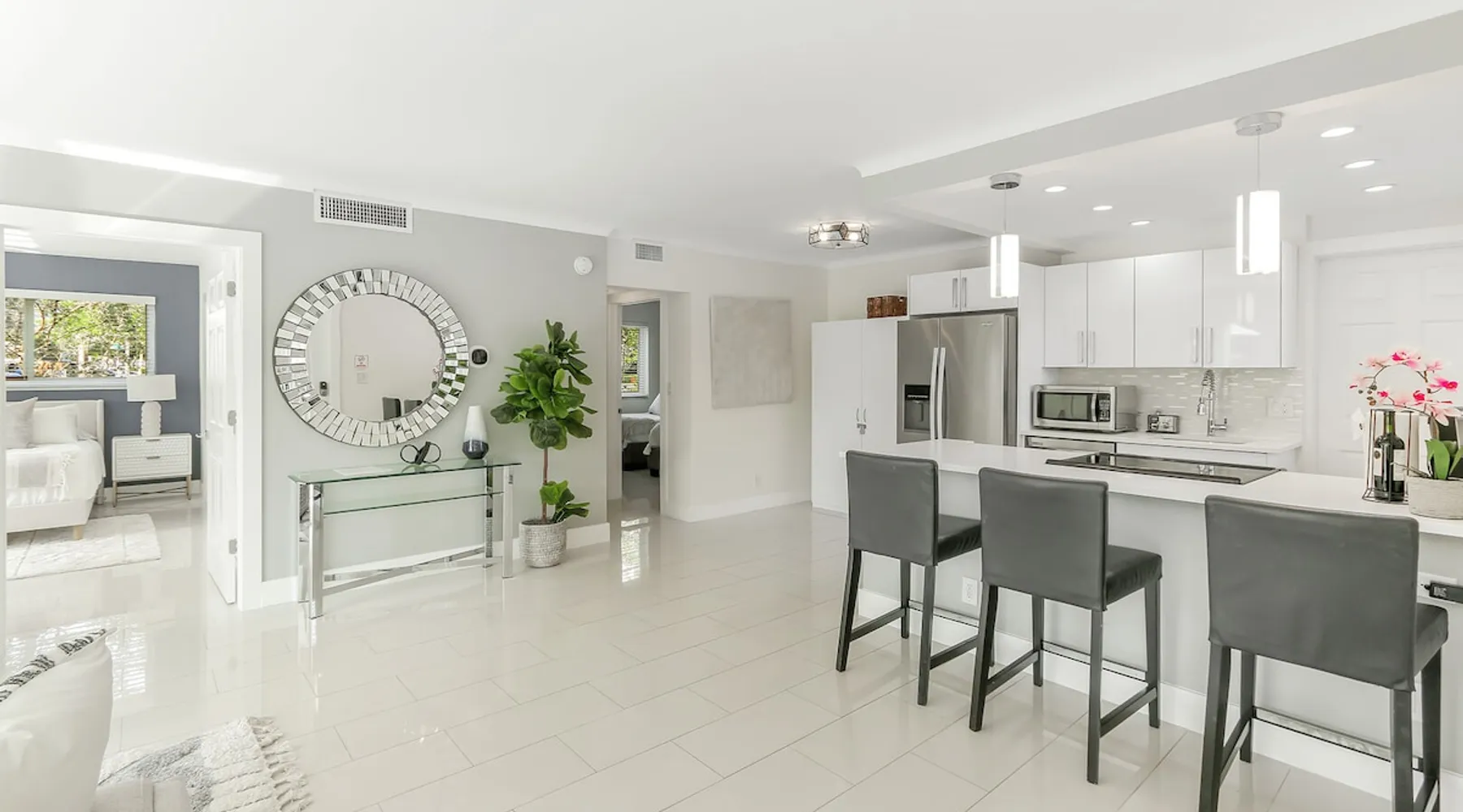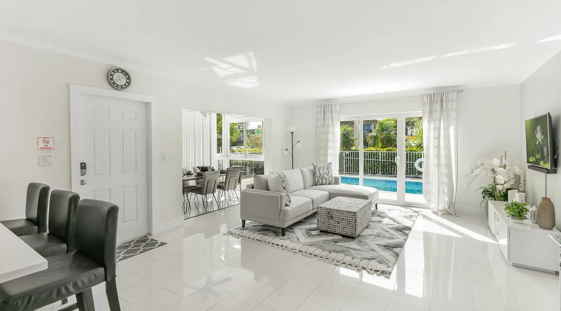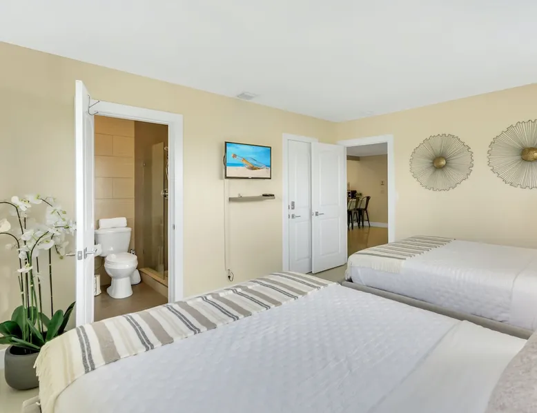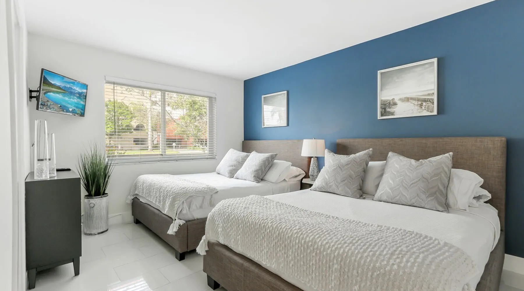 Escape to the laid-back tropical paradise of Pompano Beach at this beachy apartment complex. With 4 units, each featuring 2 bedrooms and a pool accommodates up to 16 guests. Tastefully decorated with modern furnishings, the units offer fully equipped kitchens, laundry facilities, and ensuite bedrooms with comfortable beds and mounted TVs. Enjoy the beach, go scuba diving, or indulge in outdoor activities. Guest access Entire apartment complex. Other things to note 🔹This beachy apartment complex is composed of 4 individual units, each with two bedrooms and two bathrooms (Accommodates a total of 16 guests). 🔹Each unit features it's own washer and dryer. 🔹Units 1 & 2 are located on the ground floor and units 3 & 4 are on the second floor. 🔹Eight free parking spaces are also located at the front of building. 🔹 Please note: The pool heater is currently not operational.