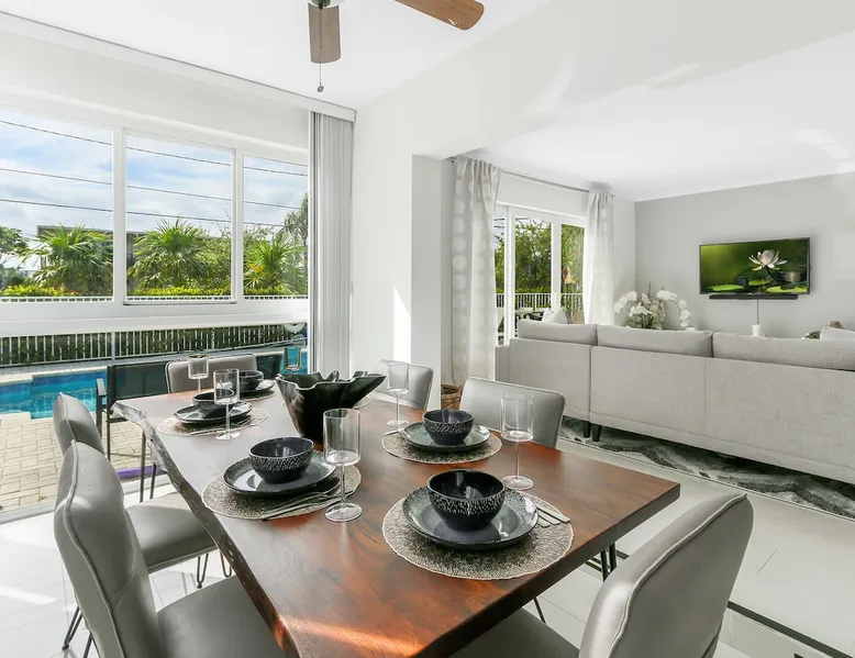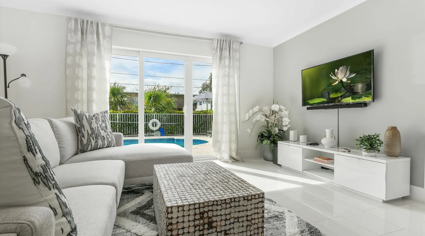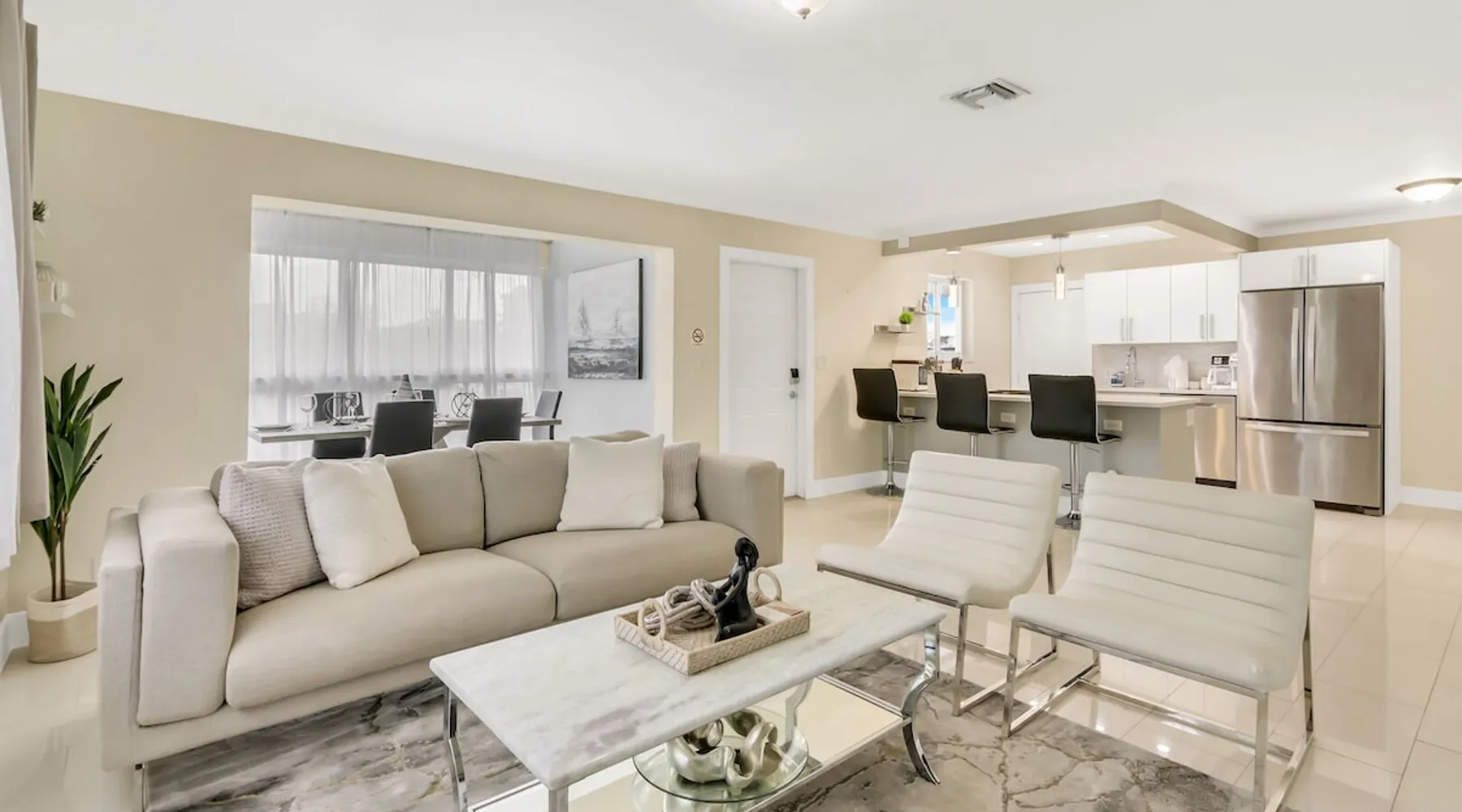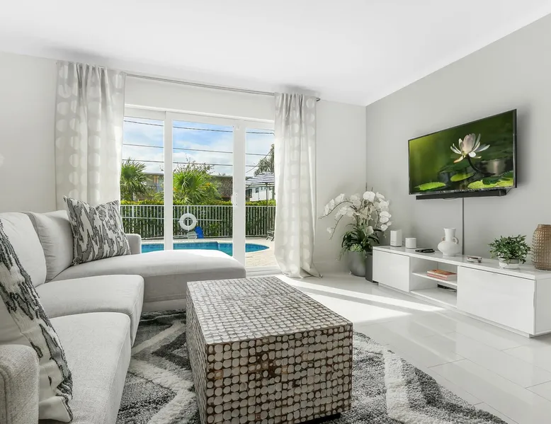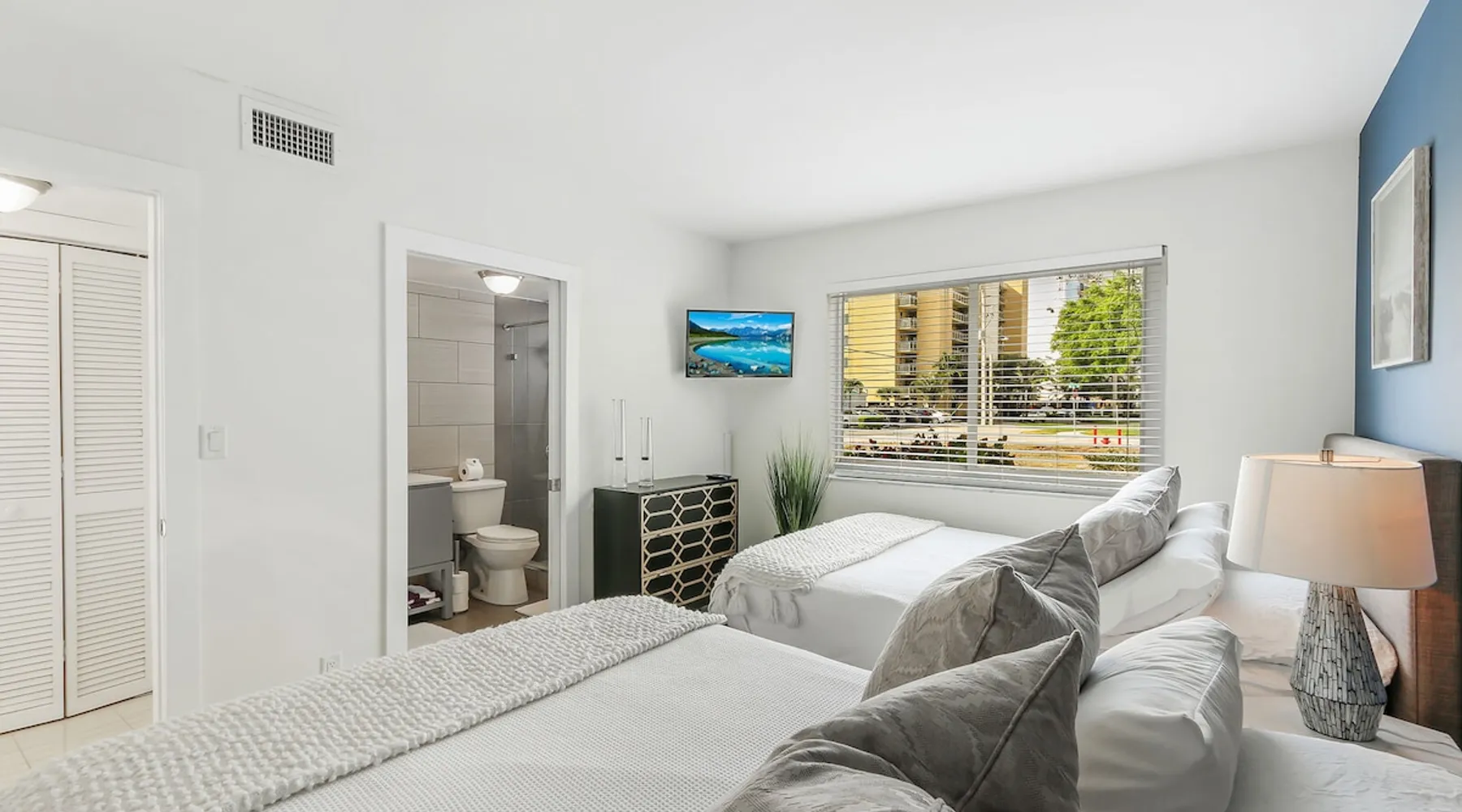 Escape to the laid-back tropical paradise of Pompano Beach at this beachy apartment complex. With 4 units, each featuring 2 bedrooms and a pool accommodates up to 16 guests. Tastefully decorated with modern furnishings, the units offer fully equipped kitchens, laundry facilities, and ensuite bedrooms with comfortable beds and mounted TVs. Enjoy the beach, go scuba diving, or indulge in outdoor activities. Guest access Entire apartment complex. Other things to note 🔹This beachy apartment complex is composed of 4 individual units, each with two bedrooms and two bathrooms (Accommodates a total of 16 guests). 🔹Each unit features it's own washer and dryer. 🔹Units 1 & 2 are located on the ground floor and units 3 & 4 are on the second floor. 🔹Eight free parking spaces are also located at the front of building. 🔹 Please note: The pool heater is currently not operational.