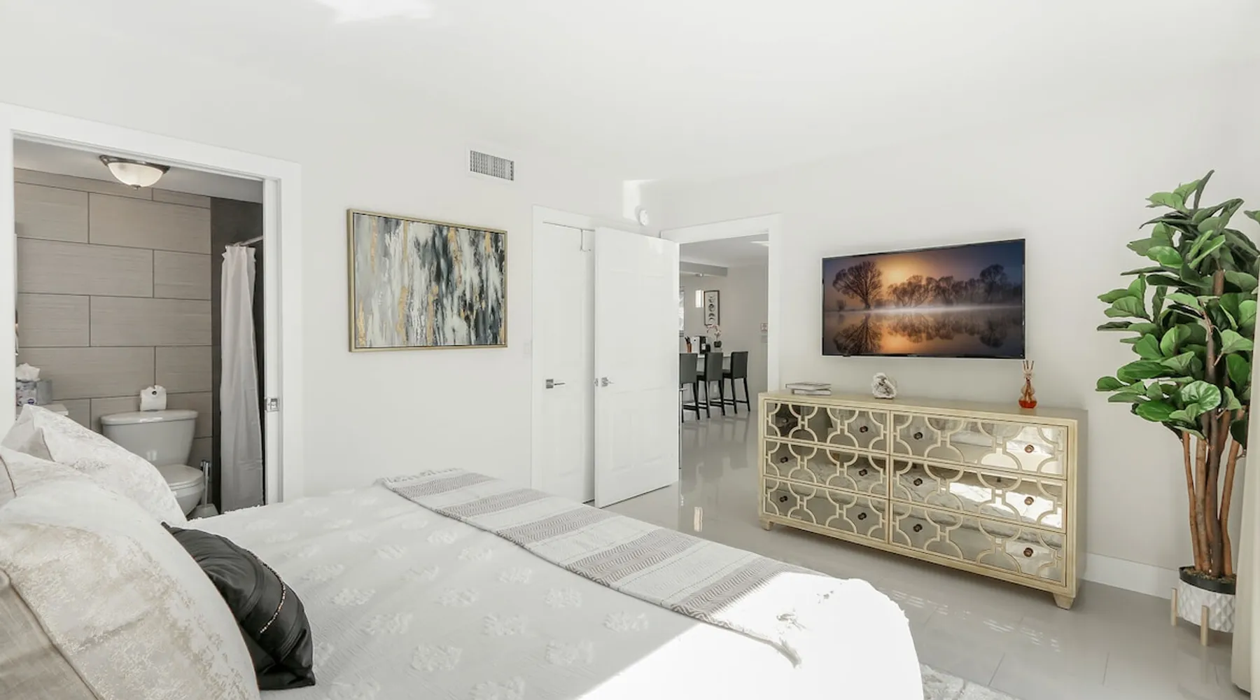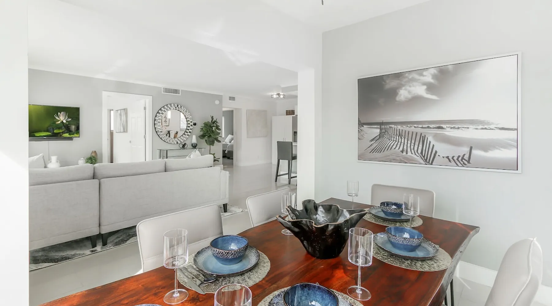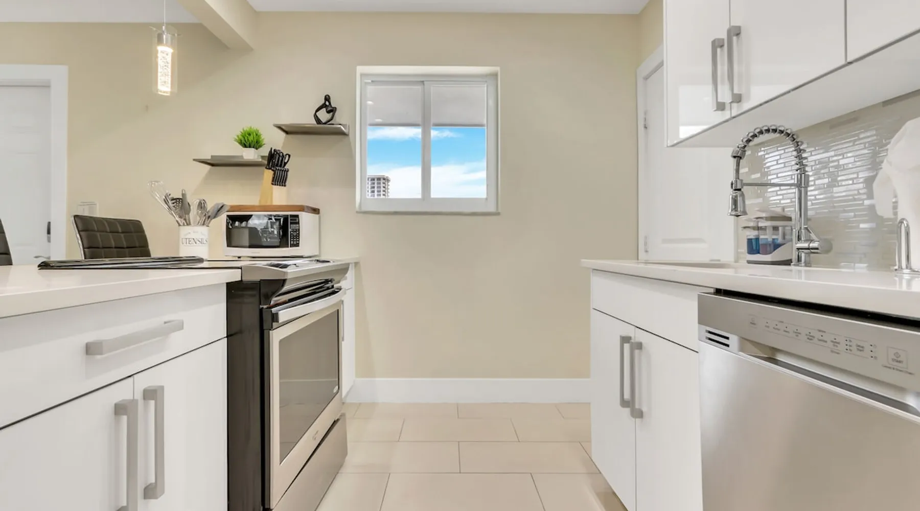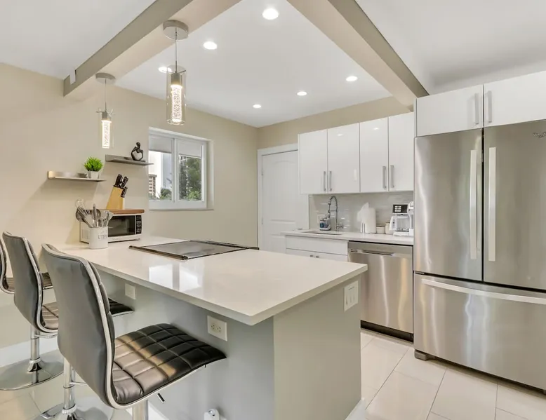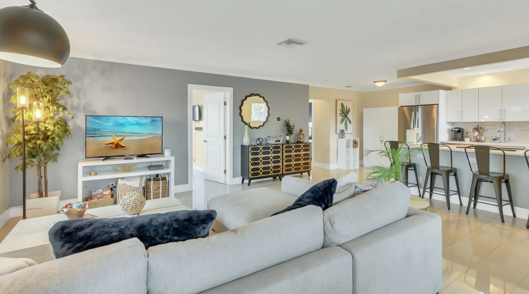 Escape to the laid-back tropical paradise of Pompano Beach at this beachy apartment complex. With 4 units, each featuring 2 bedrooms and a pool accommodates up to 16 guests. Tastefully decorated with modern furnishings, the units offer fully equipped kitchens, laundry facilities, and ensuite bedrooms with comfortable beds and mounted TVs. Enjoy the beach, go scuba diving, or indulge in outdoor activities. Guest access Entire apartment complex. Other things to note 🔹This beachy apartment complex is composed of 4 individual units, each with two bedrooms and two bathrooms (Accommodates a total of 16 guests). 🔹Each unit features it's own washer and dryer. 🔹Units 1 & 2 are located on the ground floor and units 3 & 4 are on the second floor. 🔹Eight free parking spaces are also located at the front of building. 🔹 Please note: The pool heater is currently not operational.