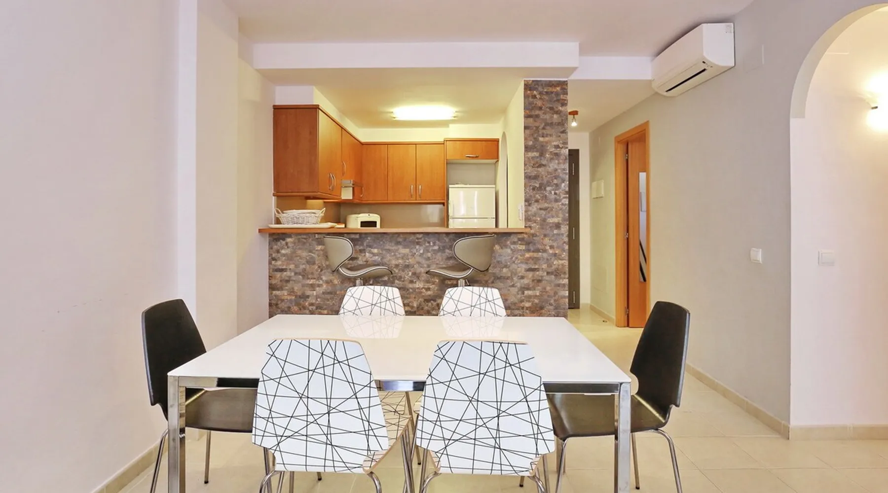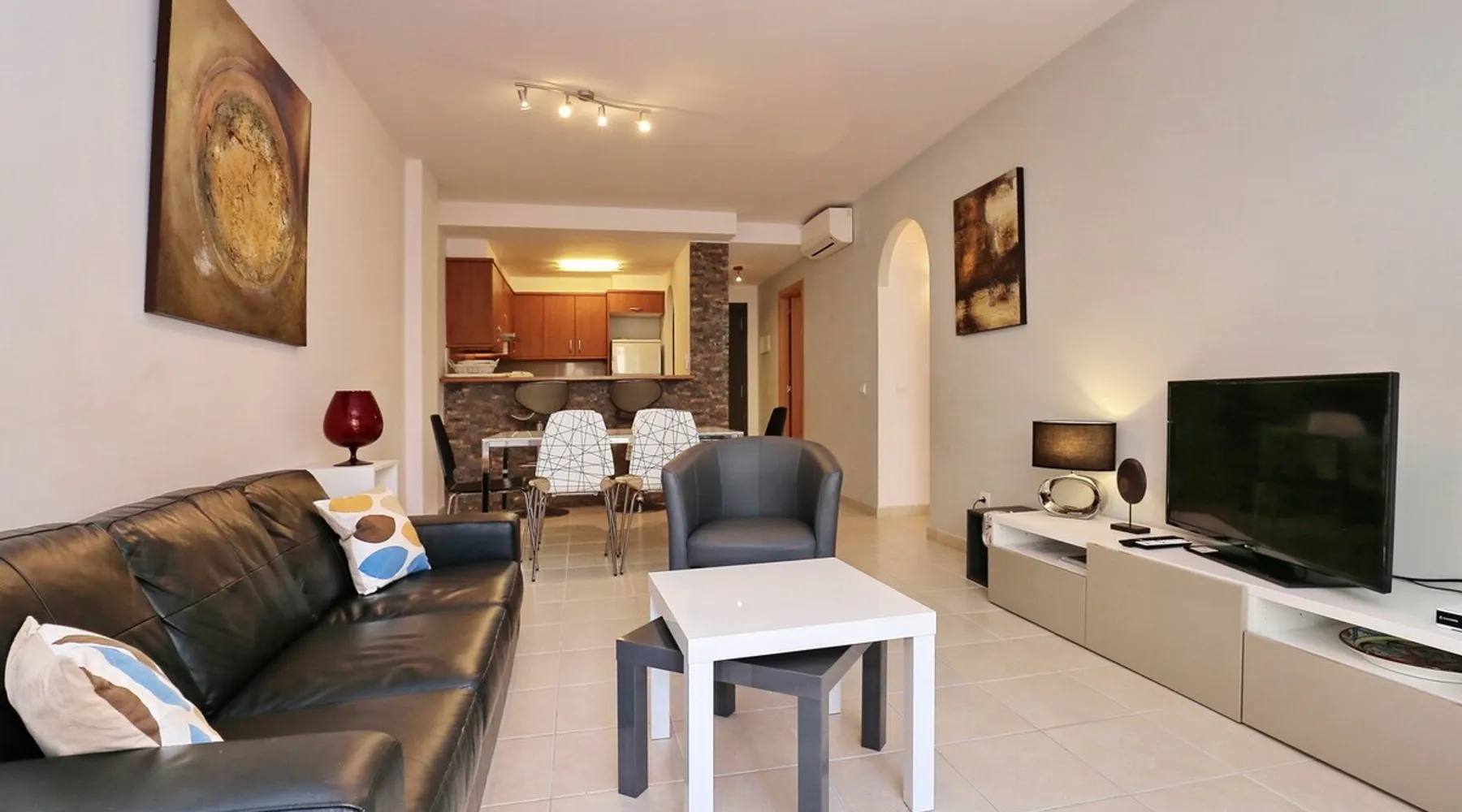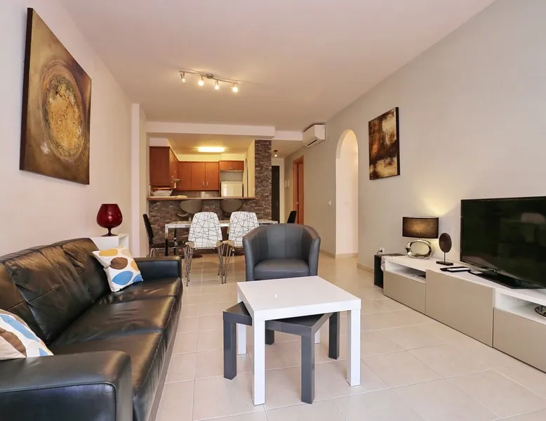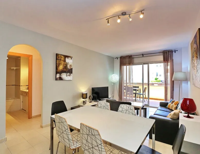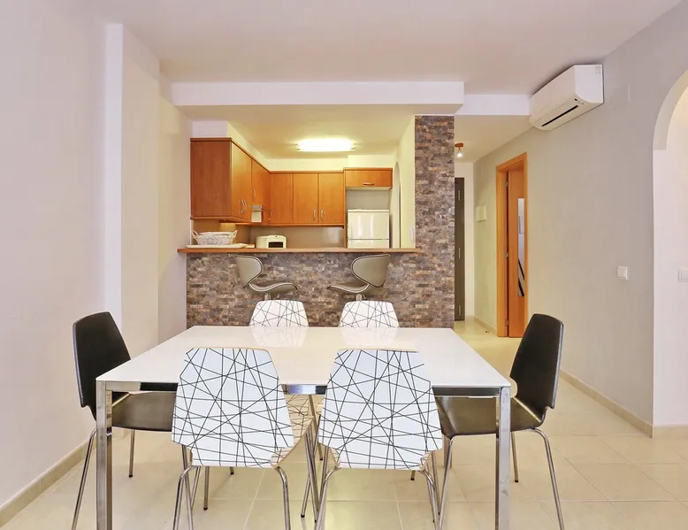 Fancy a beach? This cosy 2-bedroom apartment is very well equipped with a swimming pool and private parking. It is located 50 metres from the large beach of Rosas and directly close to all shops and restaurants. You can enjoy all the attractions of this seaside resort without having to take your car. The apartment has a very nice terrace with direct access to the swimming pool. It is fully air-conditioned, very comfortable with new equipment and furniture. The space Fancy a beach? This cosy 2-bedroom apartment is very well equipped with a swimming pool and private parking. It is located 50 metres from the large beach of Rosas and directly close to all shops and restaurants. You can enjoy all the attractions of this seaside resort without having to take your car. The apartment has a very nice terrace with direct access to the swimming pool. It is fully air-conditioned, very comfortable with new equipment and furniture. You will have access to all French and international channels on the television and free Wifi in the apartment. Many day and night activities are nearby (parachuting, water sports, mini golf, roller.....). Bed linen not provided. Possibility of renting bed linen and towels from the concierge. Tourist tax of 1 euro per night and per person from 18 years old to be expected. Pets allowed with supplement. 45 euros agency file fees to be expected. A non-debited deposit will be requested. Other things to note Included services - Swimming pool: Services available according to season Opening date: 01/01. Closing date: 31/12. - Heating - Air conditioning Registration Details Catalonia - Regional registration number HUTG-023811