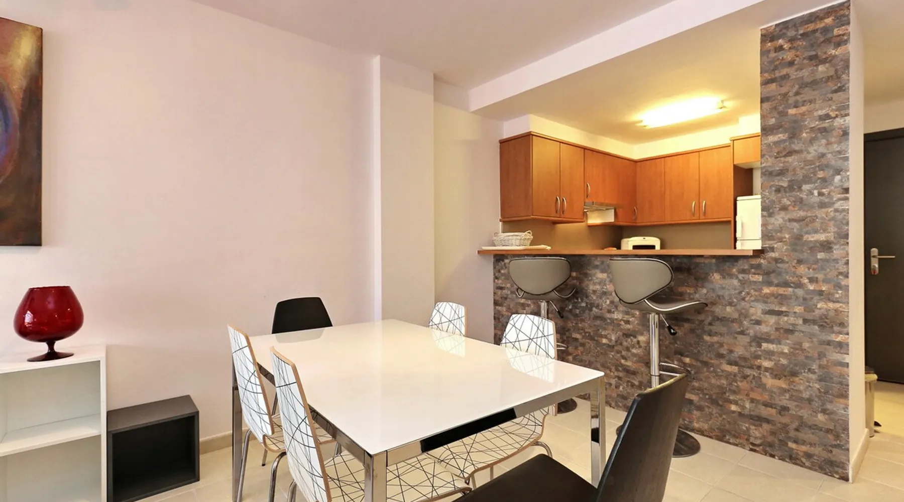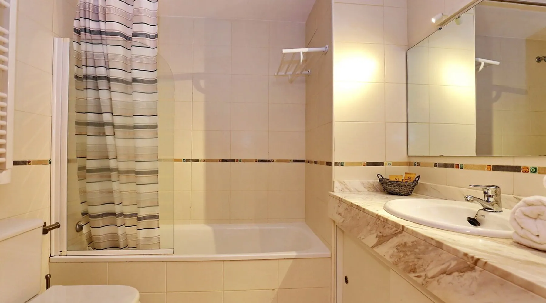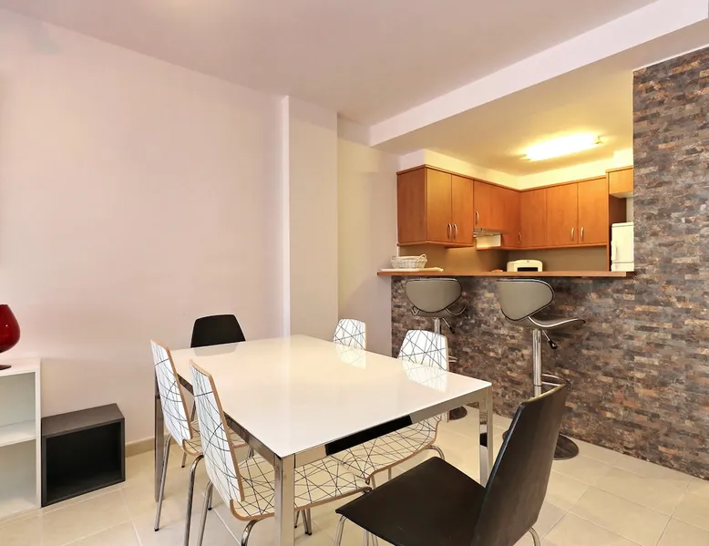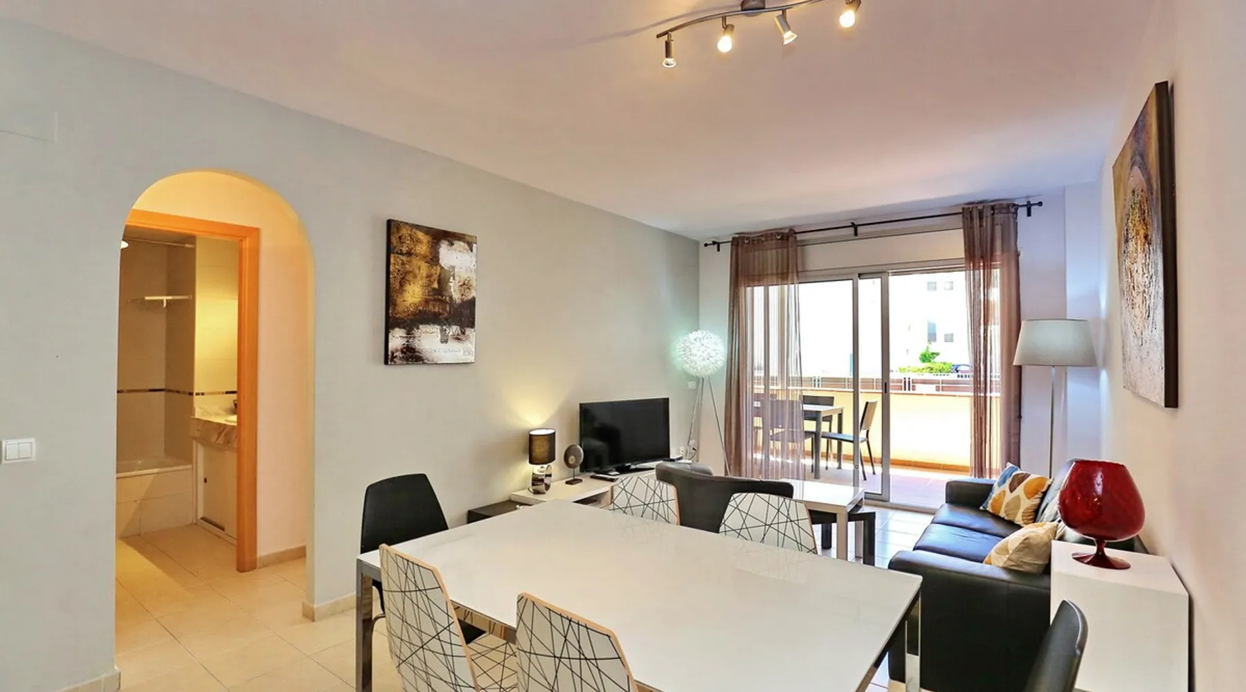 Fancy a beach? This cosy 2-bedroom apartment is very well equipped with a swimming pool and private parking. It is located 50 metres from the large beach of Rosas and directly close to all shops and restaurants. You can enjoy all the attractions of this seaside resort without having to take your car. The apartment has a very nice terrace with direct access to the swimming pool. It is fully air-conditioned, very comfortable with new equipment and furniture. The space Fancy a beach? This cosy 2-bedroom apartment is very well equipped with a swimming pool and private parking. It is located 50 metres from the large beach of Rosas and directly close to all shops and restaurants. You can enjoy all the attractions of this seaside resort without having to take your car. The apartment has a very nice terrace with direct access to the swimming pool. It is fully air-conditioned, very comfortable with new equipment and furniture. You will have access to all French and international channels on the television and free Wifi in the apartment. Many day and night activities are nearby (parachuting, water sports, mini golf, roller.....). Bed linen not provided. Possibility of renting bed linen and towels from the concierge. Tourist tax of 1 euro per night and per person from 18 years old to be expected. Pets allowed with supplement. 45 euros agency file fees to be expected. A non-debited deposit will be requested. Other things to note Included services - Swimming pool: Services available according to season Opening date: 01/01. Closing date: 31/12. - Heating - Air conditioning Registration Details Catalonia - Regional registration number HUTG-023811