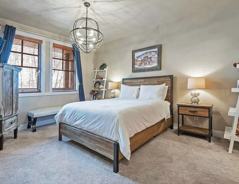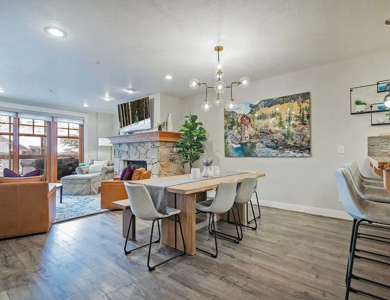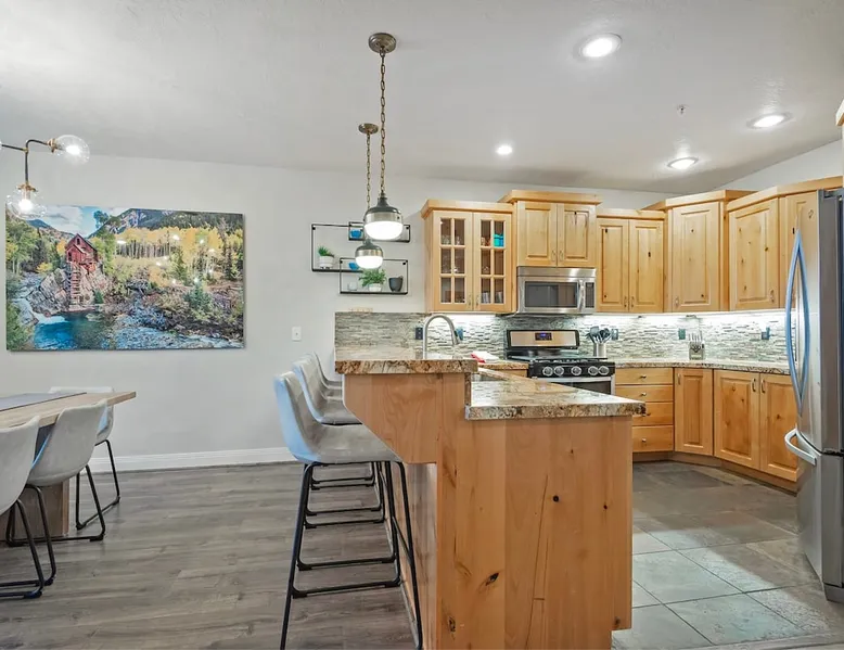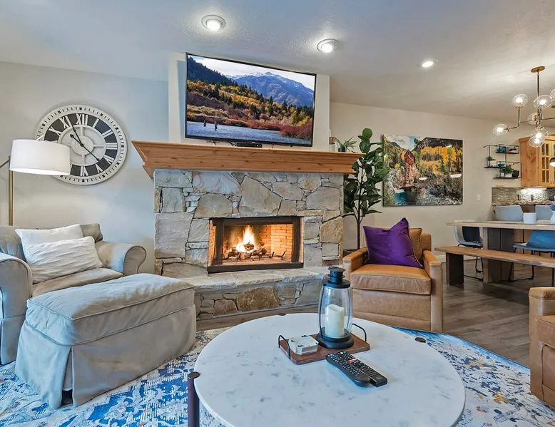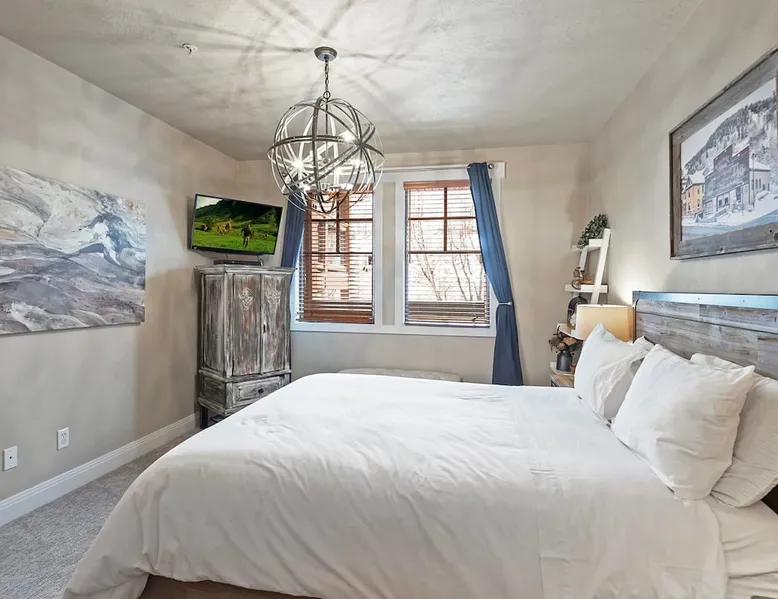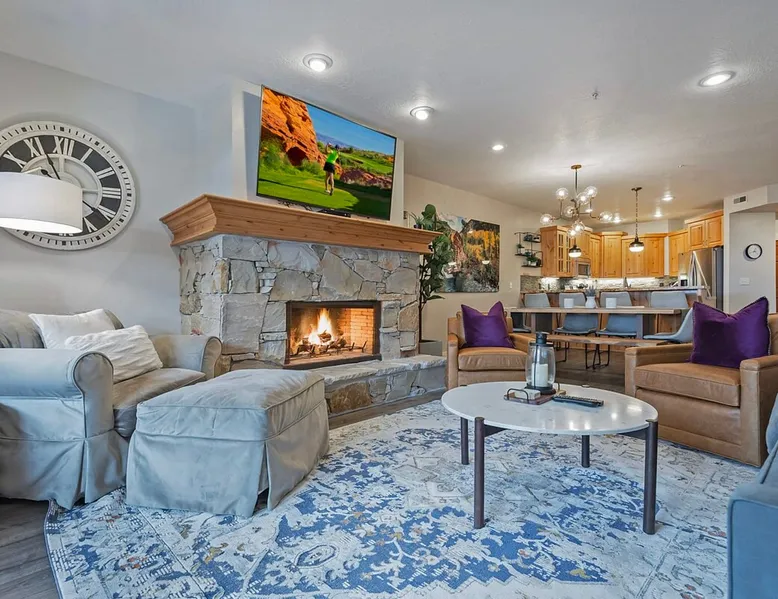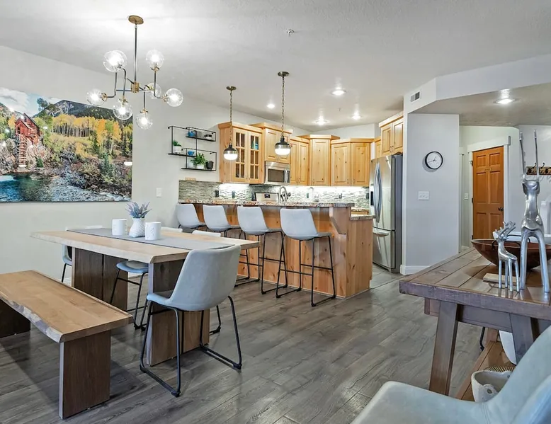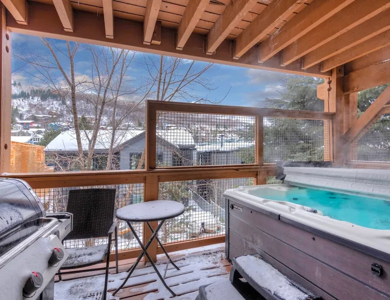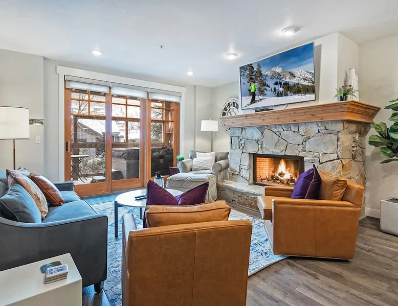 A stone's throw away from all of the action in Park City's historic downtown, you will fall in love with this charming condo. With the Park City Town lift only a couple of blocks from the front door entrance of this well-appointed condo, you are sure to have the time of your life with your loved ones. Unlimited access to local markets, breweries, unique restaurants, and seasonal festivities are all at your fingertips. Your gateway to outdoor and mountain adventures awaits your arrival. The space As you return from a day of outdoor adventures, relax on the plush sofa, love seat, and additional armchair seating in the family room. Guests will appreciate the warmth of the fire permeating throughout the room from the indoor gas fireplace. Unwind from the day while streaming your favorite show or movie on the flat-screen TV, as you cozy up with your loved ones. The private outdoor balcony will have you gazing out into the beautiful glow of the night sky -- step out, enjoy the fresh mountain breeze, and take in the beautiful sceneries surrounding this charming condo. The deluxe hot tub is the perfect way to relax after a long day. Soak your tired muscles, while spending quality time with your family and friends. Host an après ski cookout with the outdoor bbq grill, where the master griller of your group can show off their exquisite skills. The fully-equipped kitchen with high-quality stainless steel appliances and a stylish granite countertop is the perfect place for the chef in your group to whip up a gourmet meal. Keep the cook in good company with the breakfast bar stool seating for up to 4. As the aroma begins to fill the house, gather in the dining area where you can enjoy your scrumptious dinner, while exchanging exciting stories of your time on the slopes. Recharge for the night in the master suite that features a beautiful king-size bed, a flat-screen TV, a lounge area, a large walk-in closet, an en suite bathroom with a walk-in shower, and a separate tub. Additional guests will have access to a second bedroom, that features a queen-size bed, a flat-screen TV, and ample closet space. The third bedroom features a twin over twin size bed, a flat-screen TV, and ample closet space. A shared full bathroom, around the corner, has a single vanity and a shower/tub combo. There is a laundry room with a washer/dryer combo, located across from the kitchen. STR License Number: B-016830 Guest access Guest will have access to the entire home, outdoor patio, and the private hot tub. You will also have access to a free parking space for 1 vehicle in the garage with a pass. Other things to note This condo has a central air conditioning unit. The Hot Tub is serviced weekly, due to the nature of the hot tub being off the ground the hot tub vendor needs to access the unit to service the tub which may be during your stay. Please keep in mind that if you plan to ski, you are responsible for verifying the ski resorts' opening and closing dates.
