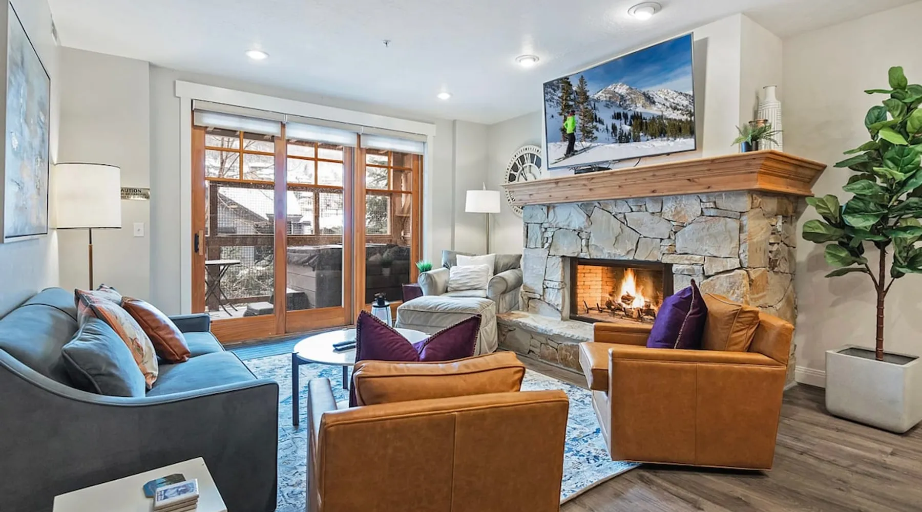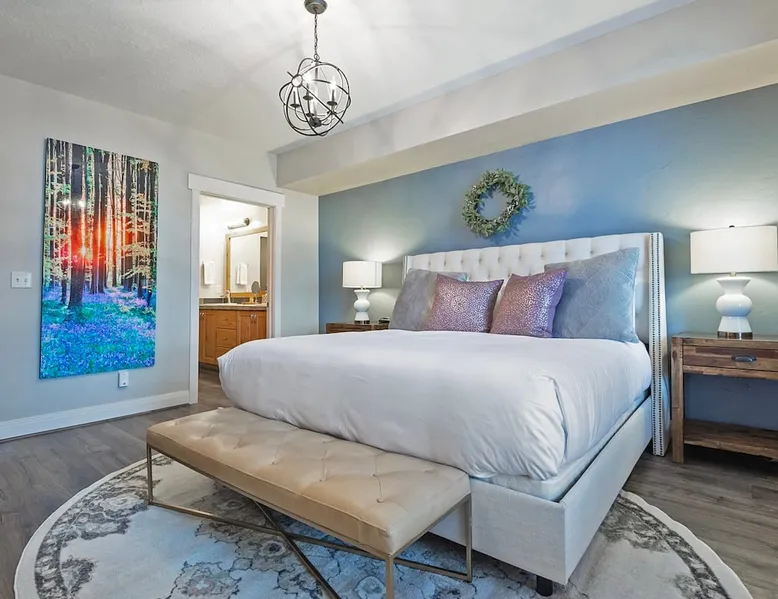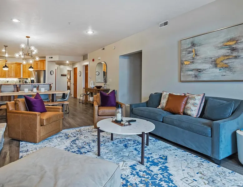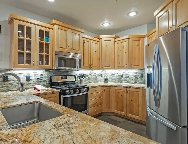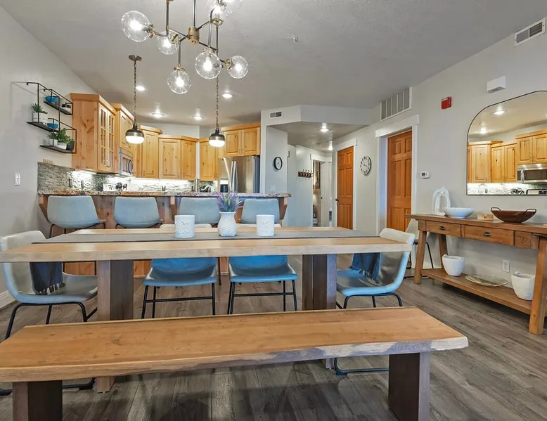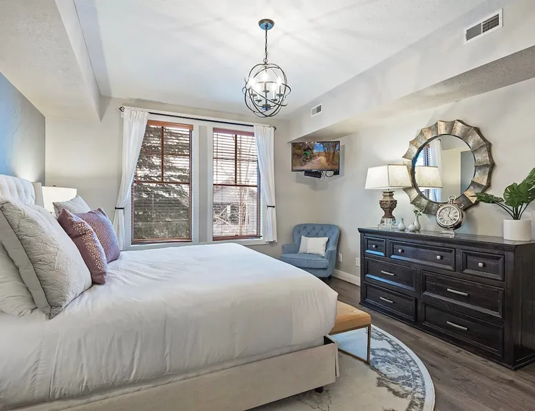A stone's throw away from all of the action in Park City's historic downtown, you will fall in love with this charming condo. With the Park City Town lift only a couple of blocks from the front door entrance of this well-appointed condo, you are sure to have the time of your life with your loved ones. Unlimited access to local markets, breweries, unique restaurants, and seasonal festivities are all at your fingertips. Your gateway to outdoor and mountain adventures awaits your arrival. The space As you return from a day of outdoor adventures, relax on the plush sofa, love seat, and additional armchair seating in the family room. Guests will appreciate the warmth of the fire permeating throughout the room from the indoor gas fireplace. Unwind from the day while streaming your favorite show or movie on the flat-screen TV, as you cozy up with your loved ones. The private outdoor balcony will have you gazing out into the beautiful glow of the night sky -- step out, enjoy the fresh mountain breeze, and take in the beautiful sceneries surrounding this charming condo. The deluxe hot tub is the perfect way to relax after a long day. Soak your tired muscles, while spending quality time with your family and friends. Host an après ski cookout with the outdoor bbq grill, where the master griller of your group can show off their exquisite skills. The fully-equipped kitchen with high-quality stainless steel appliances and a stylish granite countertop is the perfect place for the chef in your group to whip up a gourmet meal. Keep the cook in good company with the breakfast bar stool seating for up to 4. As the aroma begins to fill the house, gather in the dining area where you can enjoy your scrumptious dinner, while exchanging exciting stories of your time on the slopes. Recharge for the night in the master suite that features a beautiful king-size bed, a flat-screen TV, a lounge area, a large walk-in closet, an en suite bathroom with a walk-in shower, and a separate tub. Additional guests will have access to a second bedroom, that features a queen-size bed, a flat-screen TV, and ample closet space. The third bedroom features a twin over twin size bed, a flat-screen TV, and ample closet space. A shared full bathroom, around the corner, has a single vanity and a shower/tub combo. There is a laundry room with a washer/dryer combo, located across from the kitchen. STR License Number: B-016830 Guest access Guest will have access to the entire home, outdoor patio, and the private hot tub. You will also have access to a free parking space for 1 vehicle in the garage with a pass. Other things to note This condo has a central air conditioning unit. The Hot Tub is serviced weekly, due to the nature of the hot tub being off the ground the hot tub vendor needs to access the unit to service the tub which may be during your stay. Please keep in mind that if you plan to ski, you are responsible for verifying the ski resorts' opening and closing dates.