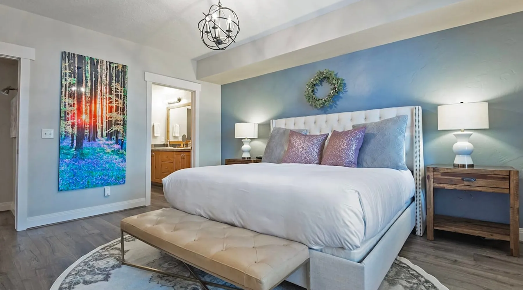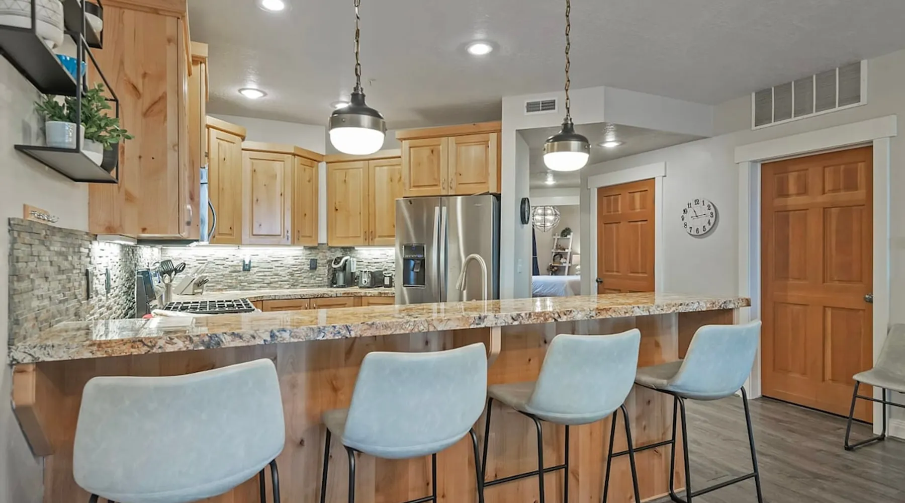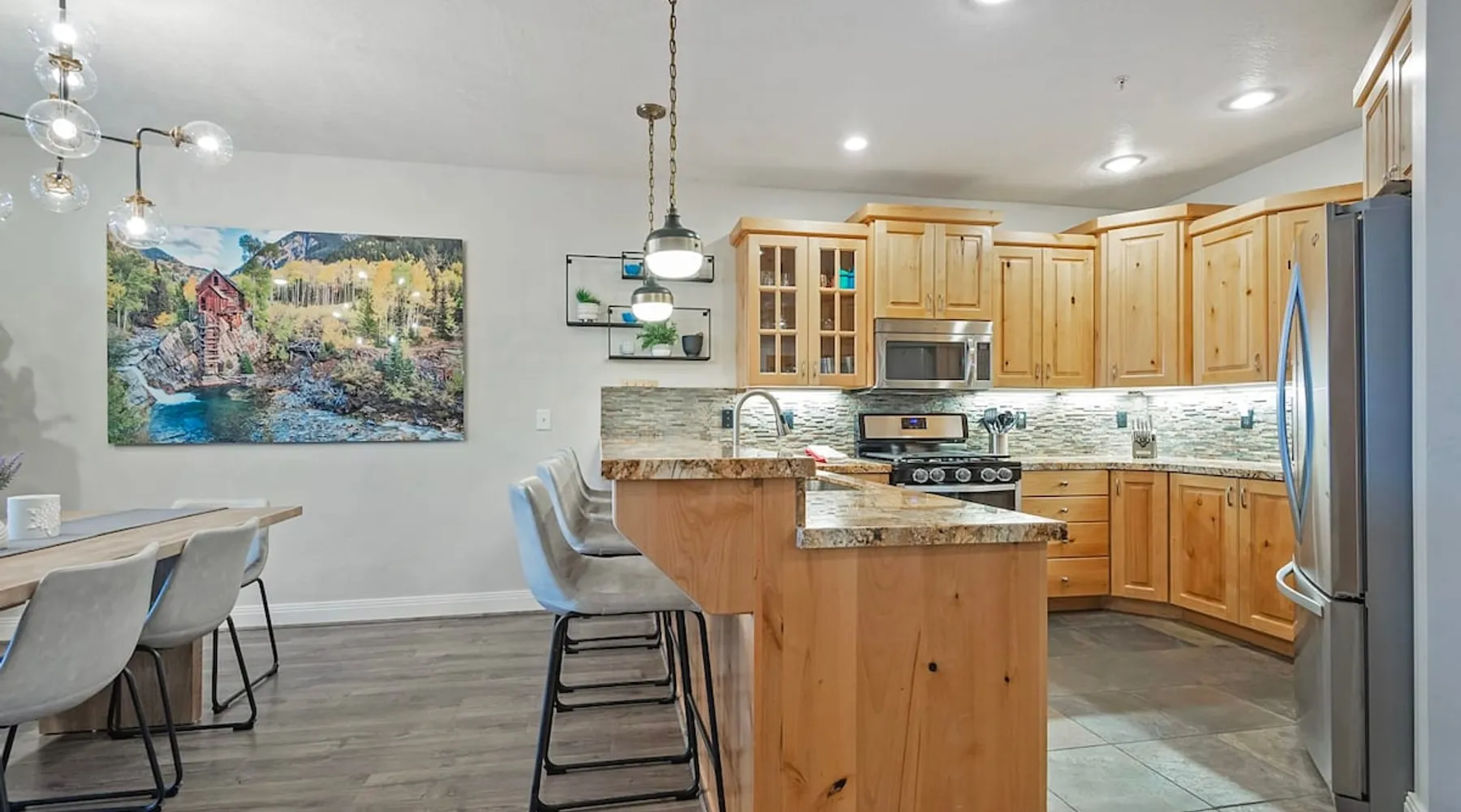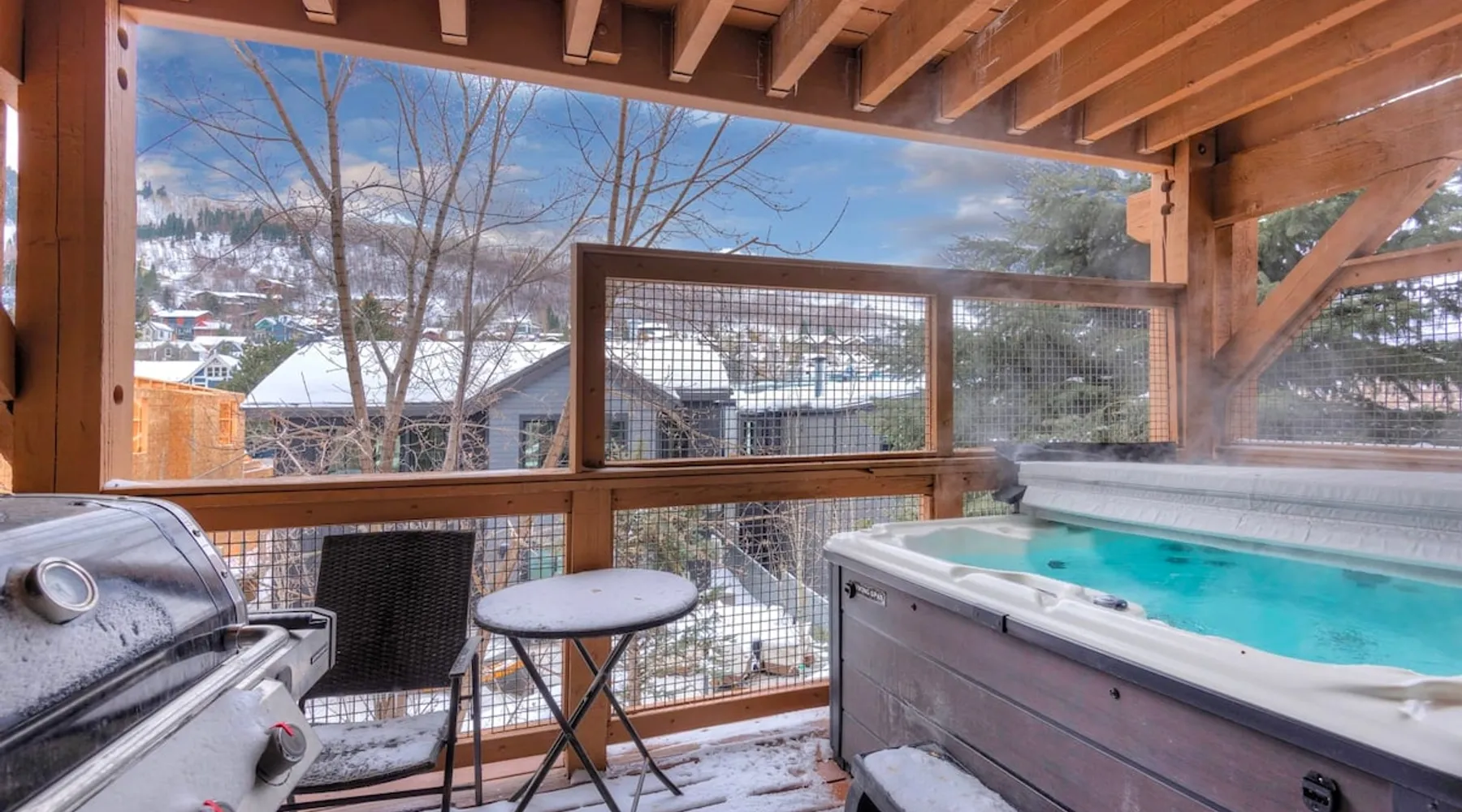 A stone's throw away from all of the action in Park City's historic downtown, you will fall in love with this charming condo. With the Park City Town lift only a couple of blocks from the front door entrance of this well-appointed condo, you are sure to have the time of your life with your loved ones. Unlimited access to local markets, breweries, unique restaurants, and seasonal festivities are all at your fingertips. Your gateway to outdoor and mountain adventures awaits your arrival. The space As you return from a day of outdoor adventures, relax on the plush sofa, love seat, and additional armchair seating in the family room. Guests will appreciate the warmth of the fire permeating throughout the room from the indoor gas fireplace. Unwind from the day while streaming your favorite show or movie on the flat-screen TV, as you cozy up with your loved ones. The private outdoor balcony will have you gazing out into the beautiful glow of the night sky -- step out, enjoy the fresh mountain breeze, and take in the beautiful sceneries surrounding this charming condo. The deluxe hot tub is the perfect way to relax after a long day. Soak your tired muscles, while spending quality time with your family and friends. Host an après ski cookout with the outdoor bbq grill, where the master griller of your group can show off their exquisite skills. The fully-equipped kitchen with high-quality stainless steel appliances and a stylish granite countertop is the perfect place for the chef in your group to whip up a gourmet meal. Keep the cook in good company with the breakfast bar stool seating for up to 4. As the aroma begins to fill the house, gather in the dining area where you can enjoy your scrumptious dinner, while exchanging exciting stories of your time on the slopes. Recharge for the night in the master suite that features a beautiful king-size bed, a flat-screen TV, a lounge area, a large walk-in closet, an en suite bathroom with a walk-in shower, and a separate tub. Additional guests will have access to a second bedroom, that features a queen-size bed, a flat-screen TV, and ample closet space. The third bedroom features a twin over twin size bed, a flat-screen TV, and ample closet space. A shared full bathroom, around the corner, has a single vanity and a shower/tub combo. There is a laundry room with a washer/dryer combo, located across from the kitchen. STR License Number: B-016830 Guest access Guest will have access to the entire home, outdoor patio, and the private hot tub. You will also have access to a free parking space for 1 vehicle in the garage with a pass. Other things to note This condo has a central air conditioning unit. The Hot Tub is serviced weekly, due to the nature of the hot tub being off the ground the hot tub vendor needs to access the unit to service the tub which may be during your stay. Please keep in mind that if you plan to ski, you are responsible for verifying the ski resorts' opening and closing dates.