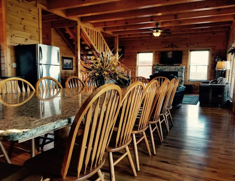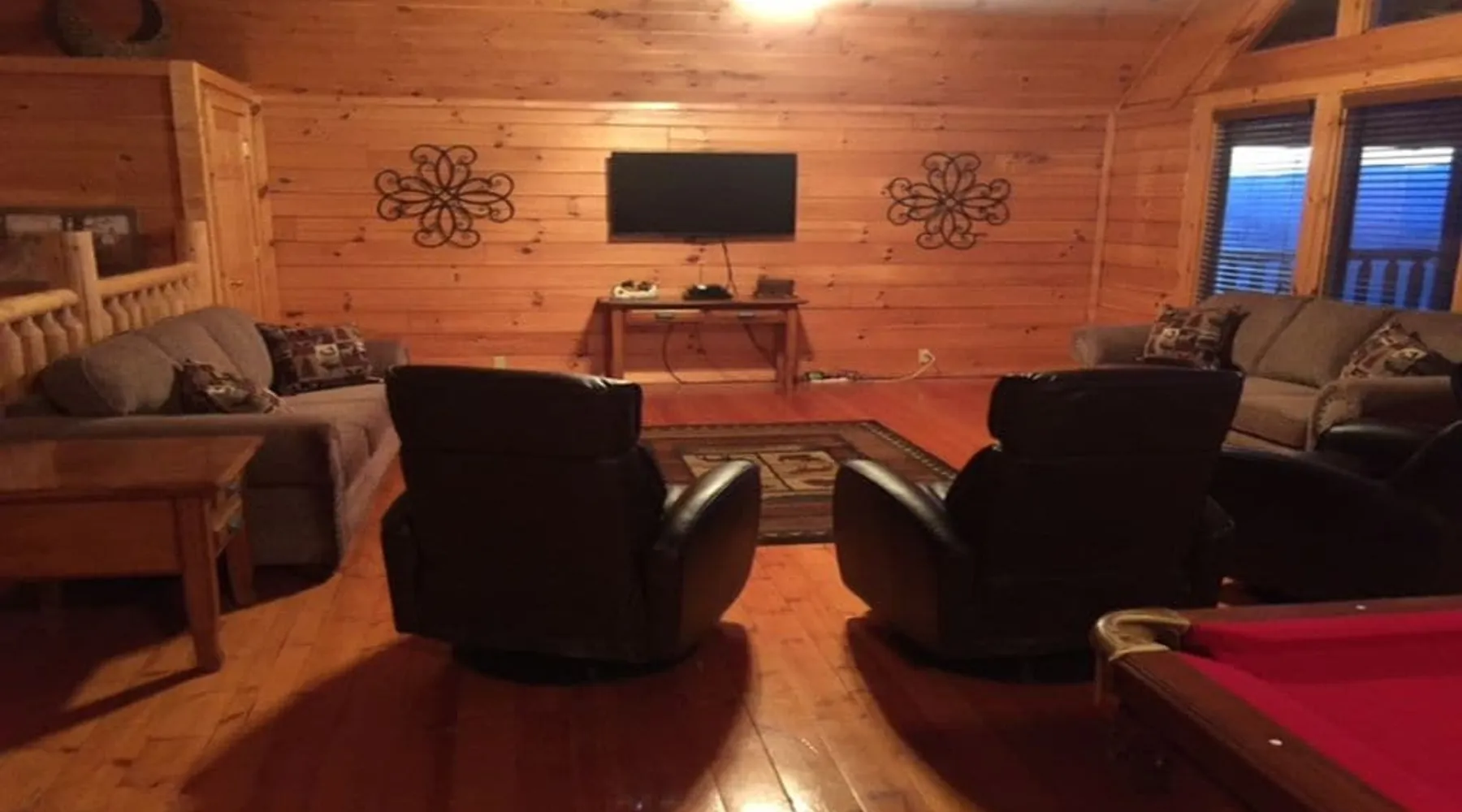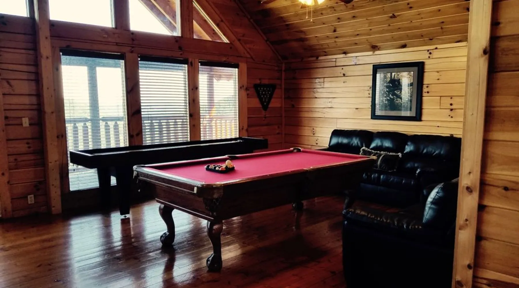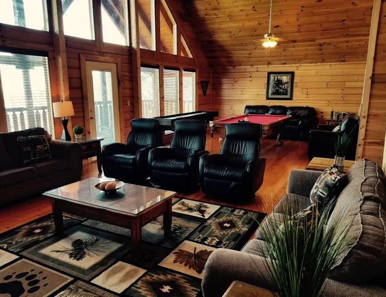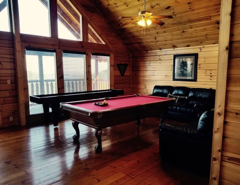 Welcome to What A View, a 7-bedroom luxury cabin that provides the perfect space to bring your entire family together. Located in the beautiful Black Bear Ridge Resort you will be just a few short miles away from all Pigeon Forge has to offer. This exclusive log cabin community provides the perfect base for spending your days exploring then heading back to the cabin for a little peace and tranquility. The space Just imagine sipping your morning coffee peacefully from one of the 5 decks while enjoying the stunning mountain views or relaxing at the end of the day in the hot tub while breathing in the invigorating mountain air. Unwind together… Two large comfortable dens with sink-into sofas mean there’s plenty of space for family time but also somewhere to escape for a little peace and quiet. Everyone will love their accommodations in one of our 7 bedrooms that are all equally sized and equipped. We offer 5 king suites and two bunk rooms, and each room benefits from its own ensuite bathroom. There is also an additional full bath in the game room and half bath on the main level. When you stay at What A View there’s no arguing over who has the best bedroom – they’re all the best! Eat together… Whether you are preparing a family feast or just a snack, the fully equipped kitchen has everything you need to cook up the perfect meal and the BBQ/Grill means outdoor cooking can also be on the menu. The over-sized dining table provide plenty of space for your entire family to break bread together. Play together… When you’re not out exploring all that Pigeon Forge has to offer, you can spend time chilling and chatting, challenging one another to a game of pool shuffleboard or watching your favorite movie in the theater room equipped with projector screen, surround sound and tiered theater seating. Whether your idea of the perfect getaway is action packed days or relaxing peace and quiet, What A View is the perfect place for your family to make memories together! Free Fun Included Every Day! To enhance your vacation experience free admissions to some of the area's most popular attractions are included - with a daily value of $640. You will receive one free ticket per day per group to each of the following: Dollywood, Dolly’s Splash Country, Anakeesta, Titanic Museum, Wonderworks, Beyond the Lens, Country Tonite, Big Creek Expeditions, Top Jump, Crave Golf, Paula Deen’s Adventure Park, Legacy Zipline, Alcatraz East Crime Museum, Rocky Top Coaster, Rowdy Bear Snow Park, Paula Deen’s Lumberjack Feud, Soaky Mountain Water Park, Comedy Barn and The Grand Majestic Theater. Tickets are not cumulative but do reset each day. There is no limit to the number of attractions you can visit in a day. Other things to note Must be 25 or older to rent - photo ID required