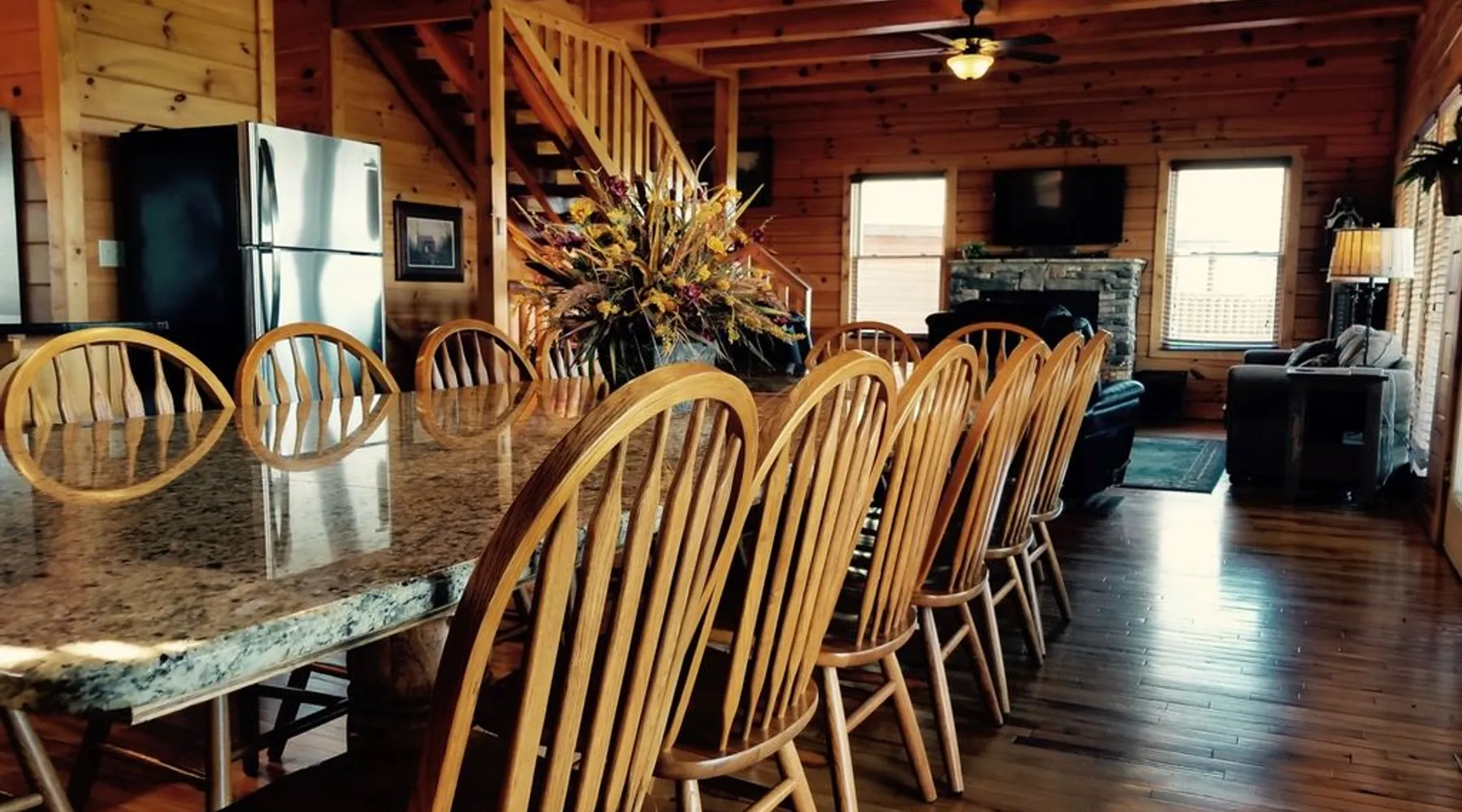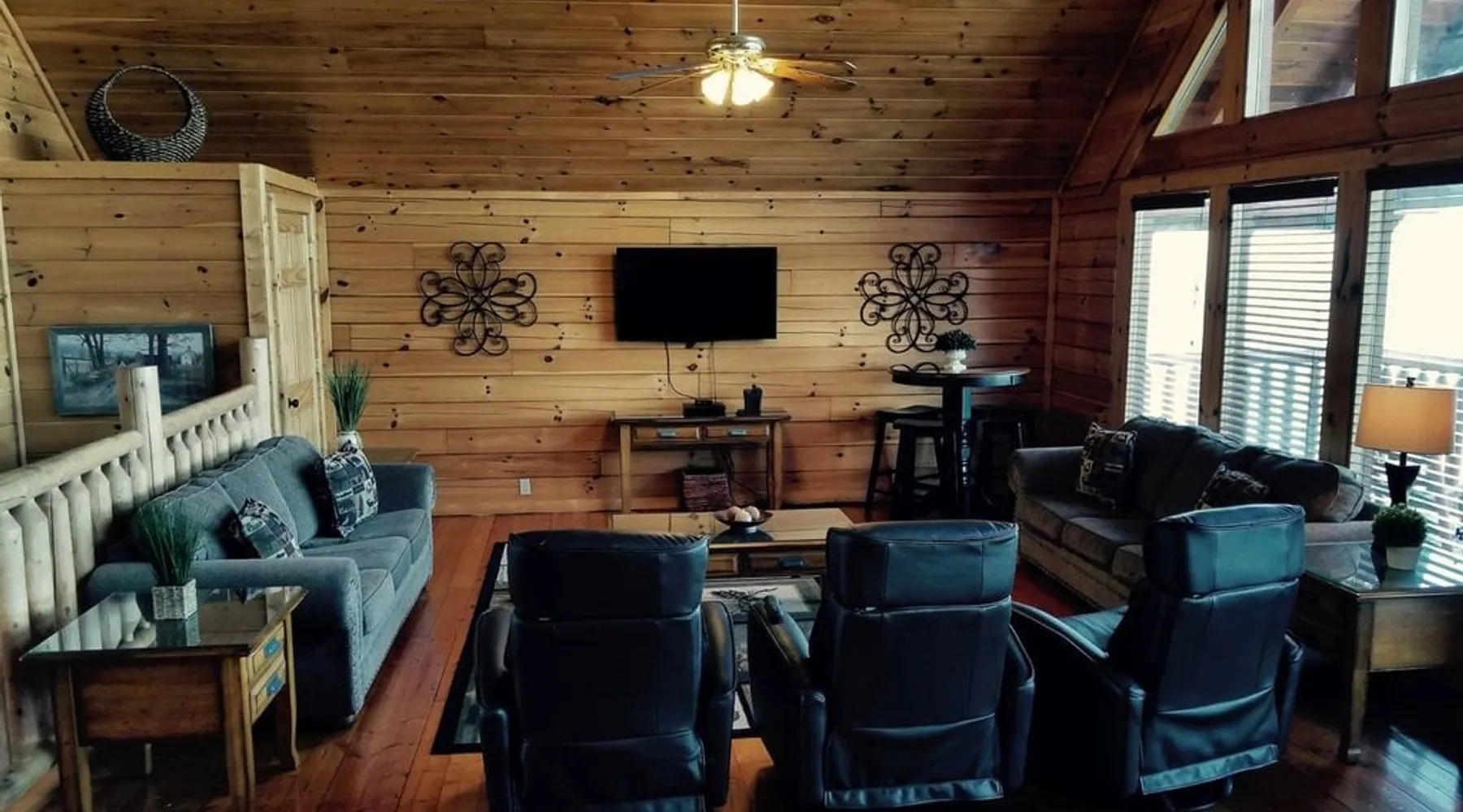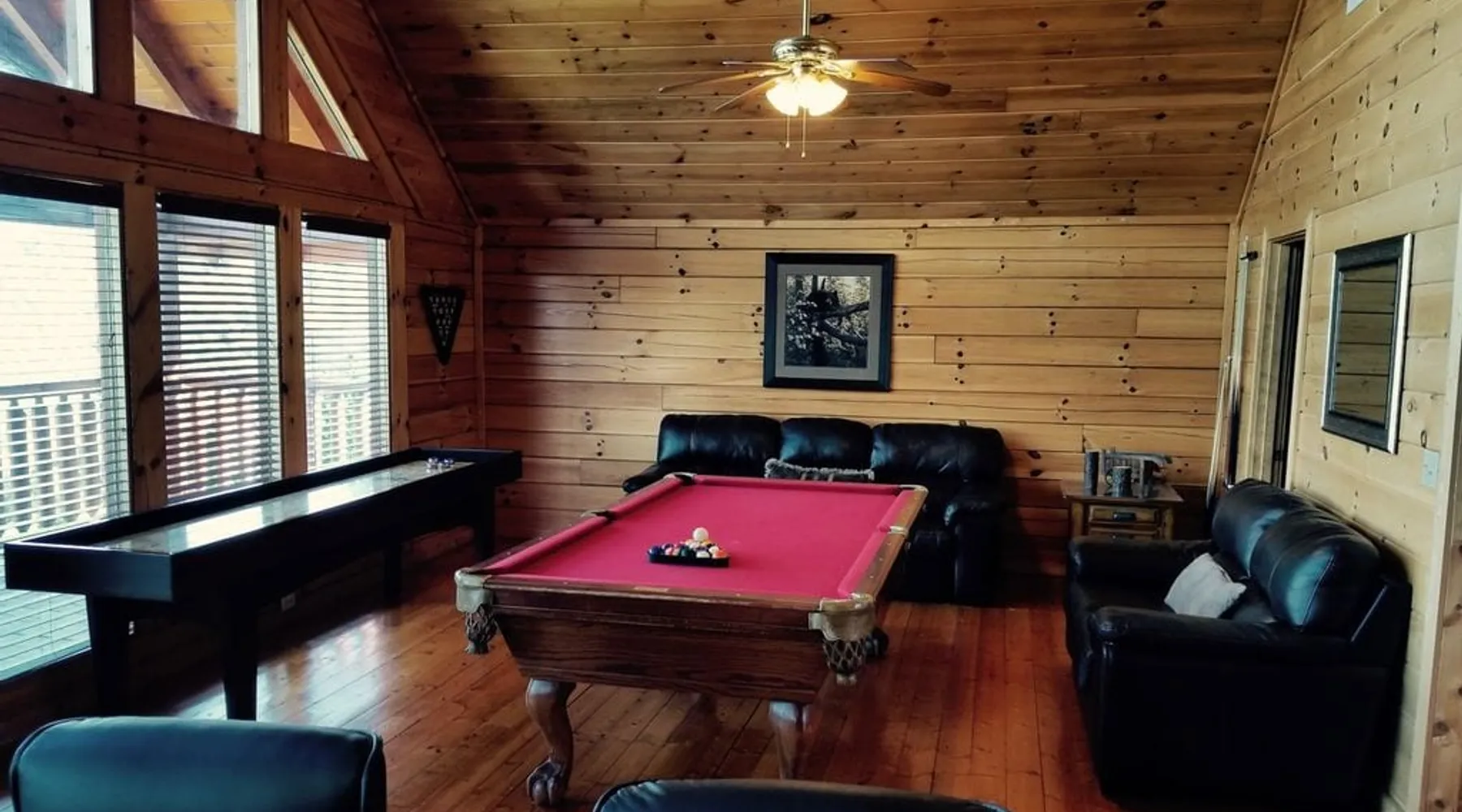 Welcome to What A View, a 7-bedroom luxury cabin that provides the perfect space to bring your entire family together. Located in the beautiful Black Bear Ridge Resort you will be just a few short miles away from all Pigeon Forge has to offer. This exclusive log cabin community provides the perfect base for spending your days exploring then heading back to the cabin for a little peace and tranquility. The space Just imagine sipping your morning coffee peacefully from one of the 5 decks while enjoying the stunning mountain views or relaxing at the end of the day in the hot tub while breathing in the invigorating mountain air. Unwind together… Two large comfortable dens with sink-into sofas mean there’s plenty of space for family time but also somewhere to escape for a little peace and quiet. Everyone will love their accommodations in one of our 7 bedrooms that are all equally sized and equipped. We offer 5 king suites and two bunk rooms, and each room benefits from its own ensuite bathroom. There is also an additional full bath in the game room and half bath on the main level. When you stay at What A View there’s no arguing over who has the best bedroom – they’re all the best! Eat together… Whether you are preparing a family feast or just a snack, the fully equipped kitchen has everything you need to cook up the perfect meal and the BBQ/Grill means outdoor cooking can also be on the menu. The over-sized dining table provide plenty of space for your entire family to break bread together. Play together… When you’re not out exploring all that Pigeon Forge has to offer, you can spend time chilling and chatting, challenging one another to a game of pool shuffleboard or watching your favorite movie in the theater room equipped with projector screen, surround sound and tiered theater seating. Whether your idea of the perfect getaway is action packed days or relaxing peace and quiet, What A View is the perfect place for your family to make memories together! Free Fun Included Every Day! To enhance your vacation experience free admissions to some of the area's most popular attractions are included - with a daily value of $640. You will receive one free ticket per day per group to each of the following: Dollywood, Dolly’s Splash Country, Anakeesta, Titanic Museum, Wonderworks, Beyond the Lens, Country Tonite, Big Creek Expeditions, Top Jump, Crave Golf, Paula Deen’s Adventure Park, Legacy Zipline, Alcatraz East Crime Museum, Rocky Top Coaster, Rowdy Bear Snow Park, Paula Deen’s Lumberjack Feud, Soaky Mountain Water Park, Comedy Barn and The Grand Majestic Theater. Tickets are not cumulative but do reset each day. There is no limit to the number of attractions you can visit in a day. Other things to note Must be 25 or older to rent - photo ID required