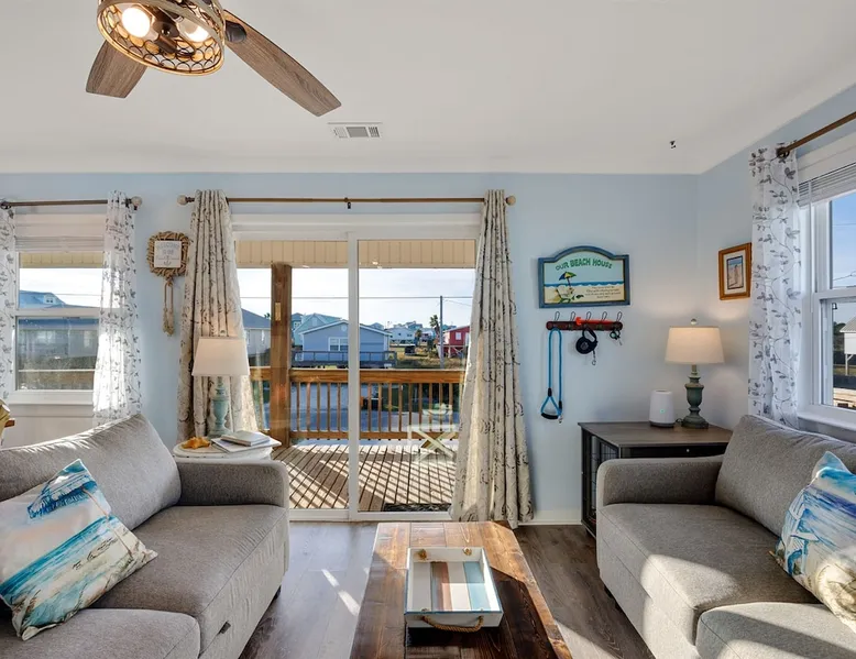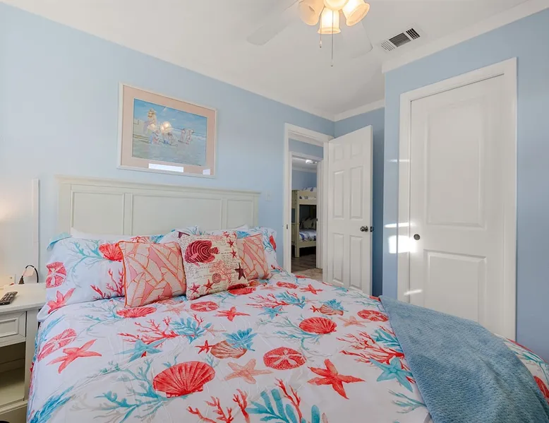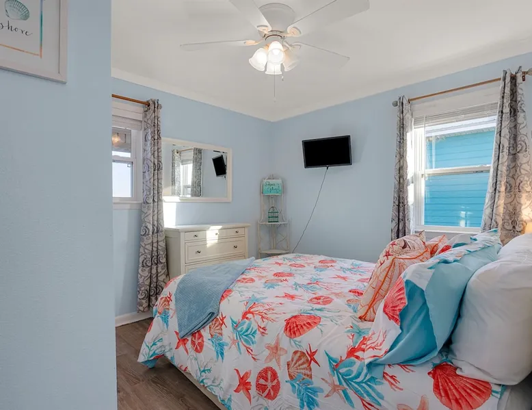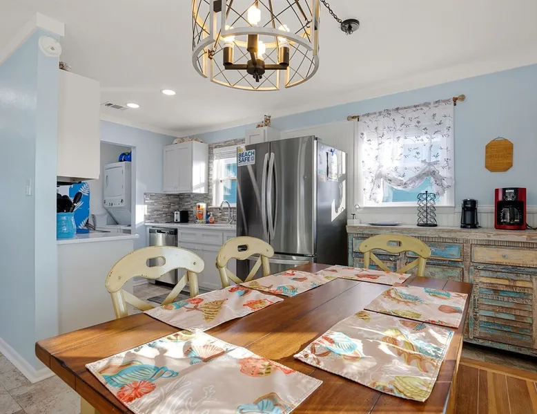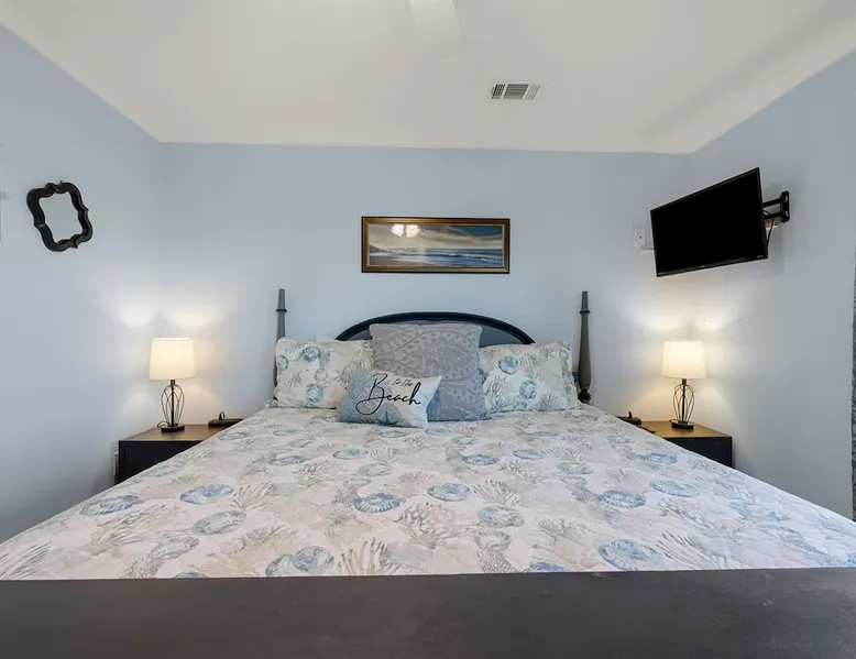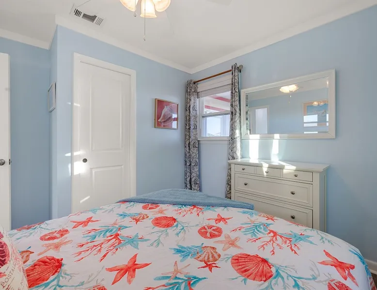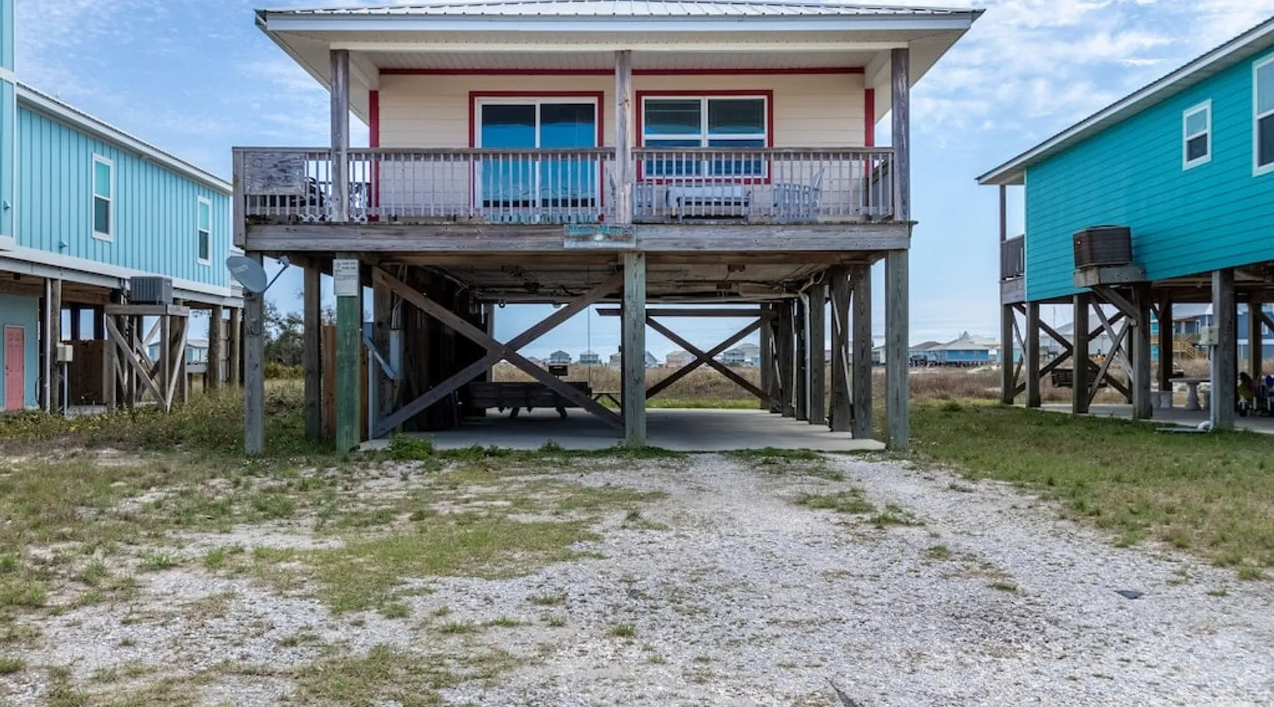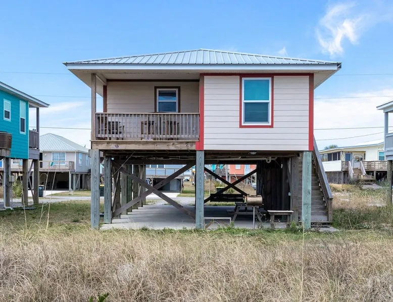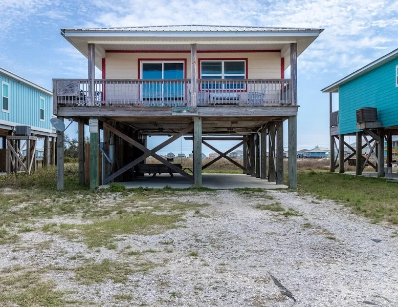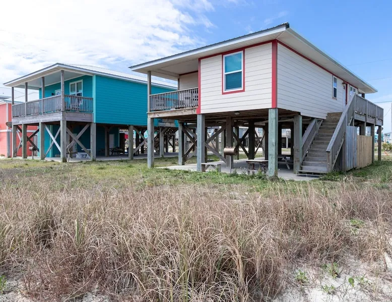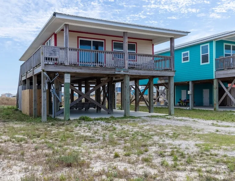 This charming, pet-friendly home is situated in a peaceful neighborhood near the beach, making it an ideal getaway for families. The open backyard offers beautiful views and ample space. The property next door, which is also owned by the same owner, is great for hosting special events like weddings and family reunions. Pets are welcome on the beach as long as they are on a leash. NUMBER OF PETS MUST BE INCLUDED ON ORIGINAL REQUEST MINIMUM AGE TO RENT IS 25 ( NO EXCEPTIONS) The space This cozy, private home offers an incredible beachfront escape, just a short stroll from the shimmering Gulf of Mexico. Built in 1980, the property boasts breathtaking views of spectacular sunrises and sunsets over the water. As the entire home is yours, with no shared spaces, you can truly unwind and soak up the peace and tranquility of this secluded stretch of pristine, white-sand beach. The three-bedroom, two-bathroom layout provides ample room, featuring a king-sized bed, queen bed, and bunk bed, plus two convertible sofas in the living area. Wake up each morning to the sound of the gentle waves and step out onto the private back deck off the master bedroom, taking in the fantastic vistas. The fully equipped kitchen makes it easy to prepare home-cooked meals, and the washer/dryer means you can pack light. Situated in the charming Fort Morgan area, away from the crowds and bustle, this is the perfect spot to truly relax and recharge. Spend your days beachcombing, dolphin-watching, and swimming in the clear, blue waters. The lively town of Gulf Shores is just a 20-minute drive away when you feel like venturing out. A minimum age of 25 is required to rent this property - no exceptions. Secure your dream beach getaway today! Guest access Effortless check-in with keyless entry. We'll send you the door code by email before your arrival, once you've completed the full payment. On-site parking is free, with space for up to 3 vehicles in the driveway. There's also room to park a boat. Please note the home has one flight of stairs to enter and exit. Other things to note This cozy beach house boasts 3 bedrooms, featuring a king-sized bed, a queen-sized bed, and a full-size bunk bed. It's just a short stroll to the beach, offering stunning views of the Gulf of Mexico and Mobile Bay. Enjoy the convenience of high-speed wireless internet and a fully equipped kitchen with a washer and dryer. The home is outfitted with smart TVs, and you can relax on the covered front and back porches. This carpet-free house provides a comfortable and modern living experience.