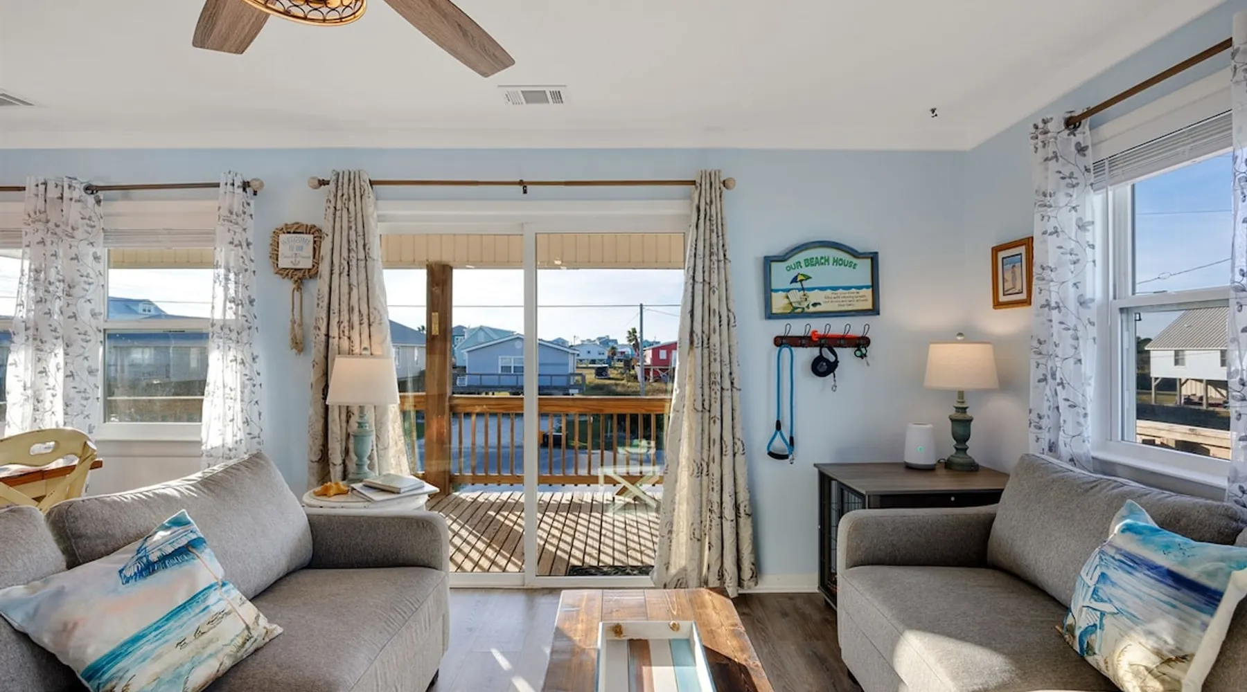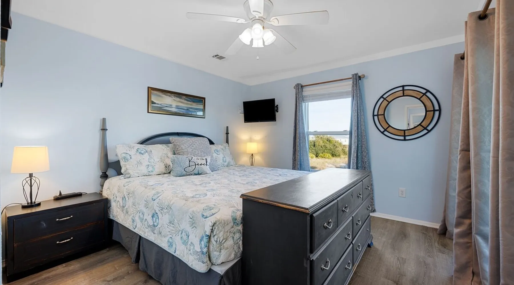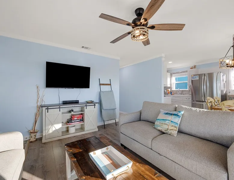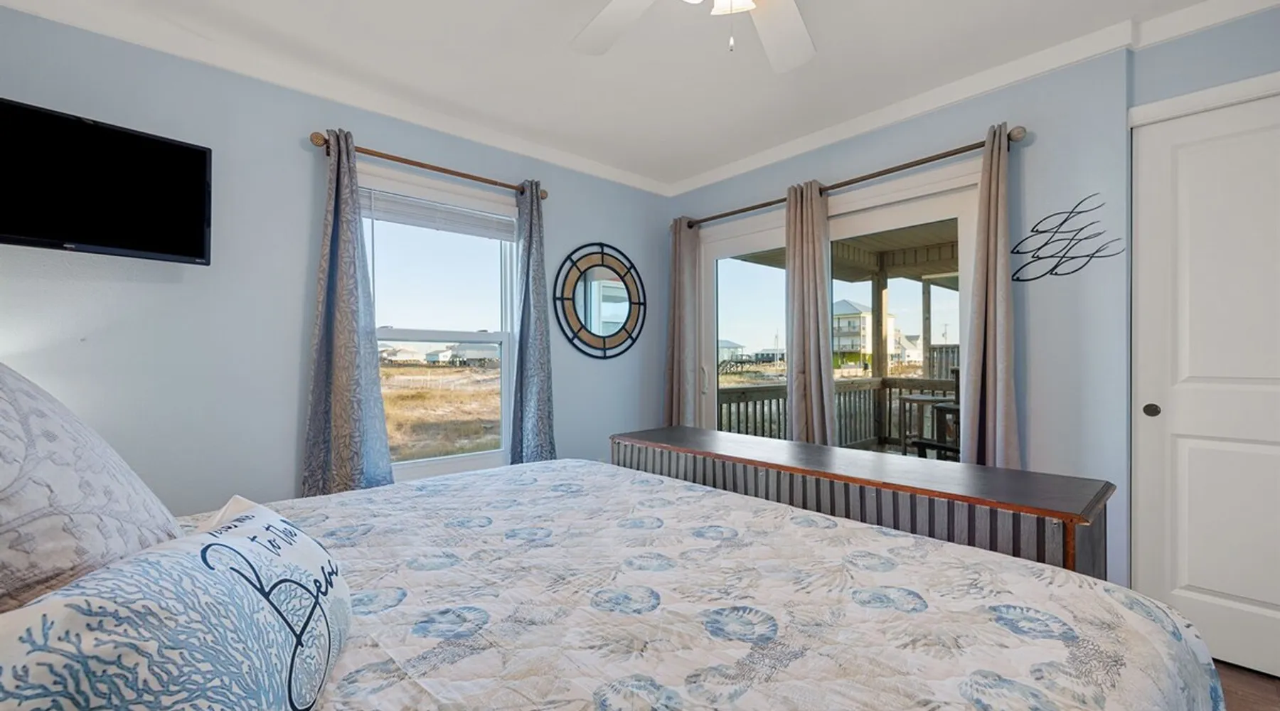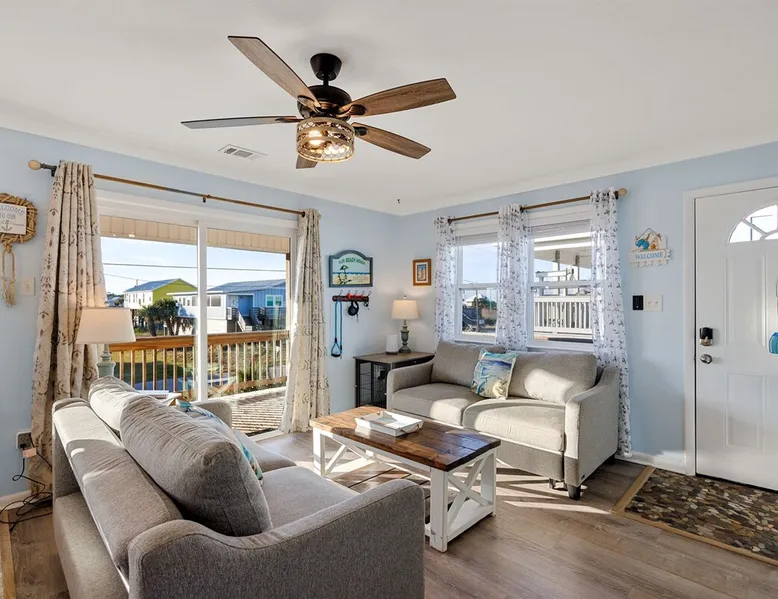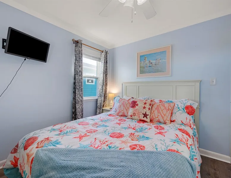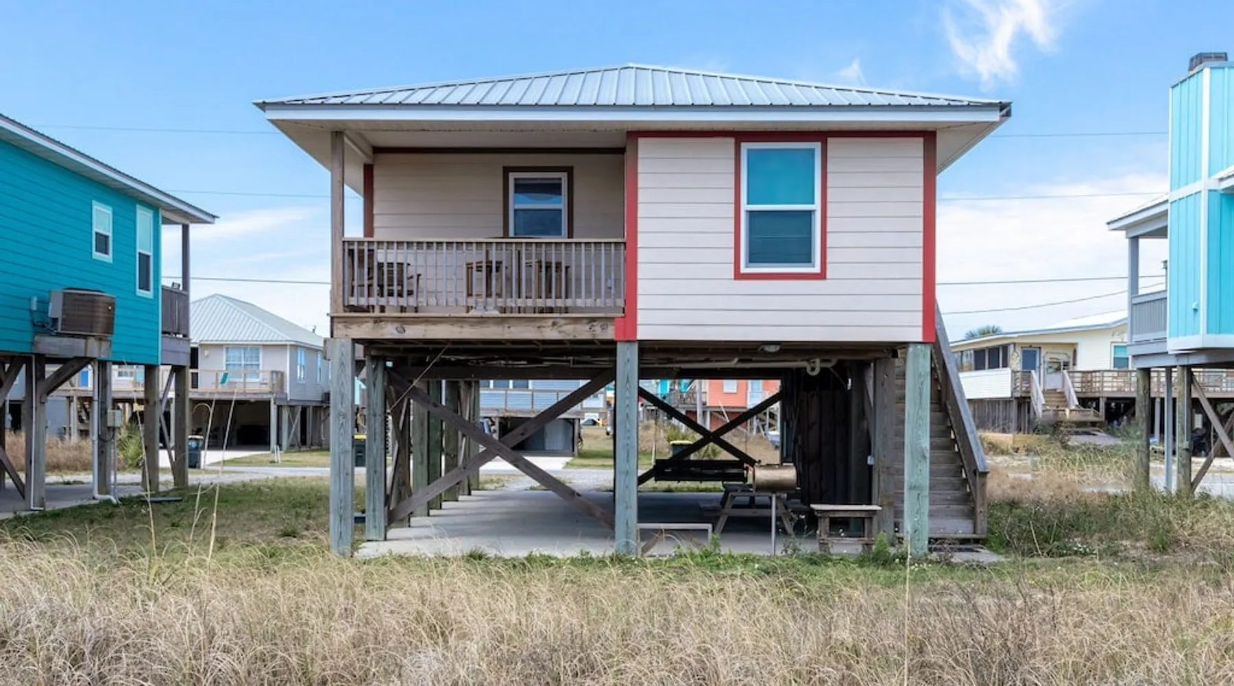 This charming, pet-friendly home is situated in a peaceful neighborhood near the beach, making it an ideal getaway for families. The open backyard offers beautiful views and ample space. The property next door, which is also owned by the same owner, is great for hosting special events like weddings and family reunions. Pets are welcome on the beach as long as they are on a leash. NUMBER OF PETS MUST BE INCLUDED ON ORIGINAL REQUEST MINIMUM AGE TO RENT IS 25 ( NO EXCEPTIONS) The space This cozy, private home offers an incredible beachfront escape, just a short stroll from the shimmering Gulf of Mexico. Built in 1980, the property boasts breathtaking views of spectacular sunrises and sunsets over the water. As the entire home is yours, with no shared spaces, you can truly unwind and soak up the peace and tranquility of this secluded stretch of pristine, white-sand beach. The three-bedroom, two-bathroom layout provides ample room, featuring a king-sized bed, queen bed, and bunk bed, plus two convertible sofas in the living area. Wake up each morning to the sound of the gentle waves and step out onto the private back deck off the master bedroom, taking in the fantastic vistas. The fully equipped kitchen makes it easy to prepare home-cooked meals, and the washer/dryer means you can pack light. Situated in the charming Fort Morgan area, away from the crowds and bustle, this is the perfect spot to truly relax and recharge. Spend your days beachcombing, dolphin-watching, and swimming in the clear, blue waters. The lively town of Gulf Shores is just a 20-minute drive away when you feel like venturing out. A minimum age of 25 is required to rent this property - no exceptions. Secure your dream beach getaway today! Guest access Effortless check-in with keyless entry. We'll send you the door code by email before your arrival, once you've completed the full payment. On-site parking is free, with space for up to 3 vehicles in the driveway. There's also room to park a boat. Please note the home has one flight of stairs to enter and exit. Other things to note This cozy beach house boasts 3 bedrooms, featuring a king-sized bed, a queen-sized bed, and a full-size bunk bed. It's just a short stroll to the beach, offering stunning views of the Gulf of Mexico and Mobile Bay. Enjoy the convenience of high-speed wireless internet and a fully equipped kitchen with a washer and dryer. The home is outfitted with smart TVs, and you can relax on the covered front and back porches. This carpet-free house provides a comfortable and modern living experience.