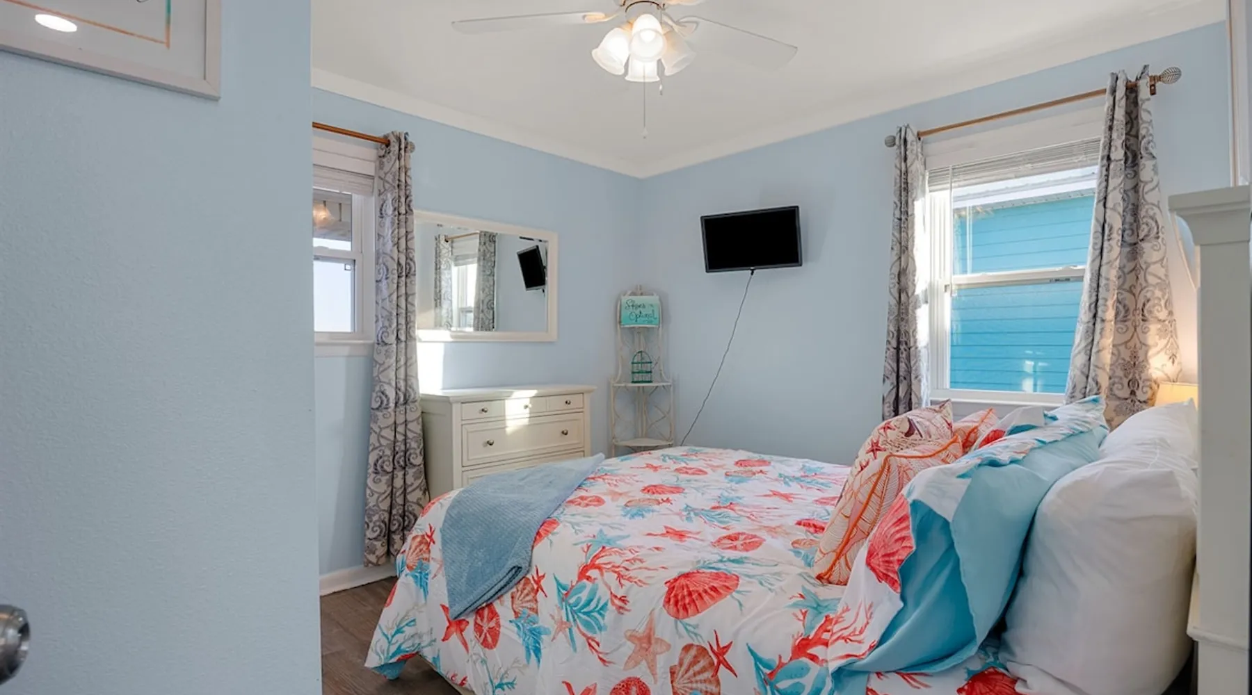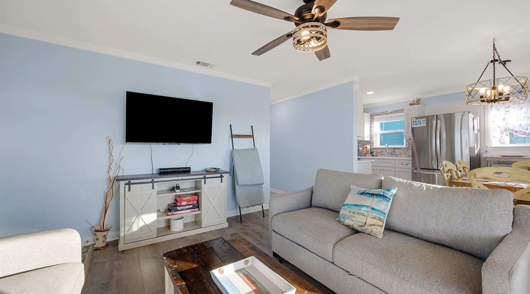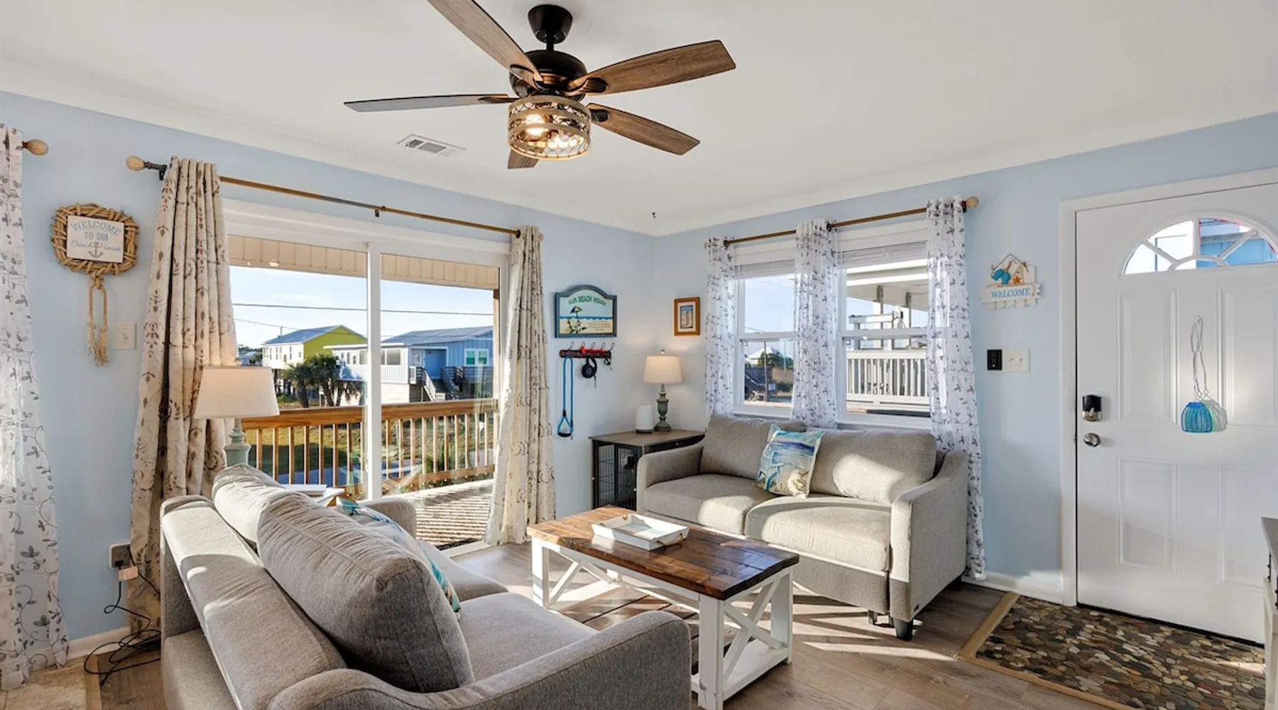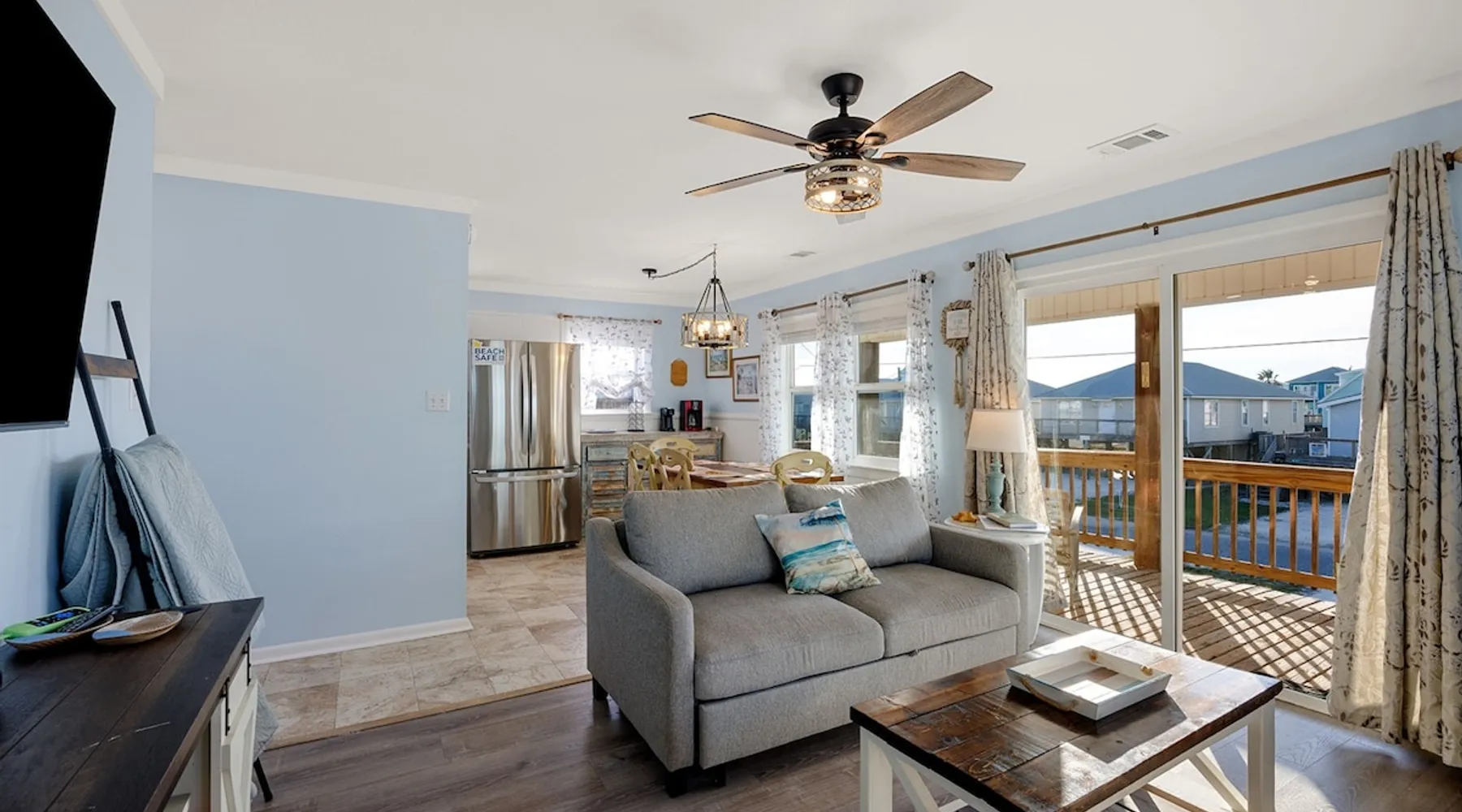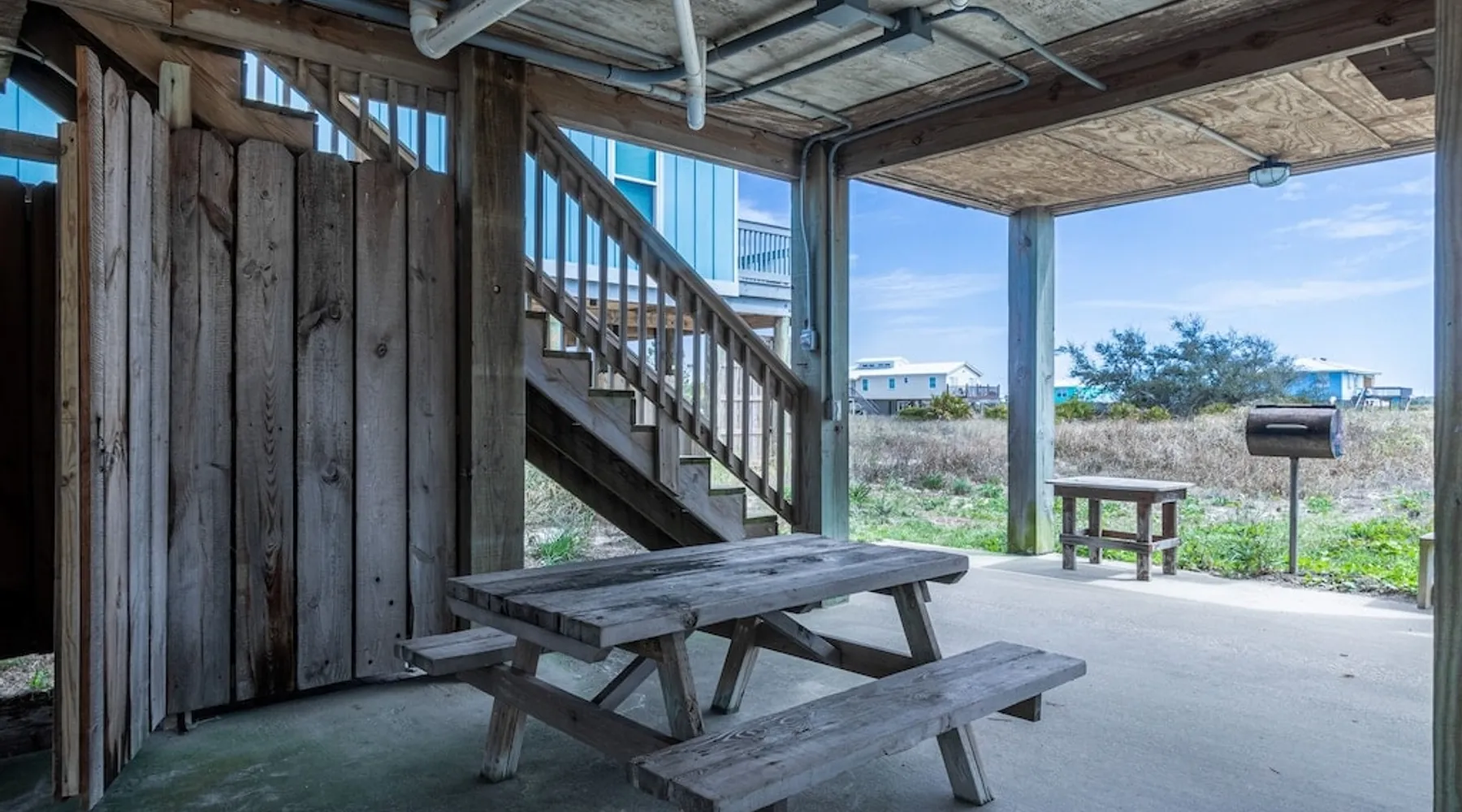 This charming, pet-friendly home is situated in a peaceful neighborhood near the beach, making it an ideal getaway for families. The open backyard offers beautiful views and ample space. The property next door, which is also owned by the same owner, is great for hosting special events like weddings and family reunions. Pets are welcome on the beach as long as they are on a leash. NUMBER OF PETS MUST BE INCLUDED ON ORIGINAL REQUEST MINIMUM AGE TO RENT IS 25 ( NO EXCEPTIONS) The space This cozy, private home offers an incredible beachfront escape, just a short stroll from the shimmering Gulf of Mexico. Built in 1980, the property boasts breathtaking views of spectacular sunrises and sunsets over the water. As the entire home is yours, with no shared spaces, you can truly unwind and soak up the peace and tranquility of this secluded stretch of pristine, white-sand beach. The three-bedroom, two-bathroom layout provides ample room, featuring a king-sized bed, queen bed, and bunk bed, plus two convertible sofas in the living area. Wake up each morning to the sound of the gentle waves and step out onto the private back deck off the master bedroom, taking in the fantastic vistas. The fully equipped kitchen makes it easy to prepare home-cooked meals, and the washer/dryer means you can pack light. Situated in the charming Fort Morgan area, away from the crowds and bustle, this is the perfect spot to truly relax and recharge. Spend your days beachcombing, dolphin-watching, and swimming in the clear, blue waters. The lively town of Gulf Shores is just a 20-minute drive away when you feel like venturing out. A minimum age of 25 is required to rent this property - no exceptions. Secure your dream beach getaway today! Guest access Effortless check-in with keyless entry. We'll send you the door code by email before your arrival, once you've completed the full payment. On-site parking is free, with space for up to 3 vehicles in the driveway. There's also room to park a boat. Please note the home has one flight of stairs to enter and exit. Other things to note This cozy beach house boasts 3 bedrooms, featuring a king-sized bed, a queen-sized bed, and a full-size bunk bed. It's just a short stroll to the beach, offering stunning views of the Gulf of Mexico and Mobile Bay. Enjoy the convenience of high-speed wireless internet and a fully equipped kitchen with a washer and dryer. The home is outfitted with smart TVs, and you can relax on the covered front and back porches. This carpet-free house provides a comfortable and modern living experience.
