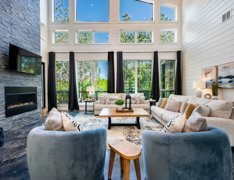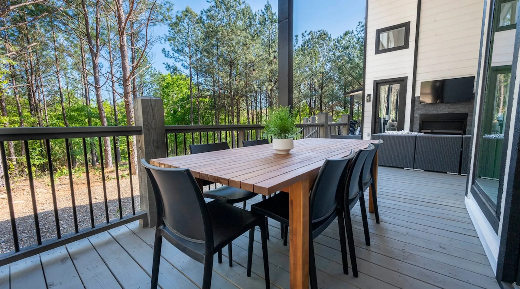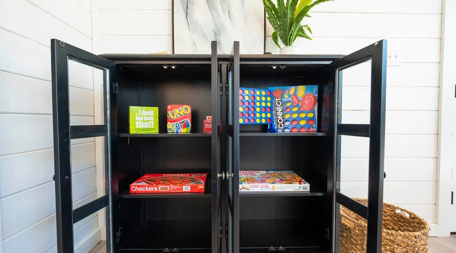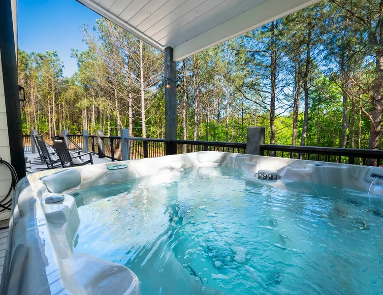 "Encanto Life" Key Features: ☀ Large relaxing hot tub ☀ Large game room with Air Hockey, Foosball, Shuffleboard, and 2 arcade consoles ☀ Outdoor fire pit ☀ BBQ grill ☀ Year-round River flowing behind the cabin ☀ Cornhole ☀ Indoor & outdoor electric fireplace; cozy ambiance at the flick of a switch ☀ 4 bedrooms with king beds ☀ 5.5 bathrooms; 1 ensuite w/ freestanding bathtub + separate shower ☀ 7 Smart HDTVs w/ Amazon Prime, Disney+, Hulu, Netflix, etc, bring your login ☀ Baby safety gate The space ☀ Super spacious for large gatherings of 16 people ☀ Fully equipped kitchen w/ everything you need to cook your favorite meals ☀ Lots of outdoor seating galore; rocking chairs, Adirondack chairs ☀ Huge covered back patio with outdoor dining, couch and TV ☀ Kid-friendly; pack n play crib, standalone high-chair, changing table + tableware ☀ Variety of board and card games like Giant Checkers, National Parks Monopoly, Life-size Uno and several other games to enjoy ☀ Air conditioning + heating ☀ Free washer + dryer ☀ Private backyard, back patio + front porch to enjoy the view and the sounds of the river. ☀ Free parking and circle drive for you to bring along your outdoor toys or boats Welcome to our luxury and spacious cabin called "Encanto Life" nestled in the heart of the woods, where the sounds of the flowing river will lull you to sleep. This serene retreat is perfect for those seeking a peaceful getaway from the hustle and bustle of city life. Surrounded by thick lush greenery, you will enjoy a true wilderness experience. You'll find yourself waking up to the sound of chirping birds and rustling leaves, and the gentle murmur of the river. ☆☆ KITCHEN & LOUNGE ☆☆ The cabin itself is a charming & modern that can accommodate up to sixteen guests spread across 4 bedrooms and a game area with 4 additional queen bunk beds. The interior is furnished with all the modern amenities you could need. The living room features a comfortable sofa and armchairs, perfect for lounging with a good book or watching a movie on the flat-screen TV. The kitchen is fully equipped with all the necessary appliances and utensils, making it easy to whip up your favorite meals. You can enjoy your culinary creations at the dining table, which offers a stunning view of the river and surrounding woods. ☆☆ Bedrooms ☆☆ The cabin has 4 cozy bedrooms each with king beds, private bathroom and curtains to shut out the morning sun. Additionally, there are 2 bunk beds with 4 queen beds in the game area for kiddos. The bathrooms feature double vanities full shower or tub/shower, ensuring that you can freshen up after a day of exploring the great outdoors. ☆☆ OUTSIDE SPACE ☆☆ Outside, you'll find a super spacious deck with beautiful views of the forest and mountains, complete with a dining table and chairs where you can enjoy your meals while taking in the fresh mountain air. The deck also features a hot tub, perfect for relaxing after a day of hiking or fishing in the nearby river. The surrounding area offers plenty of outdoor activities, including hiking, fishing, jet skiing, boating, kayaking, paddleboarding, and swimming. You can explore the nearby woods and marvel at the diverse flora and fauna or take a relaxing stroll down by the river. In the evenings, you can gather around the fire pit and roast marshmallows while gazing at the starry night sky. Overall, our family cabin offers a unique and unforgettable experience that combines the best of both worlds - the comfort and convenience of modern amenities with the serenity and beauty of nature. Distance to Entertainment ☀ 13 miles to Beaver's Bend Marina ☀ 14 minutes to Petting Zoo ☀ 15 minutes to Hochatown ☀ 12 minutes to Naaman's BBQ ☀ 12 minutes to Mountain Fork Brewery ☀ 11 minutes to closest grocery store in north Hochatown called "Local 259". ☀ 17 minutes to new Chocktaw Landing Casino ★☆ Book your stay today and discover the magic of the cabin in the woods in Broken Bow! ☆★ Guest access You, your family and friends will have this entire cabin all to yourselves on over 3 acres. Full kitchen, washer/dryer, river access, etc are all available to you. Other things to note ACCESS: Check in is at 4pm and checkout is at 10am. We are not able to accommodate early or late checkins/outs during busy times or same day checkins/outs for guests. The property features self-checkin using an electronic smart lock keypad. A unique door code will be provided at least 48 hours before check-in. RULES ✔ No more than the max number of guests allowed at the property based on the reservation. ✔ Quiet hours are from 10pm to 9am in respect of other surrounding properties. ✔ Avoid the use of hair dyes, hair coloring and other products that could stain linens. ✔ No fireworks, candles or discharging of firearms allowed. ✔ If the property is left excessively dirty it could require an additional cleaning fee. ✔ An adult of at least 18 years old must supervise all kids around the hot tub, fire features and river. DAMAGE WAIVER OR DEPOSIT: As part of the reservation, we do require a damage waiver fee charged or damage deposit. RENTAL AGREEMENT: We ask guests to sign a rental agreement for their reservation. RECOMMENDATIONS: We encourage all guests to purchase rental insurance should something unexpected come up and impact your stay. We must follow our refund policy. NO SMOKING: or use of fire permitted in the rental. Guest acknowledges that no “smoking” includes the use of vape pens and marijuana and “use of fire” includes lighting of candles, incense or sage. There will be a $500 charge if this rule is not followed. SECURITY CAMERAS: Renters acknowledge and accept that the property is monitored by outdoor security cameras to protect the property. GAS FIREPLACE(S): These are turned off from Mid-May to Mid-September in the warmer months. PETS: Pets are not allowed. Some guests have medical or allergy r