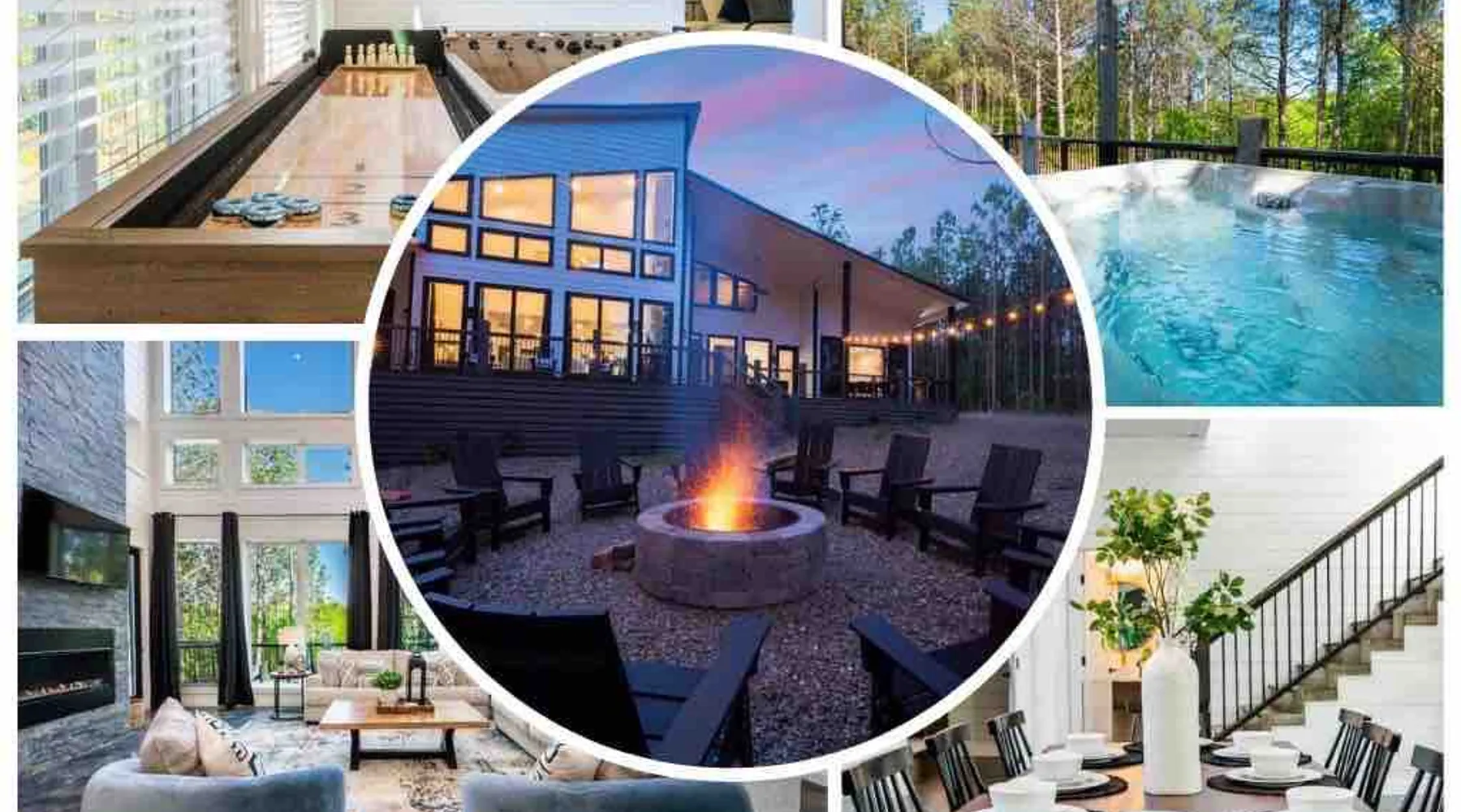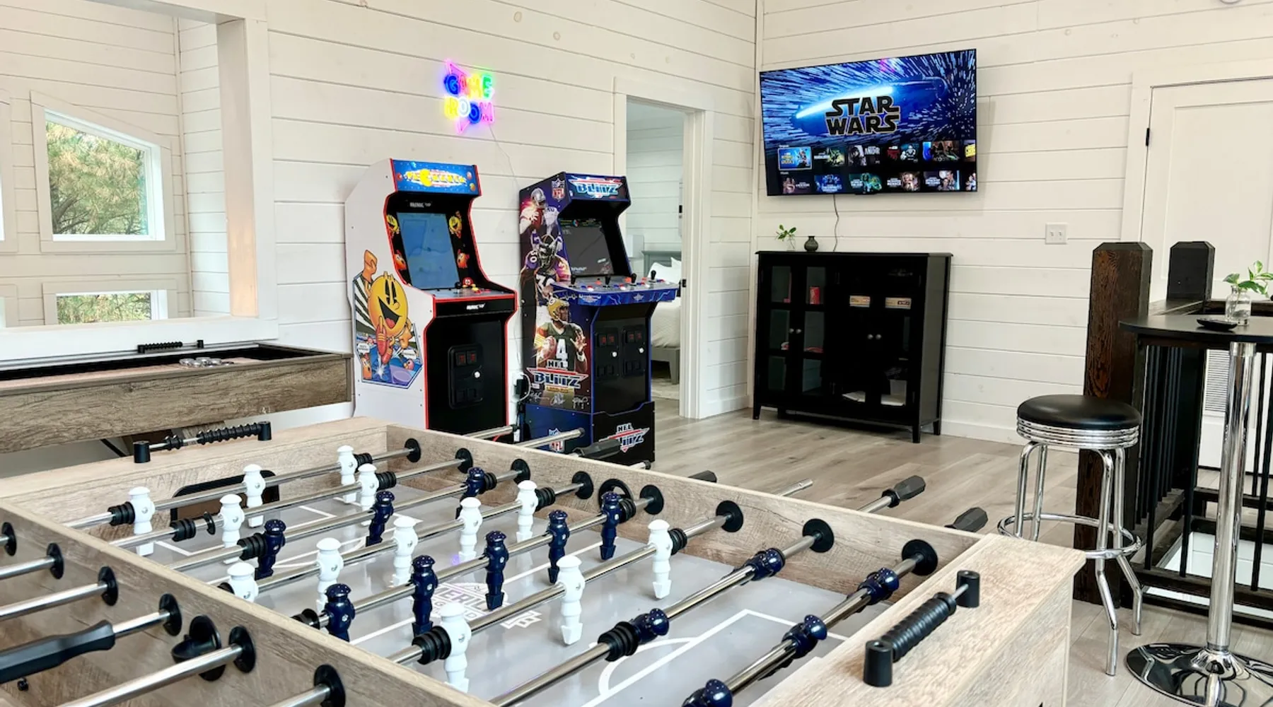 NEW Luxe Cabin/4 Private King Bedrooms/Firepit/River Nearby/Arcades/Air Hockey