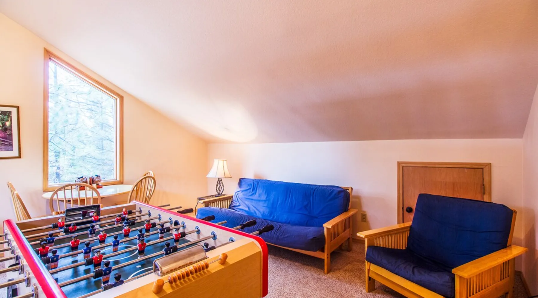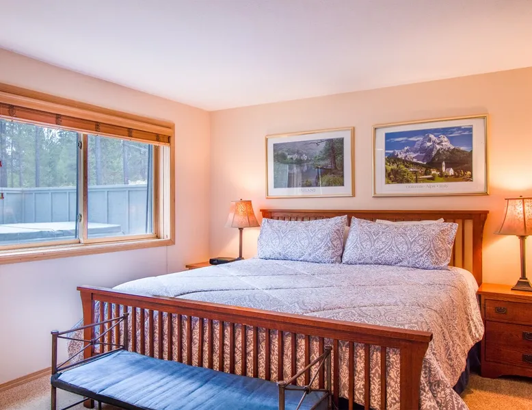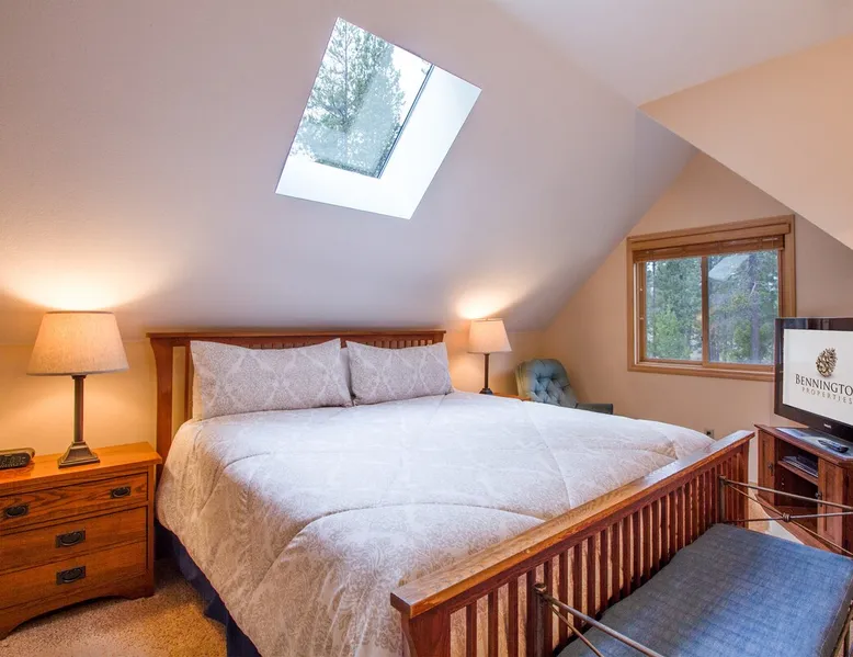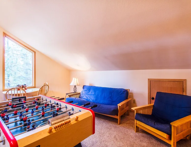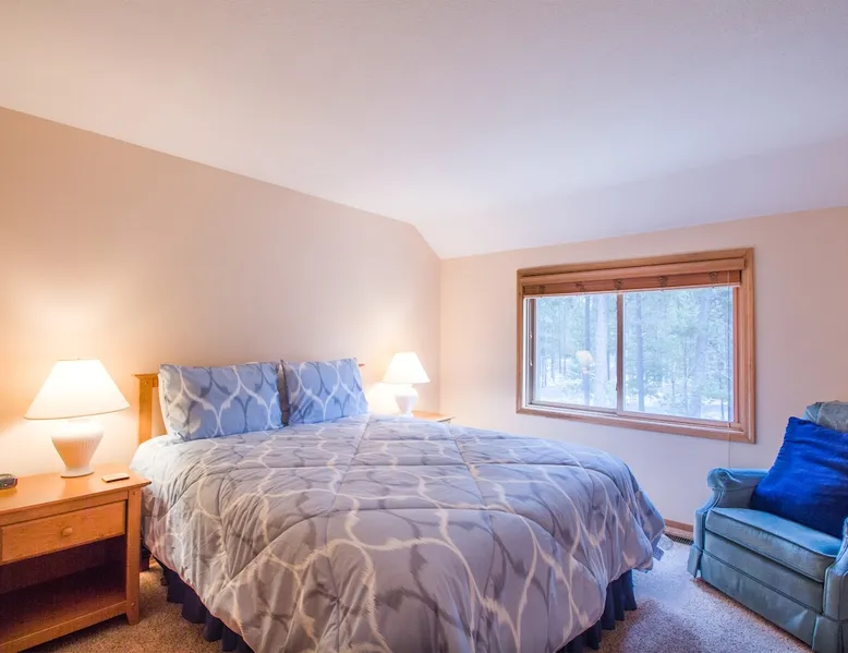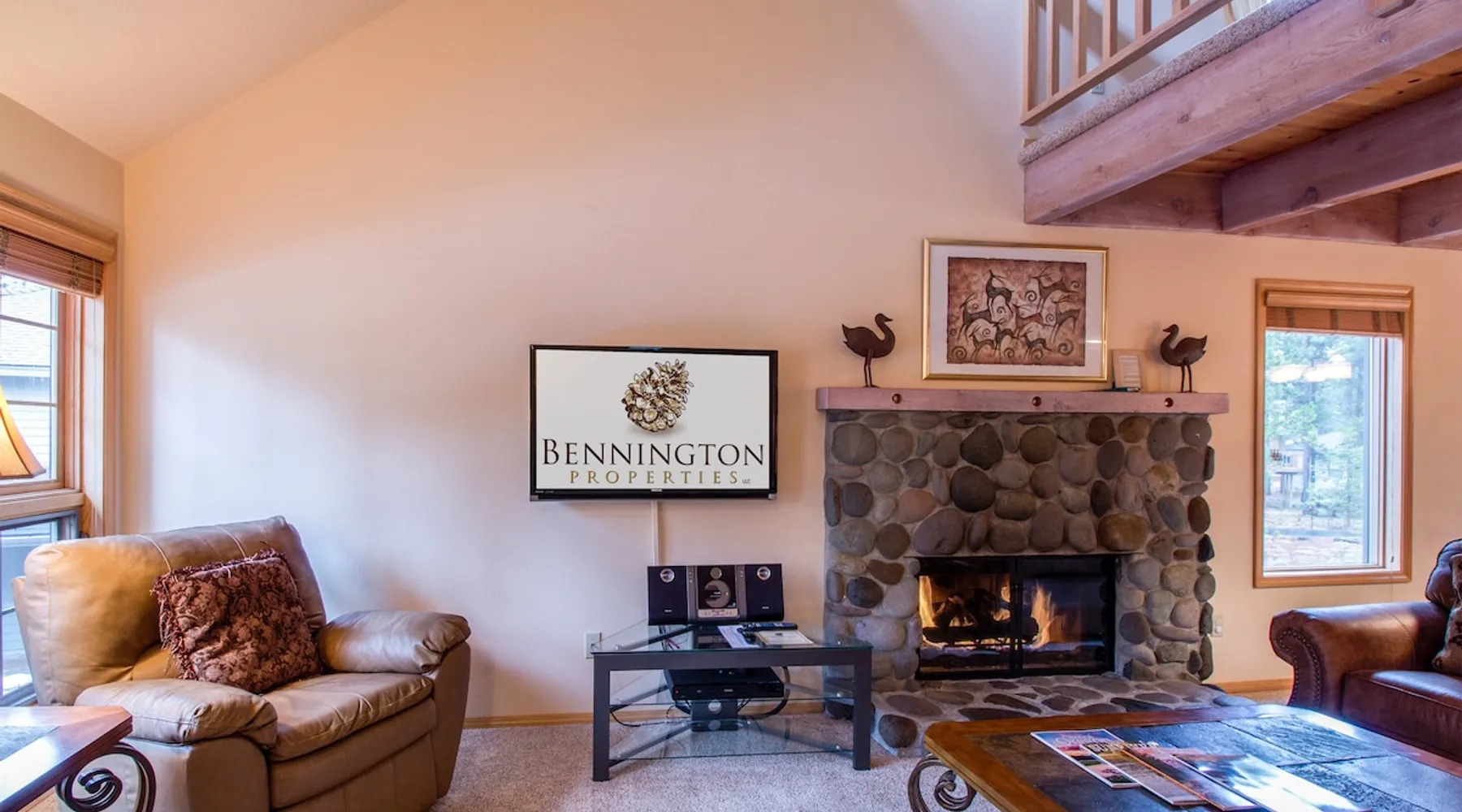 Relax, play, and explore from this cozy Sunriver retreat! Soak in the private hot tub, warm up by the gas fireplace, or challenge the crew to a friendly game of foosball. With bikes included, it’s easy to hit the trails or cruise to the Village. This home sleeps 10 comfortably and is perfect for family fun or a group getaway. Whether you're lounging, adventuring, or doing a bit of both—this is your basecamp for making memories! The space Located close to Sunriver's north core recreation area and grocery store this air-conditioned home has all you need to enjoy a getaway for 10. Upon entering the home you'll find a large living room with a gas fireplace, a fully equipped gourmet kitchen, half bath and king ensuite bedroom with attached bathroom with a shower/tub combo. Head upstairs to find an open loft area with a large foosball table, game table and futon, plus three more bedrooms and a full bathroom with shower/tub combo. Bedroom 1 is a queen bedroom with TV and DVD player Bedroom 2 has 2 twin beds and a large walk-in closet. Bedroom 3 is a King Bedroom with TV and DVD player. Full Bathroom with shower/tub combo. Relax in your private hot tub and enjoy your vacation. Or head outside and take a bike ride anywhere in Sunriver on one of the 6 adult bikes provided with this vacation rental house. This home welcomes dogs, 2 max, no other pets are allowed. Fees apply. Guest access Home access information will be sent 7 - 10 days prior to arrival. All homes are set up for self check-in, no need to stop by the office, just go straight to the home. Other things to note AGE RESTRICTIONS: Guests must be 23 years or older to rent Bennington homes and the person reserving must occupy the home the whole reservation.