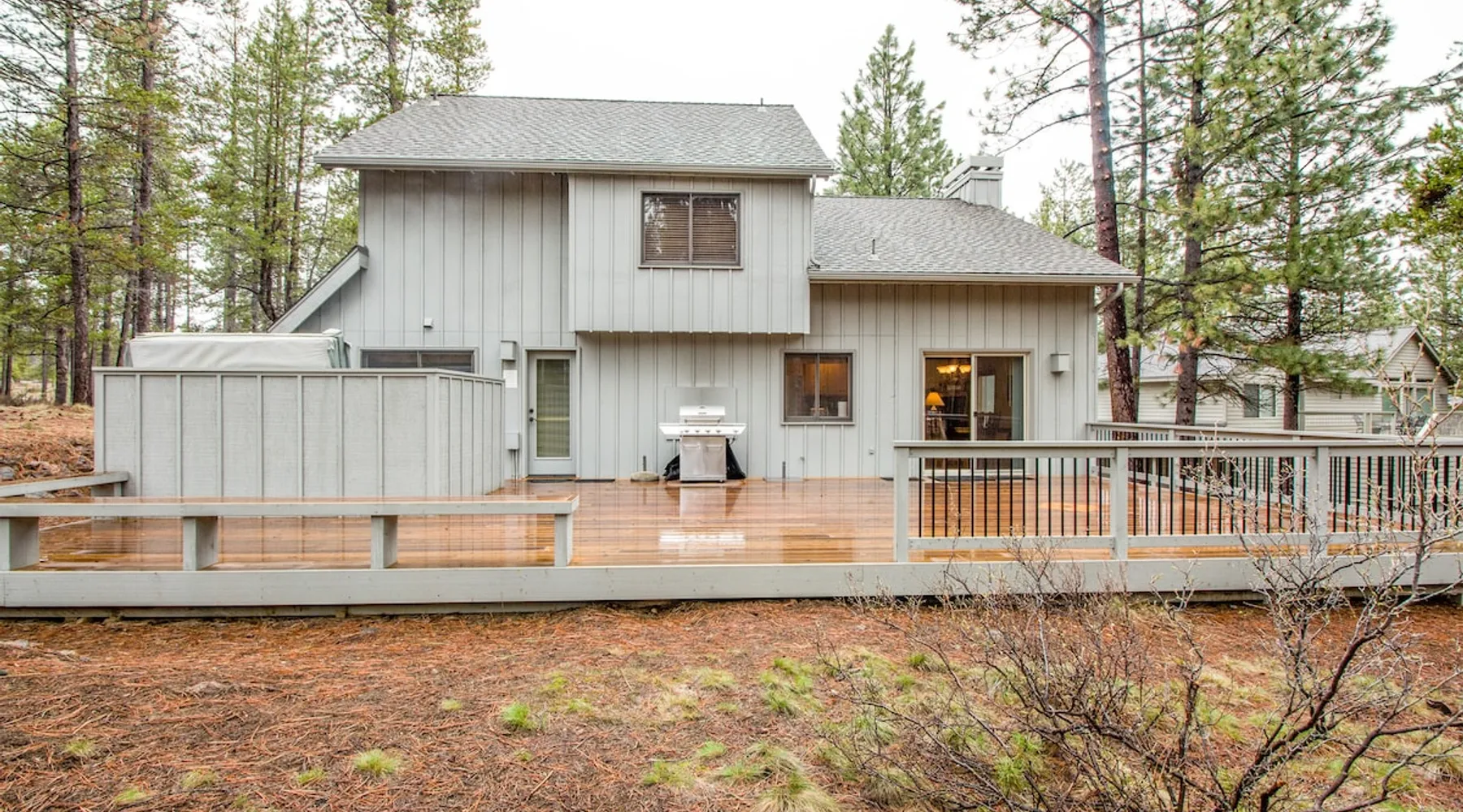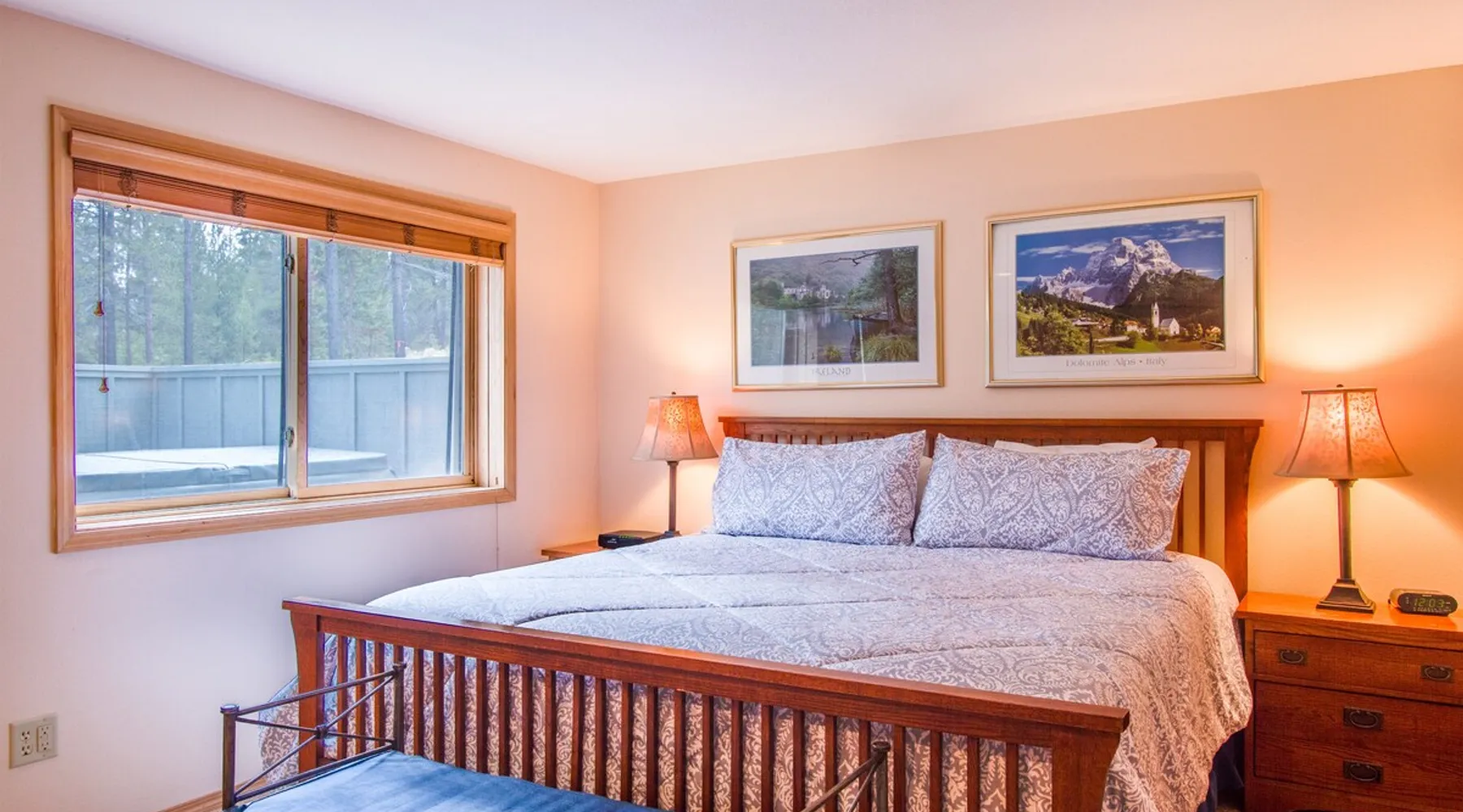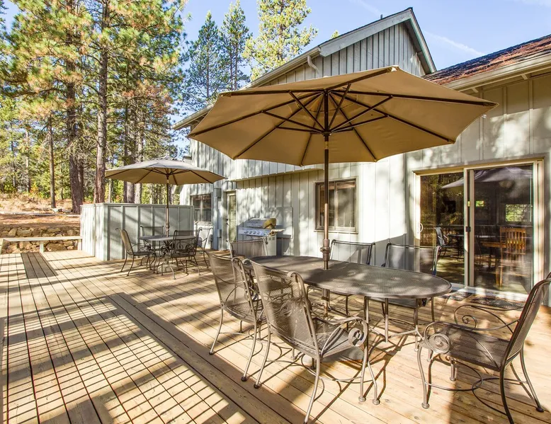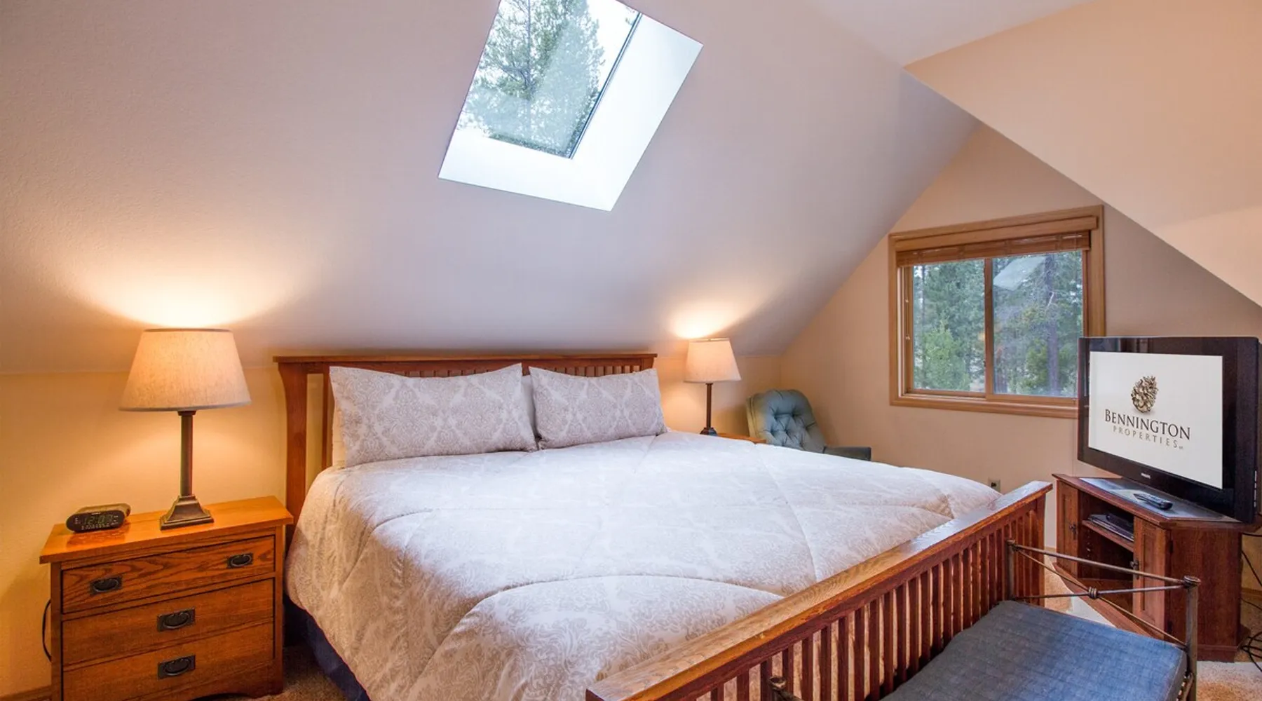 Relax, play, and explore from this cozy Sunriver retreat! Soak in the private hot tub, warm up by the gas fireplace, or challenge the crew to a friendly game of foosball. With bikes included, it’s easy to hit the trails or cruise to the Village. This home sleeps 10 comfortably and is perfect for family fun or a group getaway. Whether you're lounging, adventuring, or doing a bit of both—this is your basecamp for making memories! The space Located close to Sunriver's north core recreation area and grocery store this air-conditioned home has all you need to enjoy a getaway for 10. Upon entering the home you'll find a large living room with a gas fireplace, a fully equipped gourmet kitchen, half bath and king ensuite bedroom with attached bathroom with a shower/tub combo. Head upstairs to find an open loft area with a large foosball table, game table and futon, plus three more bedrooms and a full bathroom with shower/tub combo. Bedroom 1 is a queen bedroom with TV and DVD player Bedroom 2 has 2 twin beds and a large walk-in closet. Bedroom 3 is a King Bedroom with TV and DVD player. Full Bathroom with shower/tub combo. Relax in your private hot tub and enjoy your vacation. Or head outside and take a bike ride anywhere in Sunriver on one of the 6 adult bikes provided with this vacation rental house. This home welcomes dogs, 2 max, no other pets are allowed. Fees apply. Guest access Home access information will be sent 7 - 10 days prior to arrival. All homes are set up for self check-in, no need to stop by the office, just go straight to the home. Other things to note AGE RESTRICTIONS: Guests must be 23 years or older to rent Bennington homes and the person reserving must occupy the home the whole reservation.