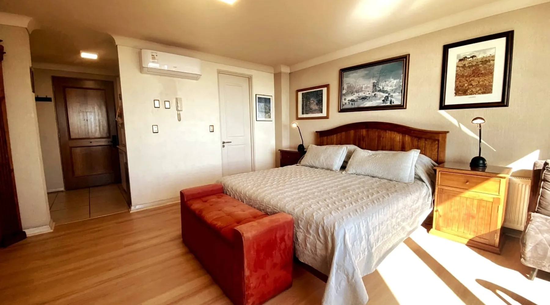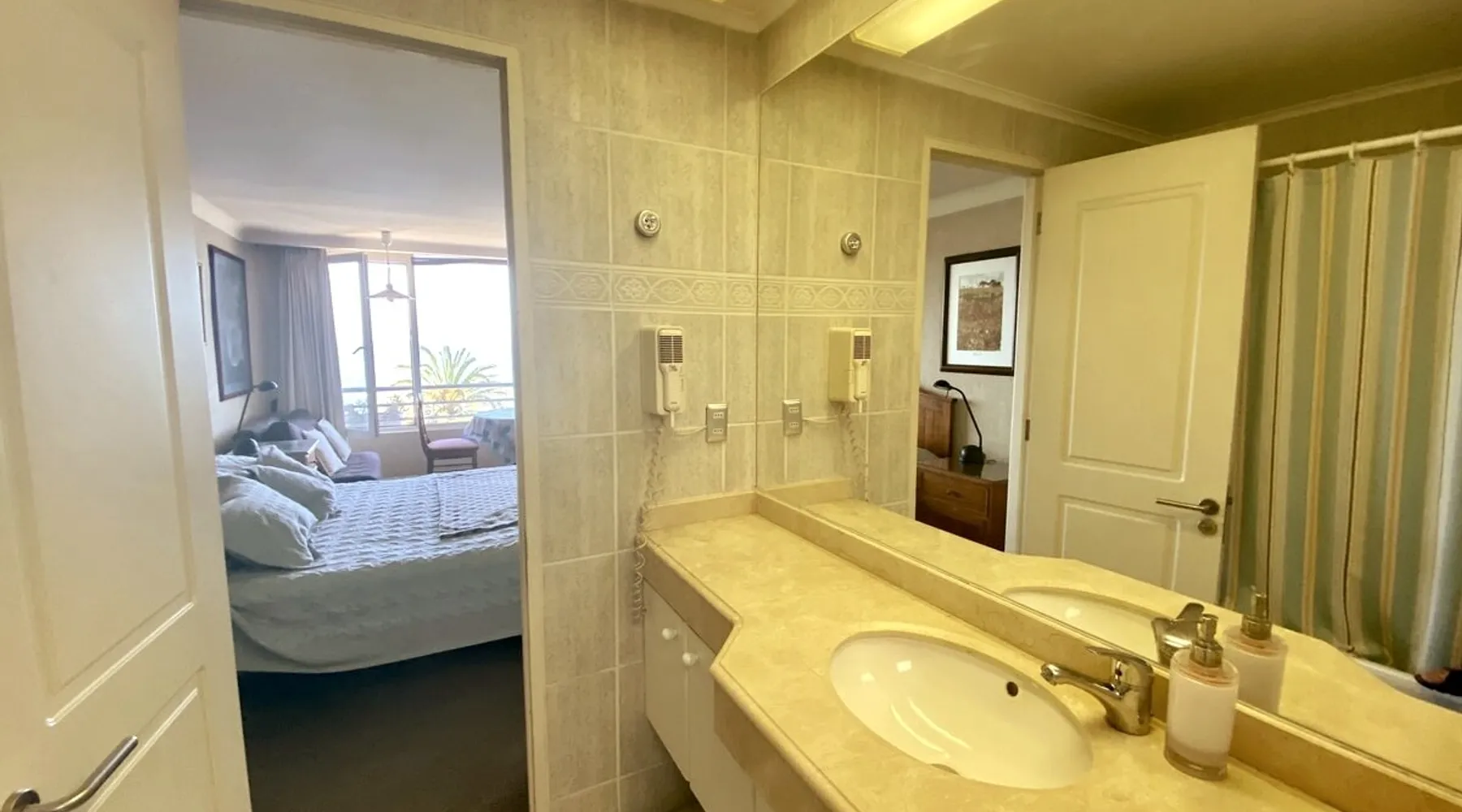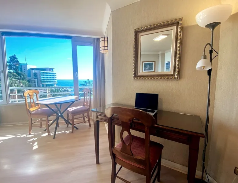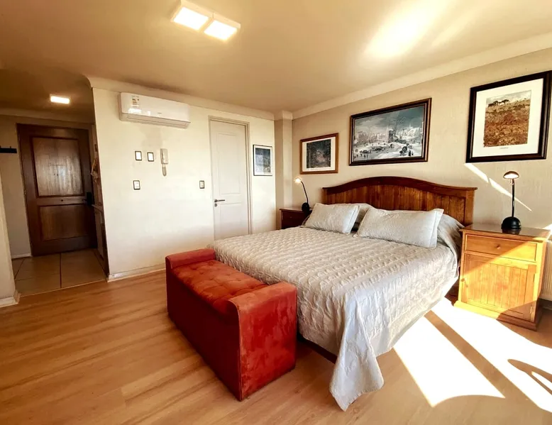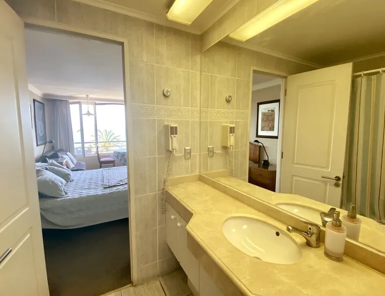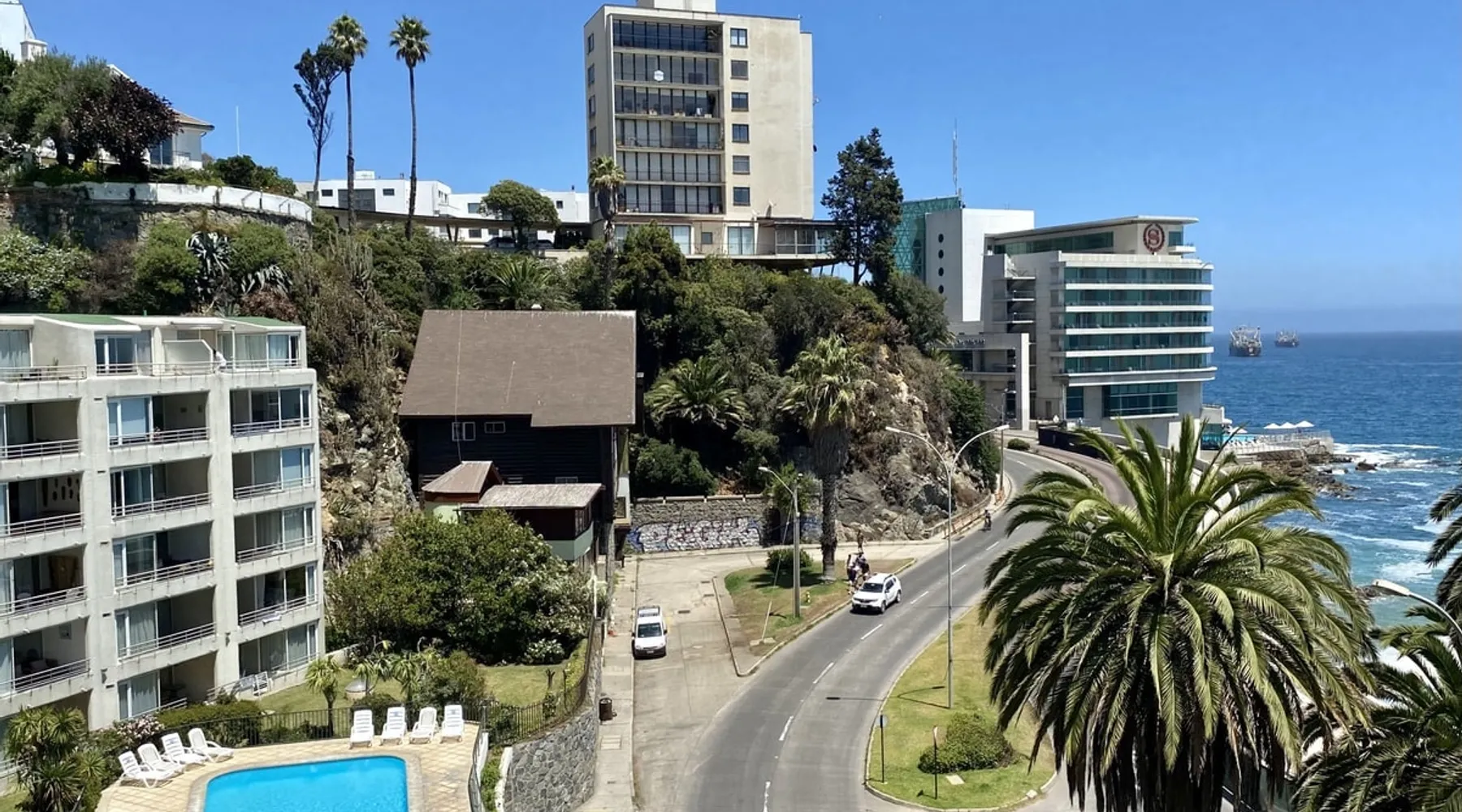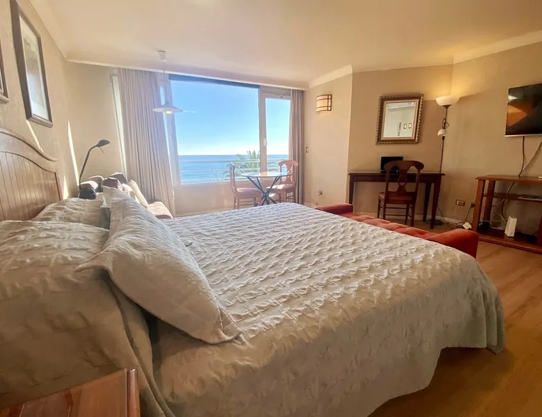 ⛵ Enjoy a unique stay in our bright studio with a stunning ocean view. Located in Cerro Castillo, minutes from the center of Viña del Mar and the beach. Perfect for taking a break and also for working. 🖥️ Ideal for digital nomads, couples looking for a getaway, and small vacation families. The space 🟢 King bed 🟢 Sofa bed 🟢 Full bathroom 🟢 Fully Equipped Kitchen 🟢 Desk 🟢 Wi-Fi (Fiber Optic 400 Mbps) 🟢 Free parking, 1 reserved space 🟢 Laundry in the building (additional value) 🟢 Swimming pool and gymnasium shared Guest access 🔑 The property features a smart lock, 24/7 access Other things to note ♻️ We use eco-friendly, biodegradable and antibacterial cleaning products. 🧡 We take care of our home, the environment and the community. 🤗 Thank you for being a respectful guest! 📅 Book now and live an unforgettable experience in Viña del Mar!